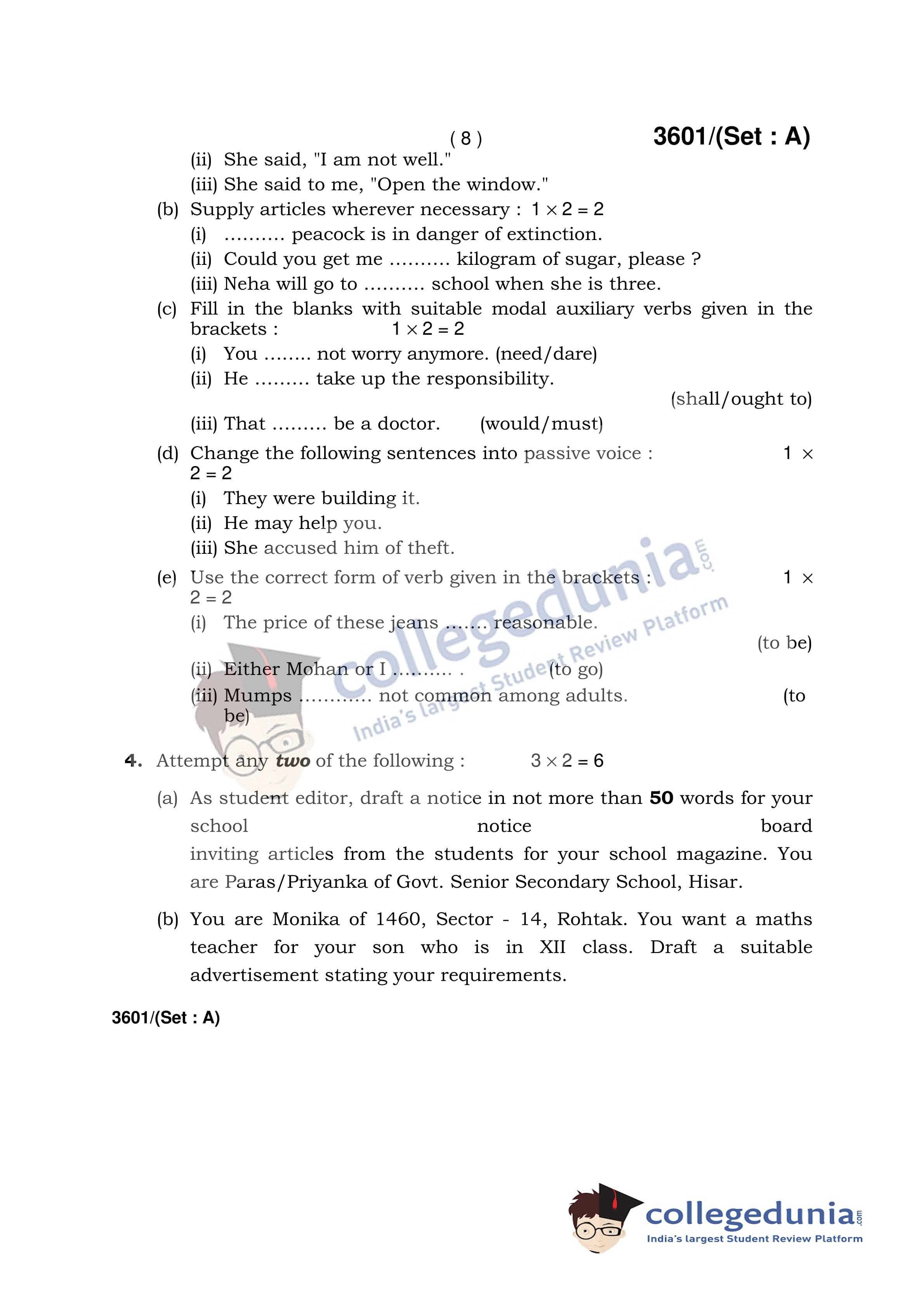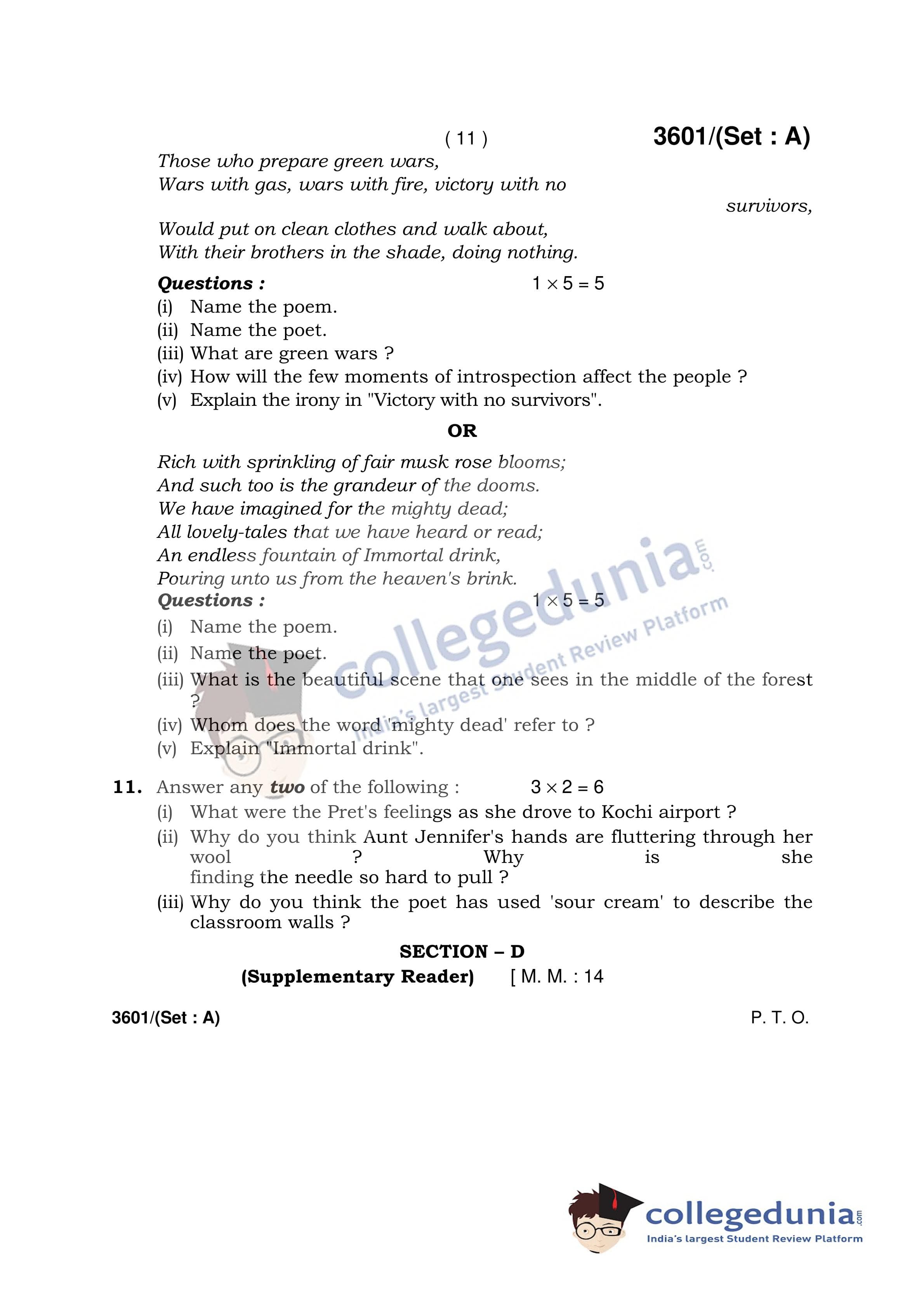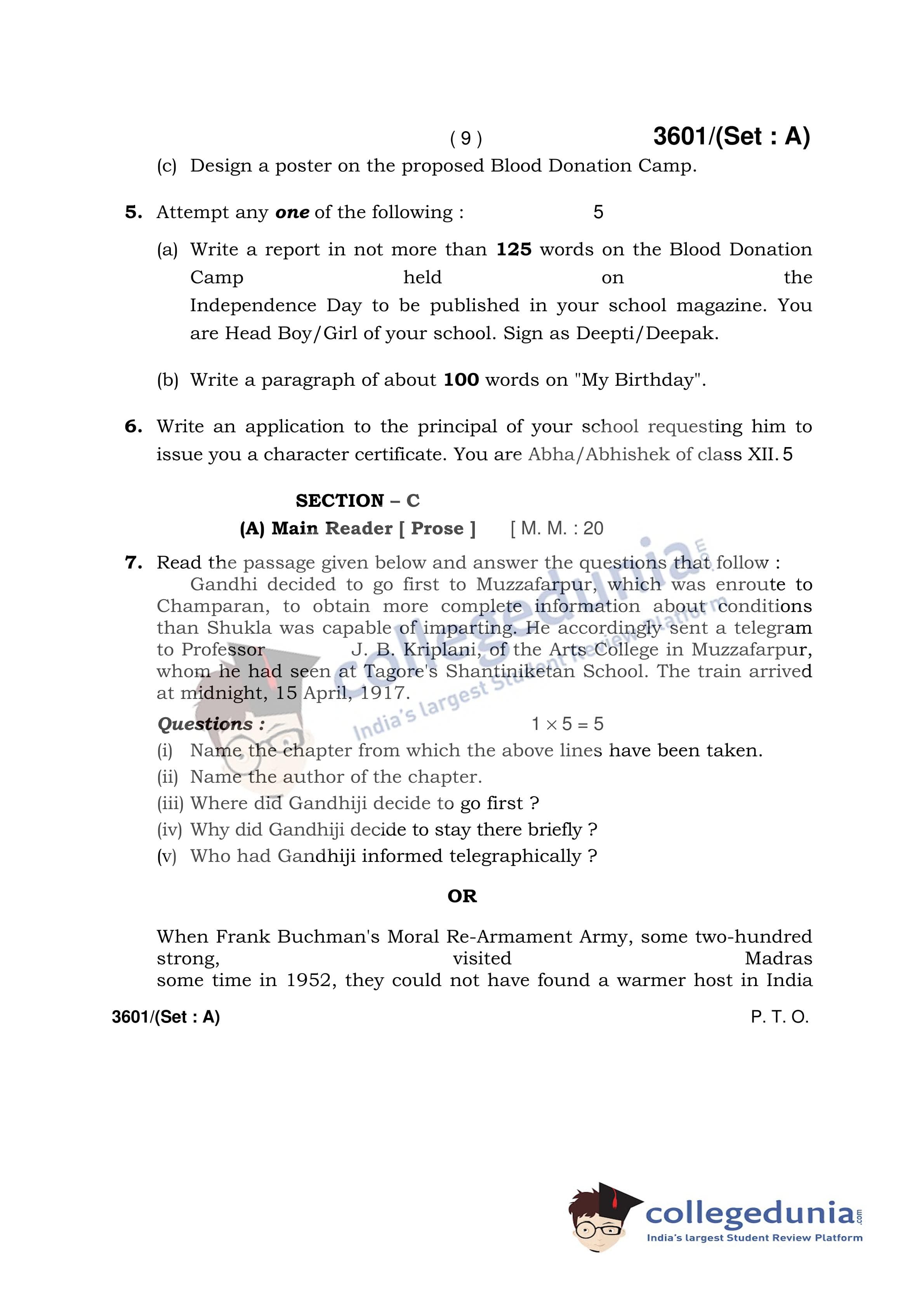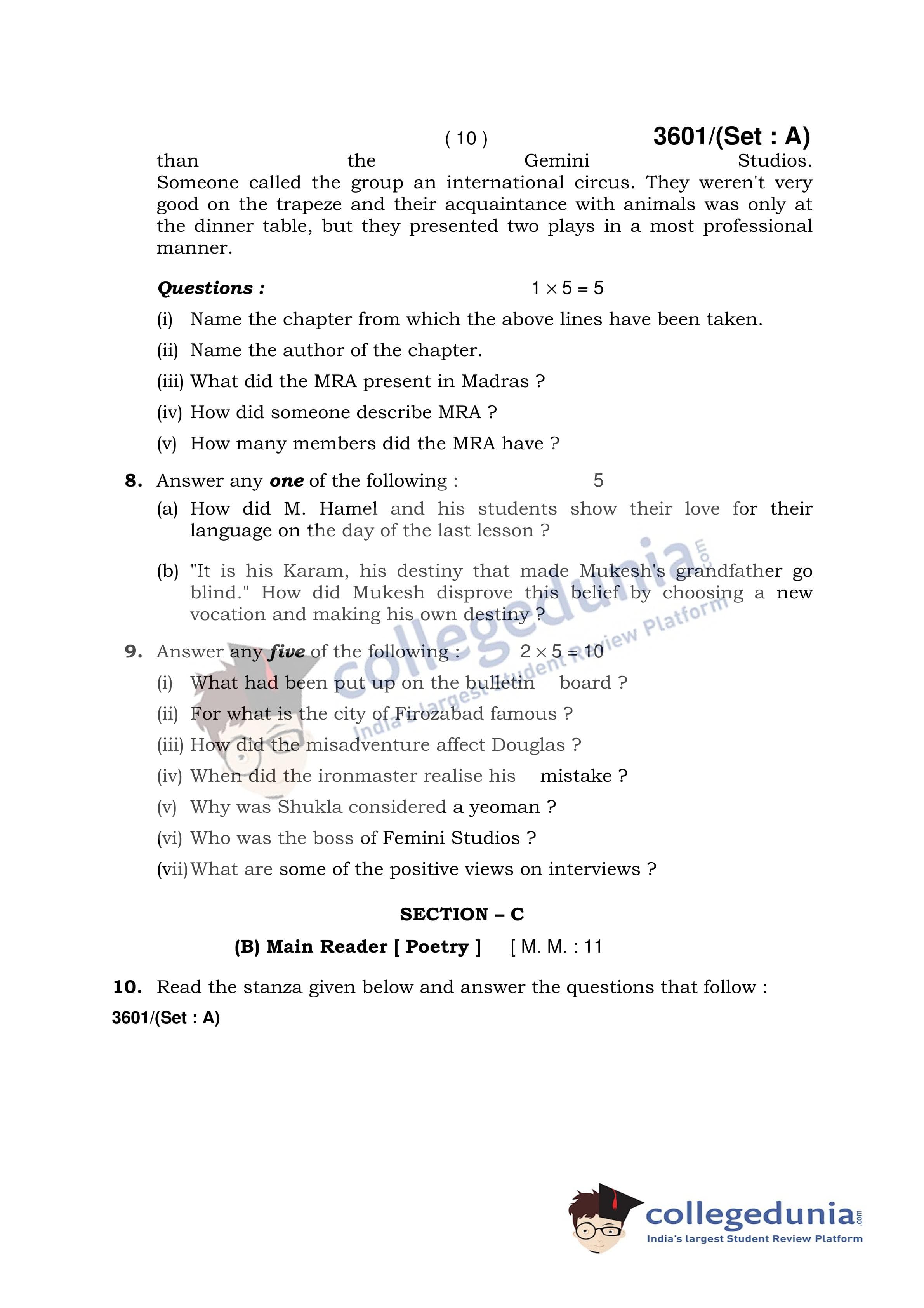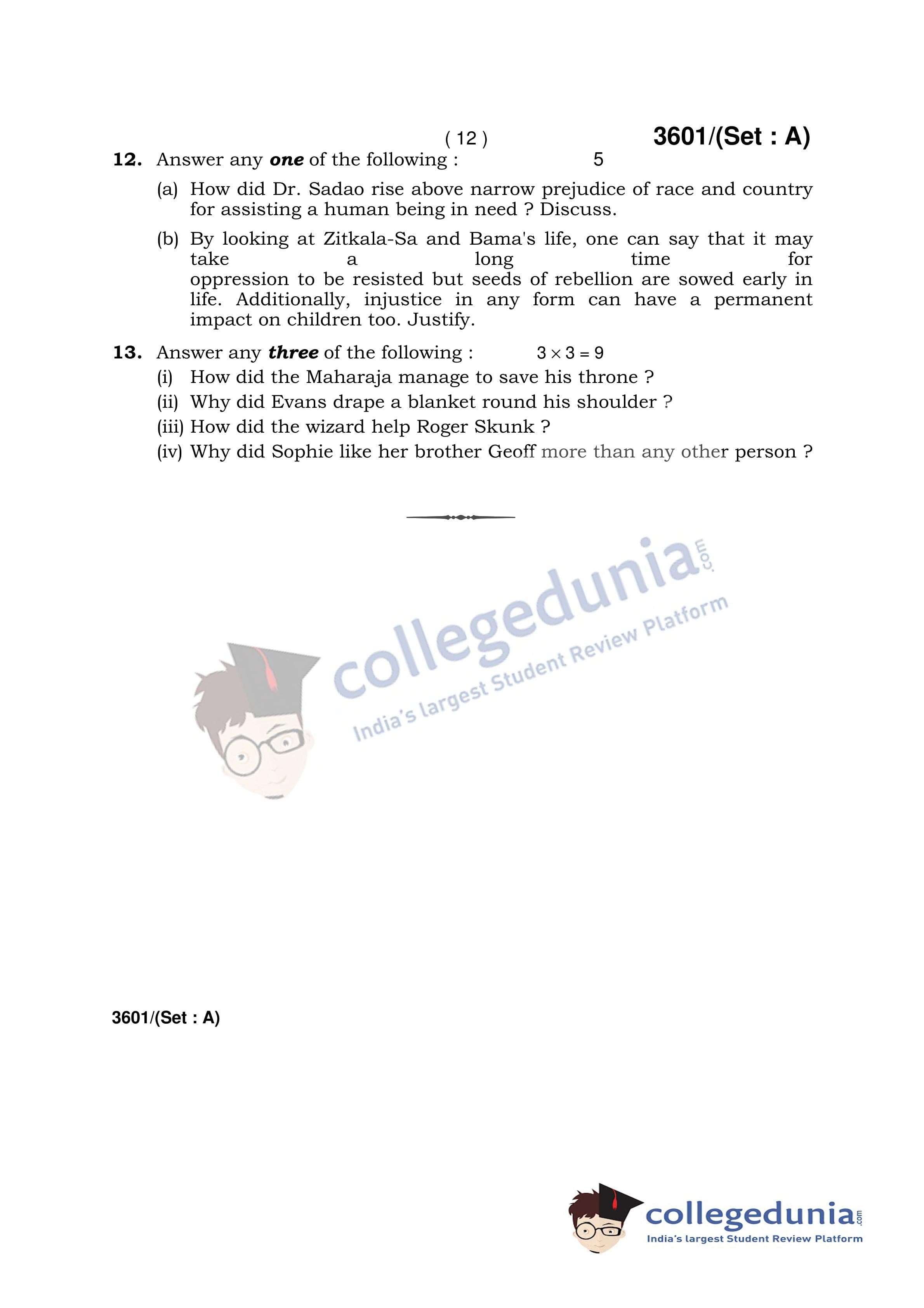 HBSE Class 12 English (Core) Set A Question Paper 2018 with Answer Key (March 7)
