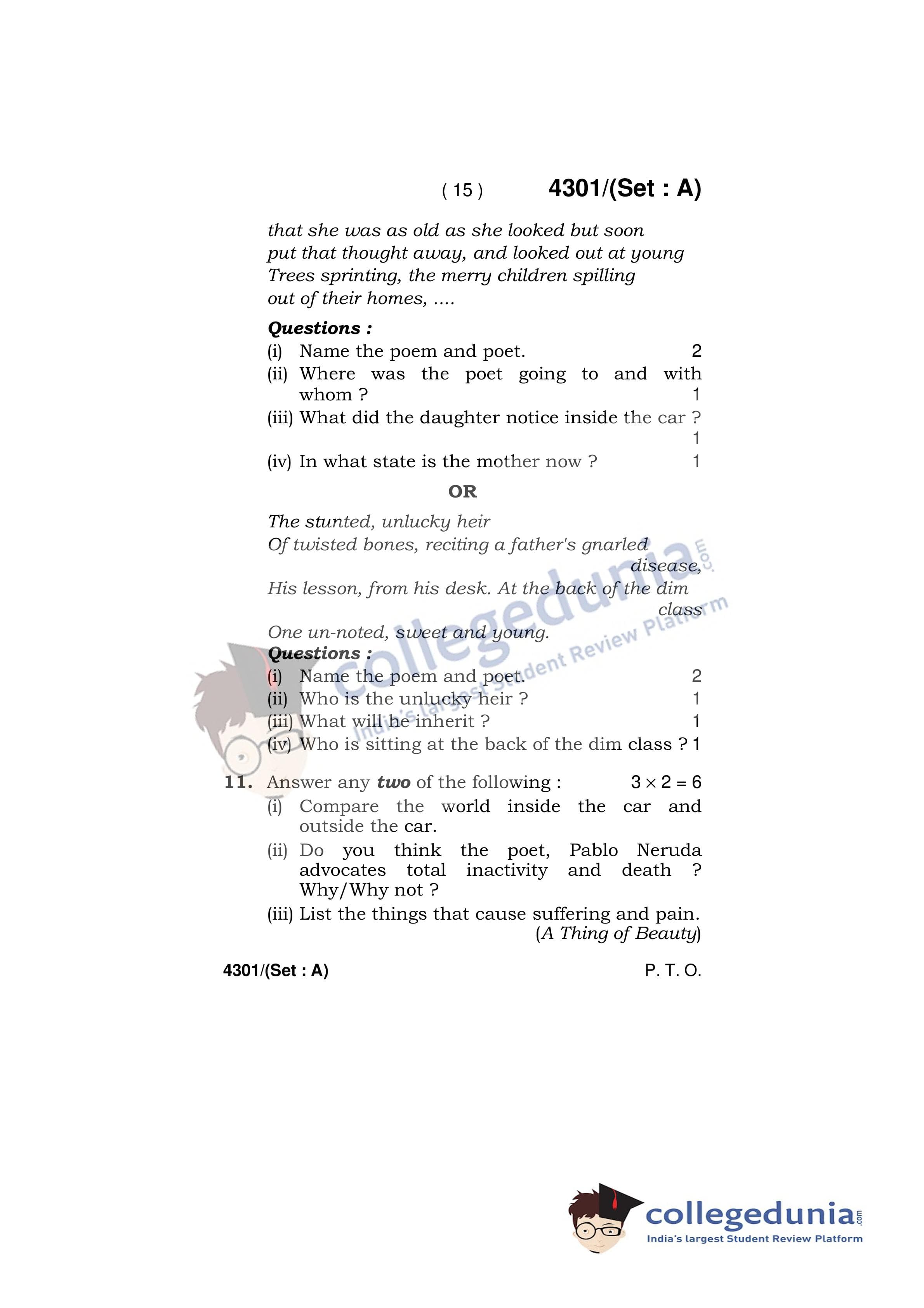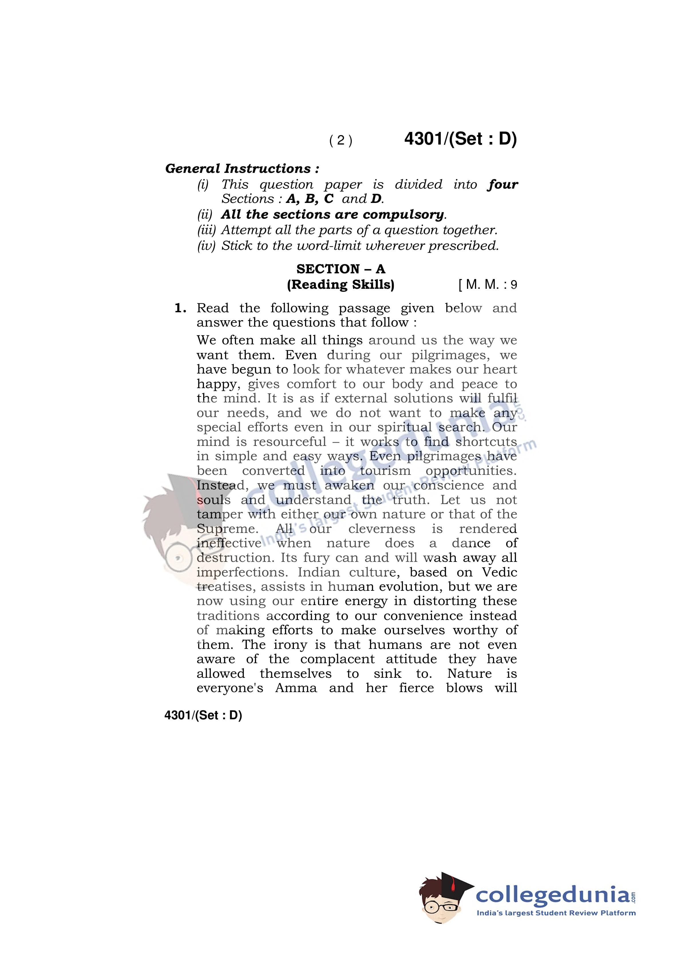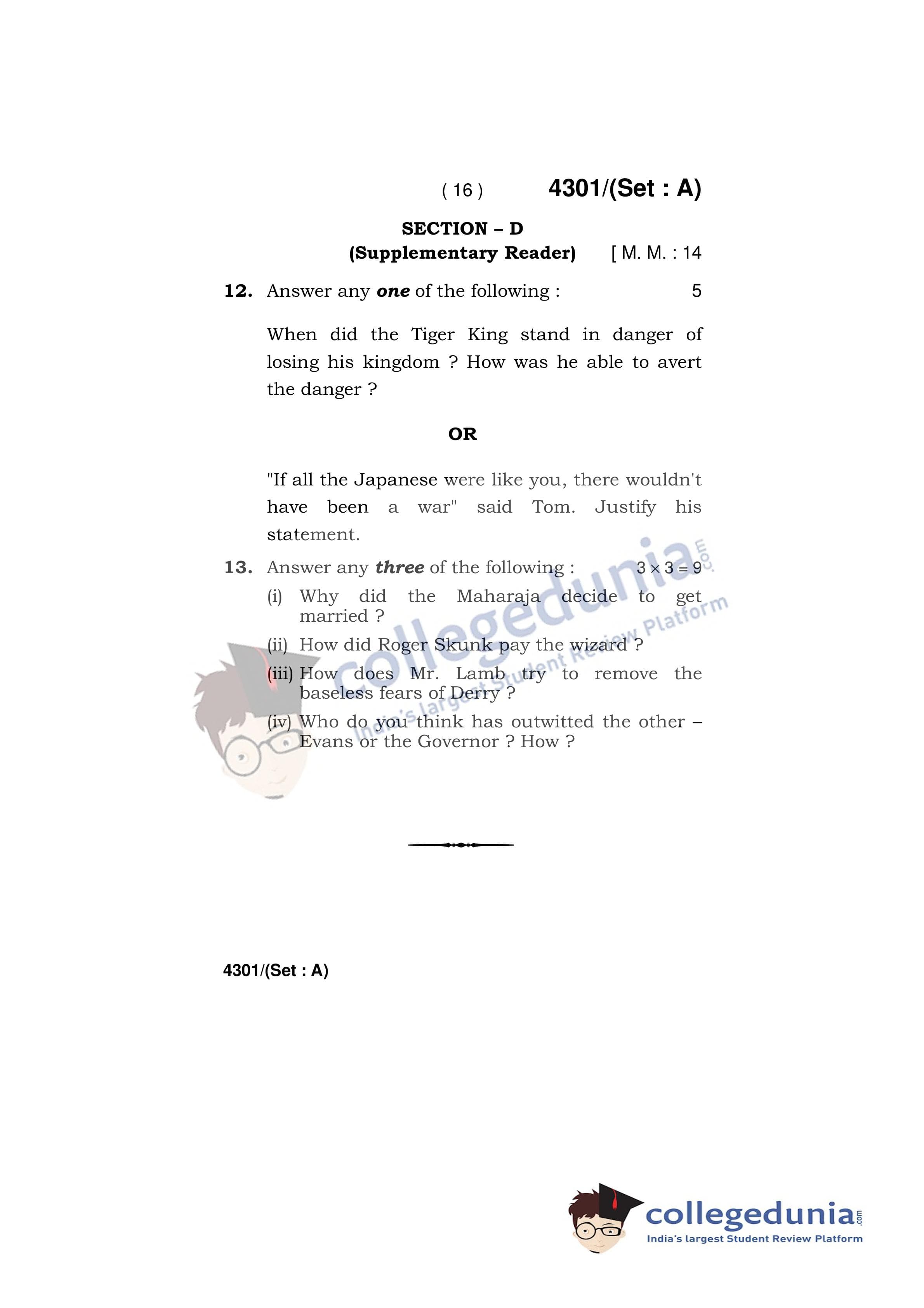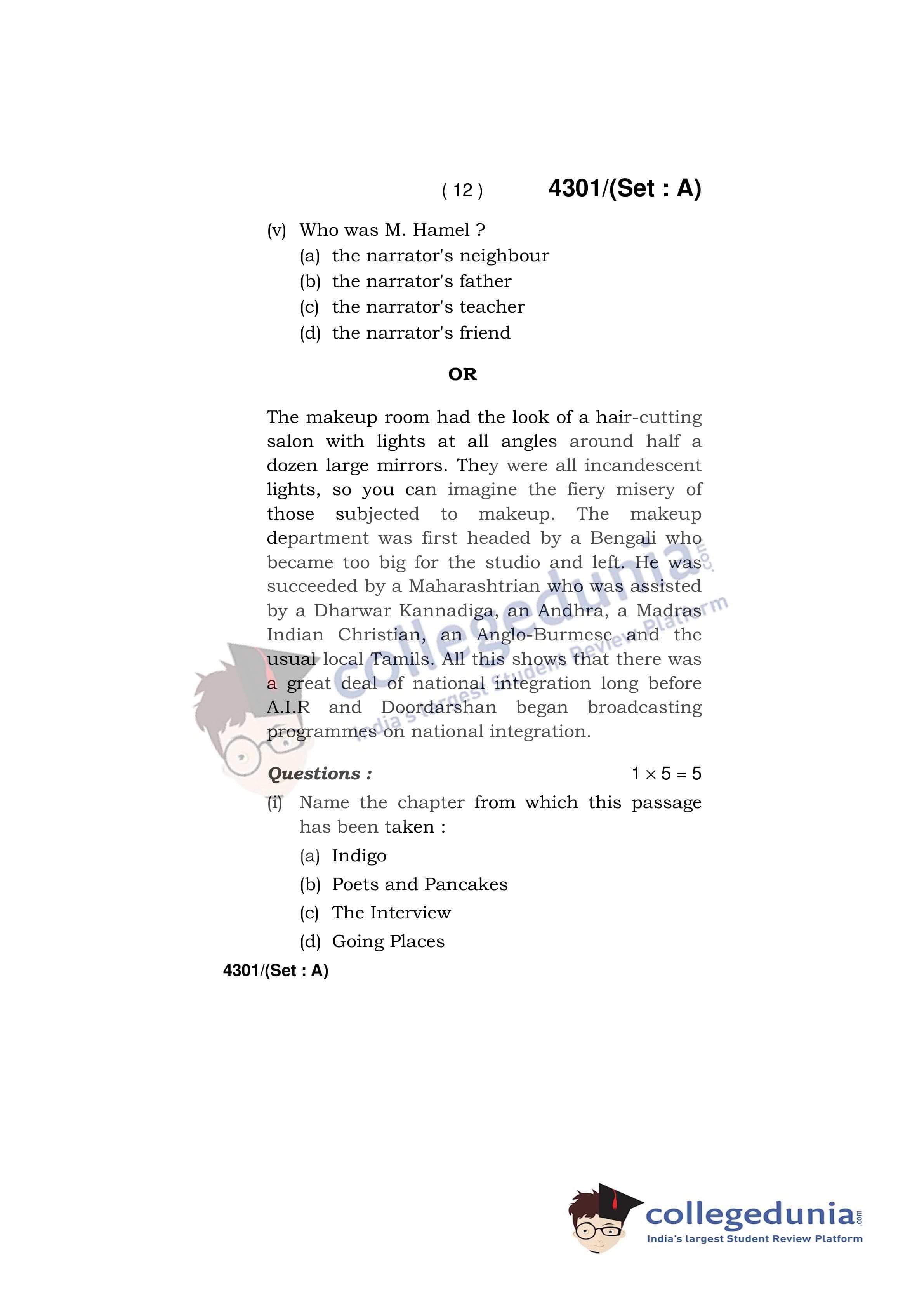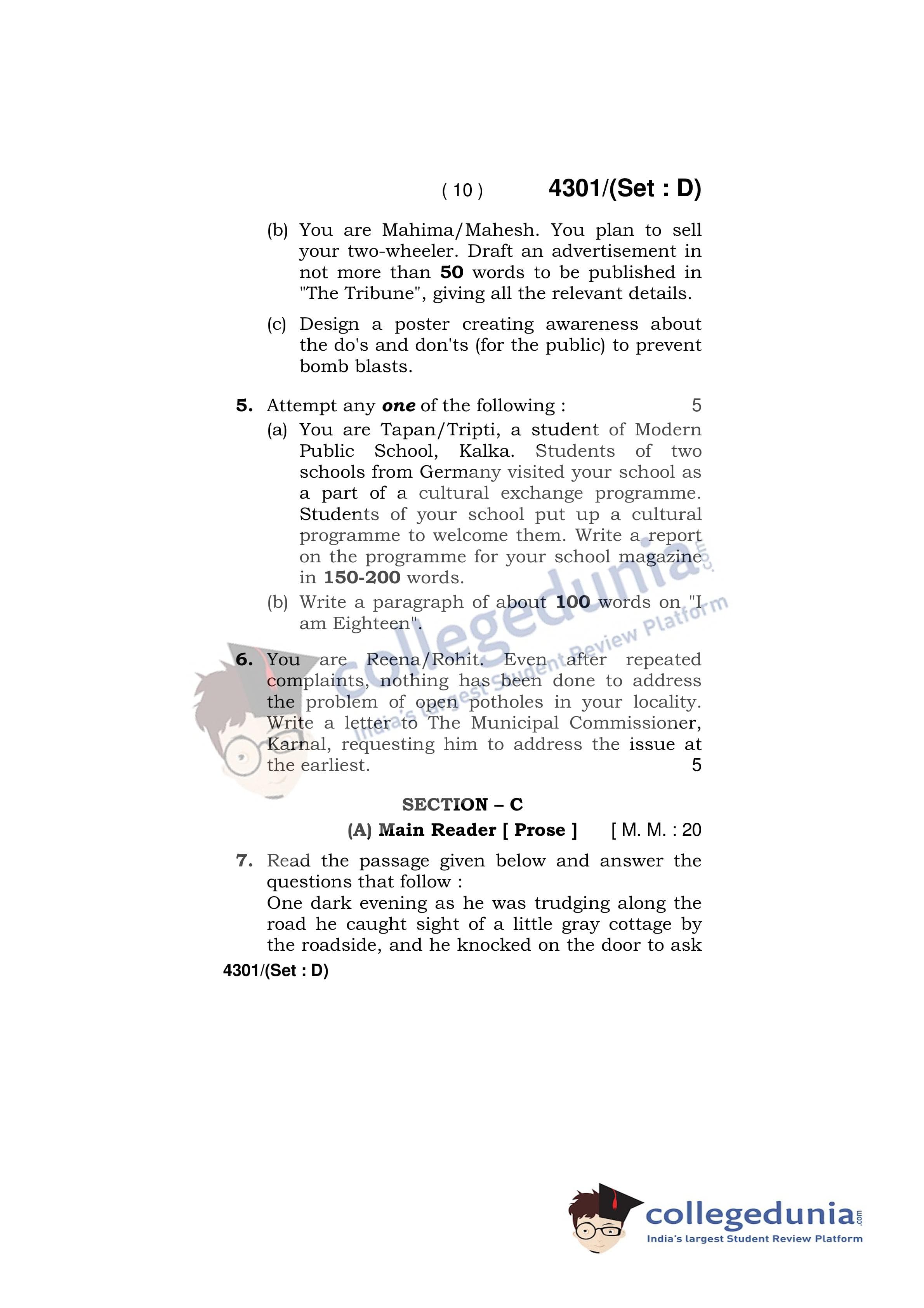 HBSE Class 12 English Core Question Paper 2019 with Answer Key (March 7)