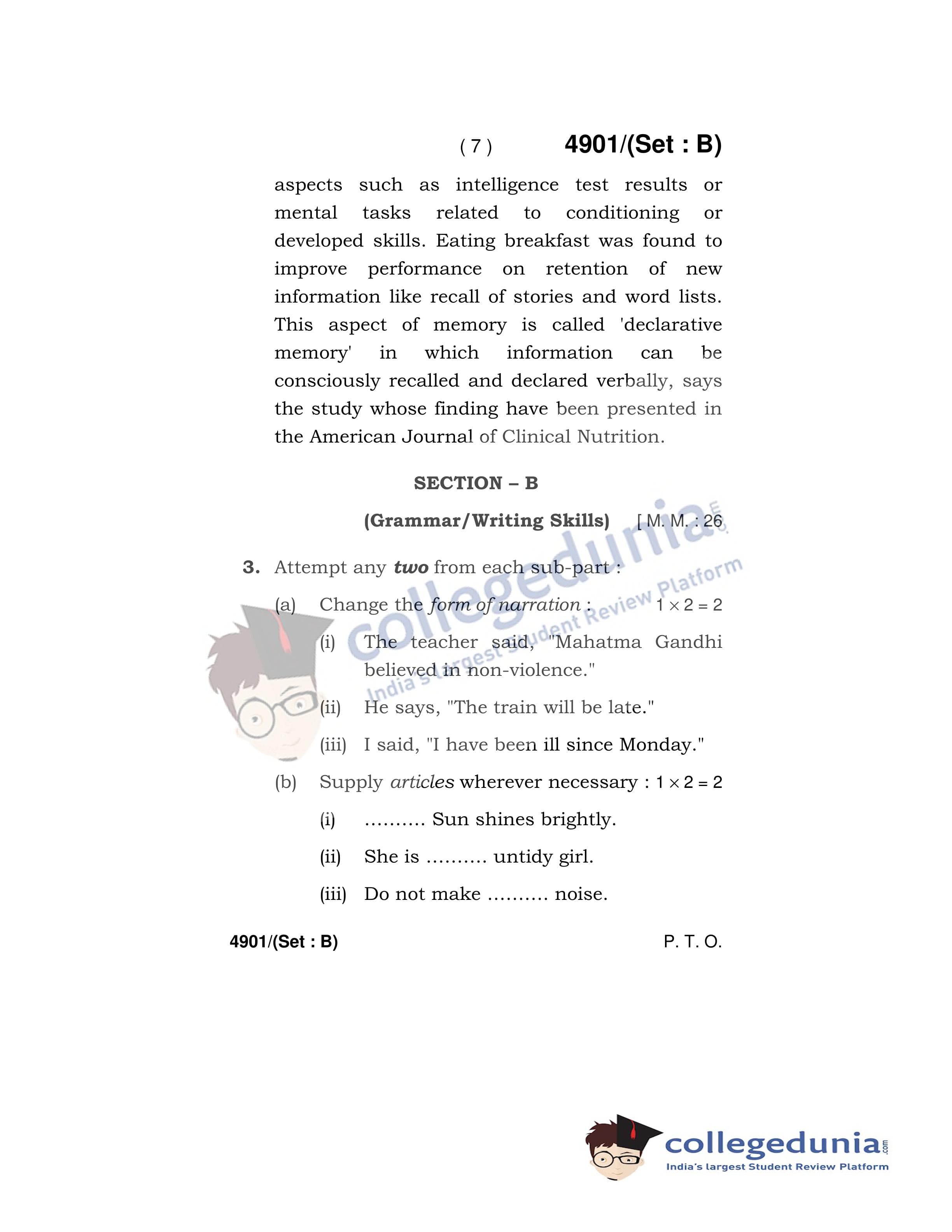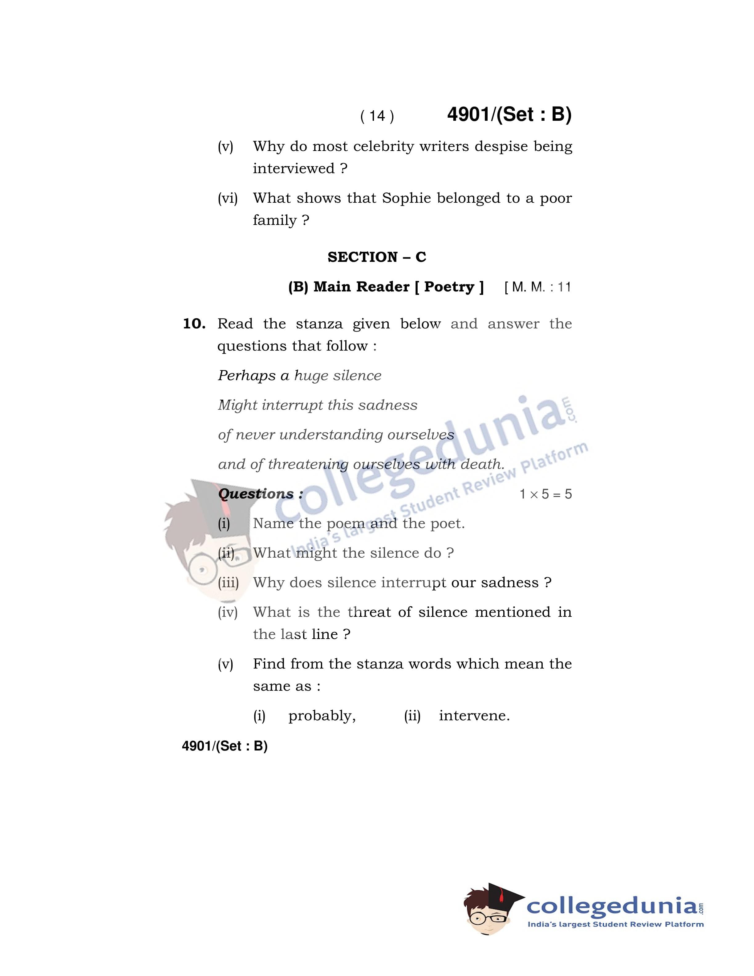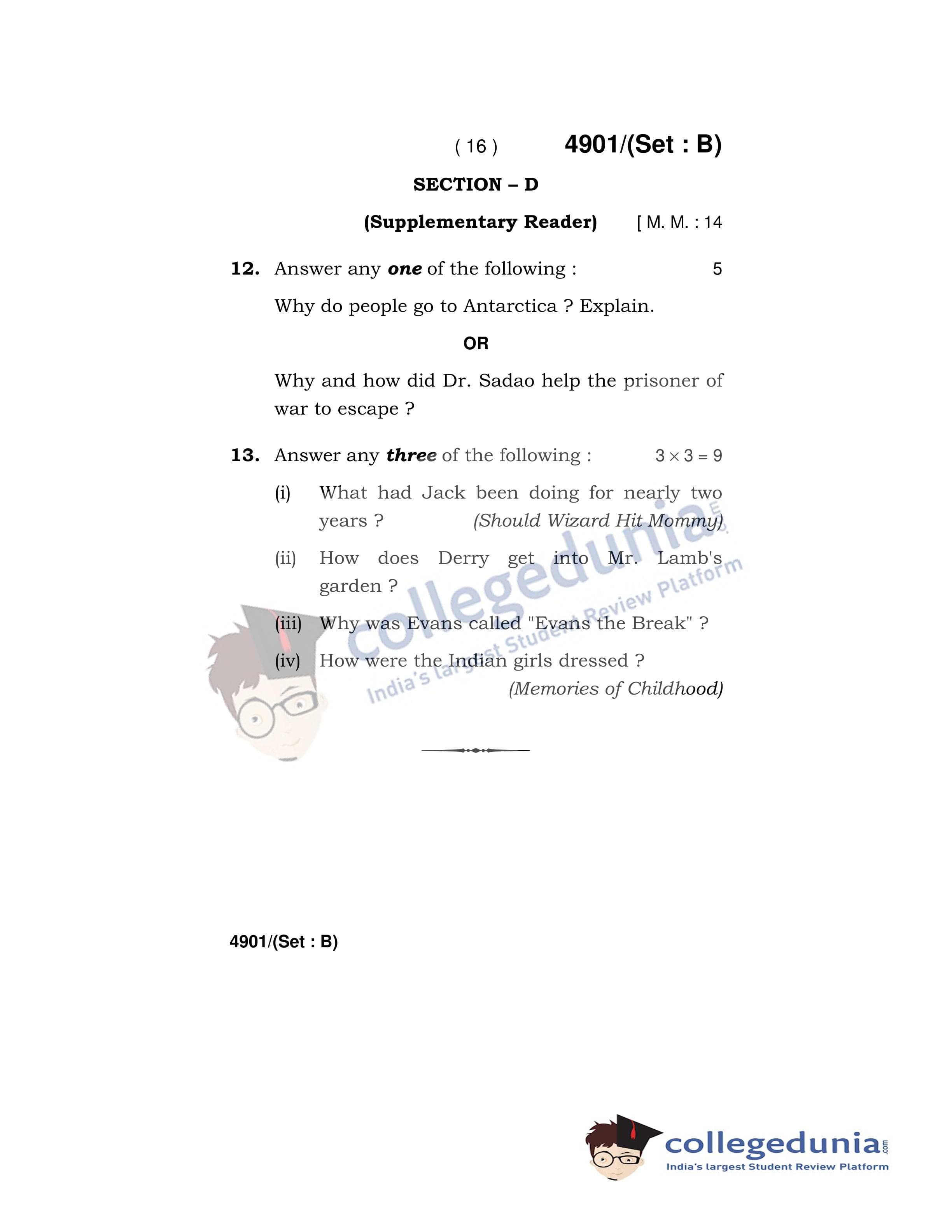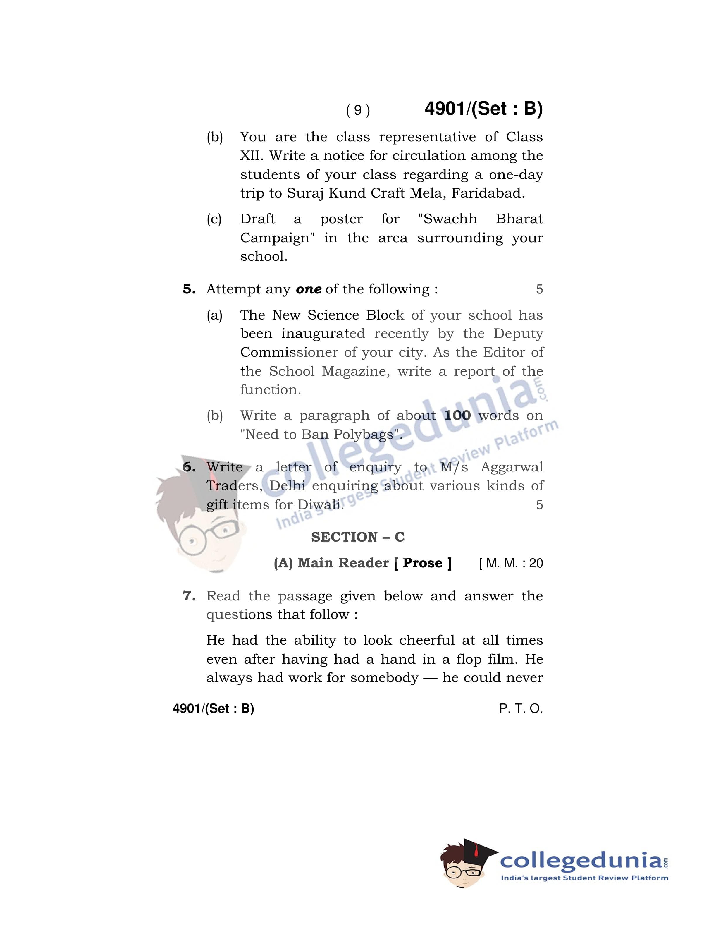HBSE Class 12 English Core Set B Question Paper 2020 with Answer Key (March 16)