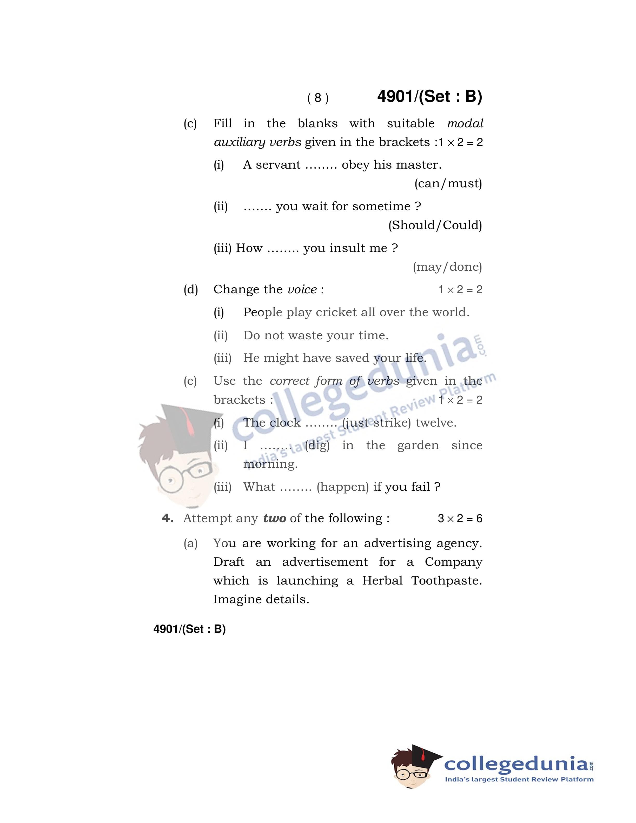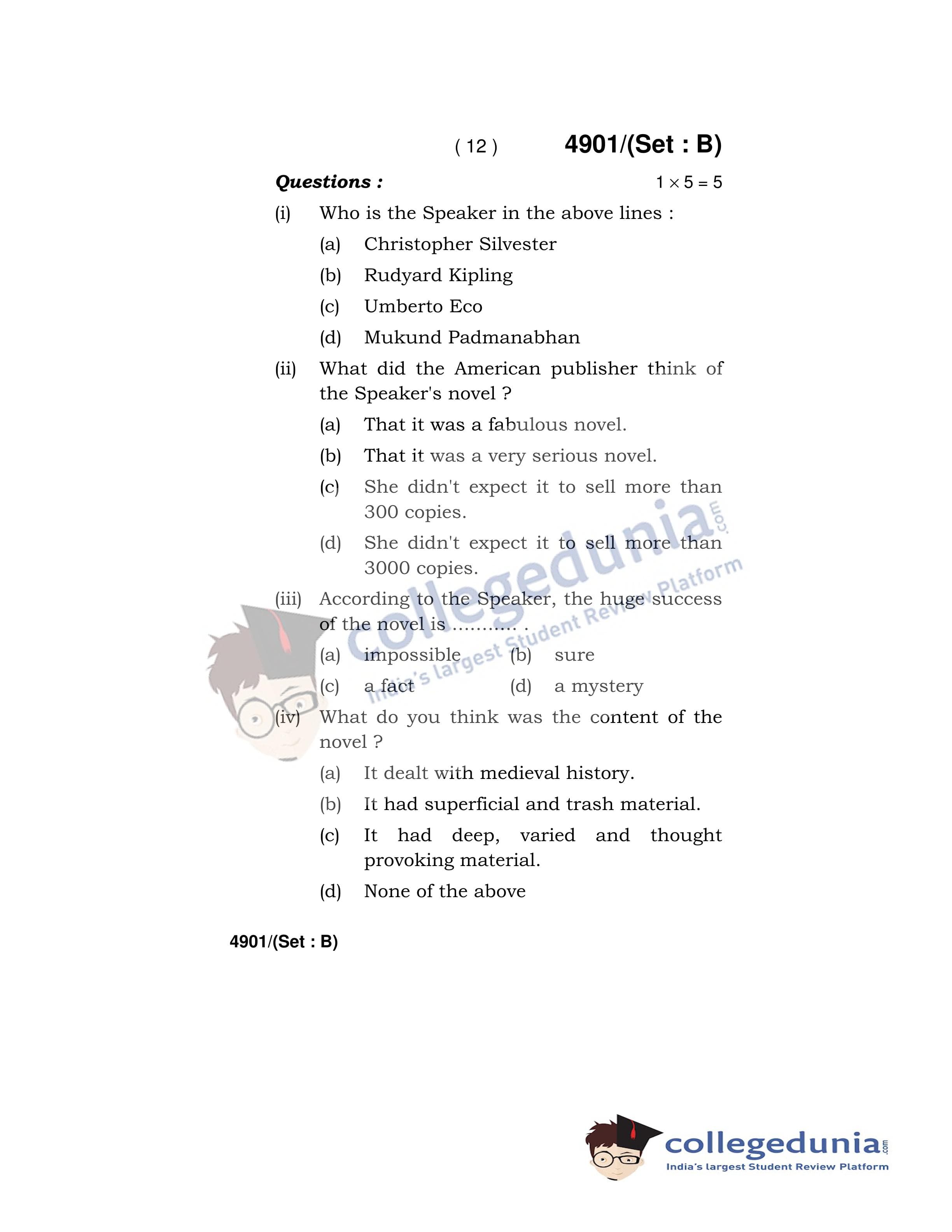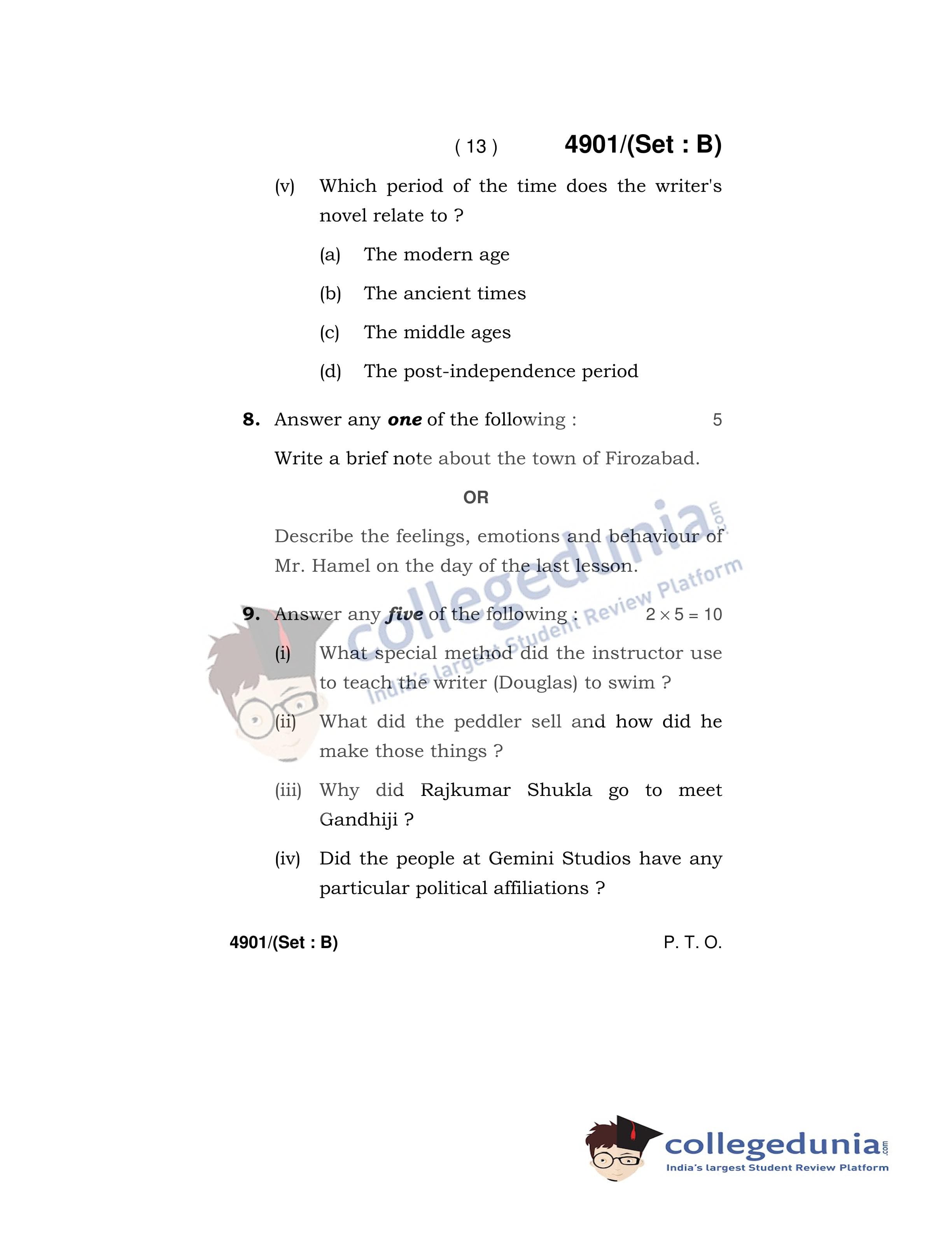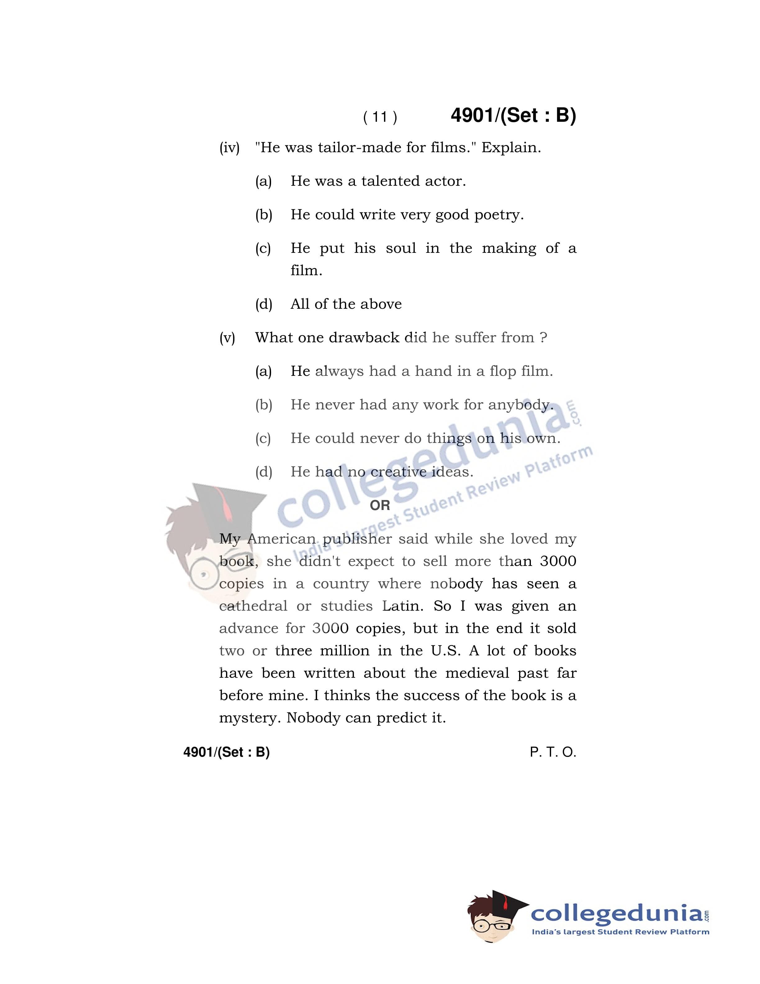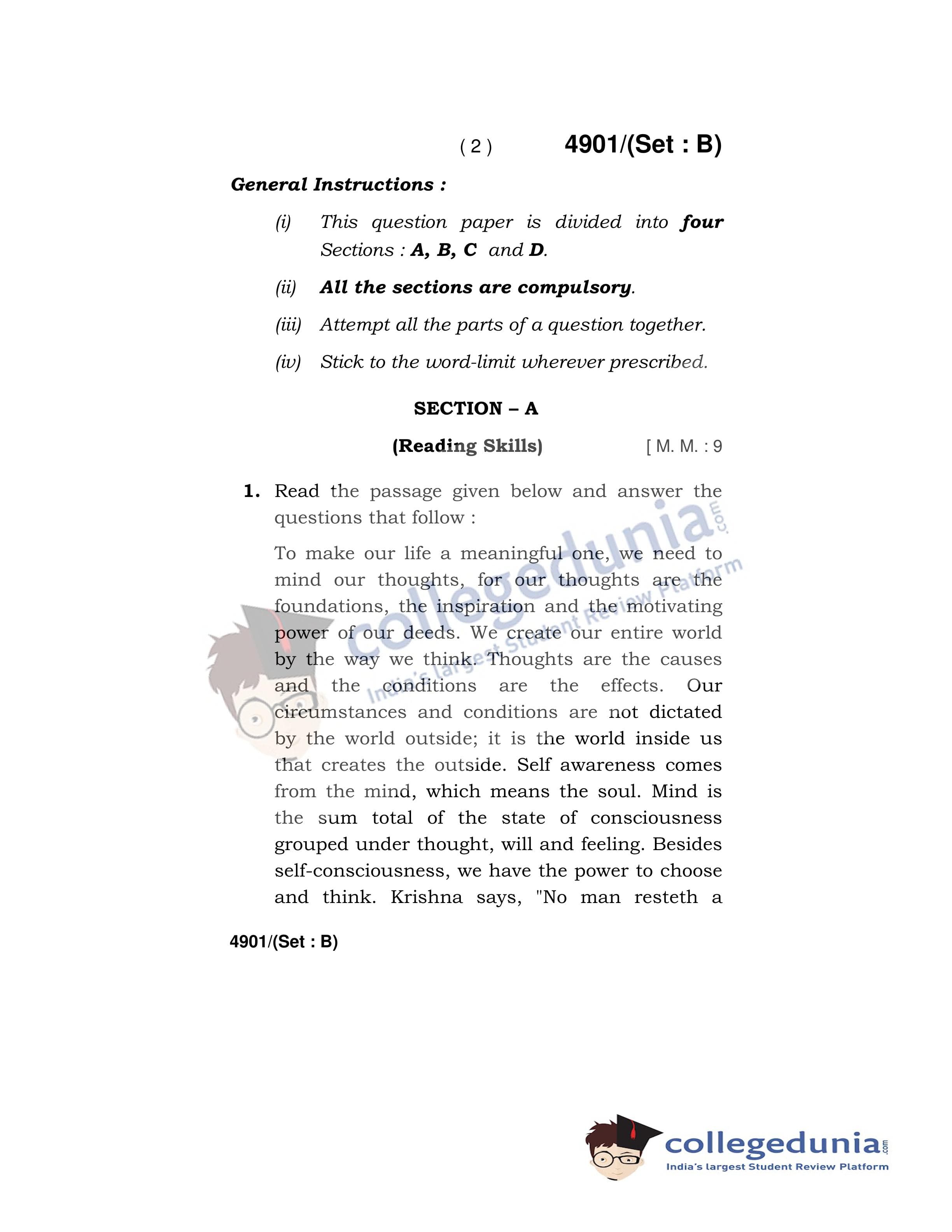 HBSE Class 12 English Core Set B Question Paper 2020 with Answer Key (March 16)