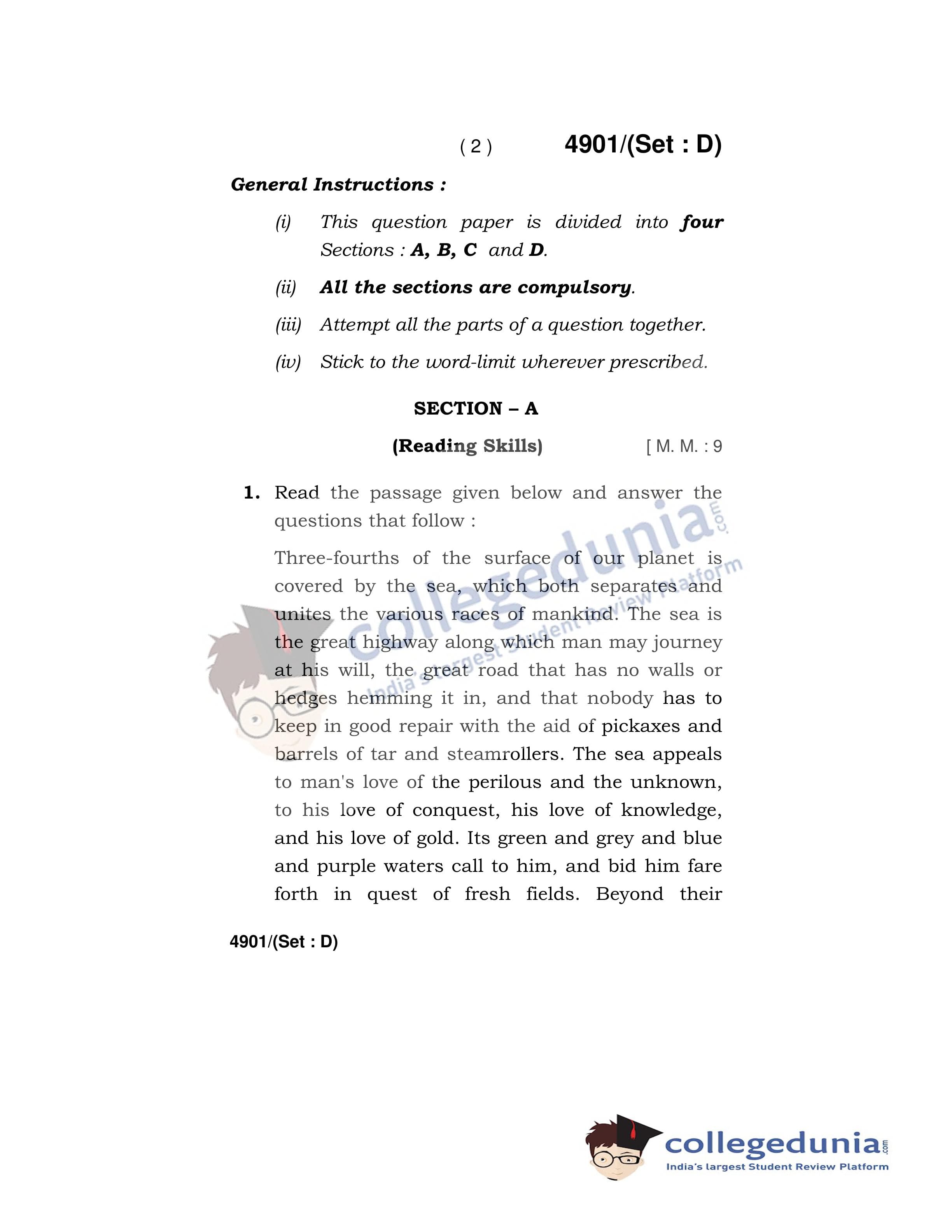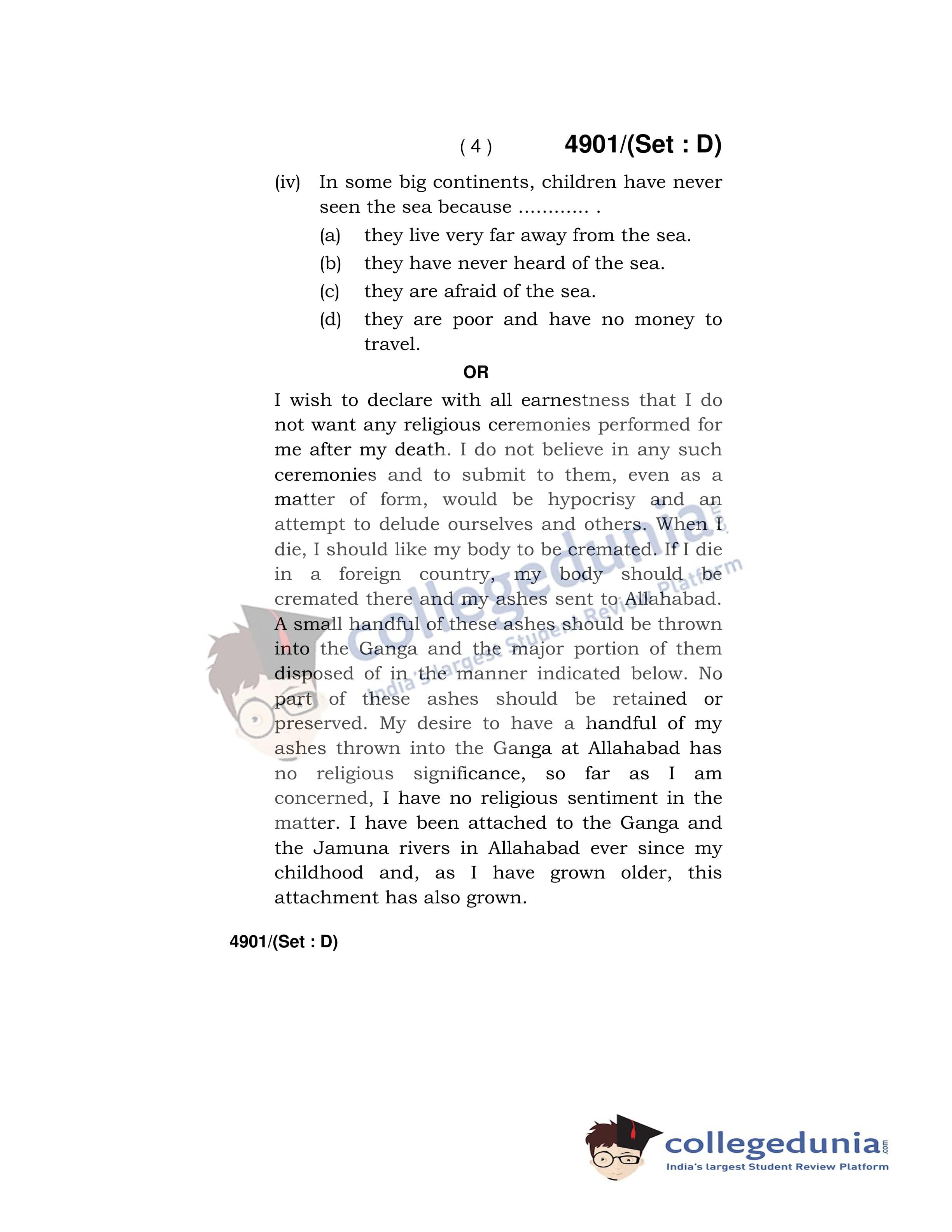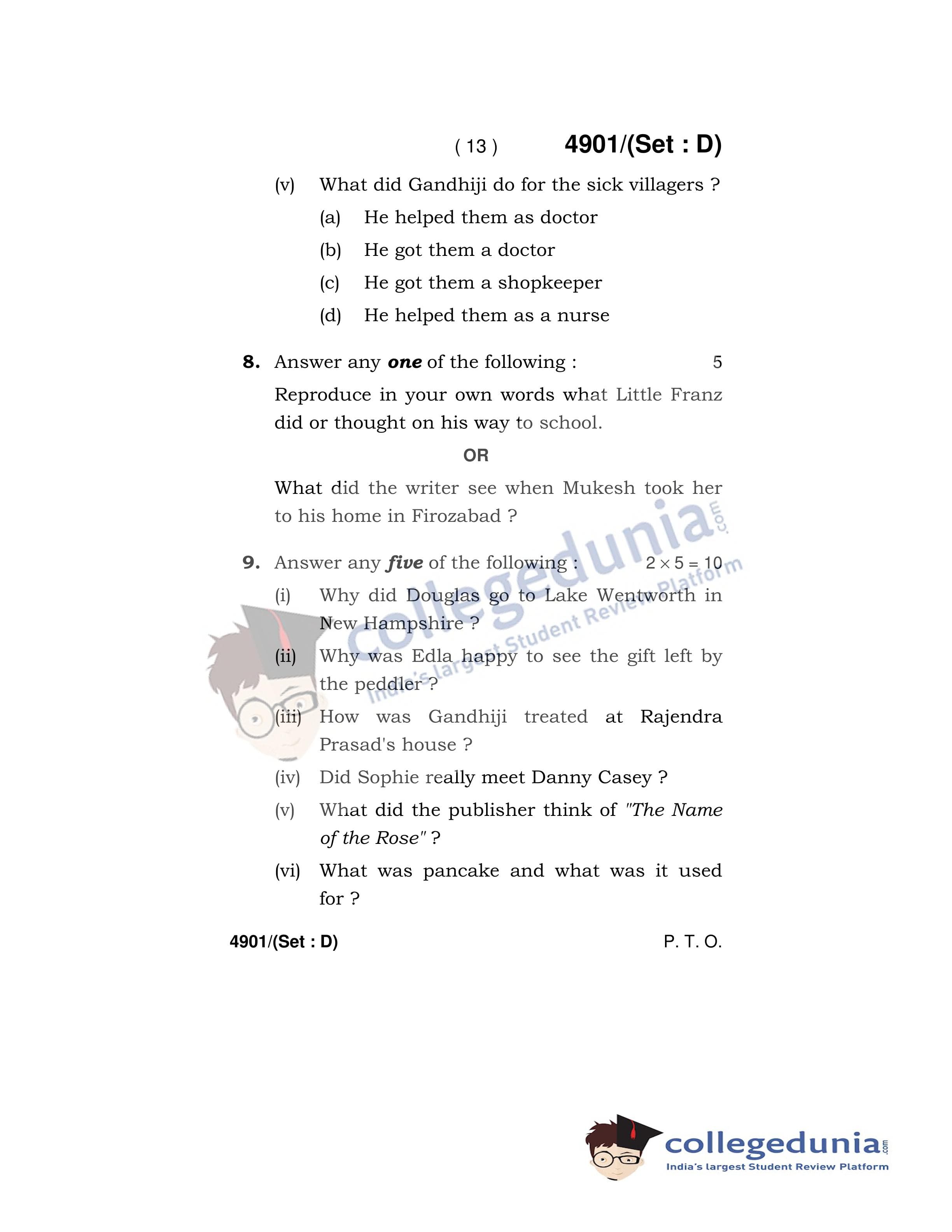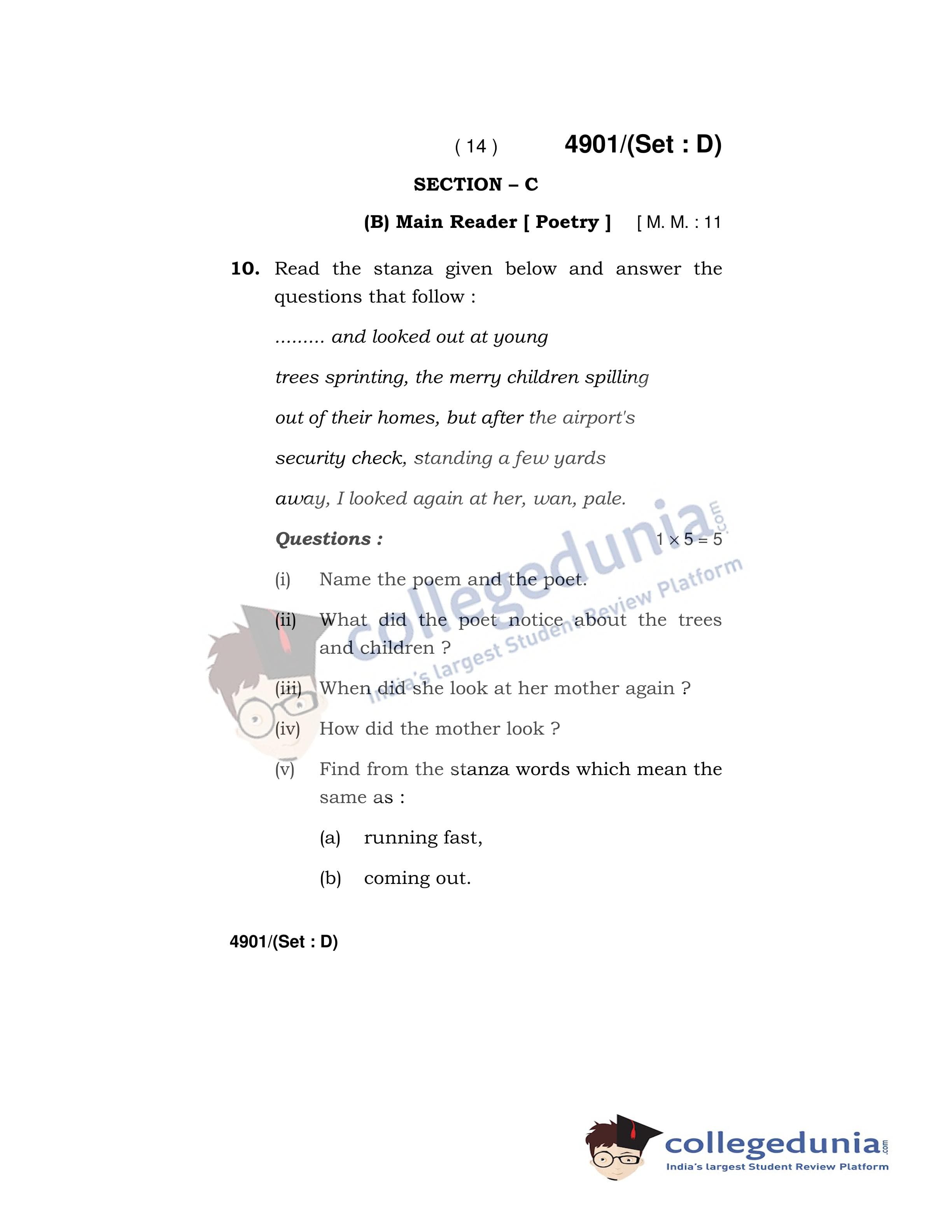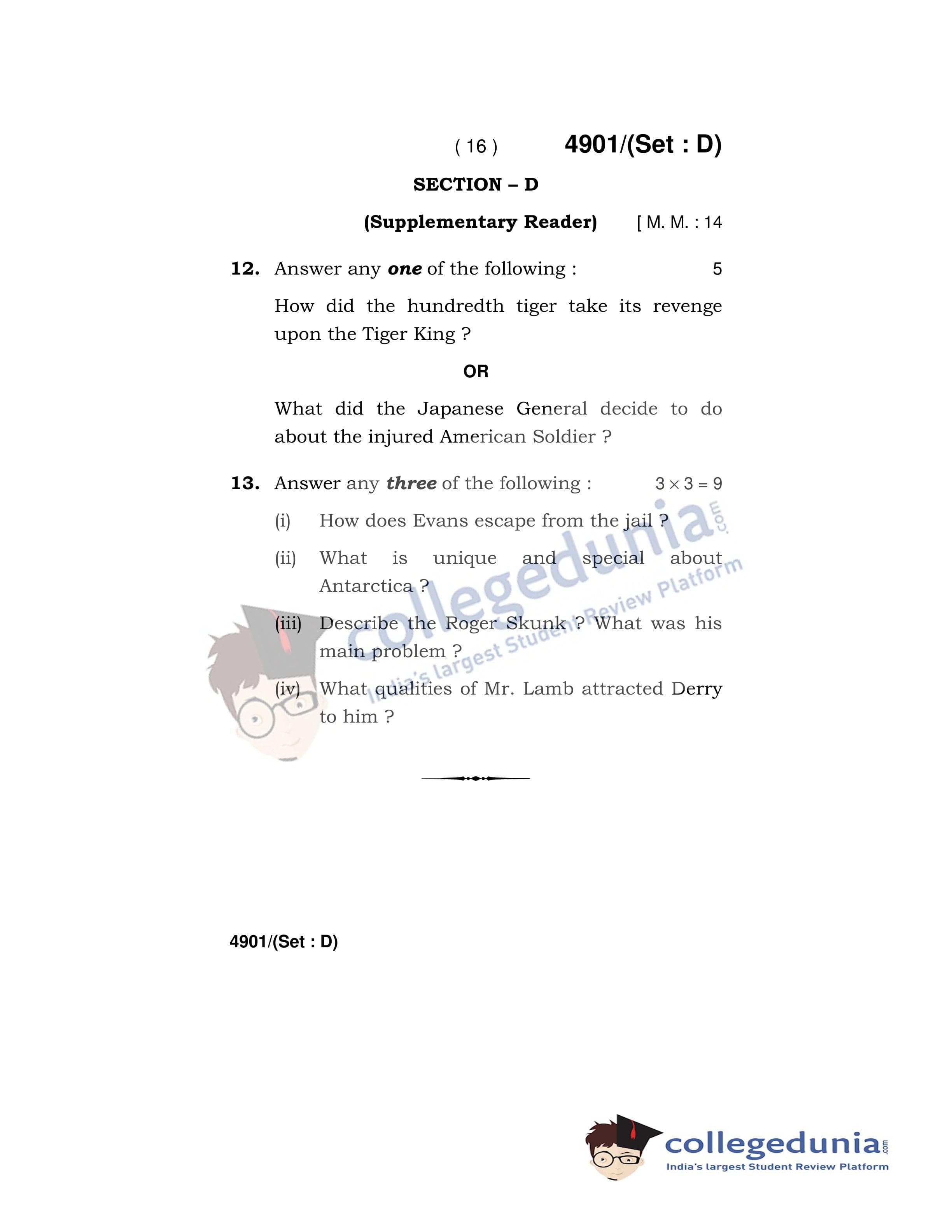 HBSE Class 12 English Core Set D Question Paper 2020 with Answer Key (March 16)