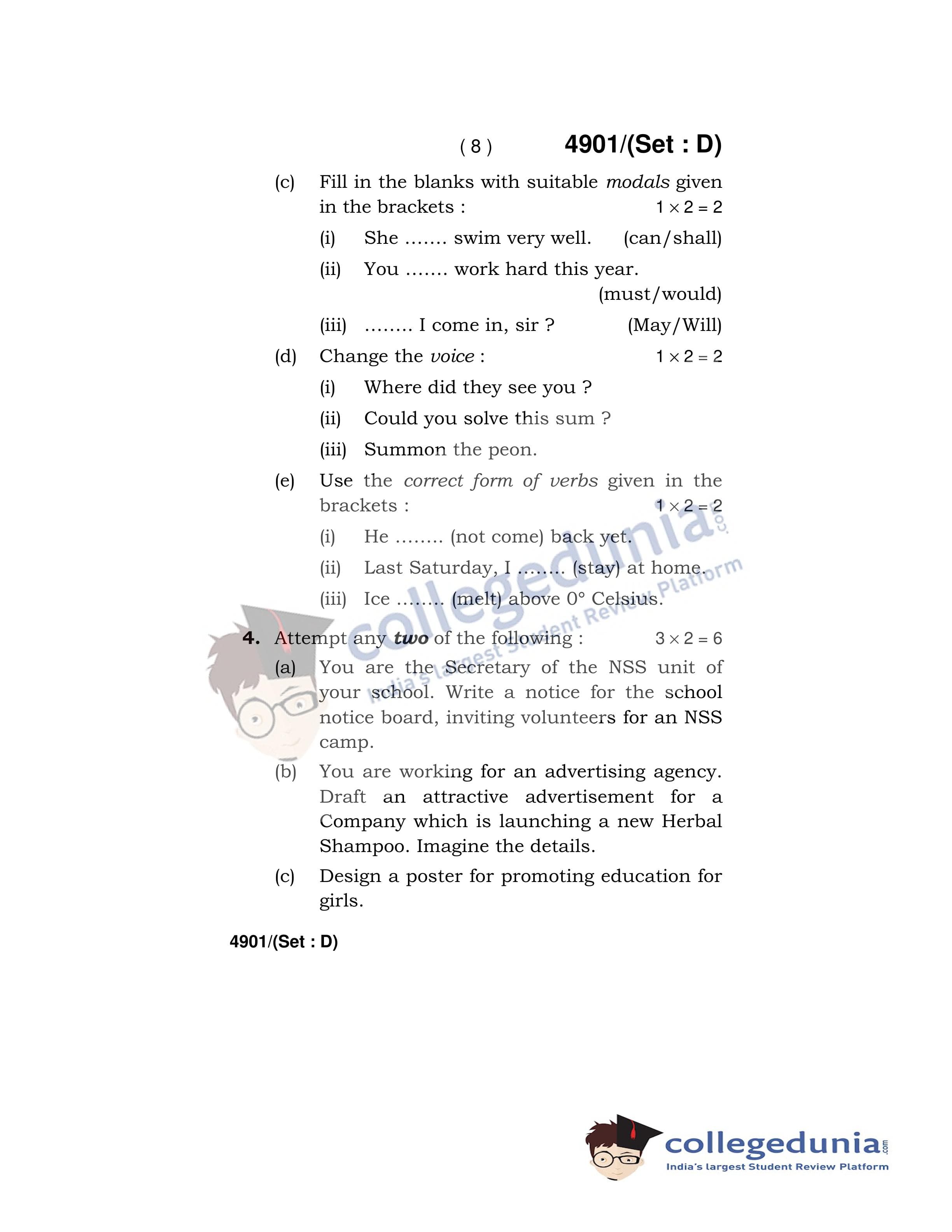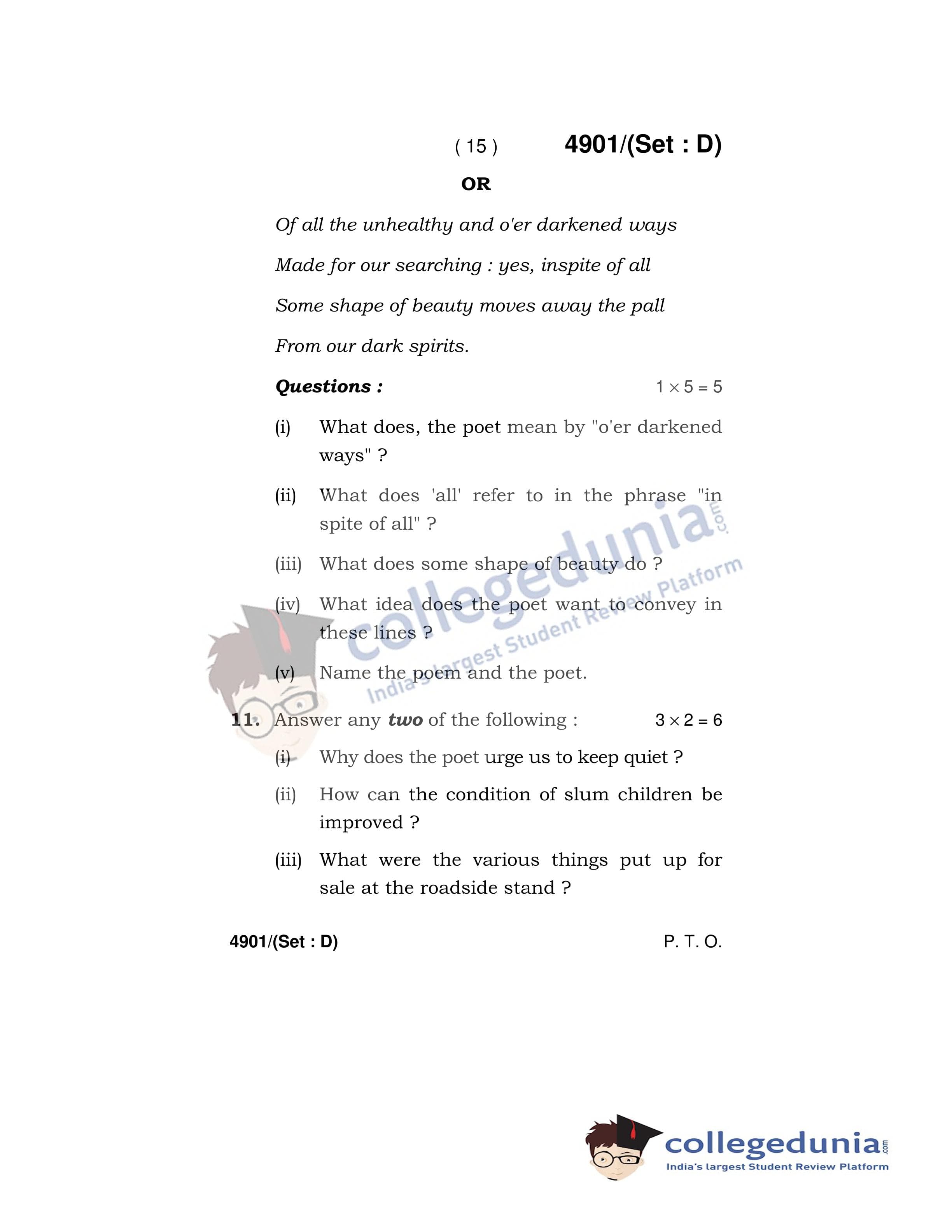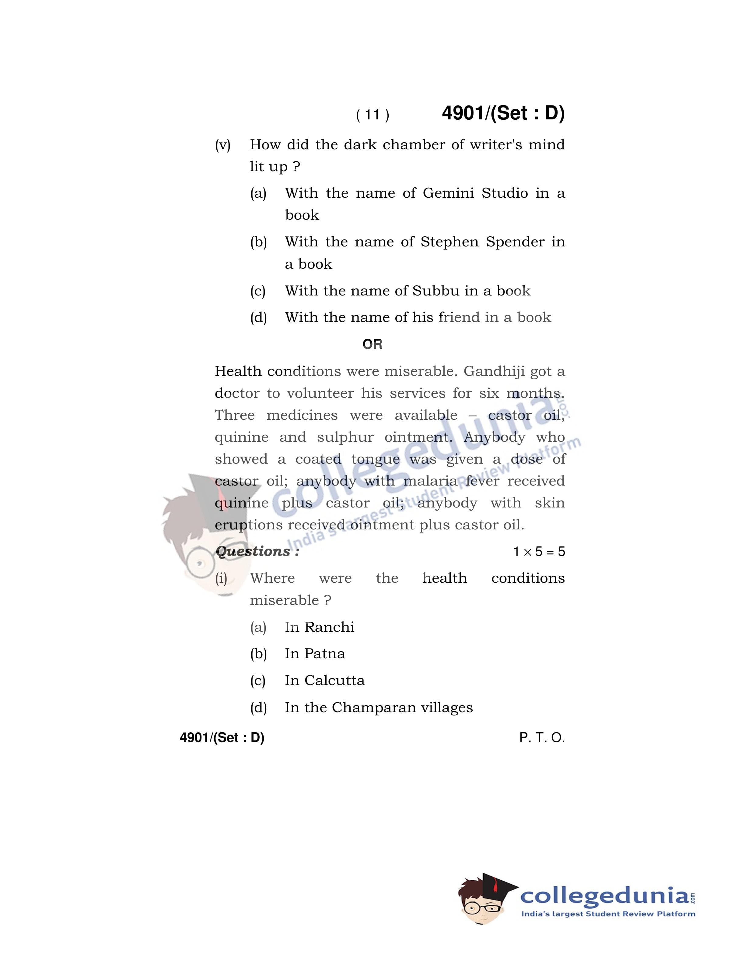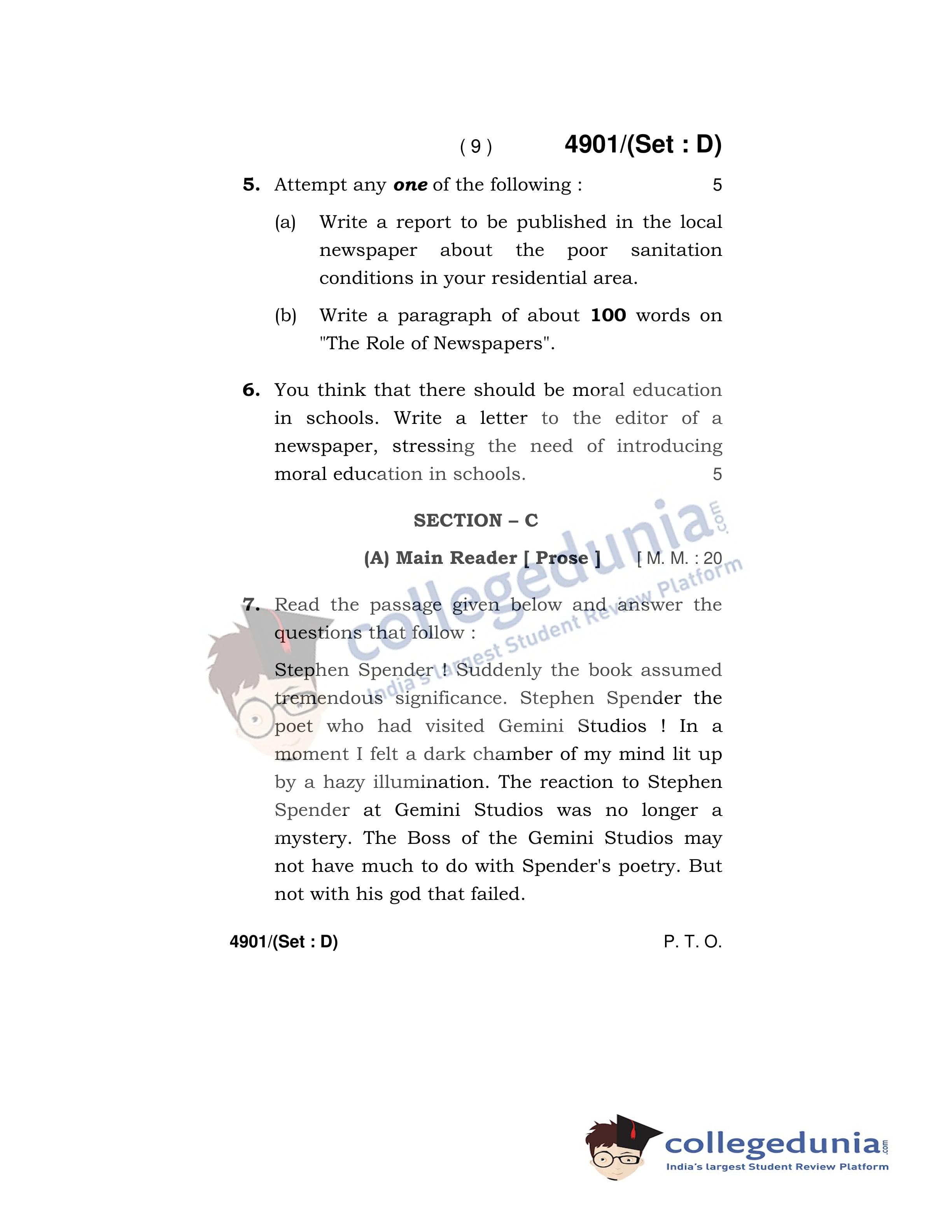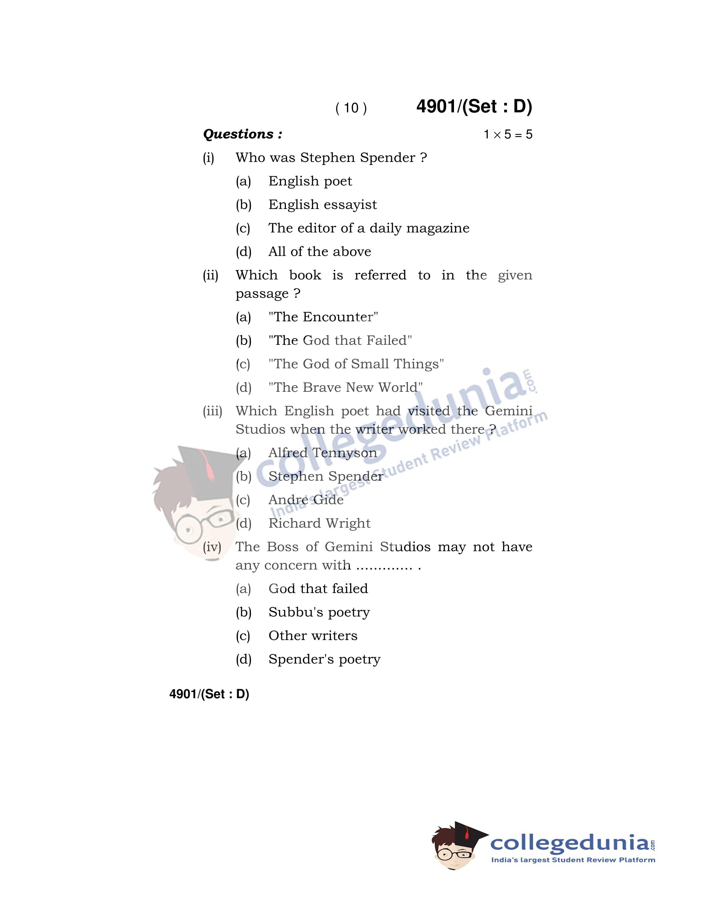 HBSE Class 12 English Core Set D Question Paper 2020 with Answer Key (March 16)