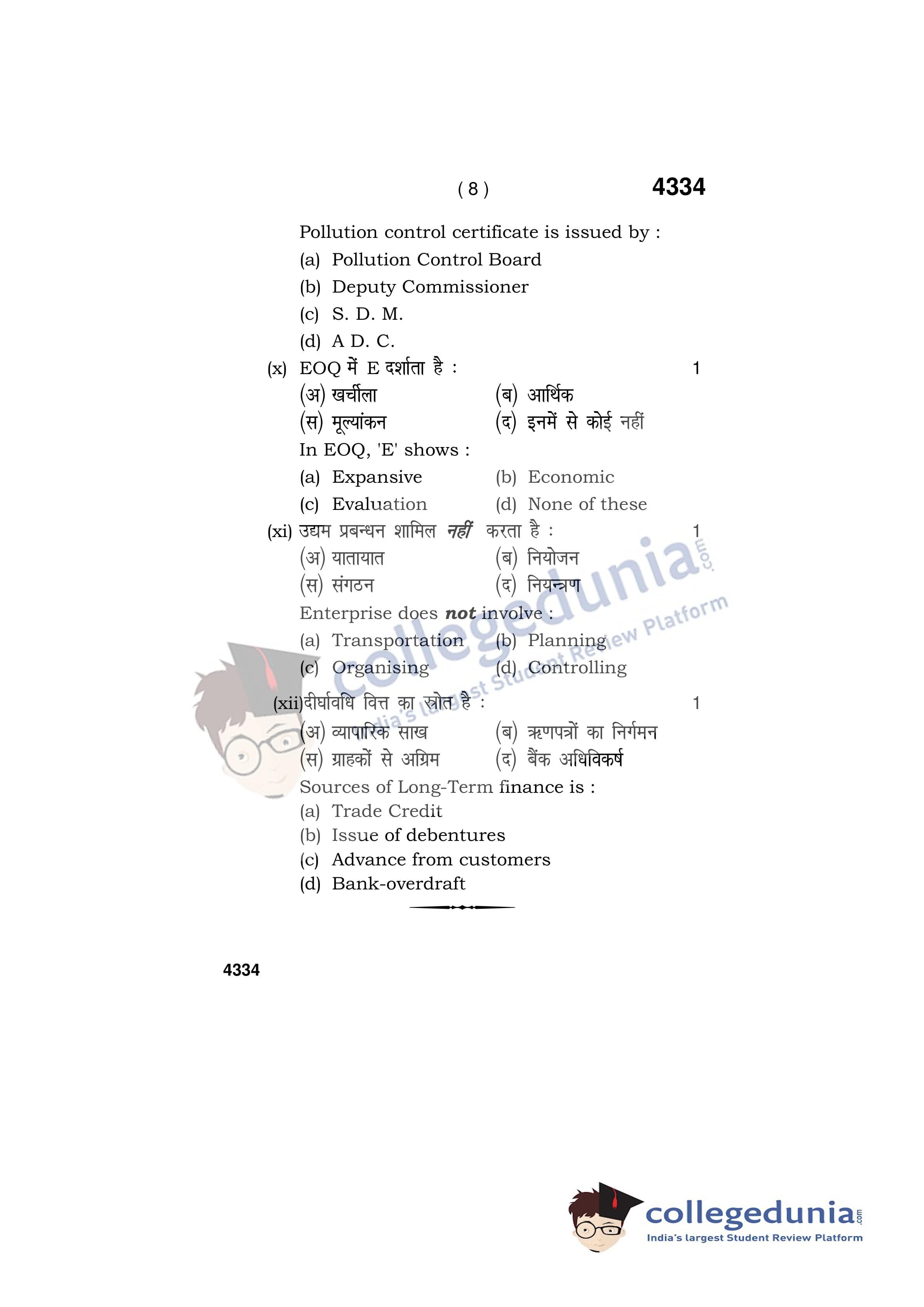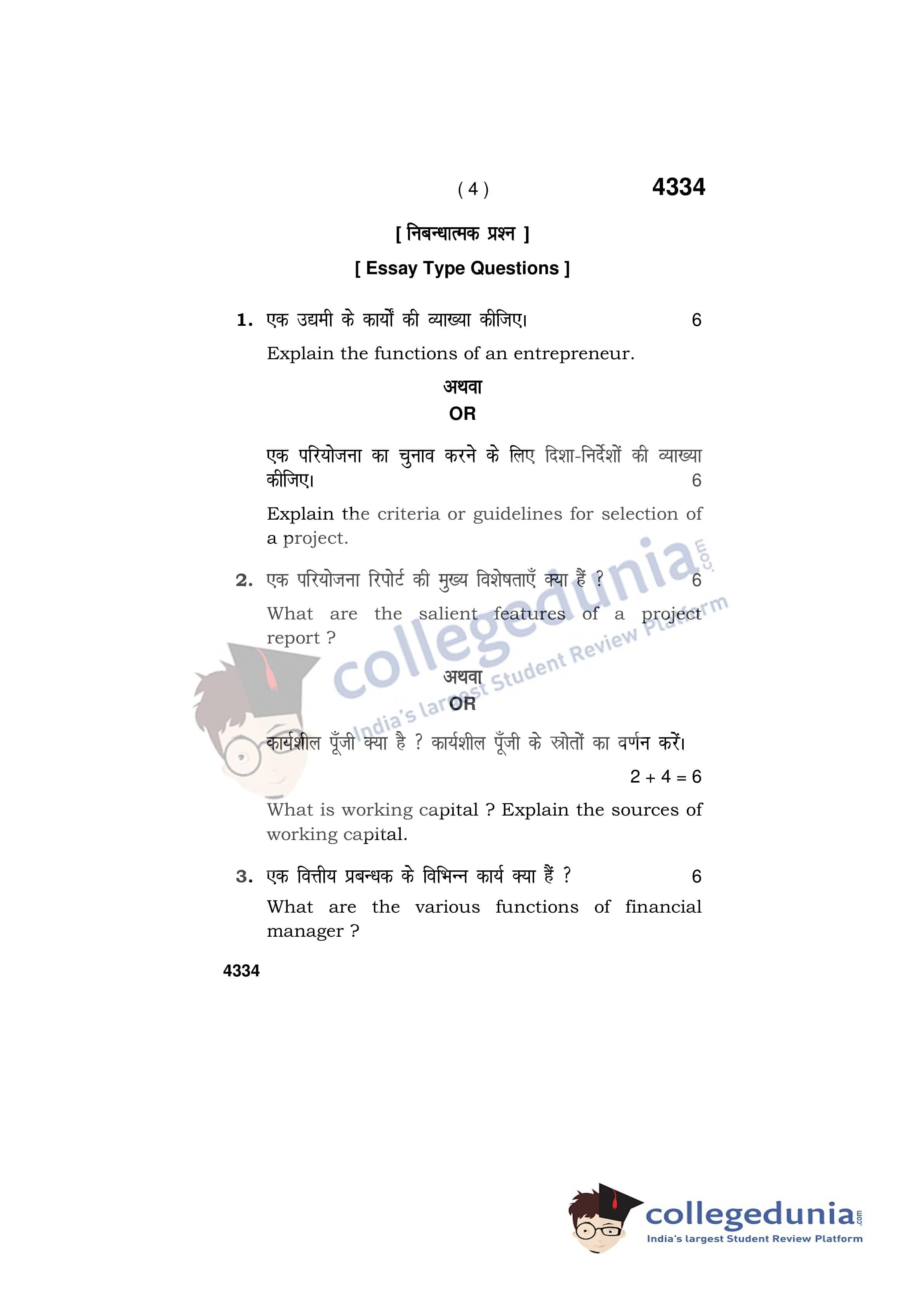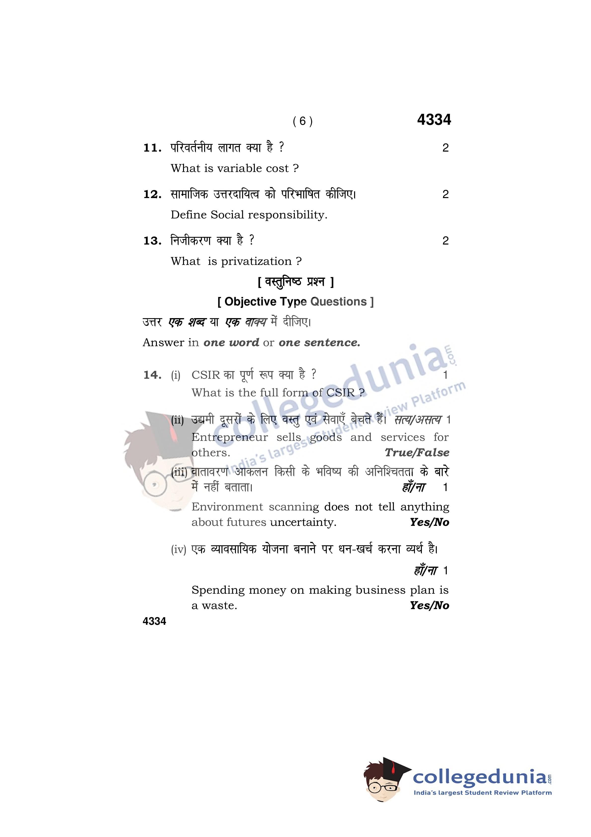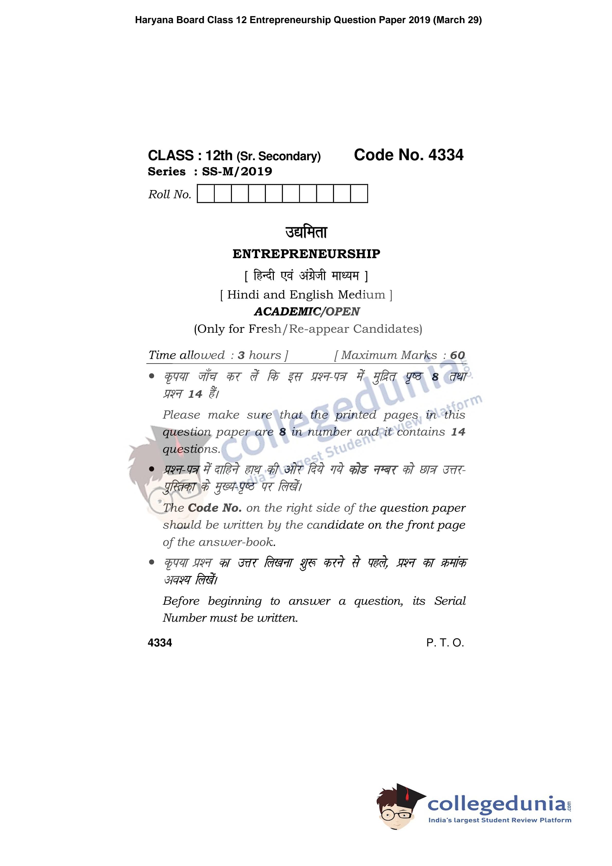 HBSE Class 12 Entrepreneurship Question Paper 2019 with Answer Key (March 29)