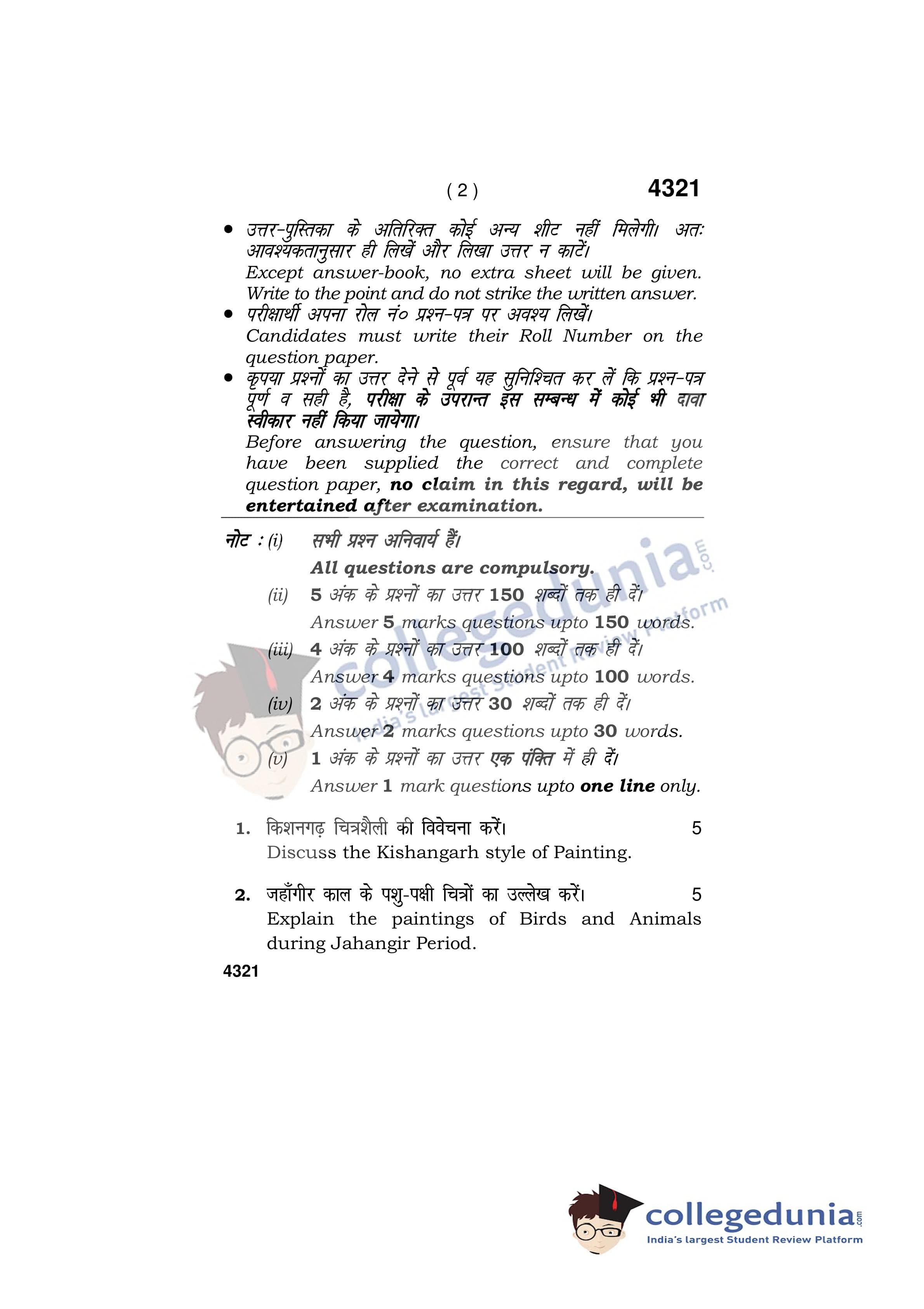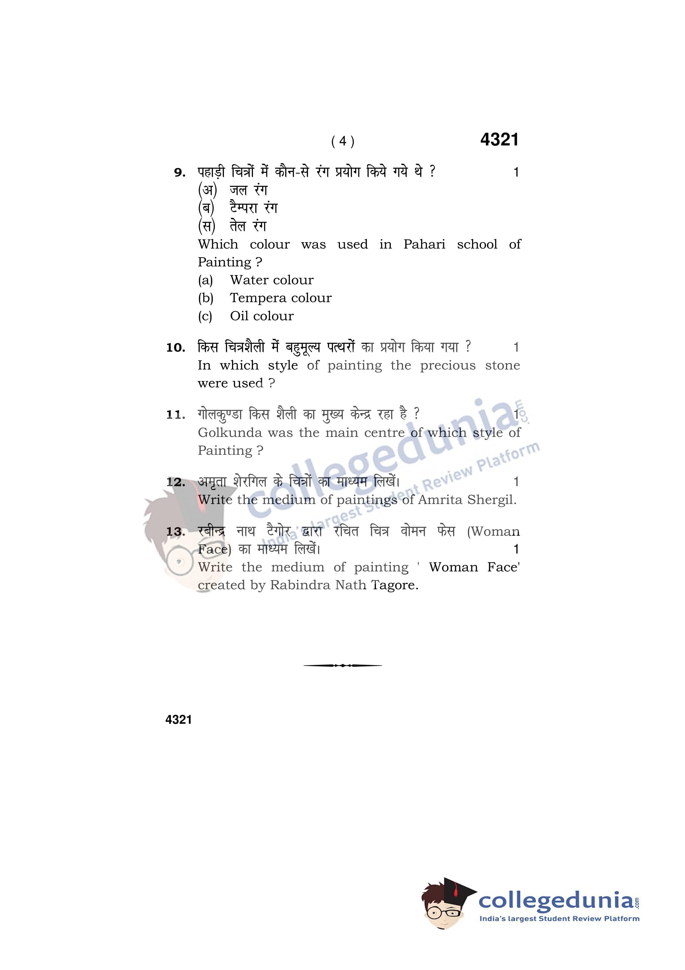 HBSE Class 12 Fine Arts Question Paper 2019 with Answer Key (March 13)