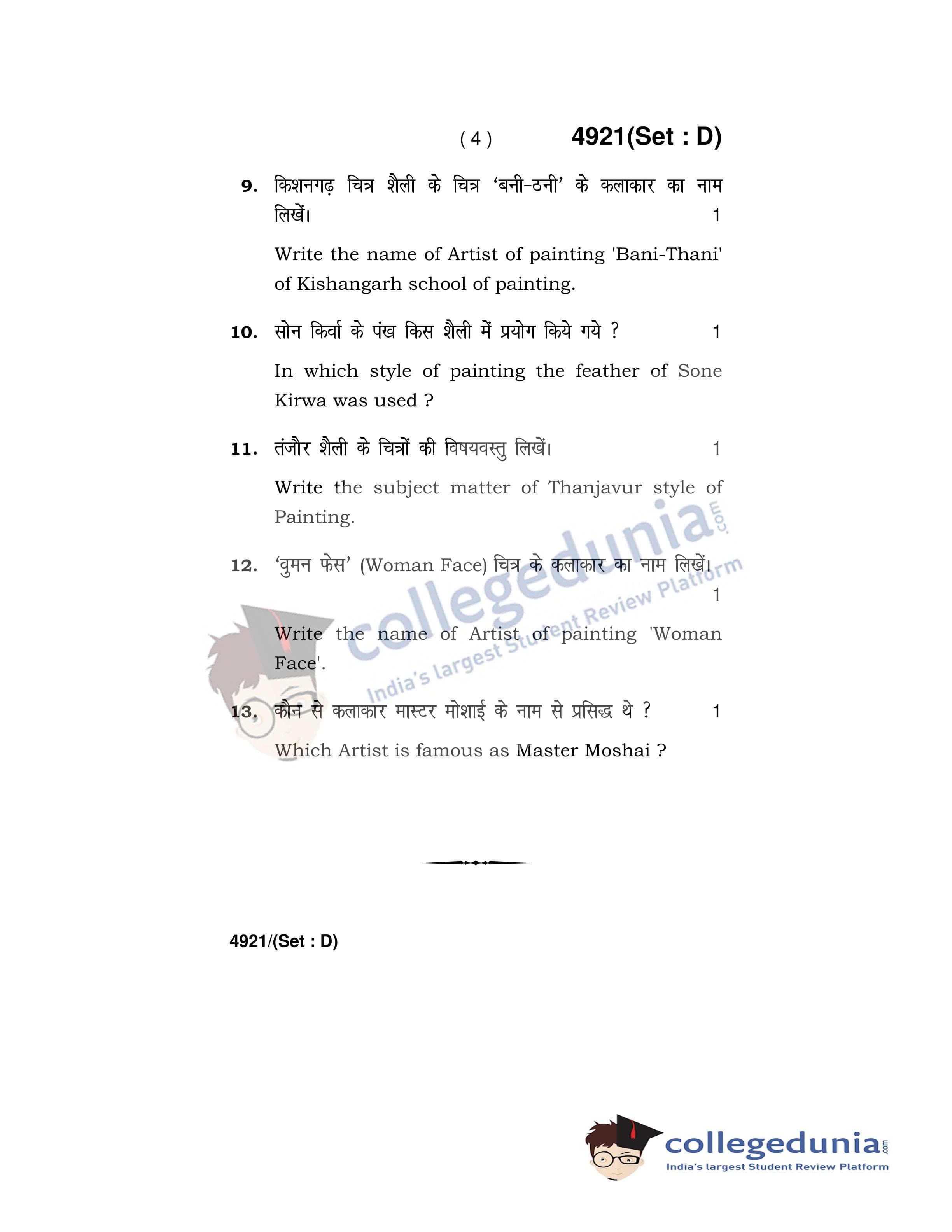 HBSE Class 12 Fine Arts Set D Question Paper 2020 with Answer Key (March 6)