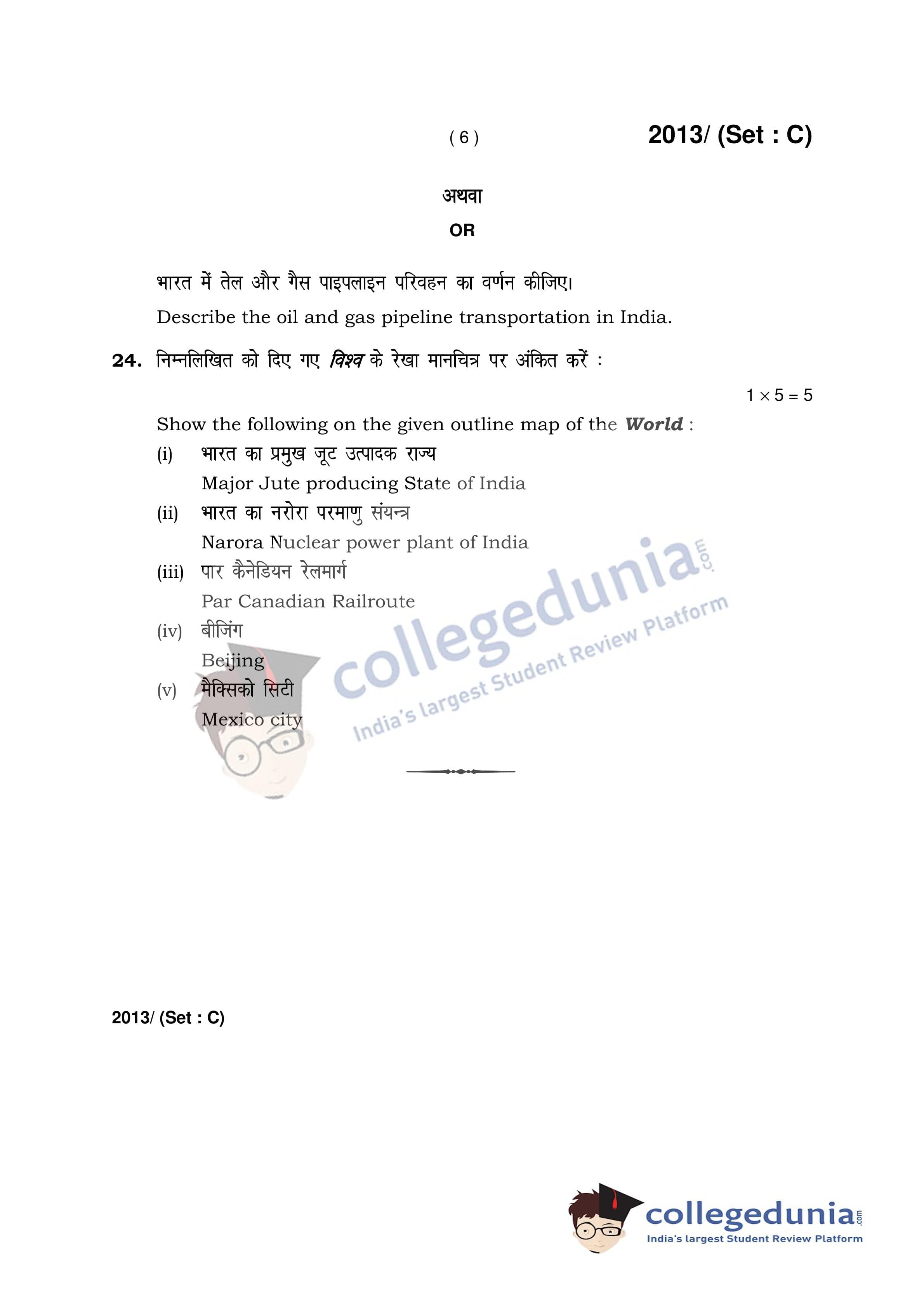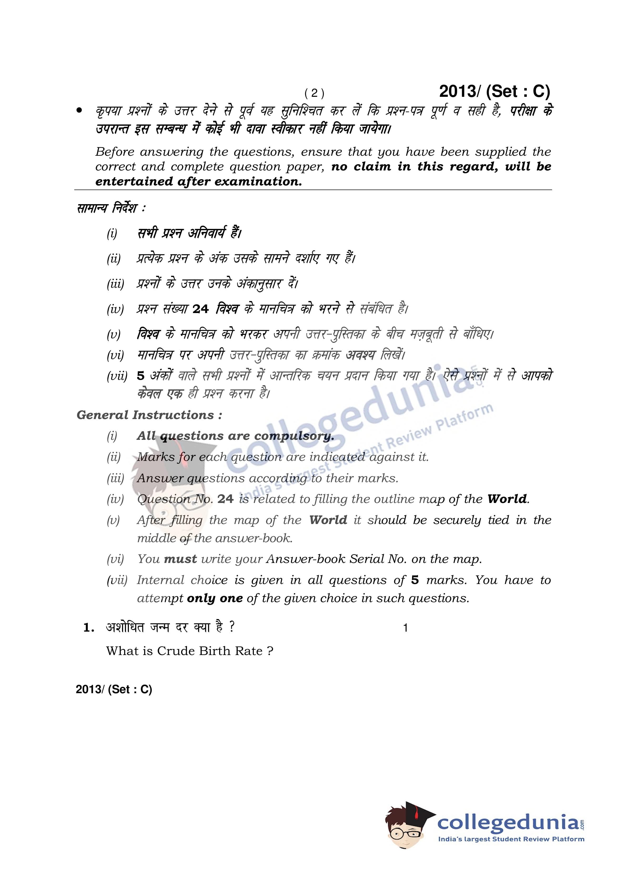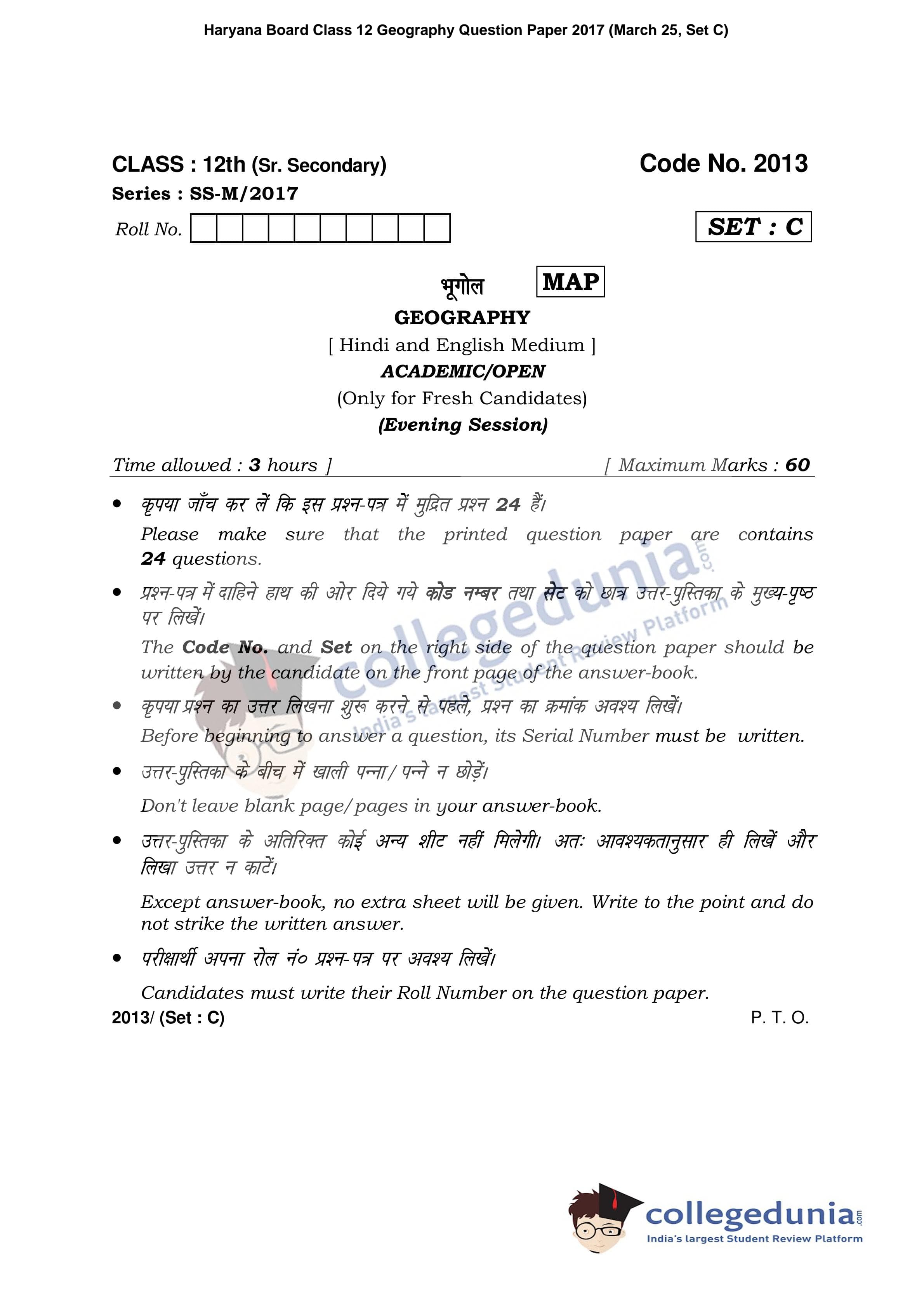 HBSE Class 12 Geography Set C Question Paper 2017 with Answer Key (March 25)