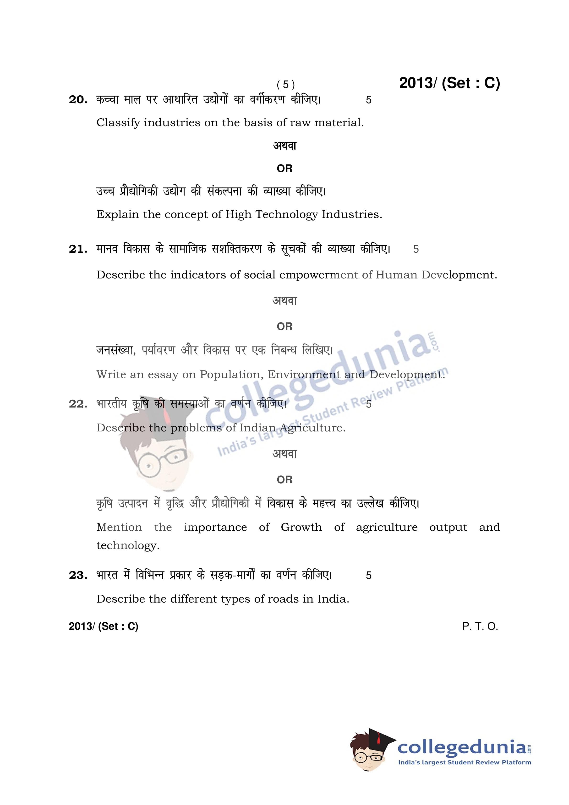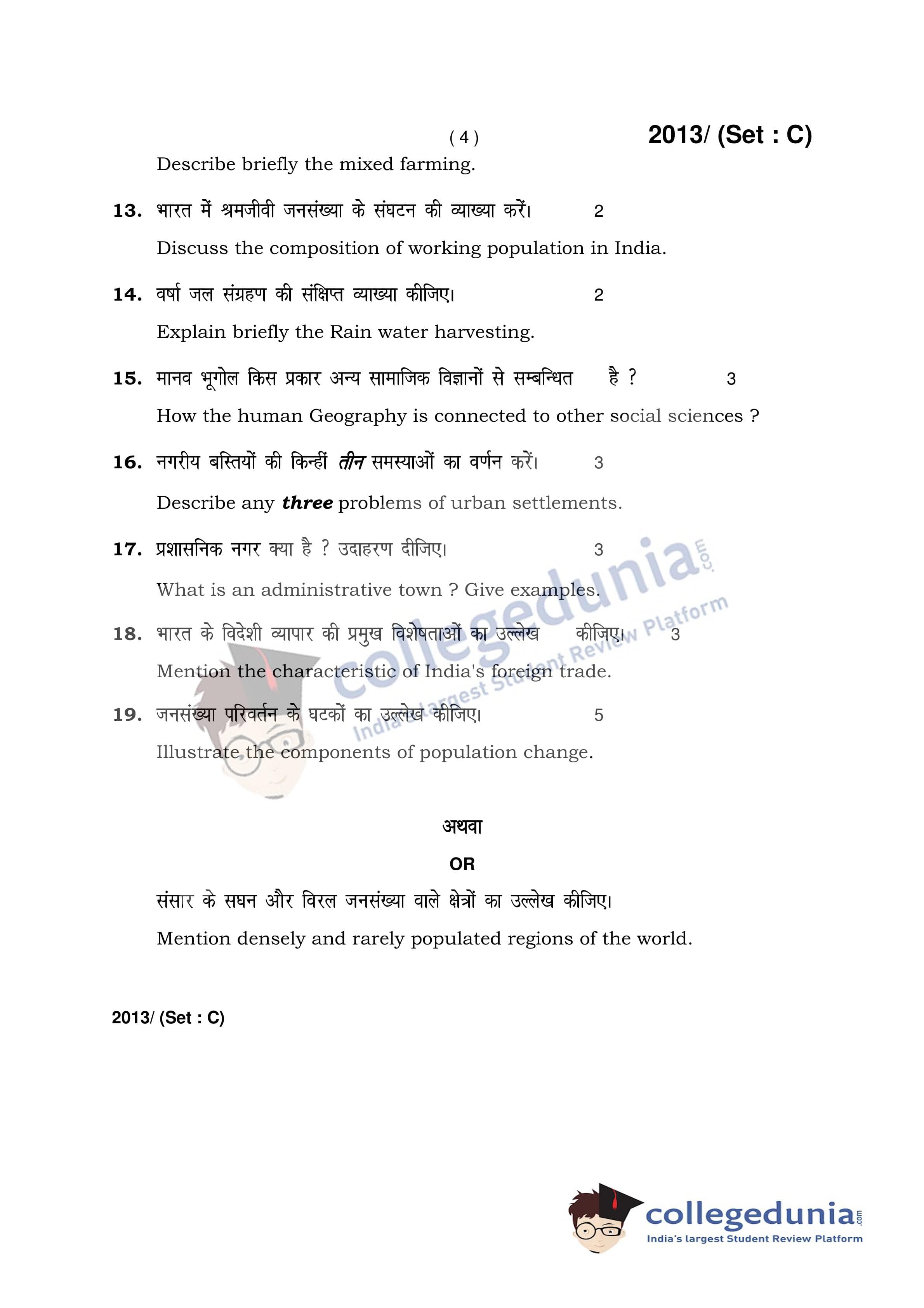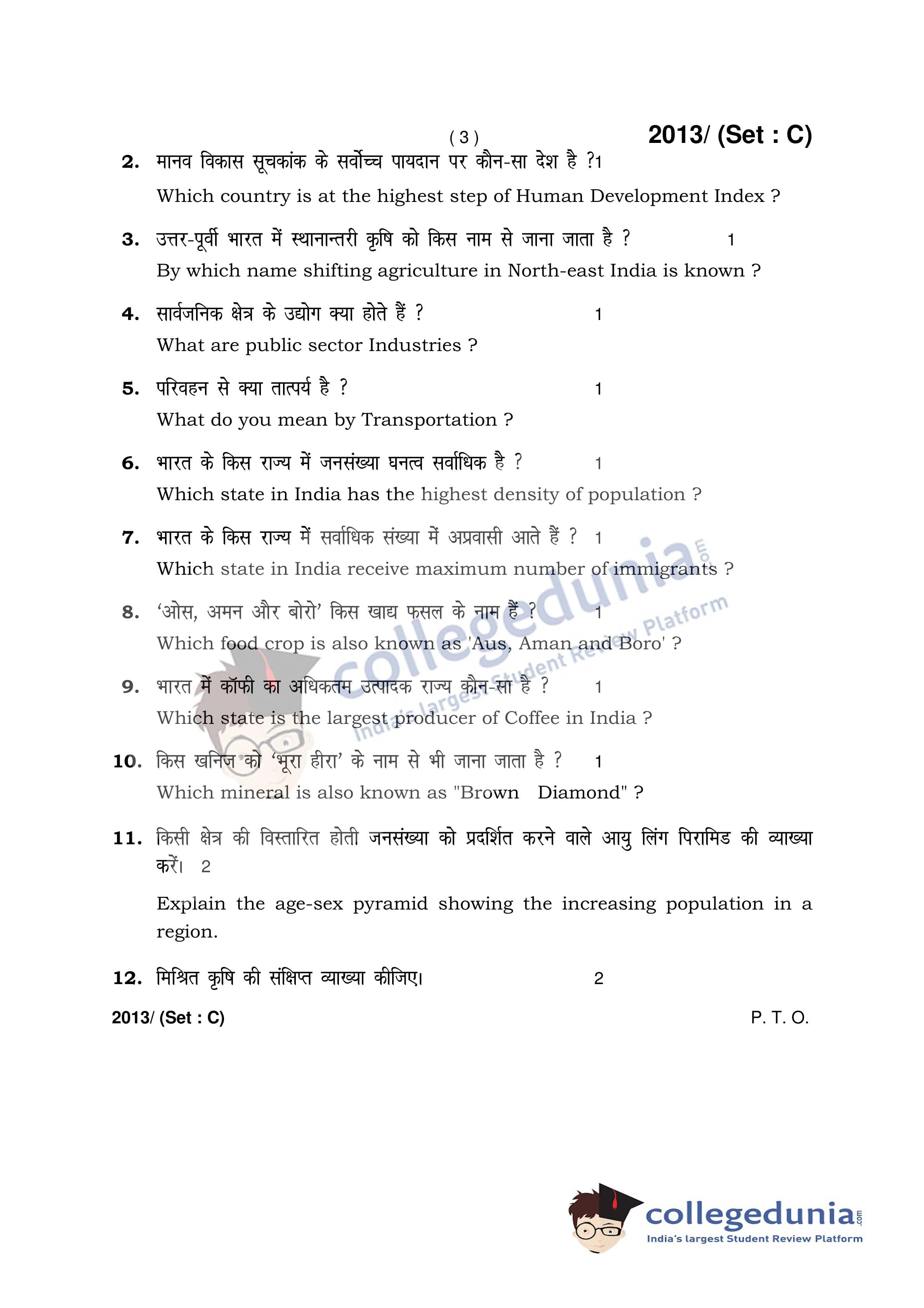 HBSE Class 12 Geography Set C Question Paper 2017 with Answer Key (March 25)