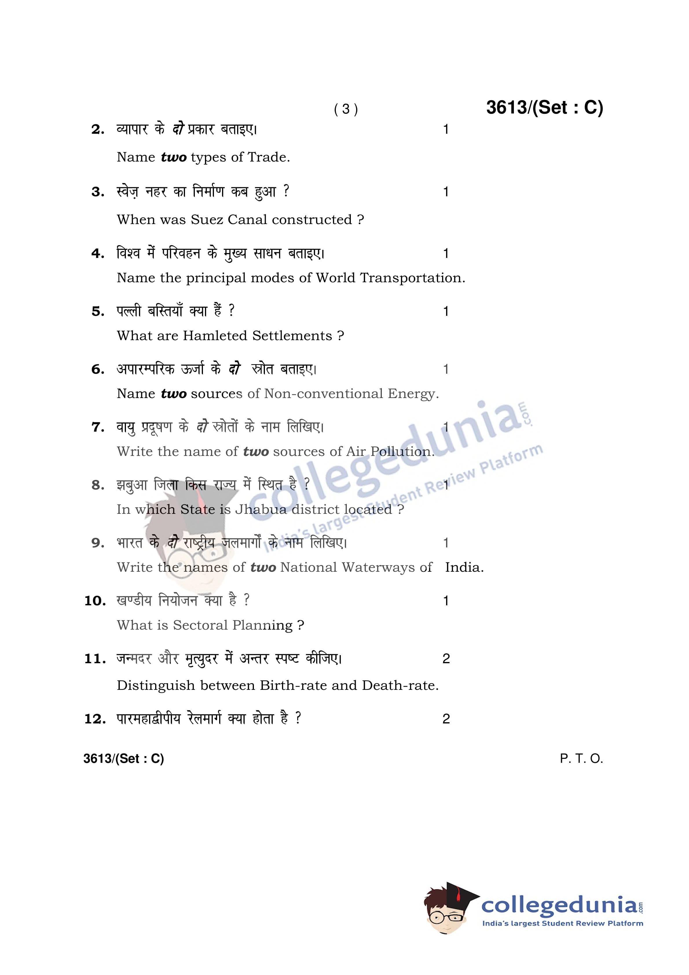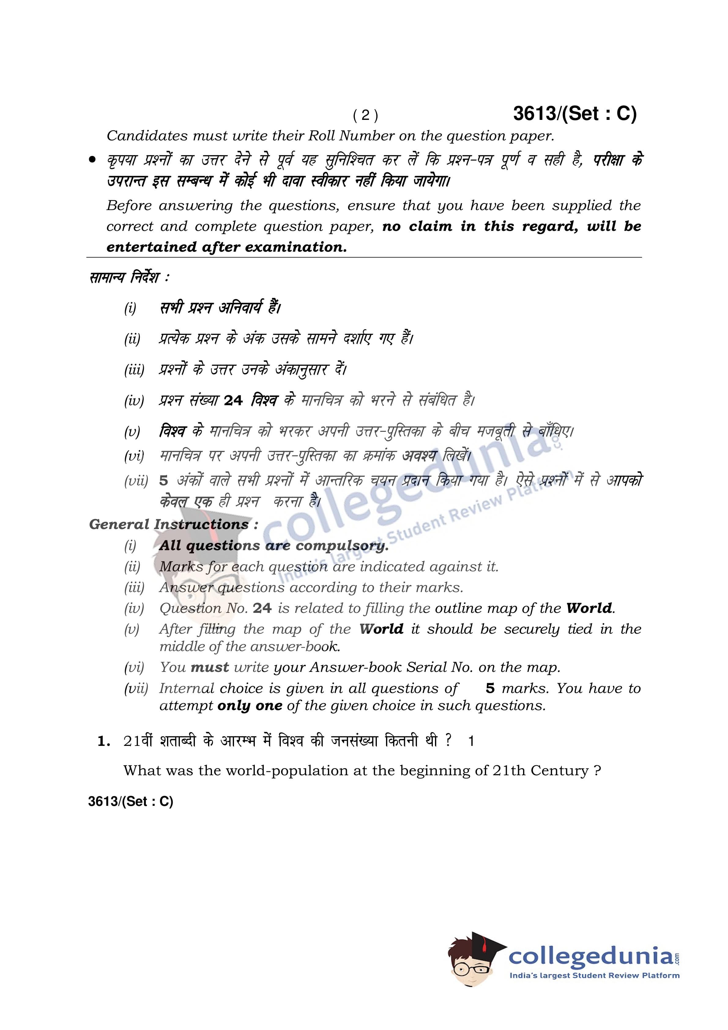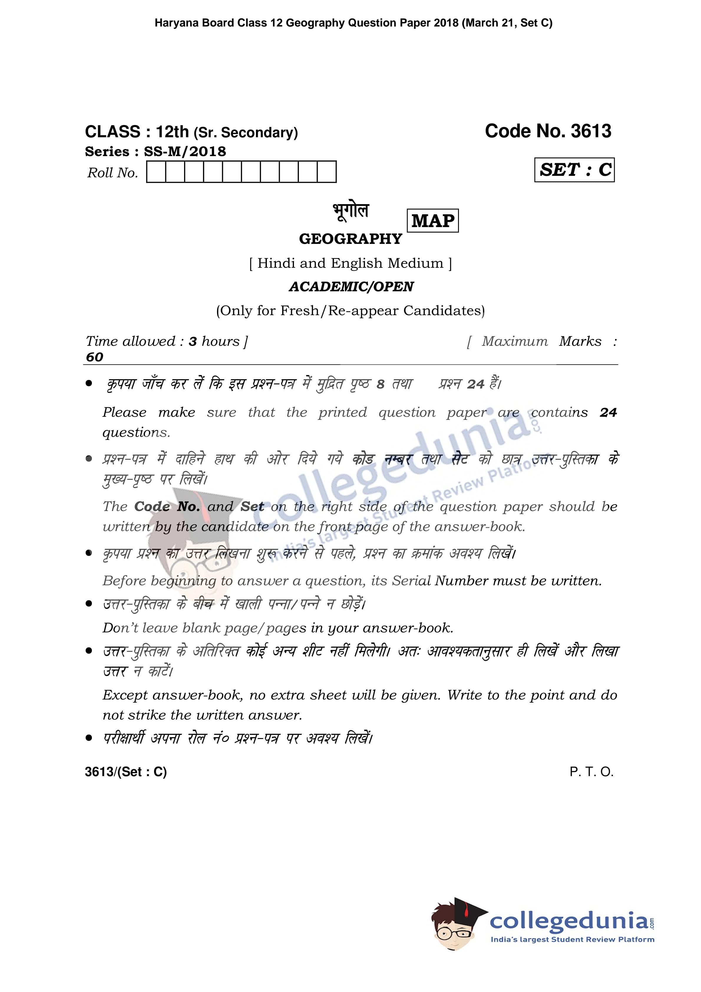 HBSE Class 12 Geography Set C Question Paper 2018 with Answer Key (March 21)