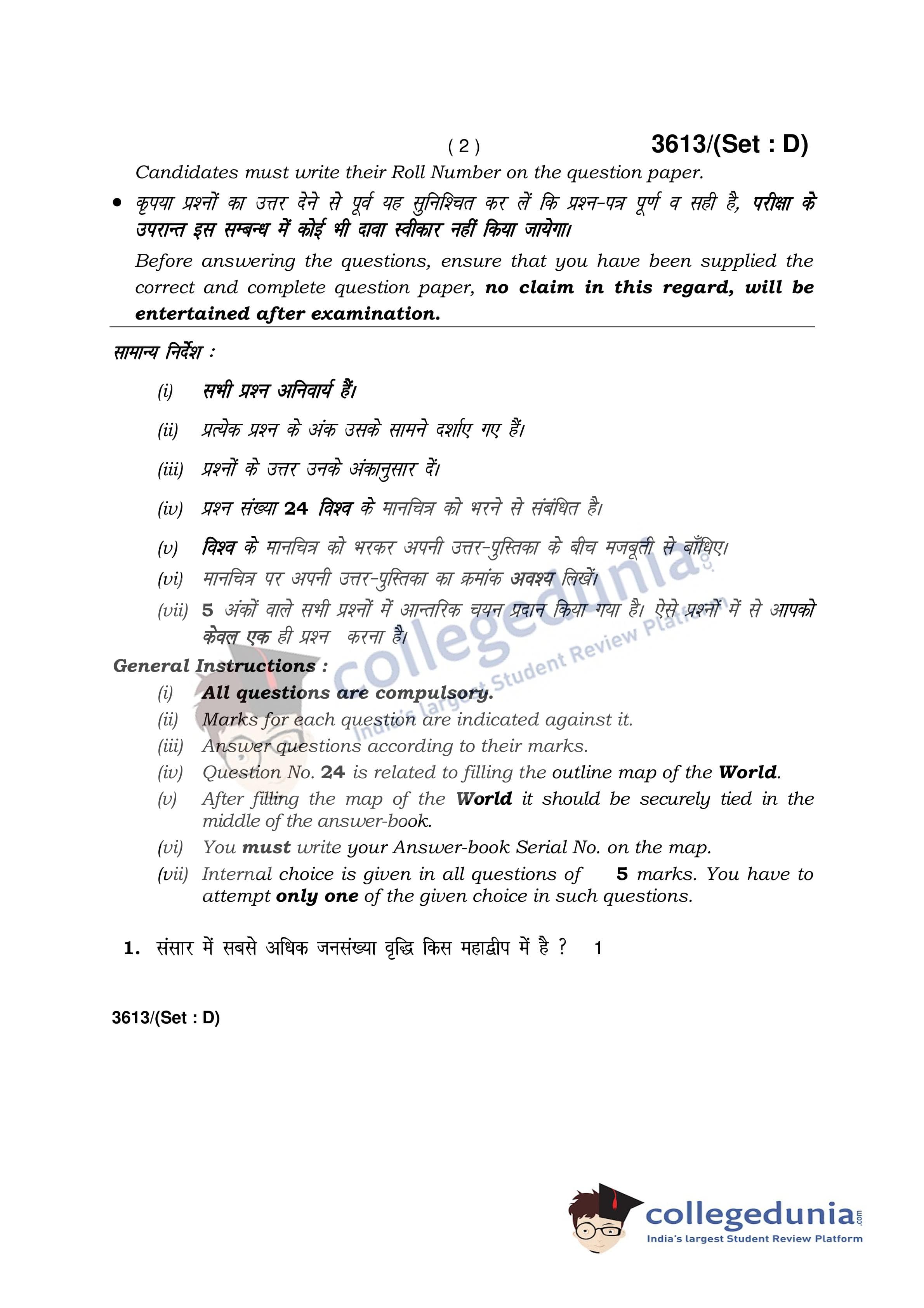 HBSE Class 12 Geography Set D Question Paper 2018 with Answer Key (March 21)