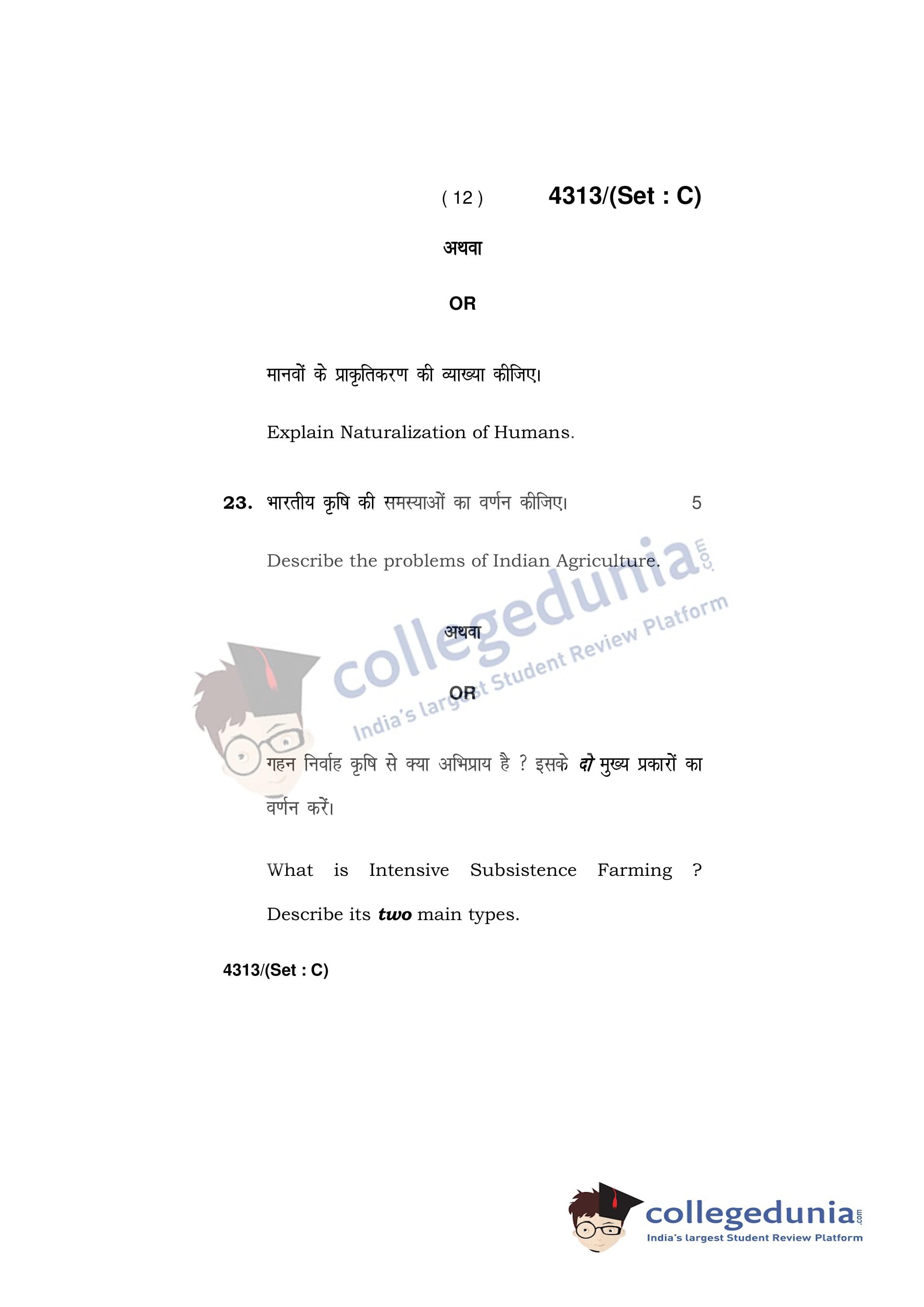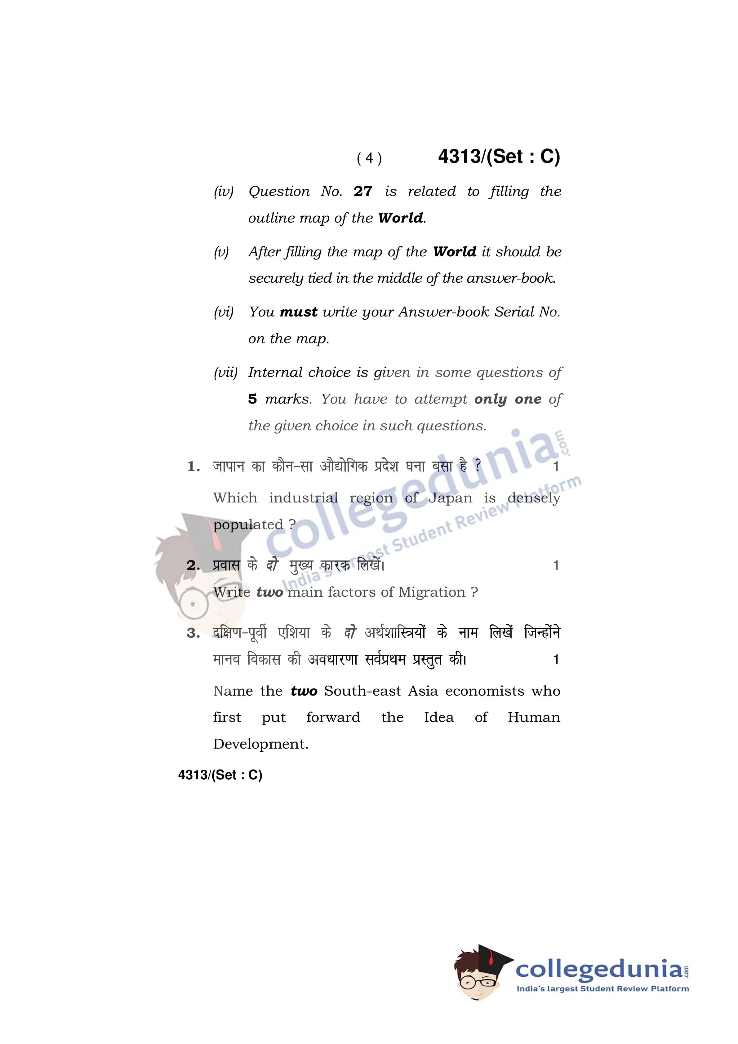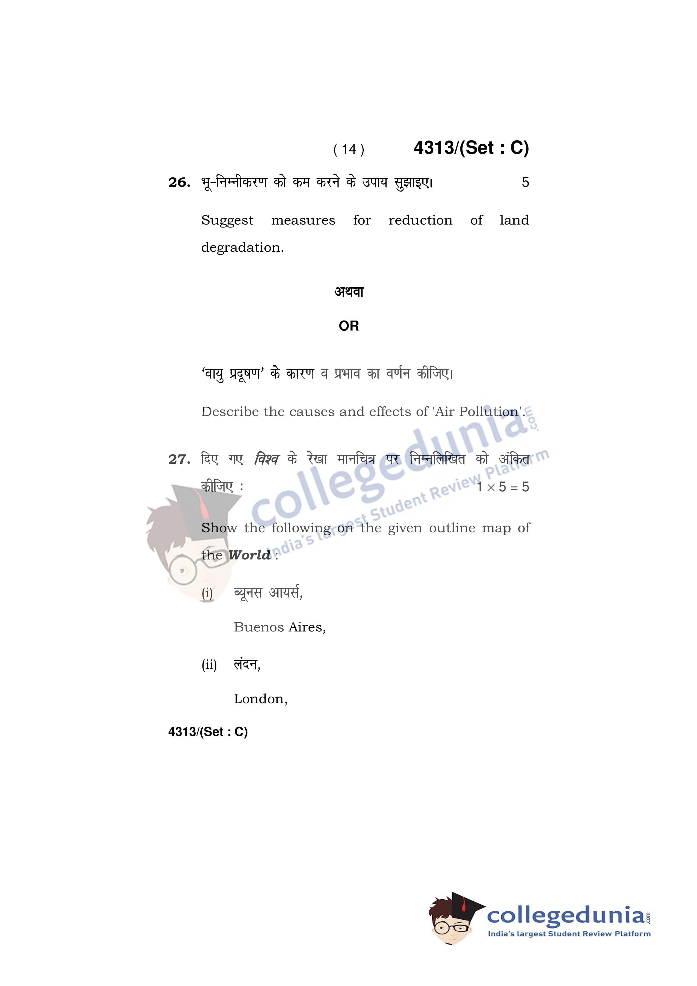 HBSE Class 12 Geography Set C Question Paper 2019 with Answer Key (March 22)