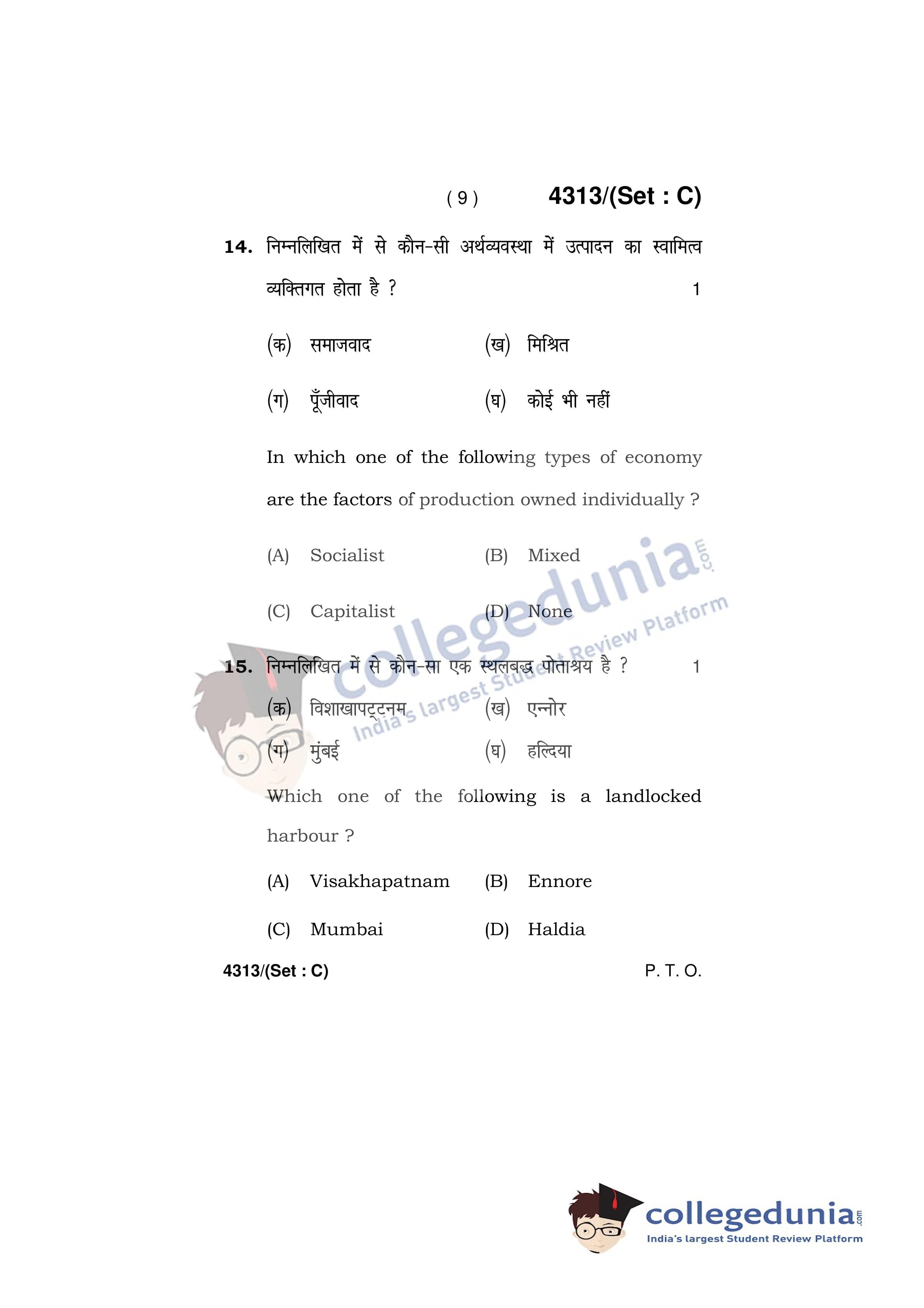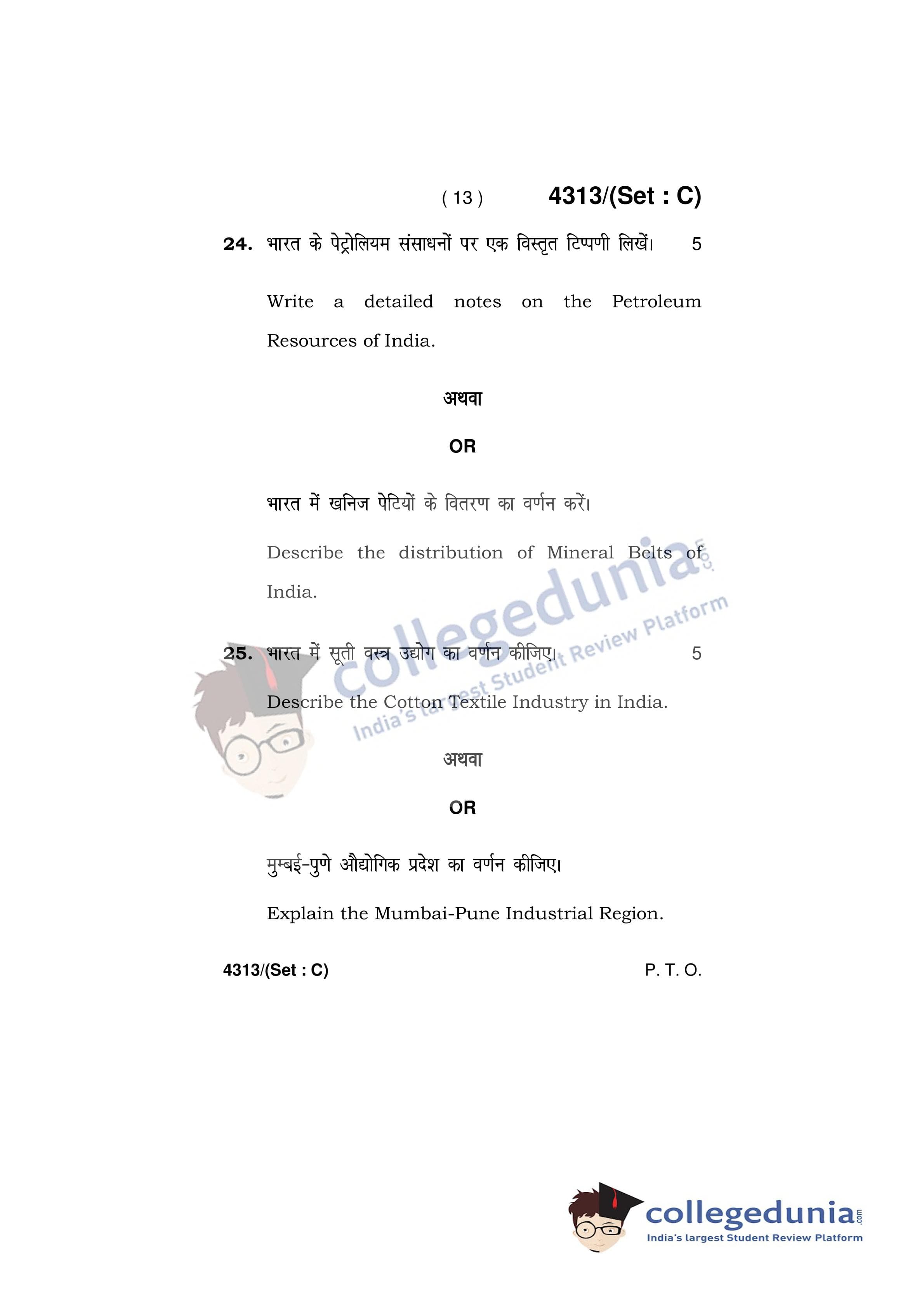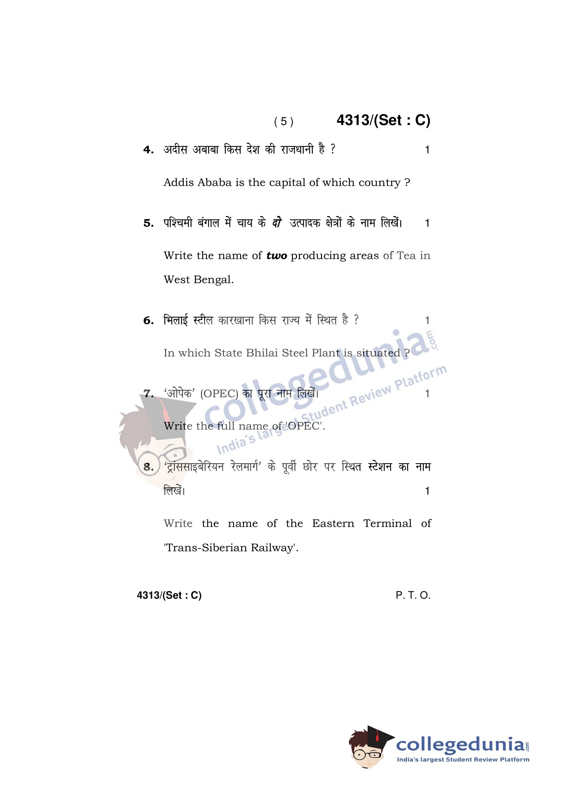HBSE Class 12 Geography Set C Question Paper 2019 with Answer Key (March 22)