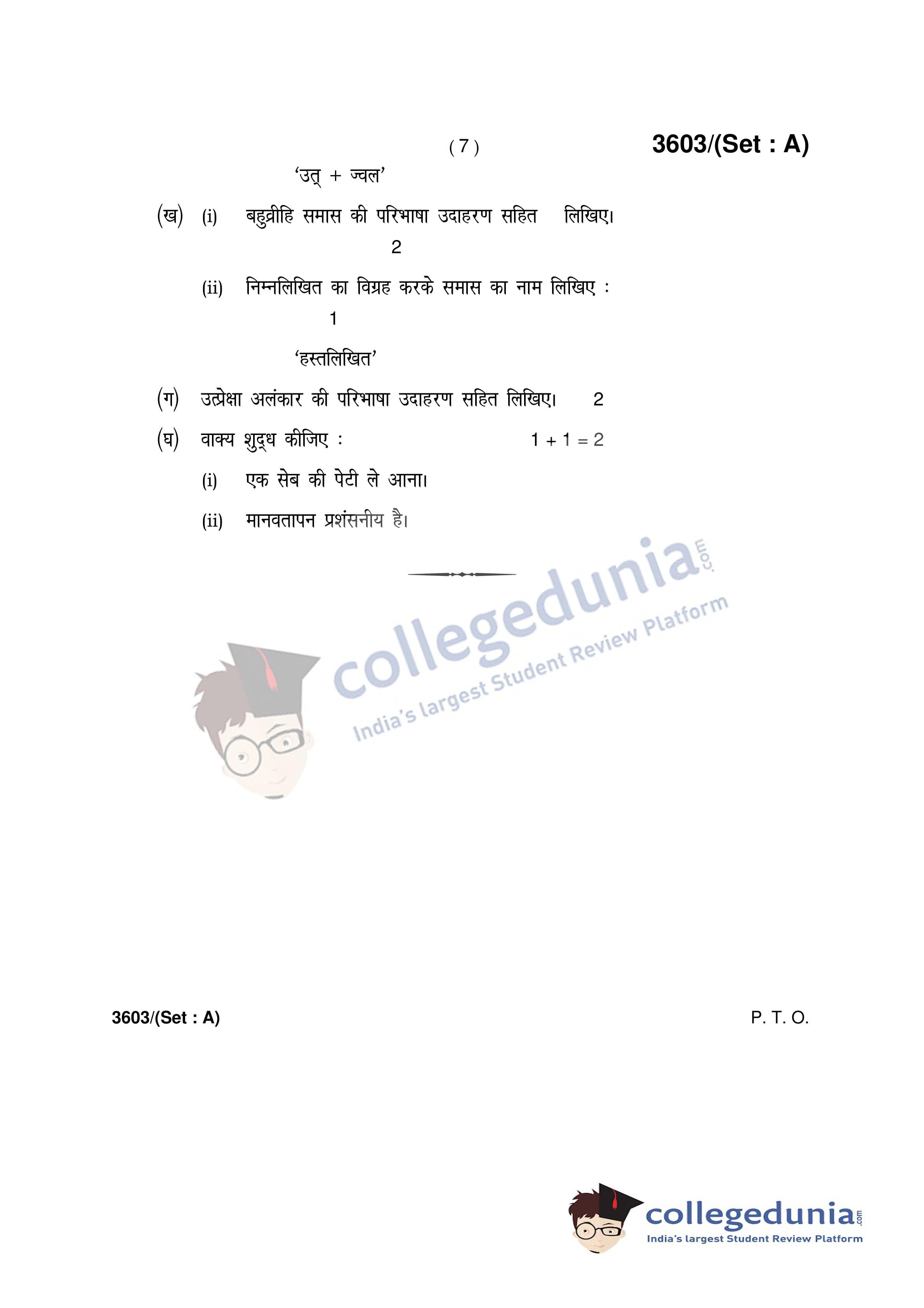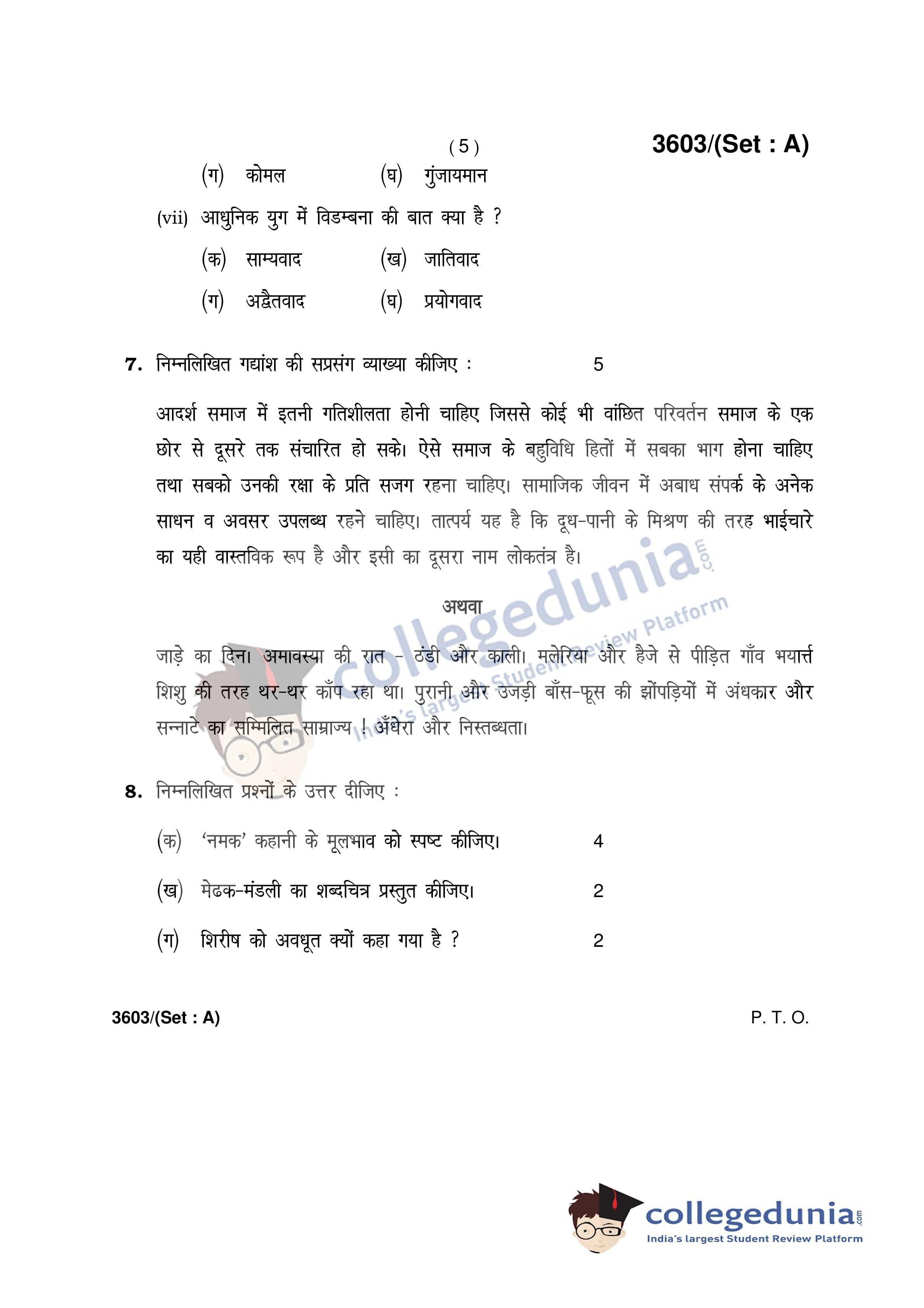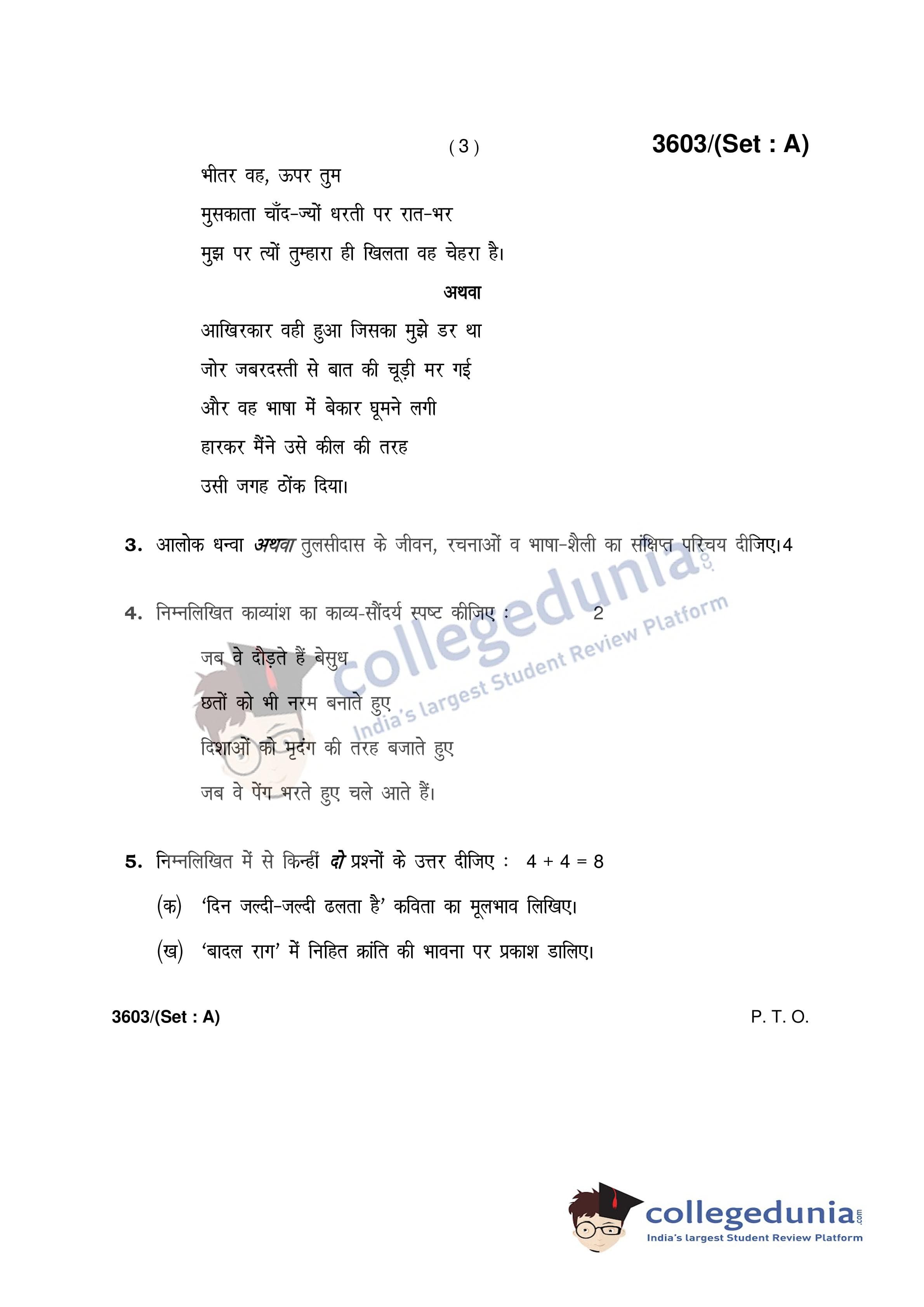 HBSE Class 12 Hindi (Core) Set A Question Paper 2018 with Answer Key (March 9)