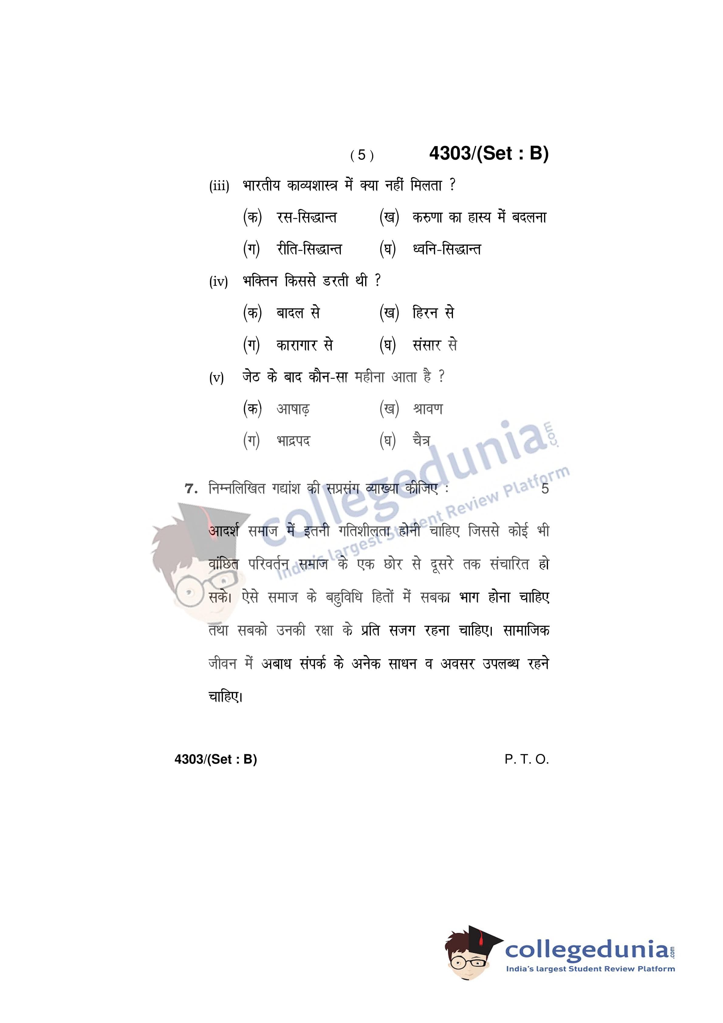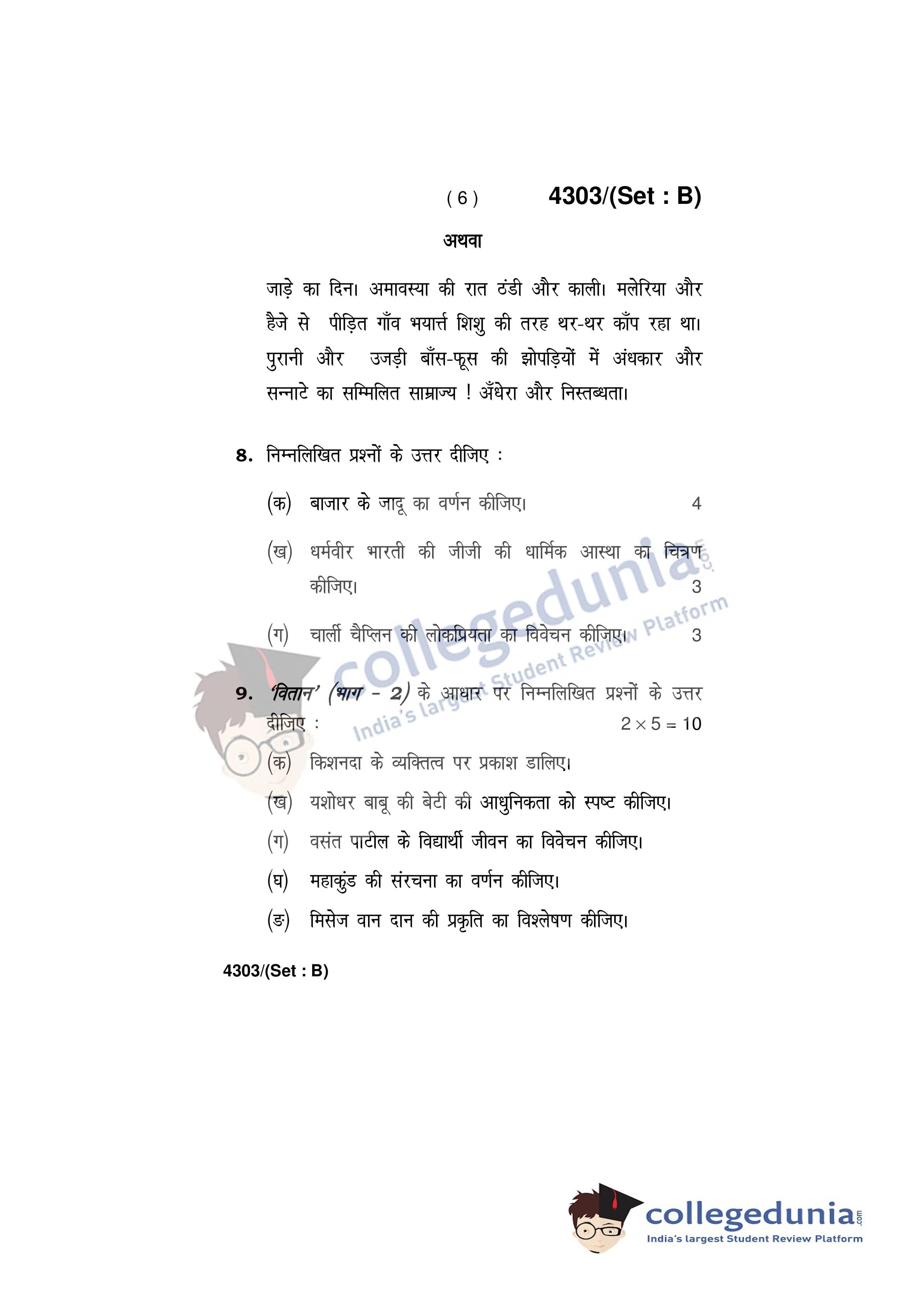 HBSE Class 12 Hindi Core Set B Question Paper 2019 with Answer Key (March 9)