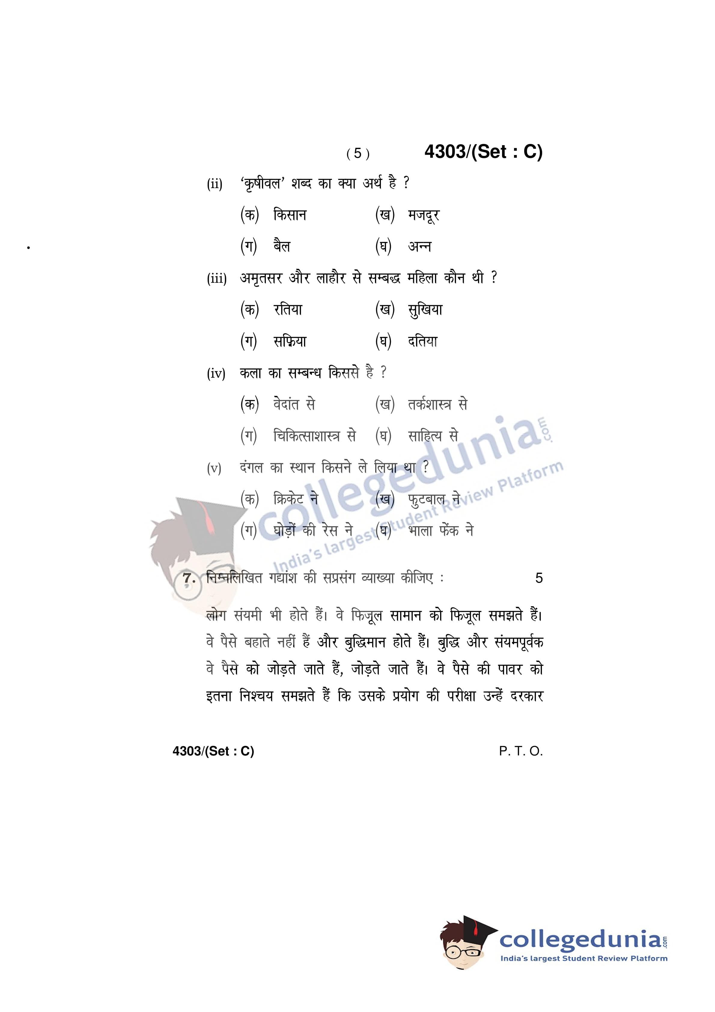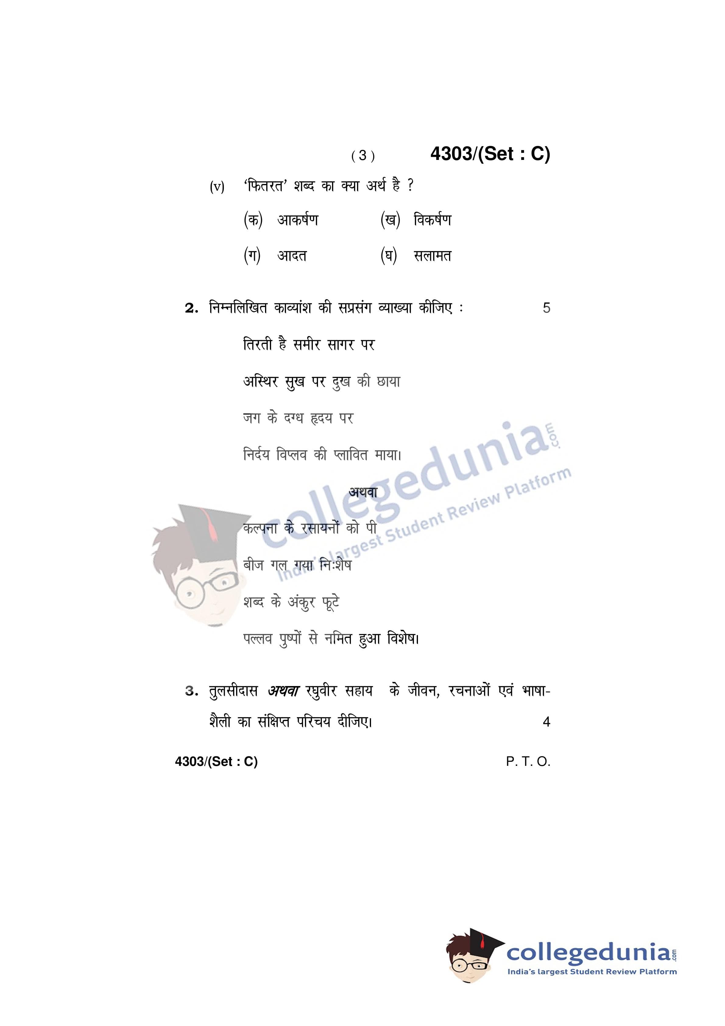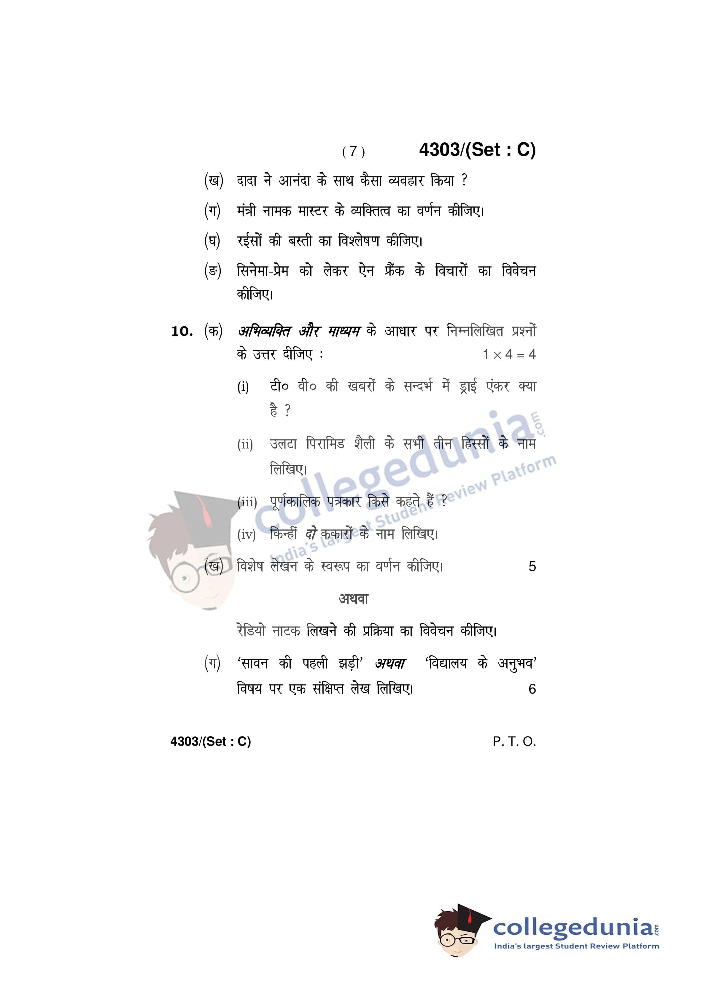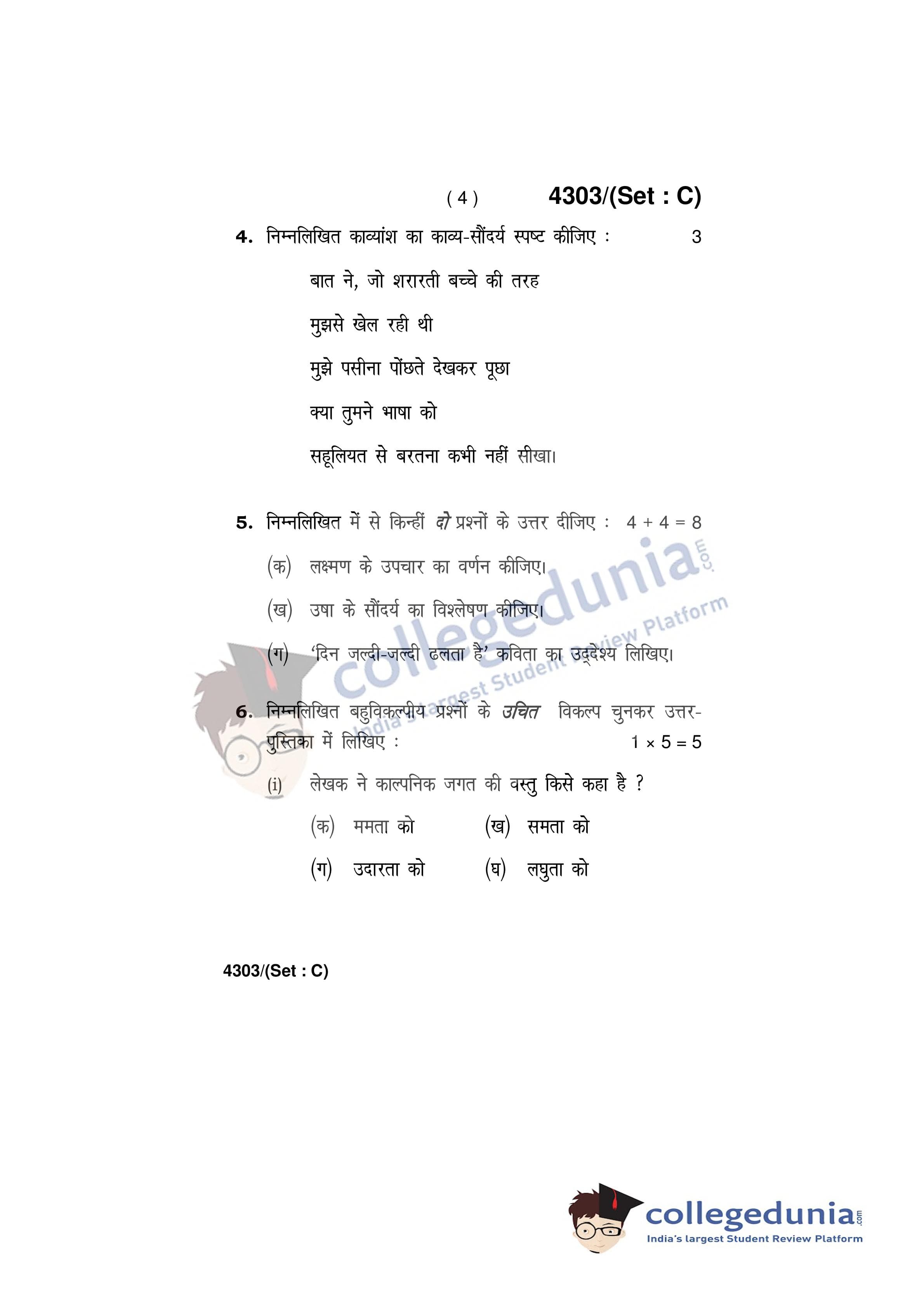 HBSE Class 12 Hindi Core Set C Question Paper 2019 with Answer Key (March 9)