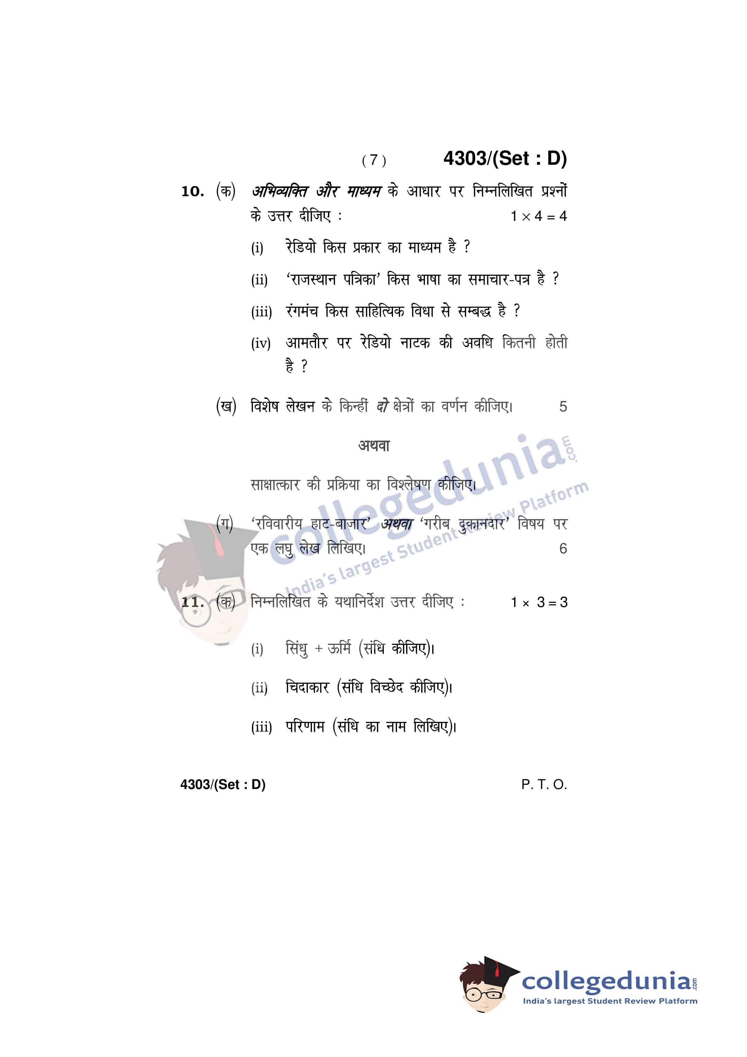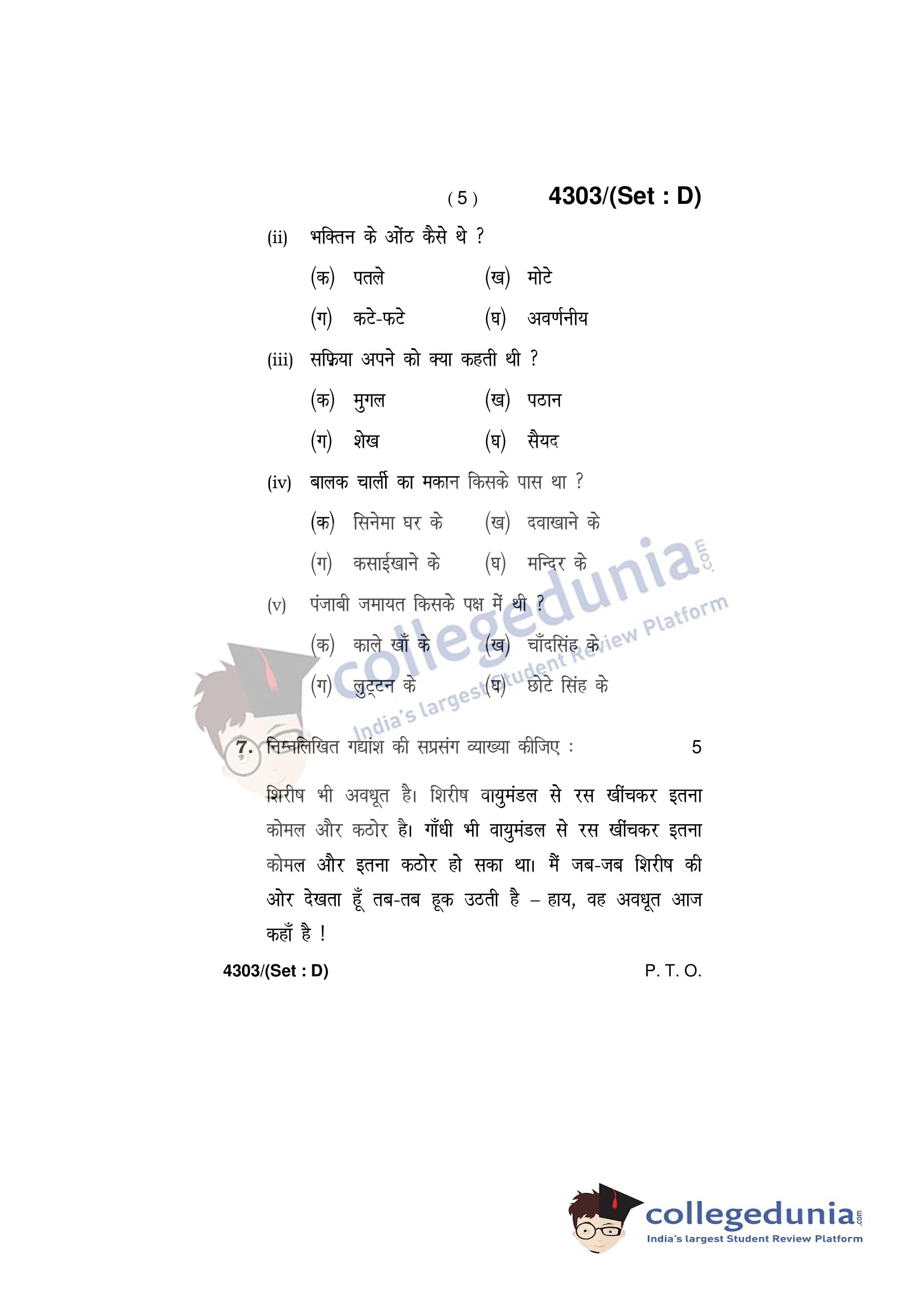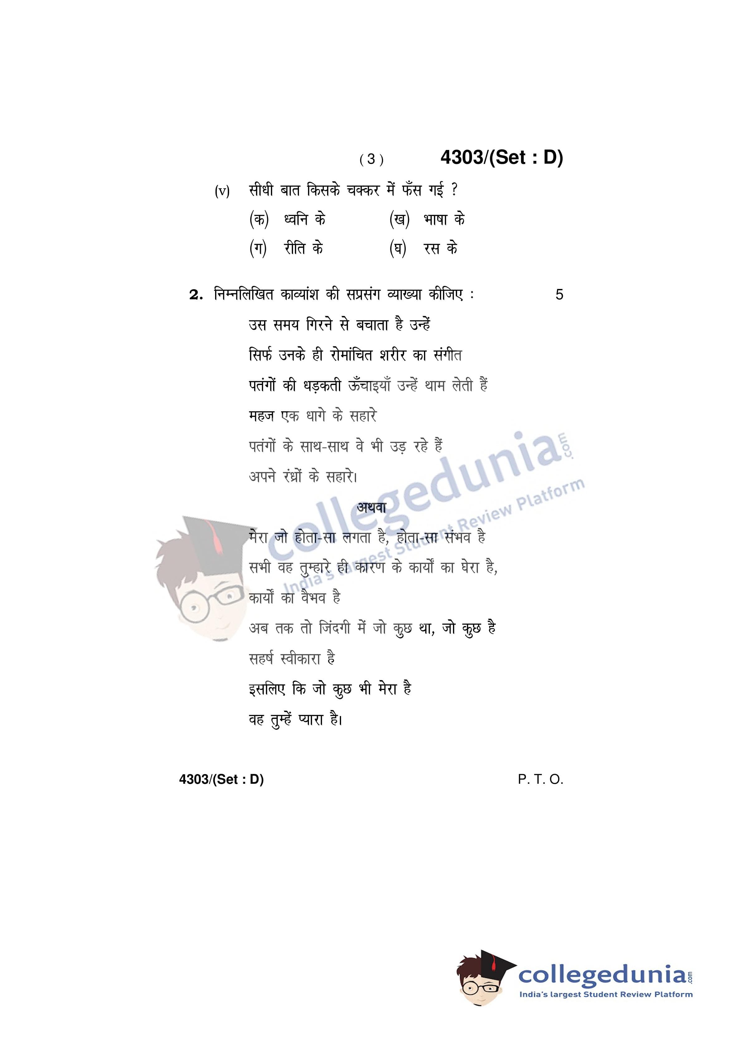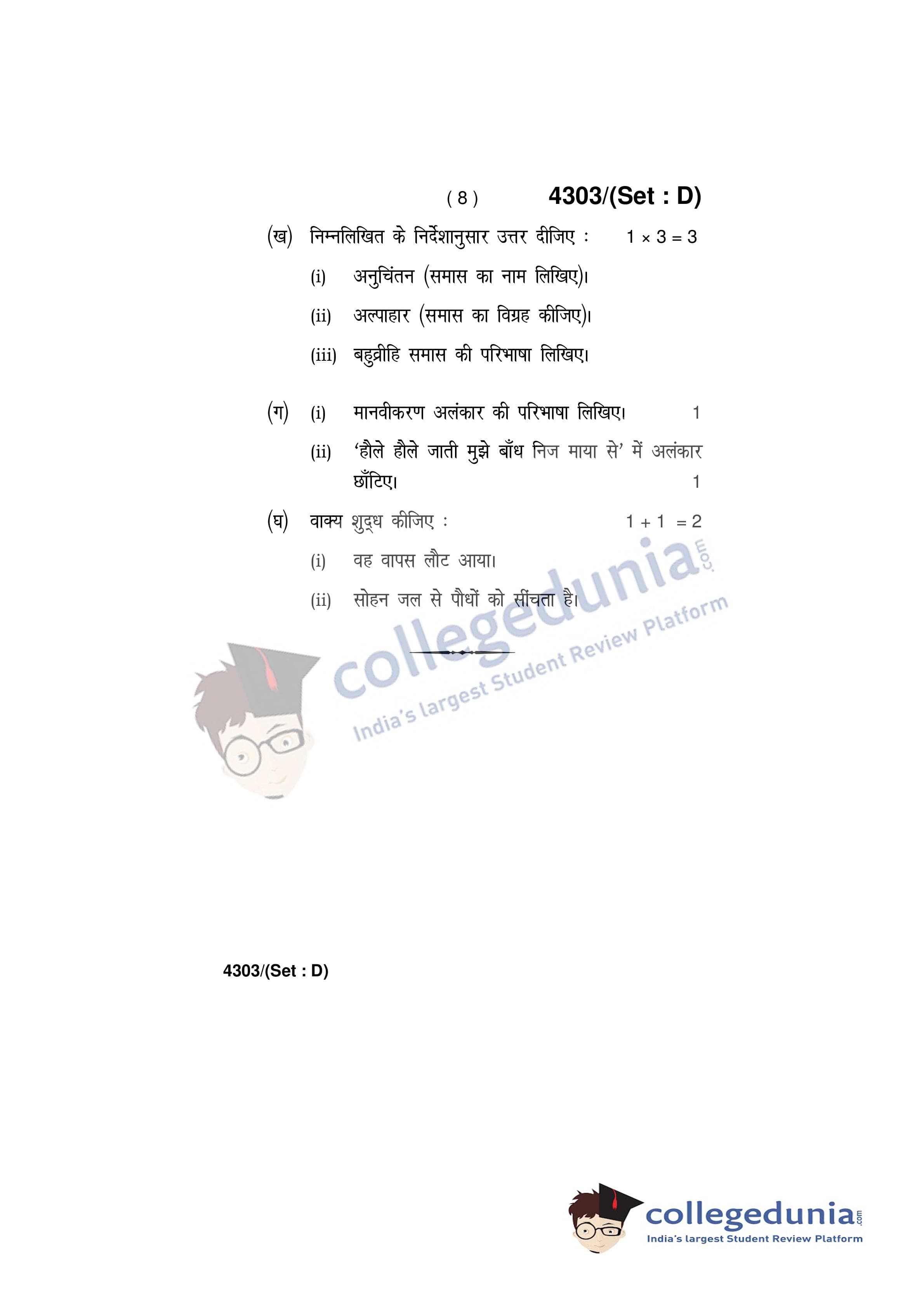 HBSE Class 12 Hindi Core Set D Question Paper 2019 with Answer Key (March 9)