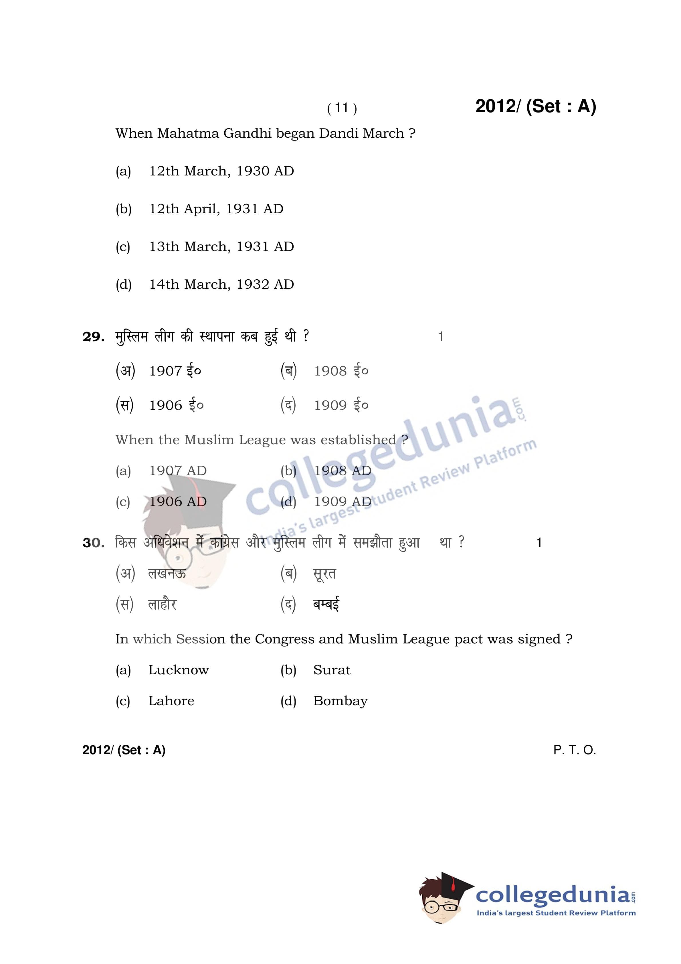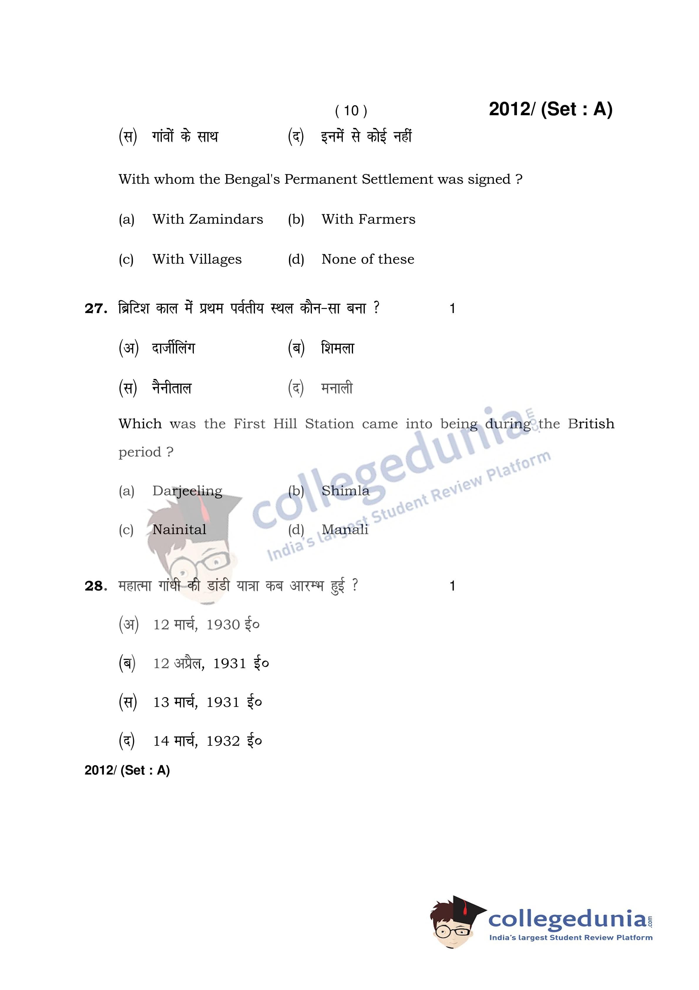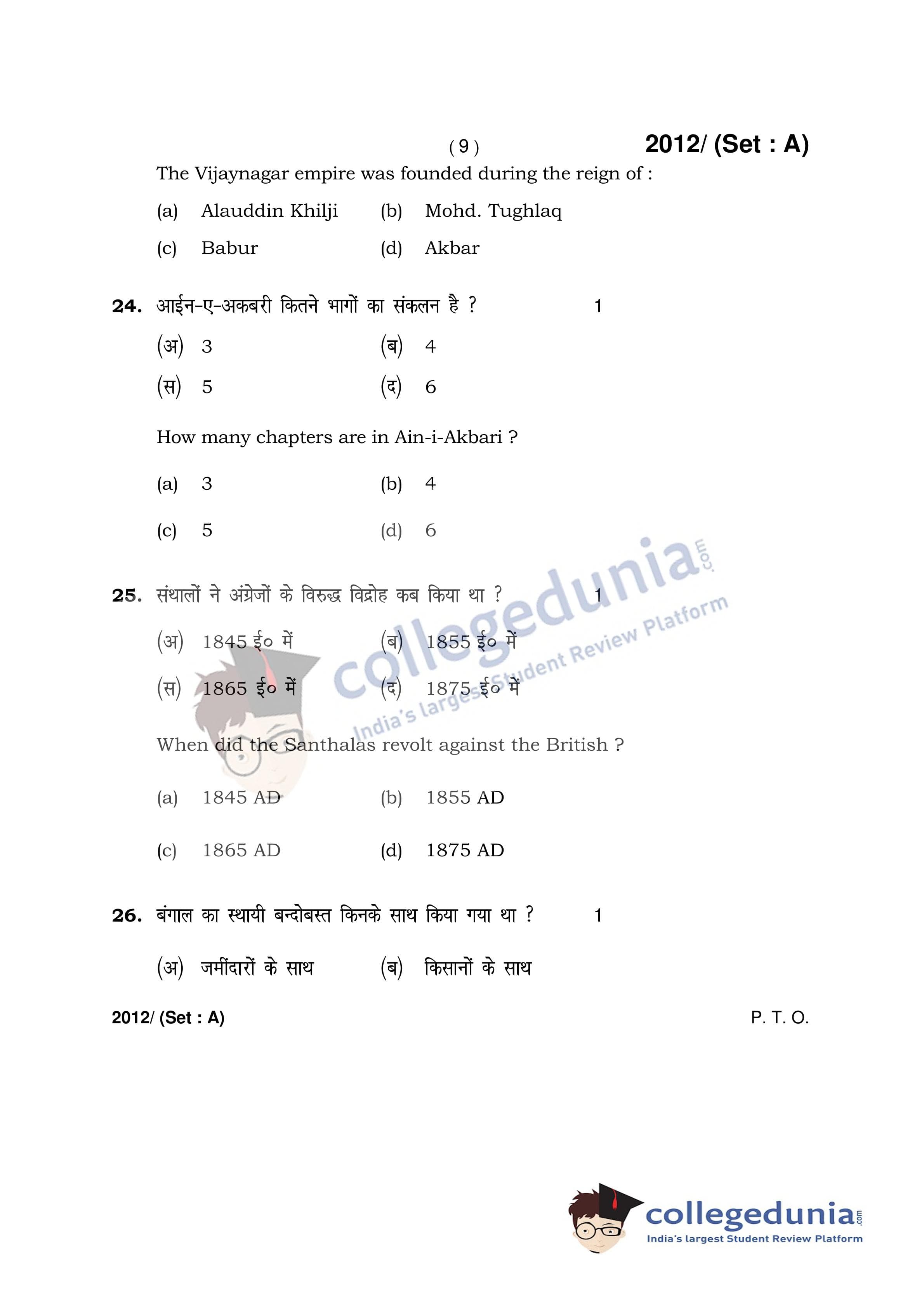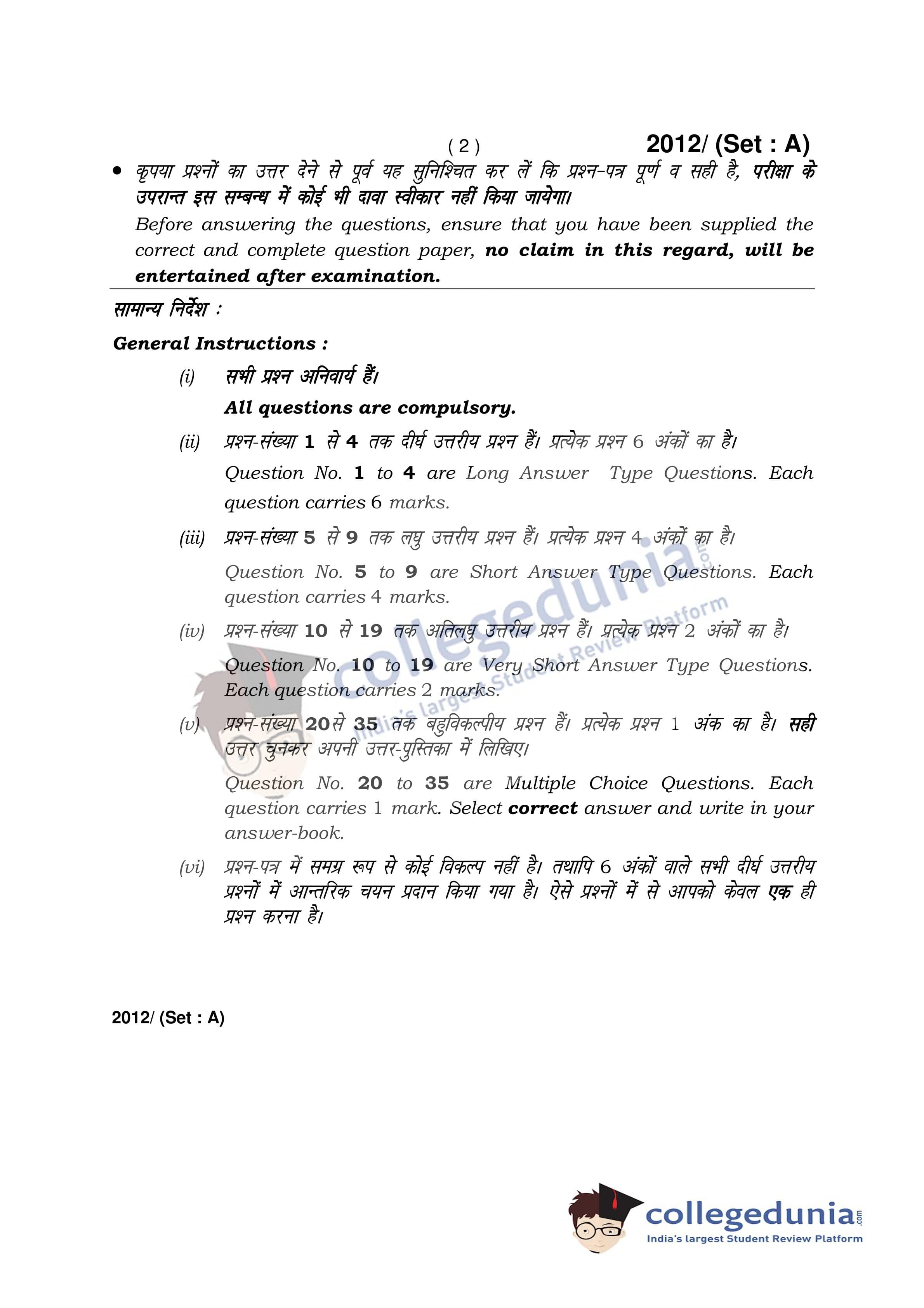 HBSE Class 12 History Question Paper 2017 with Answer Key Set A is available for download. The exam was conducted by the Board of School Education Haryana on April 3, 2017 in the Afternoon Session 2 PM to 4:30 PM. The medium of paper was English and Hindi. The question paper comprised a total of 35 questions.