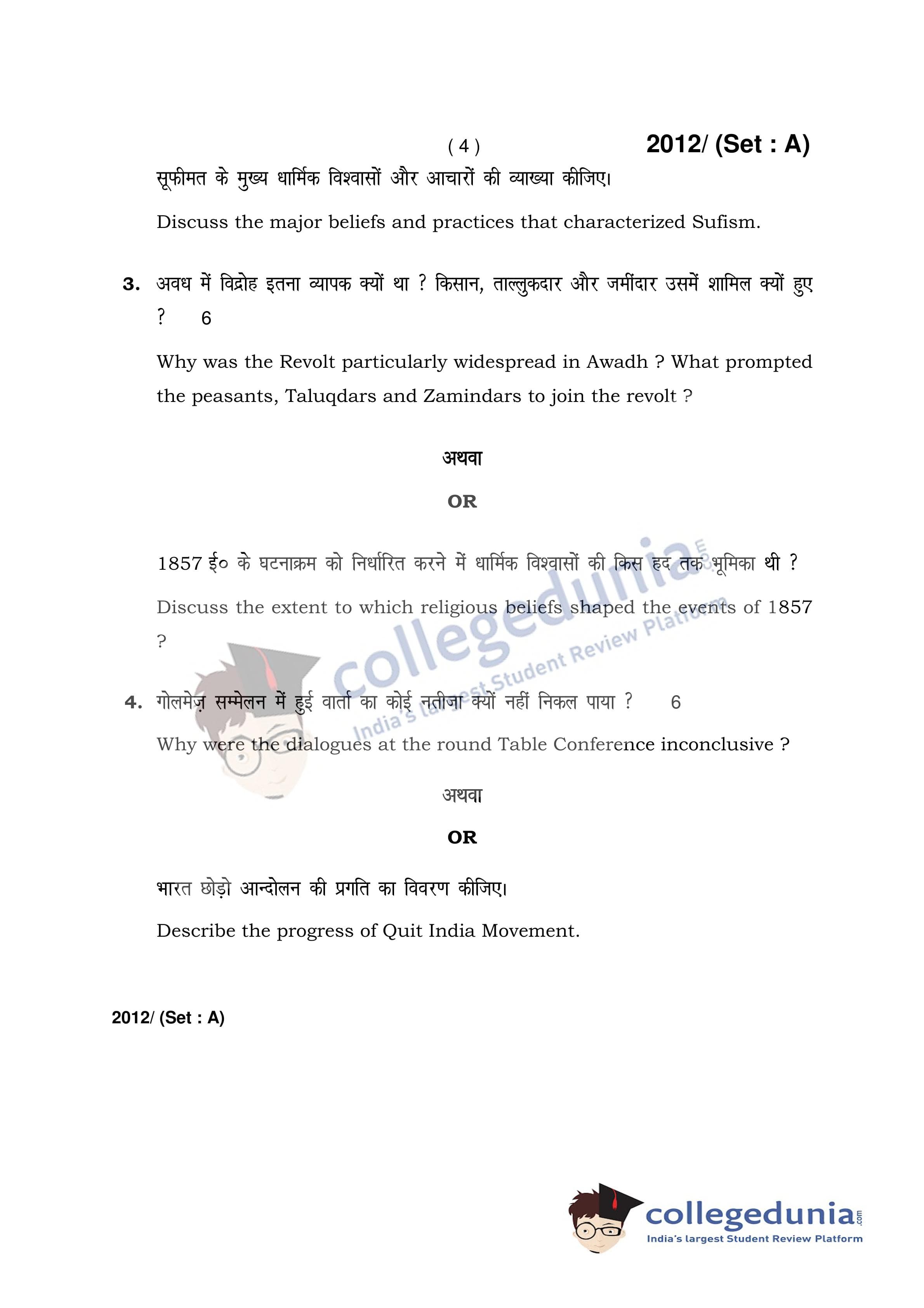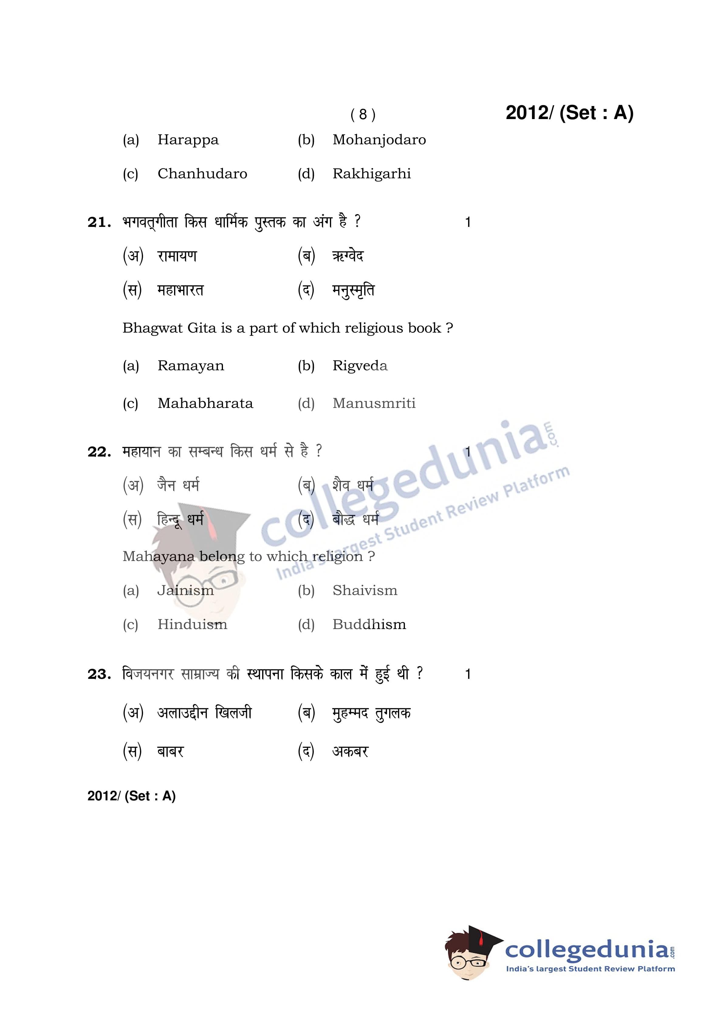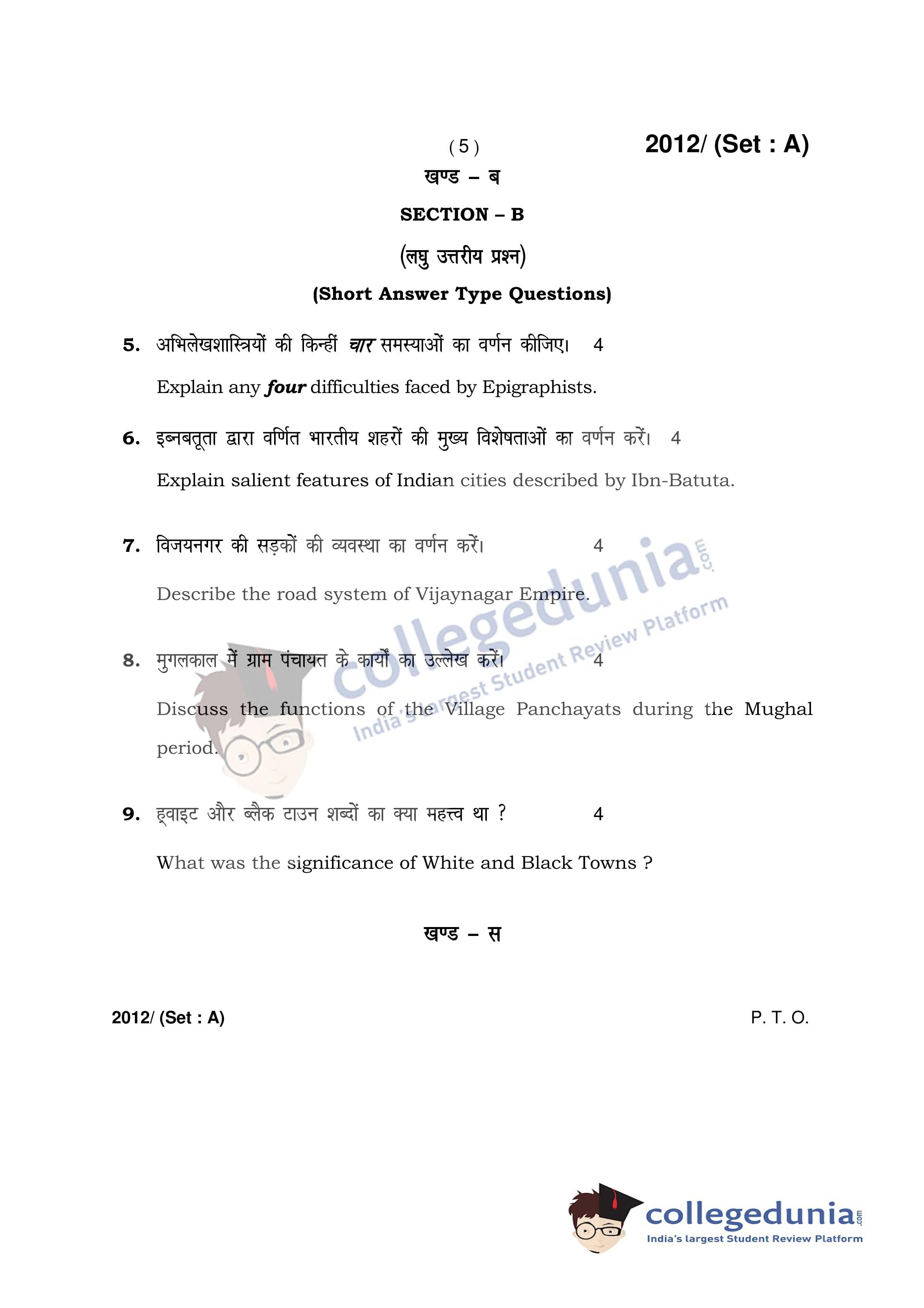 HBSE Class 12 History Set A Question Paper 2017 with Answer Key (April 3)