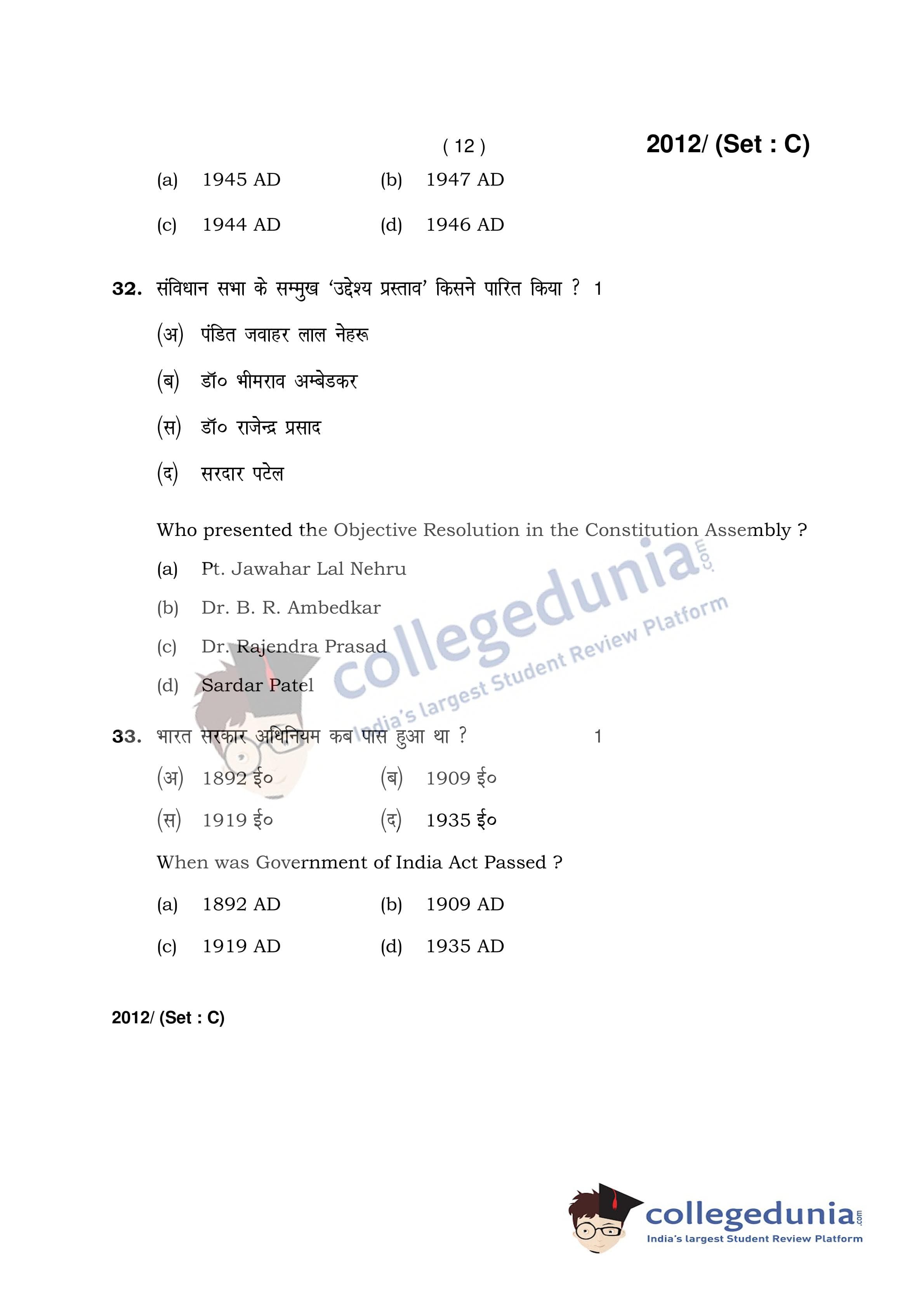HBSE Class 12 History Question Paper 2017 with Answer Key Set B is available for download. The exam was conducted by the Board of School Education Haryana on April 3, 2017 in the Afternoon Session 2 PM to 4:30 PM. The medium of paper was English and Hindi. The question paper comprised a total of 35 questions.