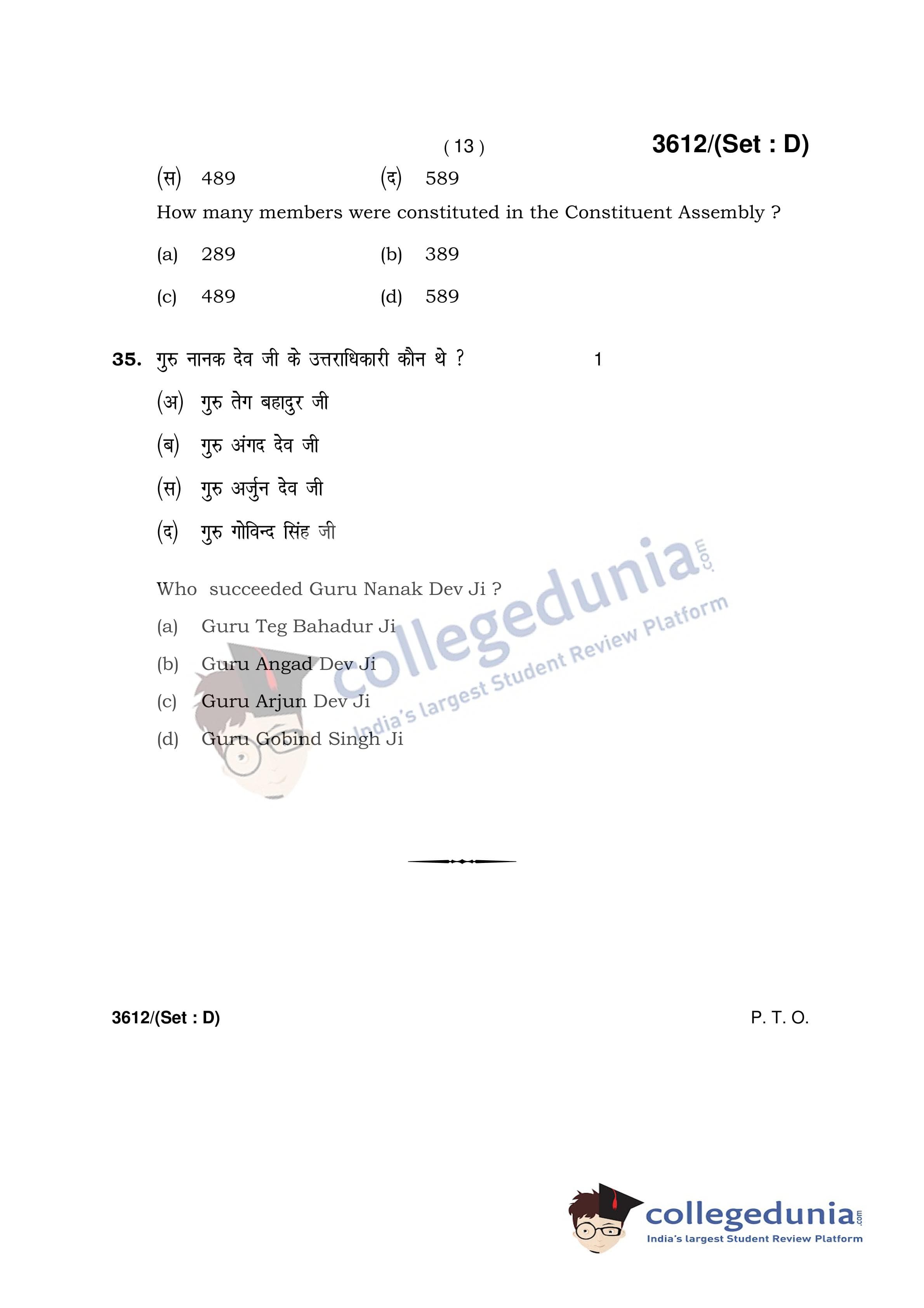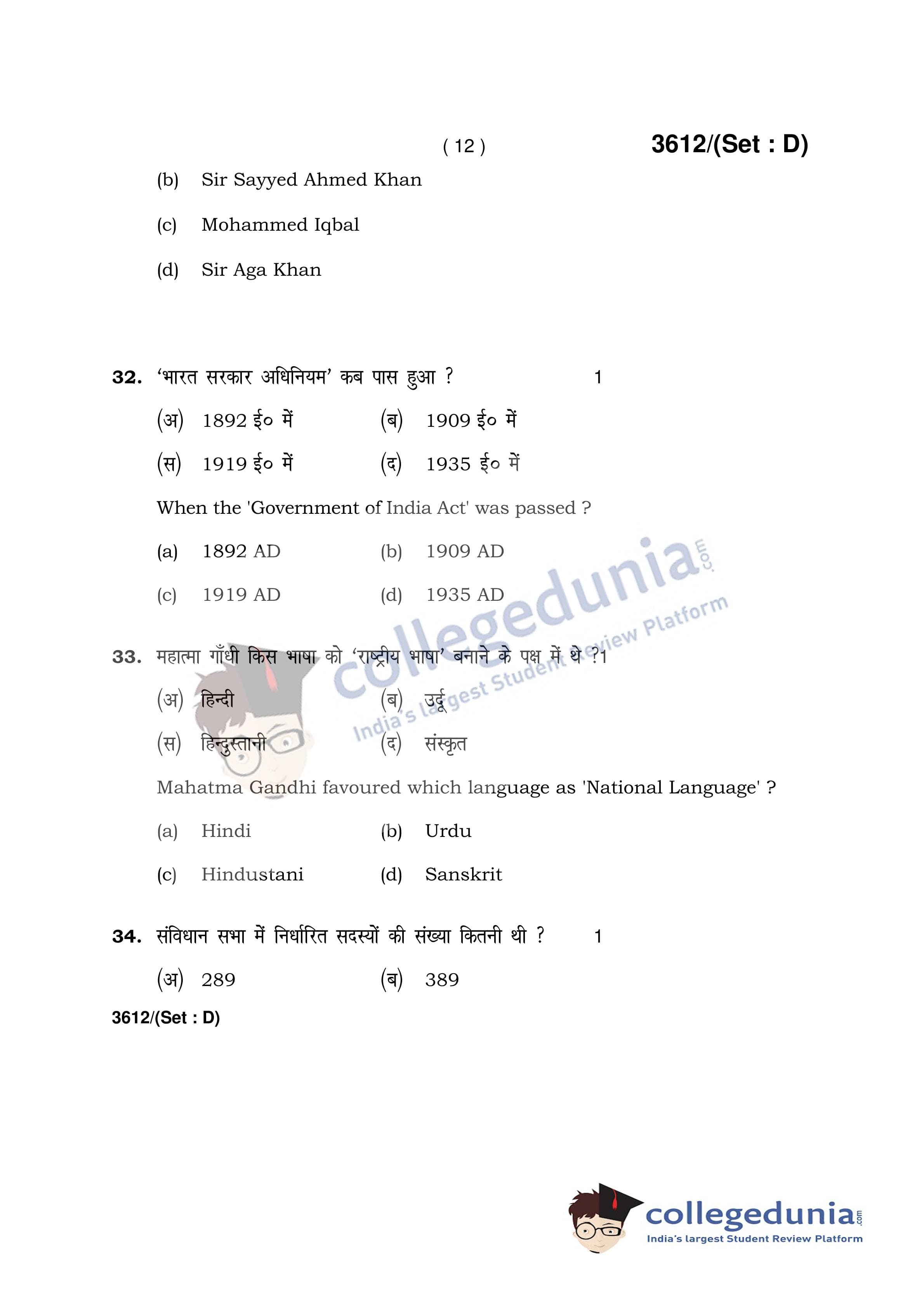 HBSE Class 12 History Set D Question Paper 2018 with Answer Key (March 14)