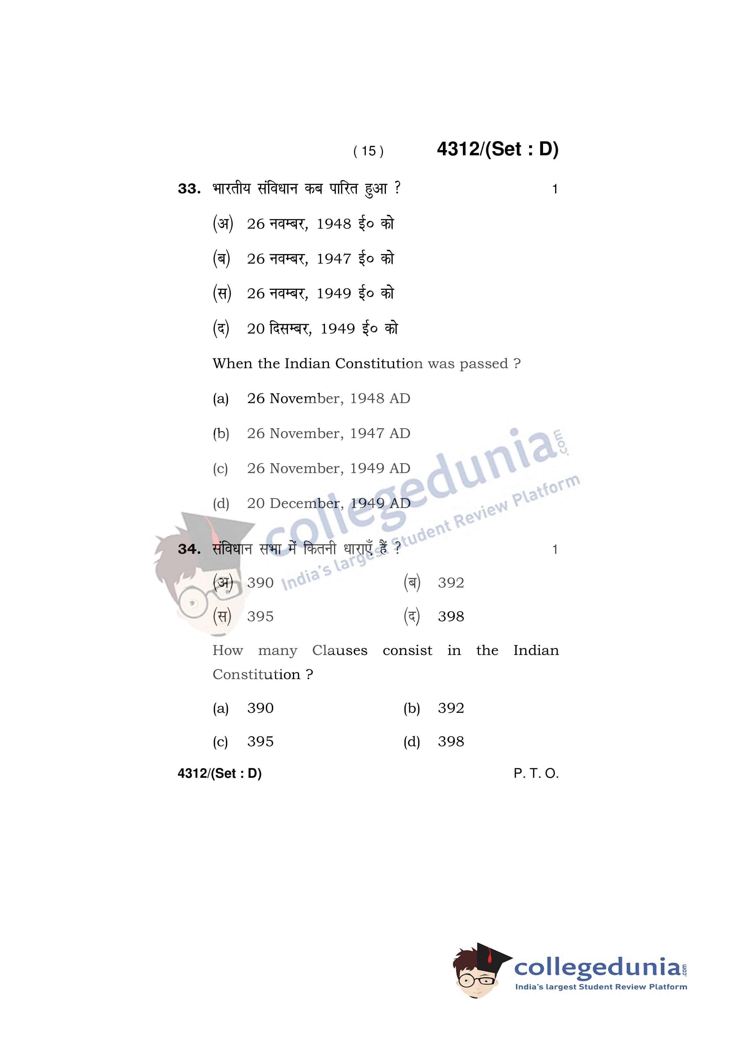 HBSE Class 12 History Set D Question Paper 2019 with Answer Key (March 14)