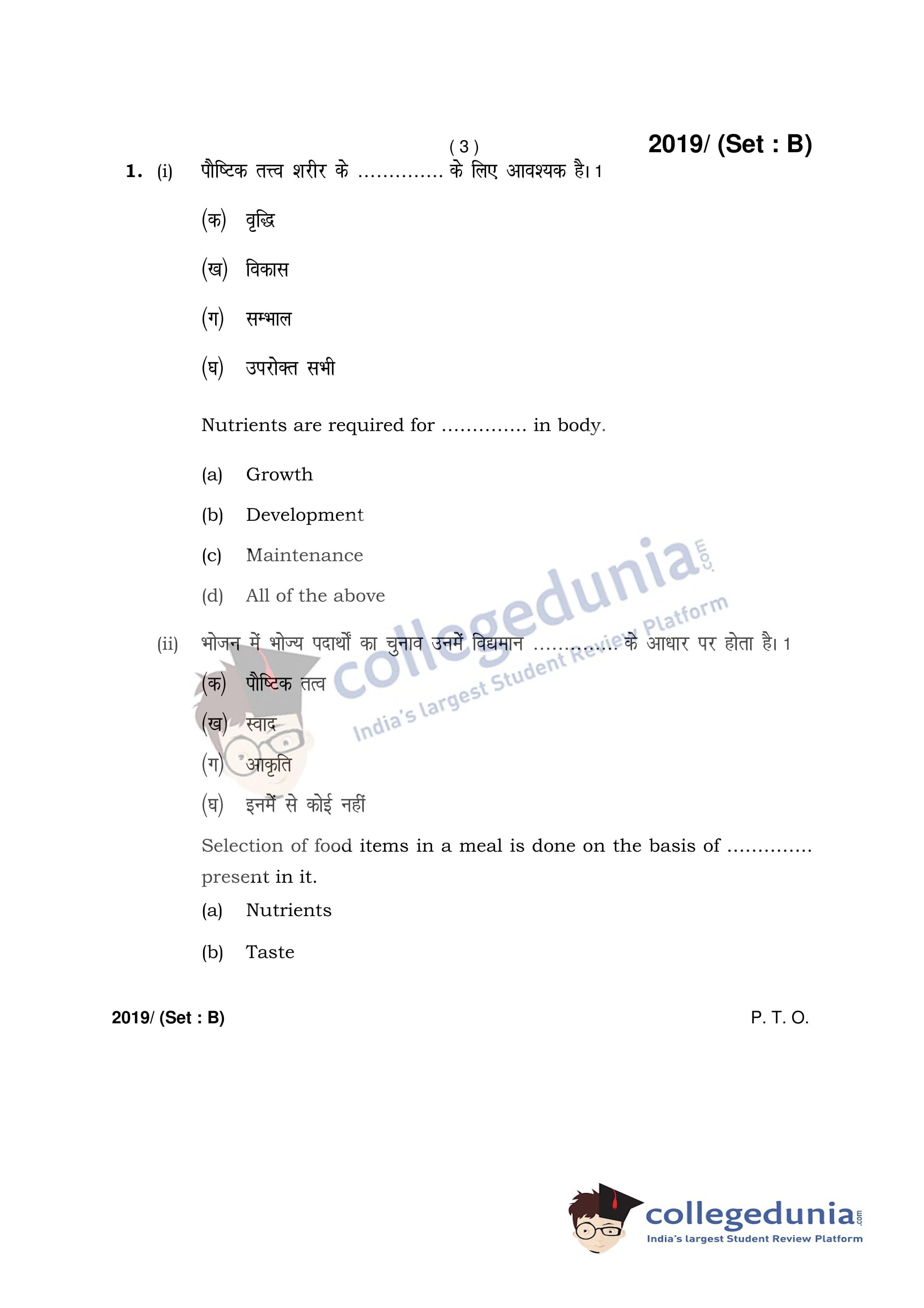 HBSE Class 12 Home Science Set B Question Paper 2017 with Answer Key (March 9)