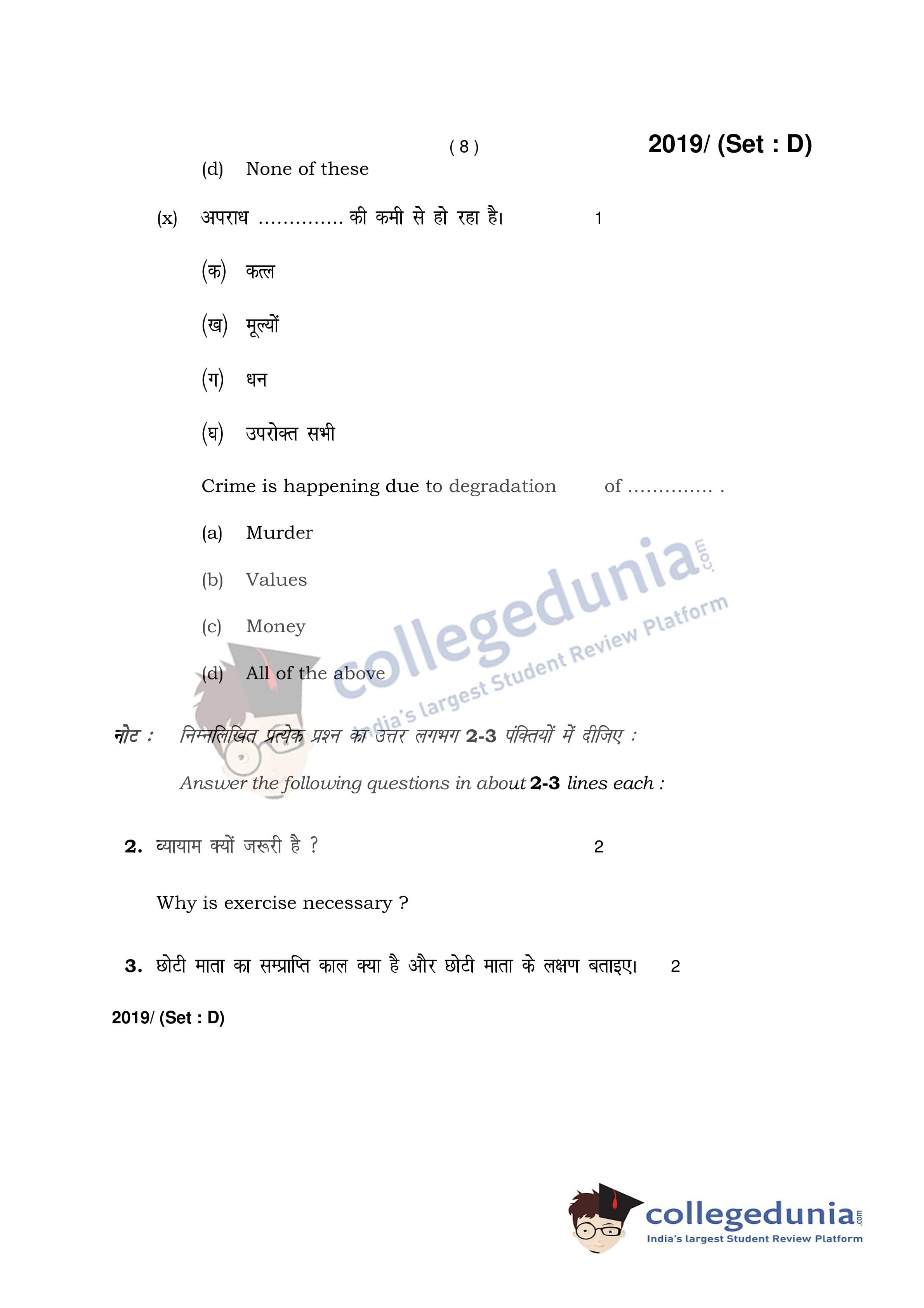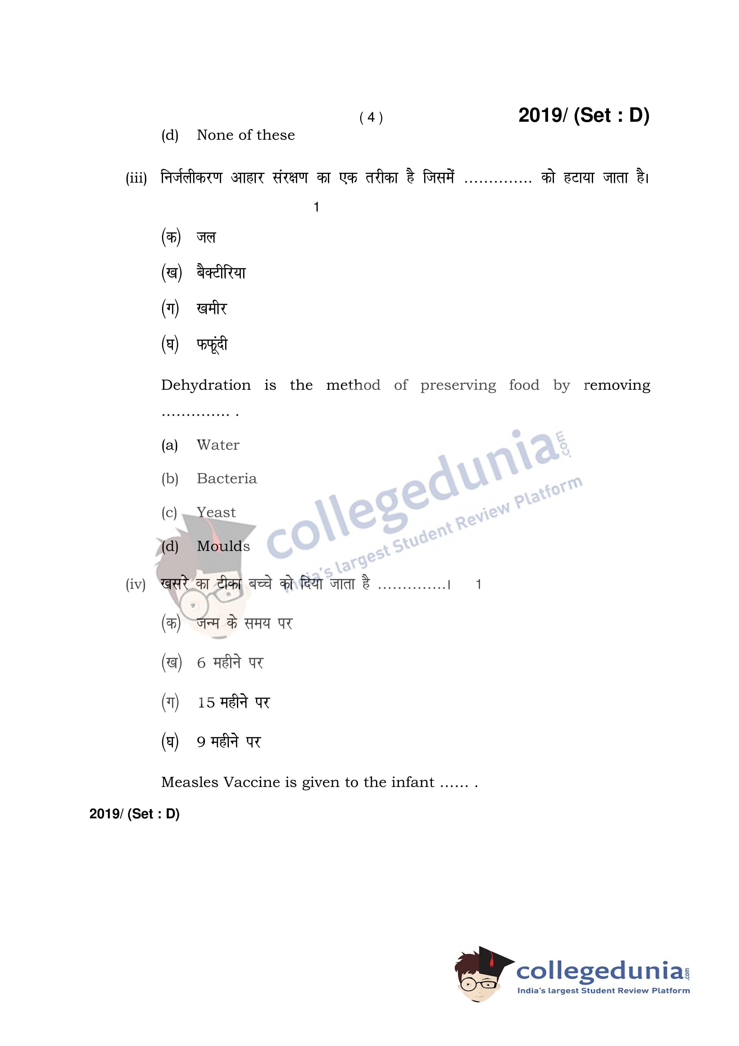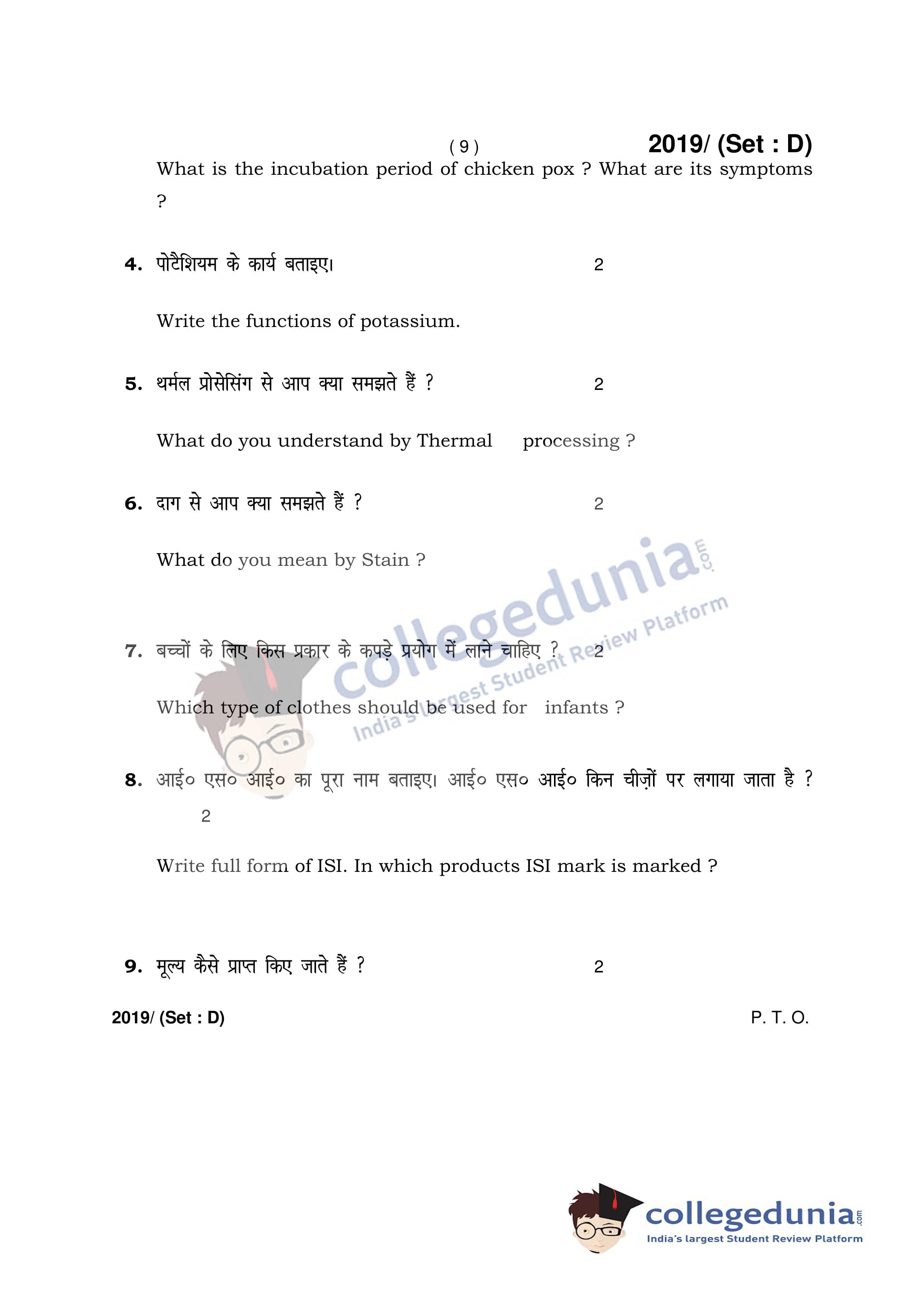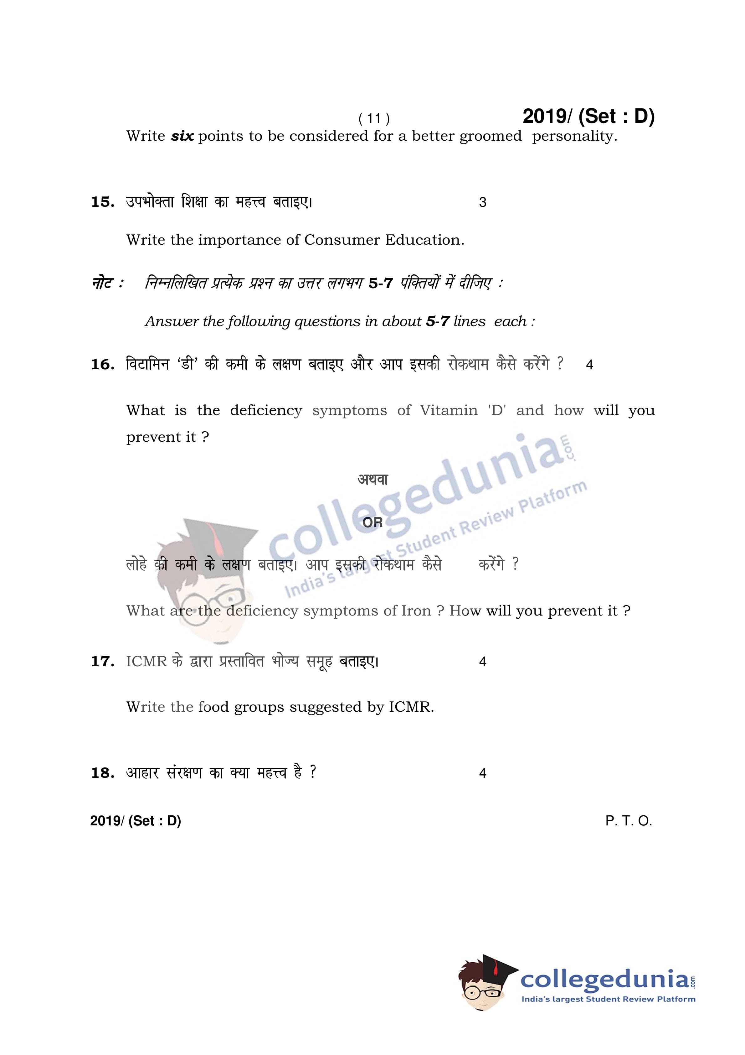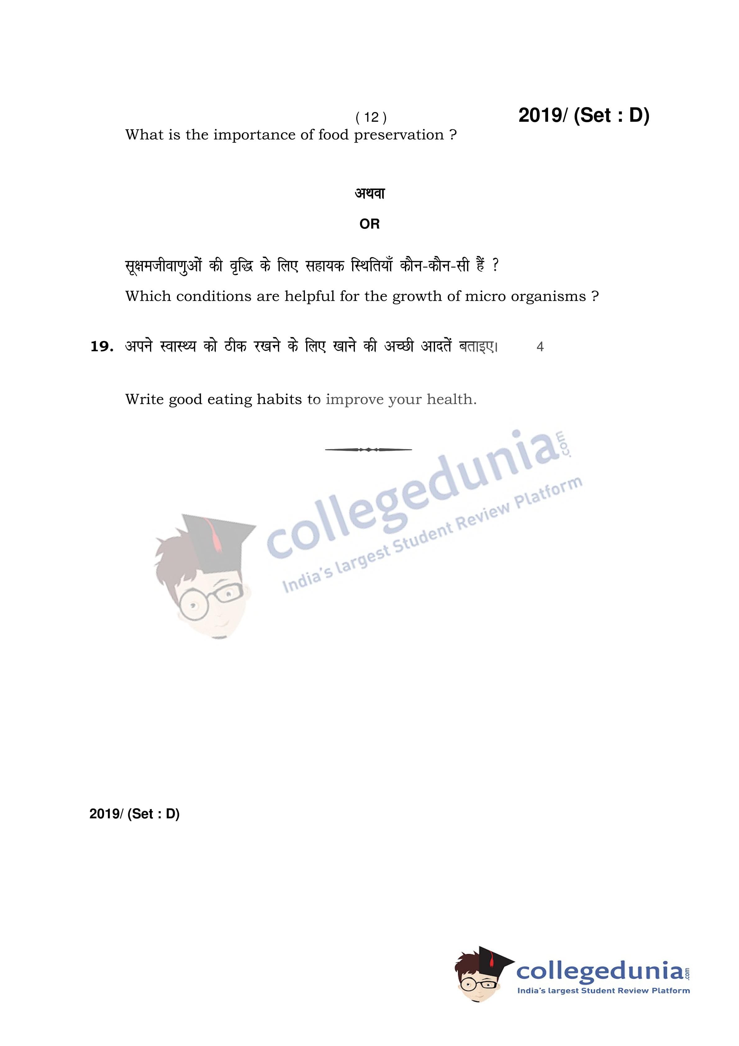 HBSE Class 12 Home Science Question Paper 2017 with Answer Key Set D is available for download. The exam was conducted by the Board of School Education Haryana on March 9, 2017 in the Afternoon Session 2 PM to 4:30 PM. The medium of paper was English and Hindi. The question paper comprised a total of 19 questions.