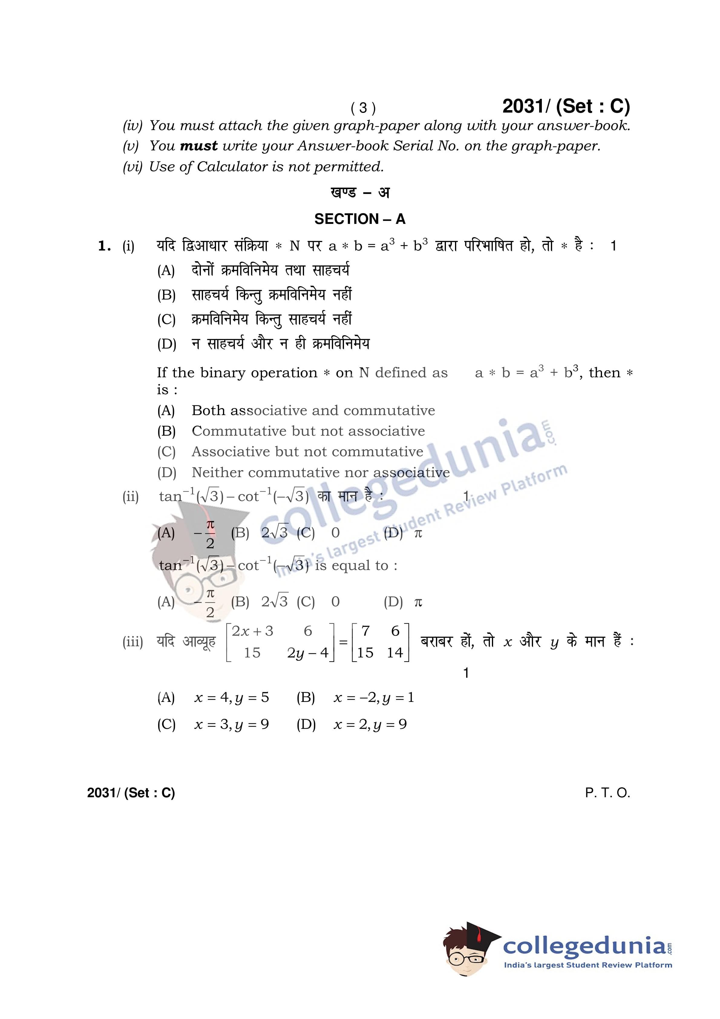HBSE Class 12 Mathematics Set C Question Paper 2017 with Answer Key (March 28)
