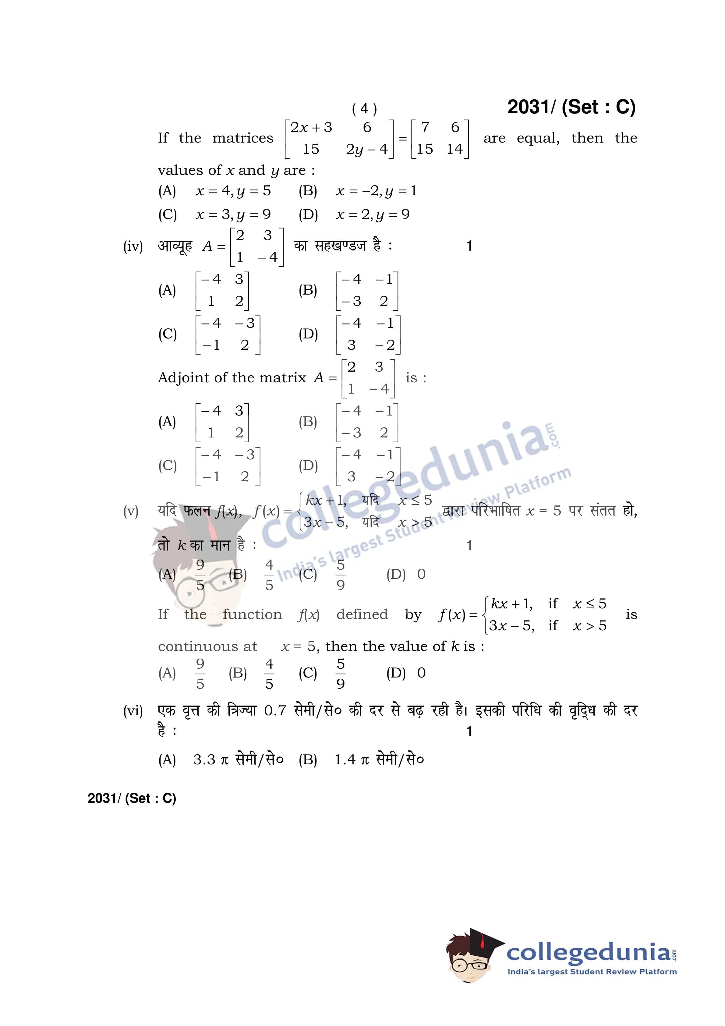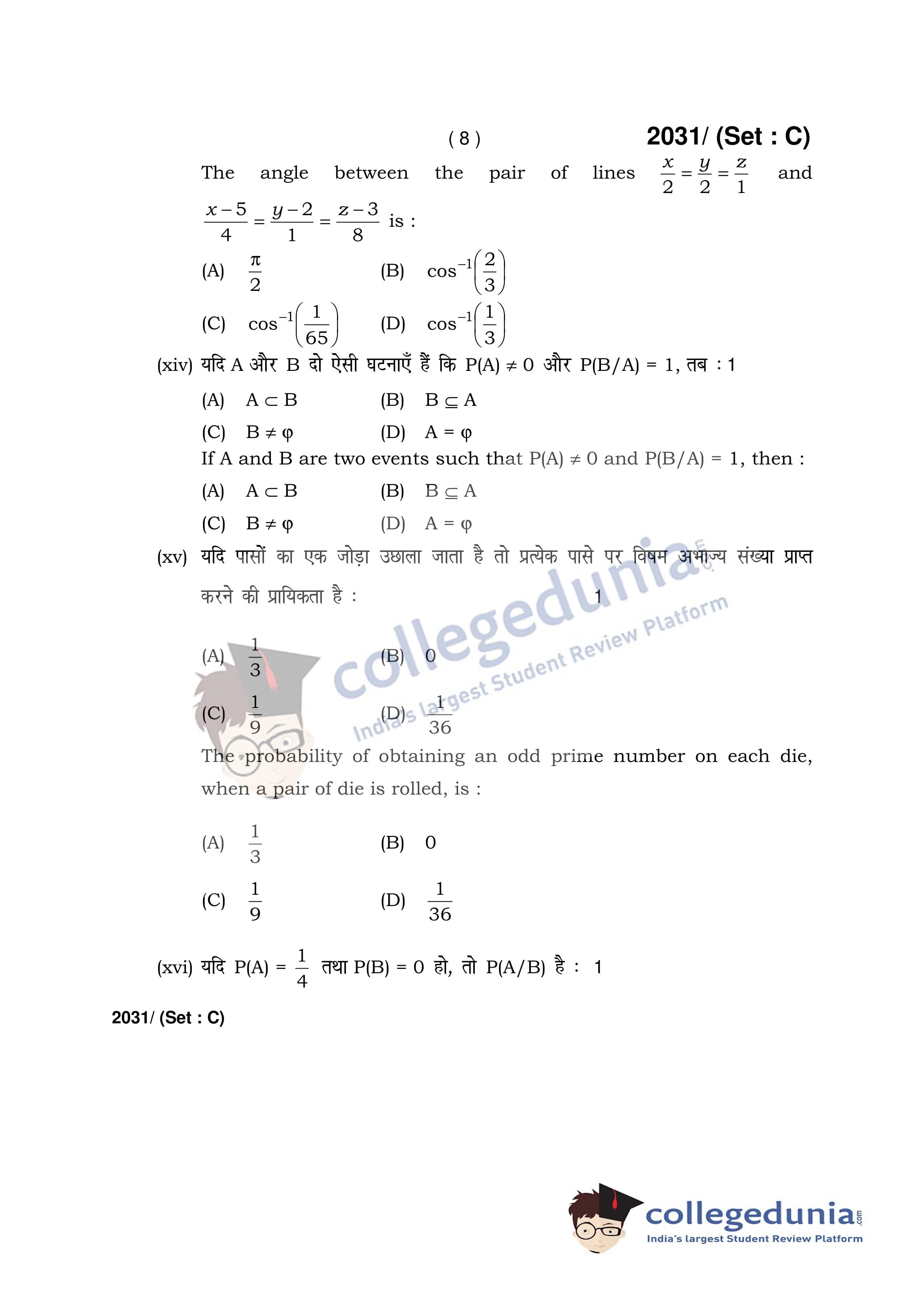 HBSE Class 12 Mathematics Question Paper 2017 with Answer Key Set C is available for download. The exam was conducted by the Board of School Education Haryana on March 28, 2017 in the Afternoon Session 2 PM to 4:30 PM. The medium of paper was English and Hindi. The question paper comprised a total of 20 questions.