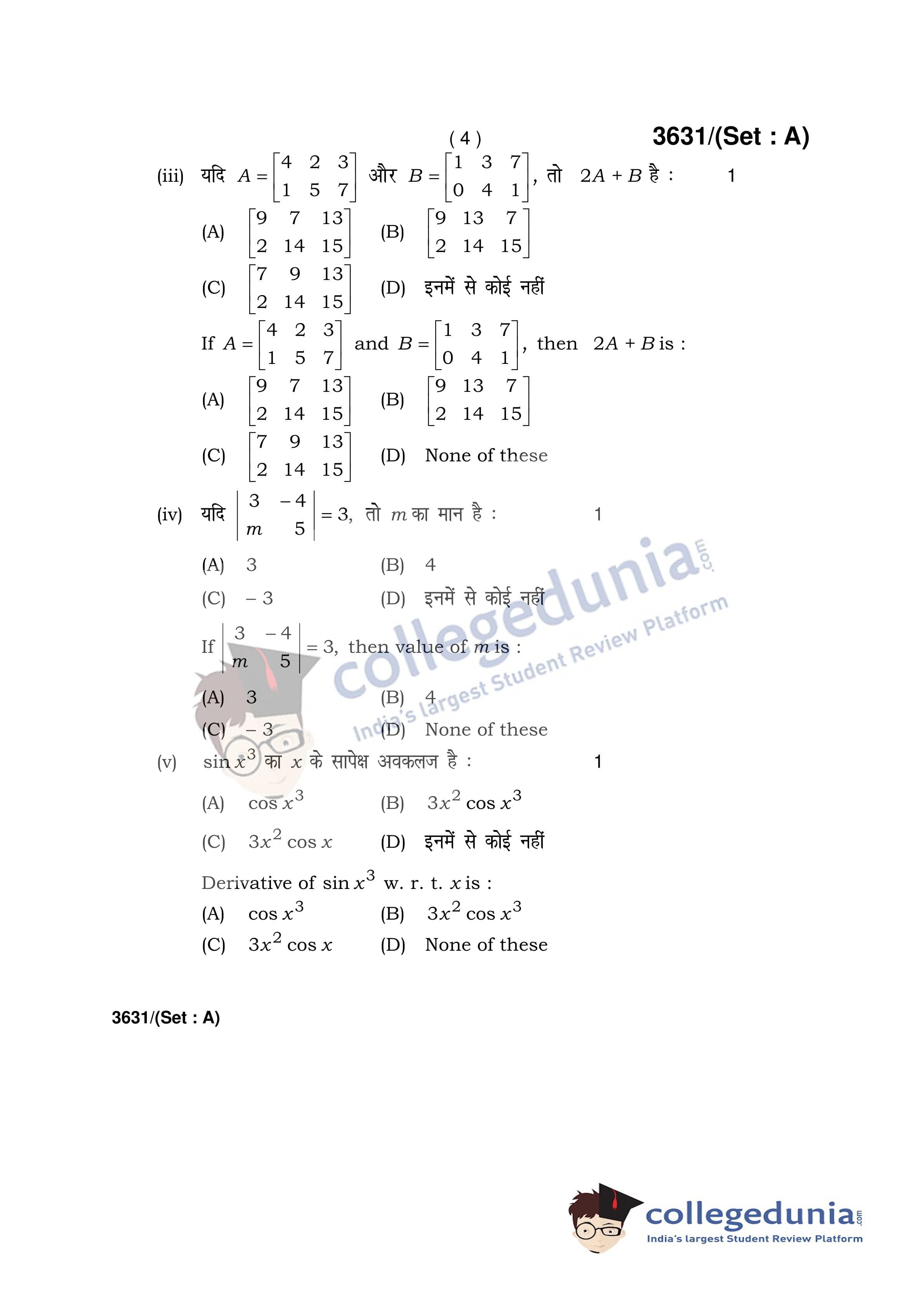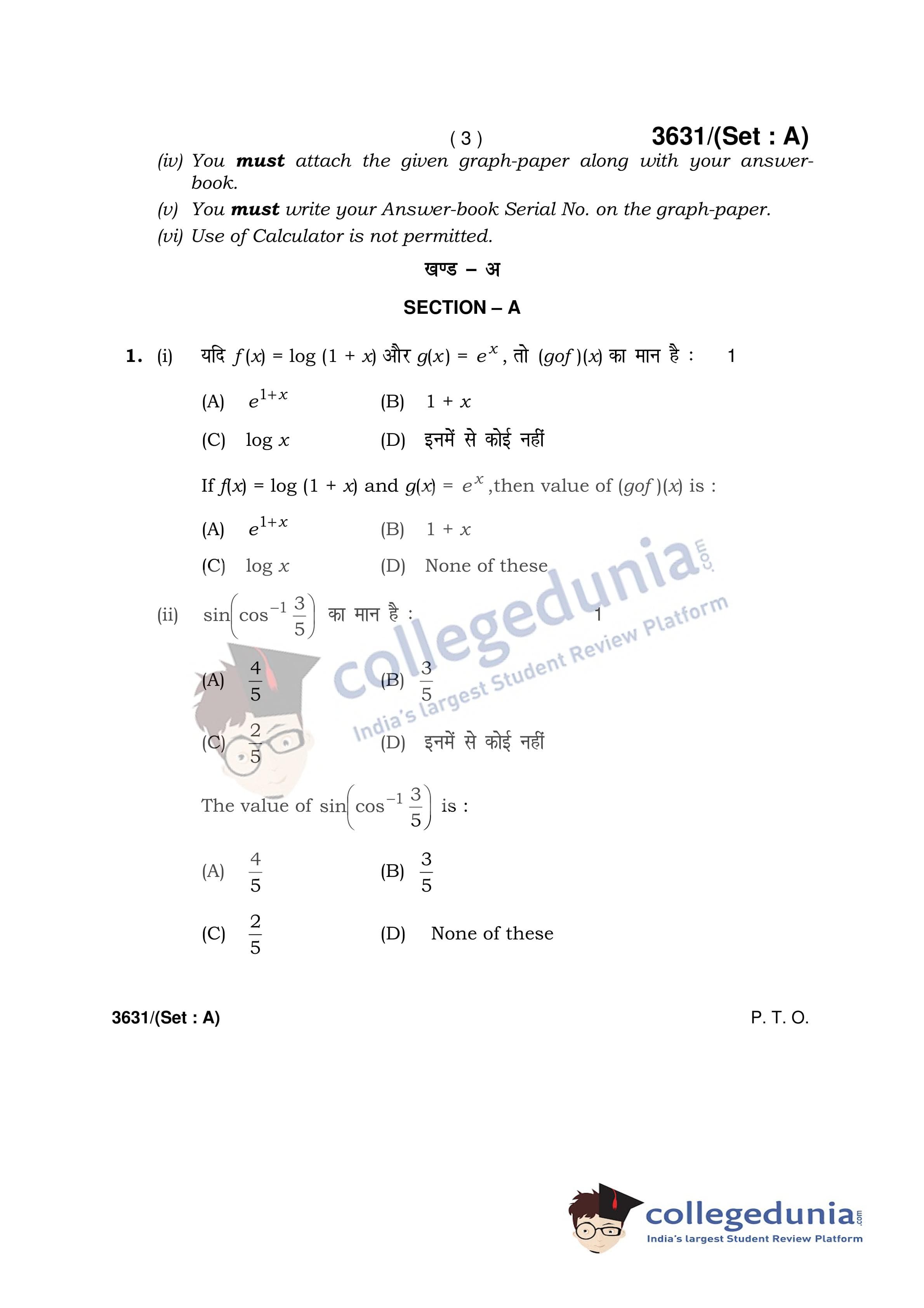 HBSE Class 12 Mathematics Question Paper 2018 with Answer Key Set A is available for download. The exam was conducted by the Board of School Education Haryana on March 19, 2018 in the Afternoon Session 12:30 PM to 3:30 PM. The medium of paper was English and Hindi. The question paper comprised a total of 20 questions.