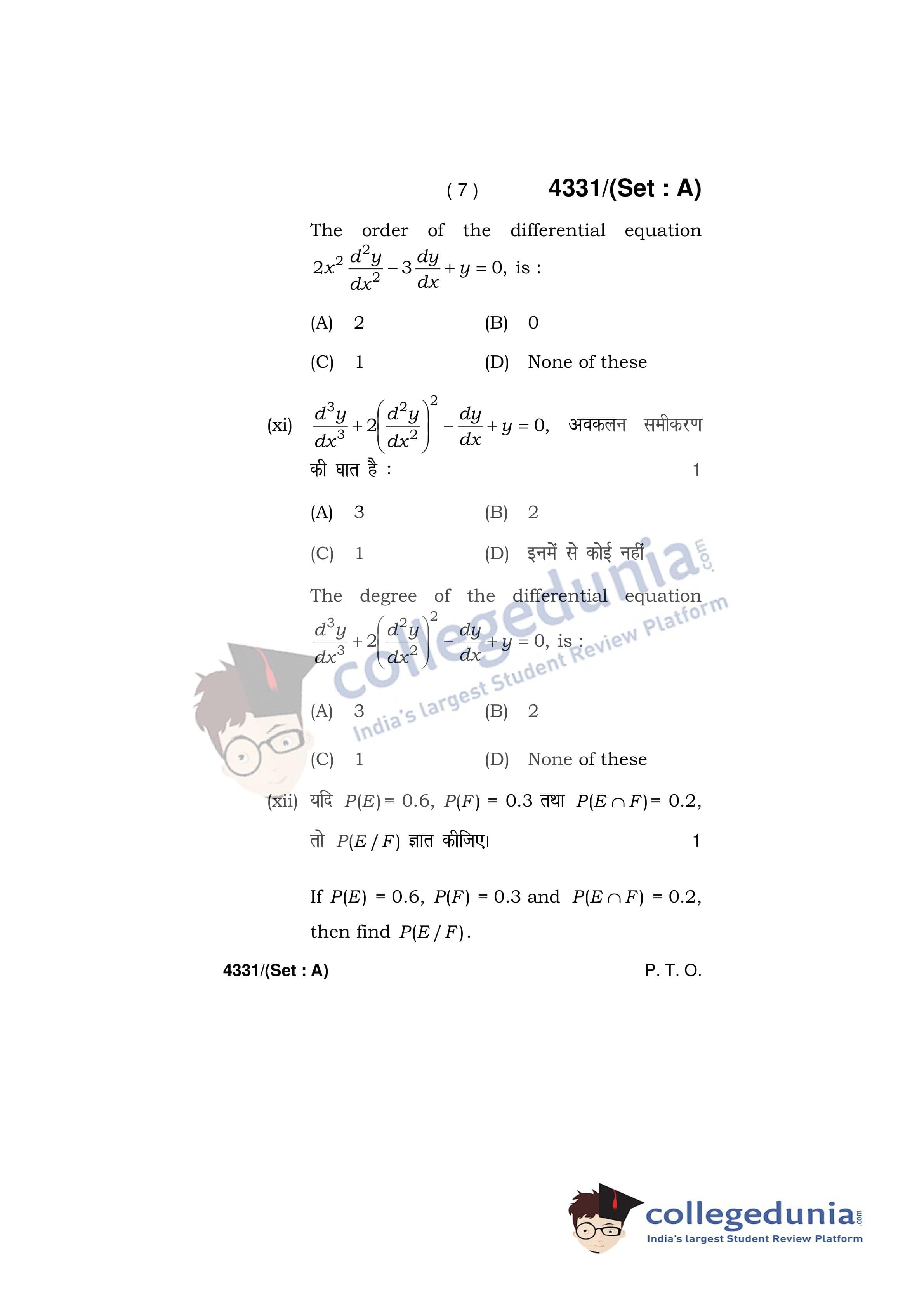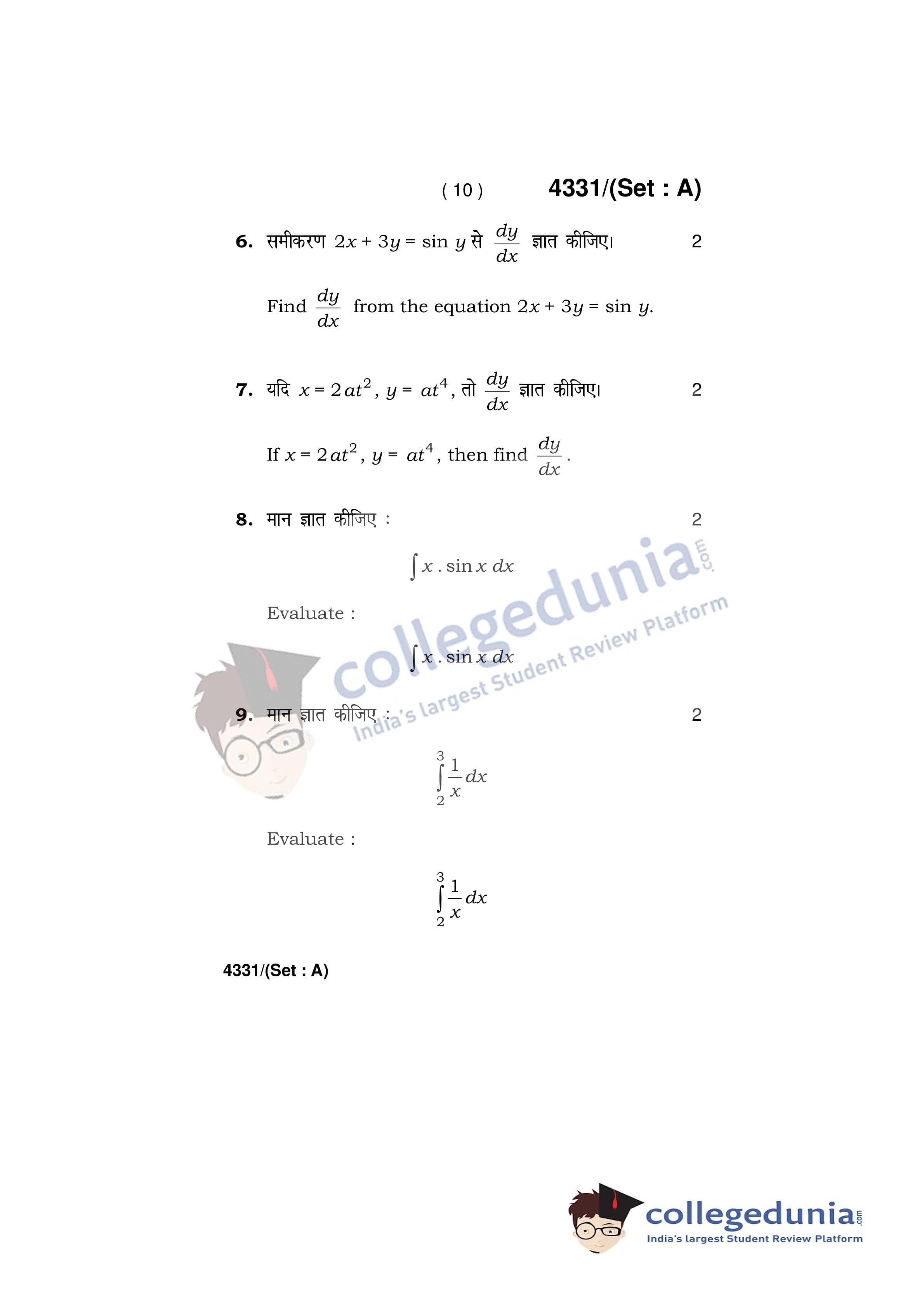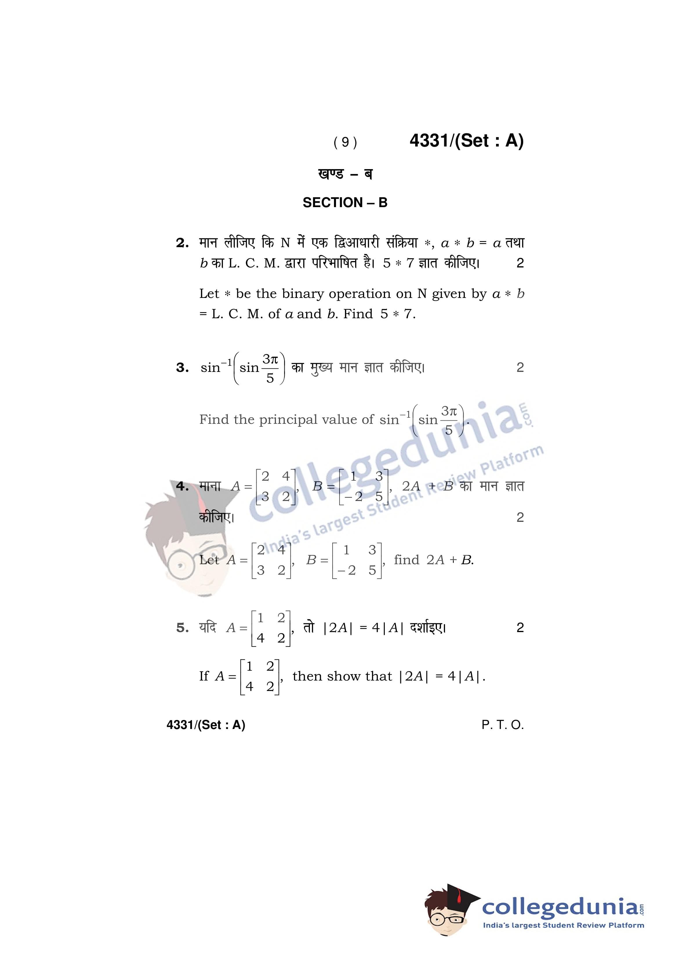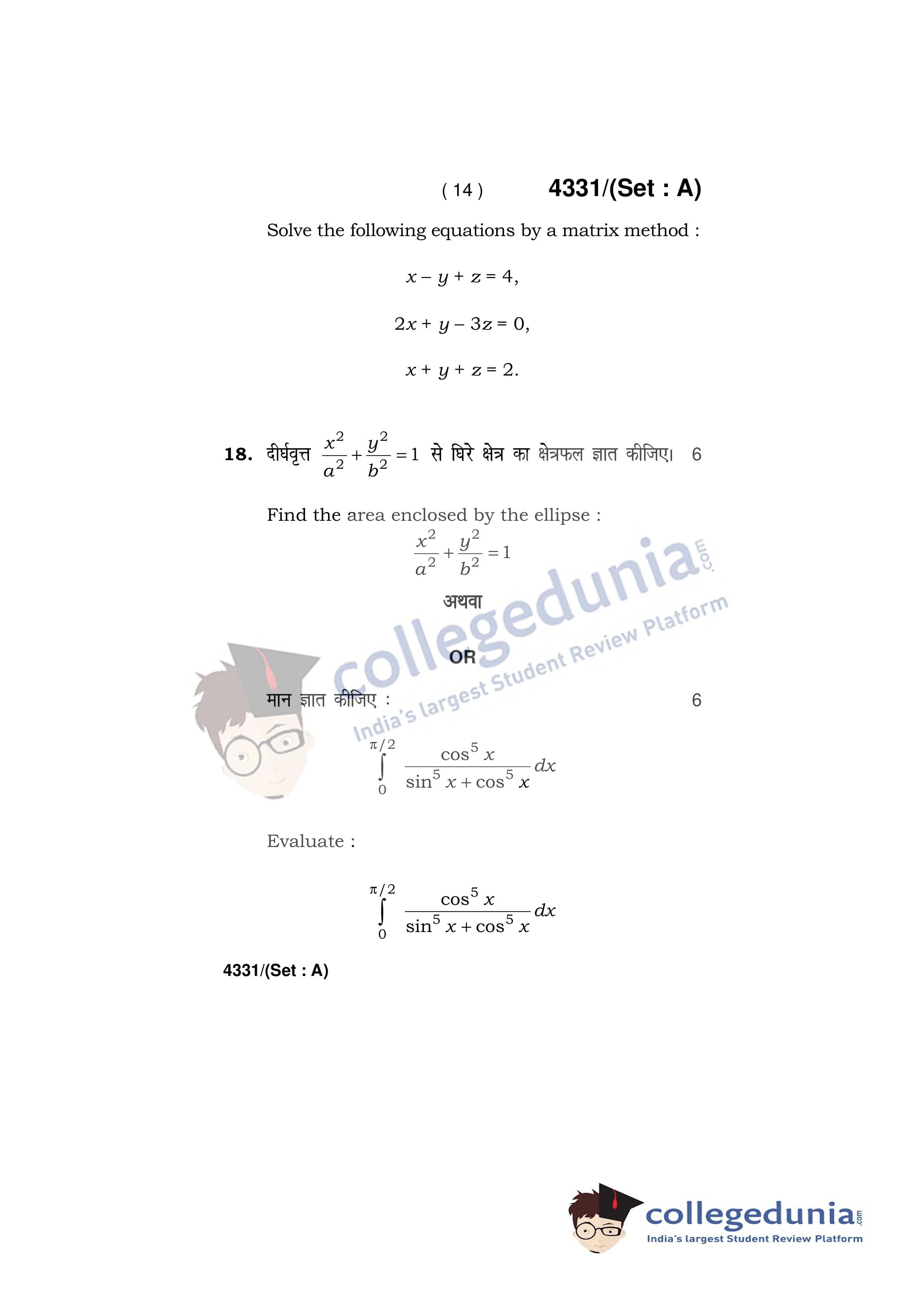 HBSE Class 12 Mathematics Set A Question Paper 2019 with Answer Key (March 18)