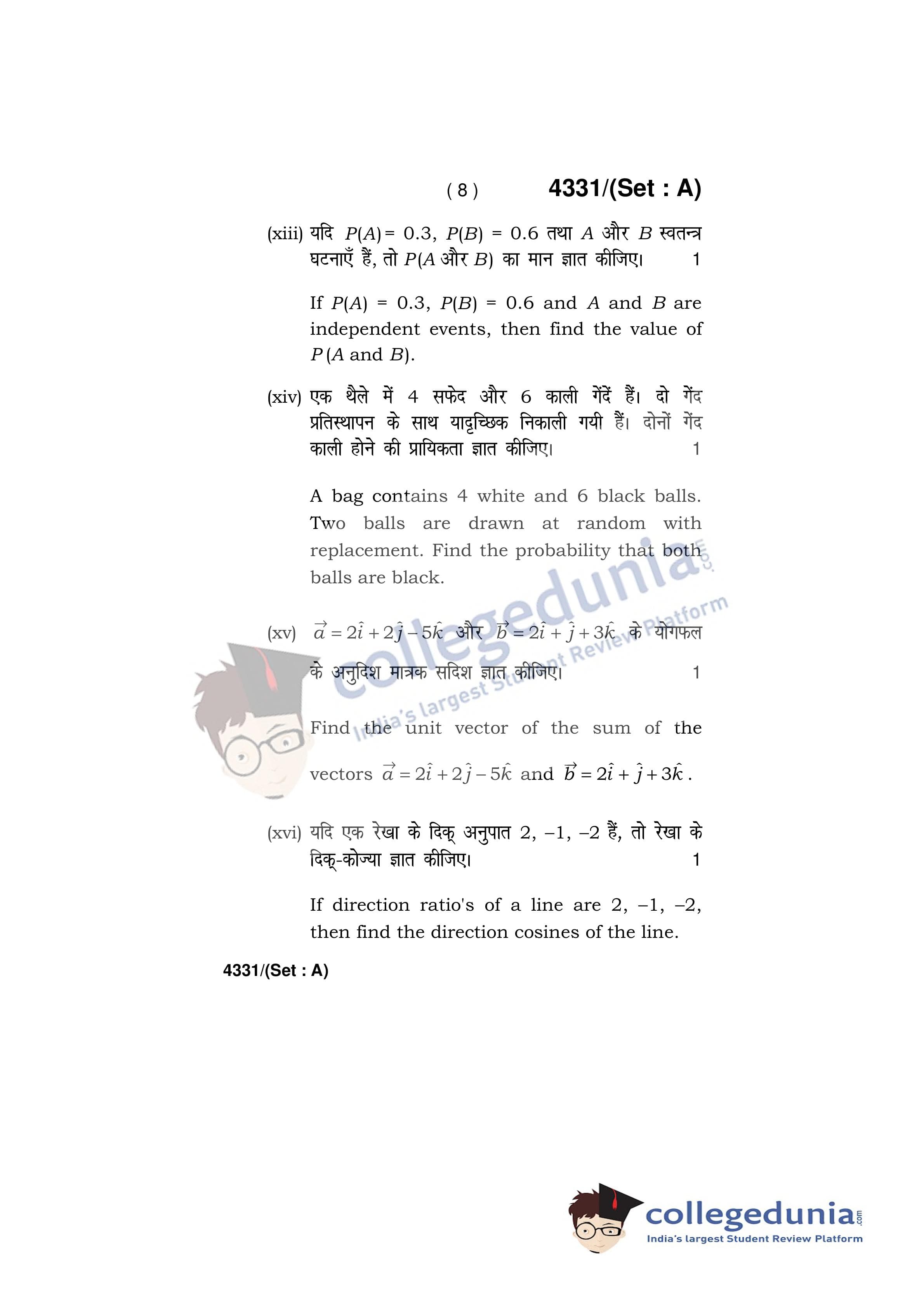 HBSE Class 12 Mathematics Question Paper 2019 with Answer Key Set A is available for download. The exam was conducted by the Board of School Education Haryana on March 18, 2019 in the Afternoon Session 12:30 PM to 3:30 PM. The medium of paper was English and Hindi. The question paper comprised a total of 20 questions.