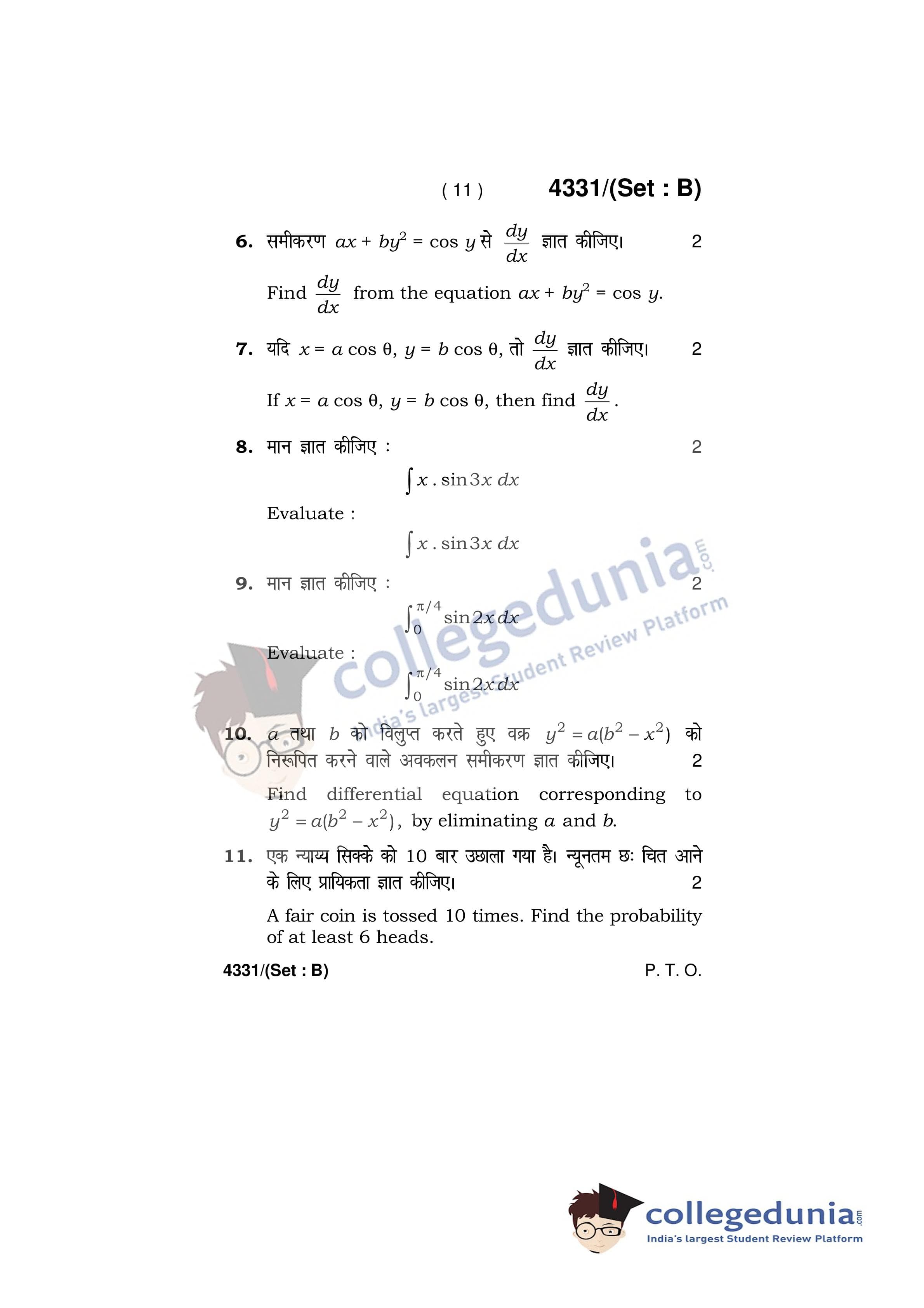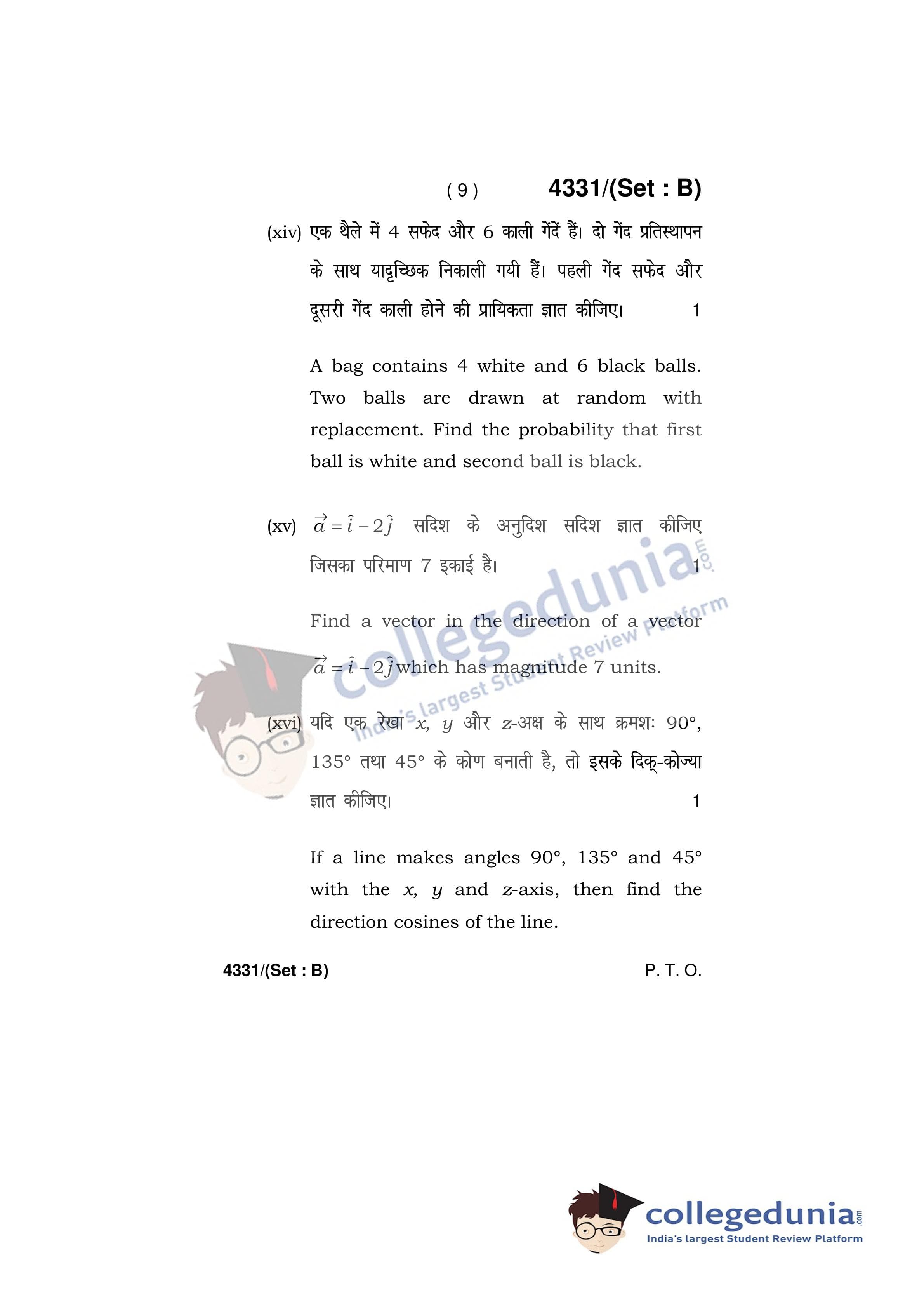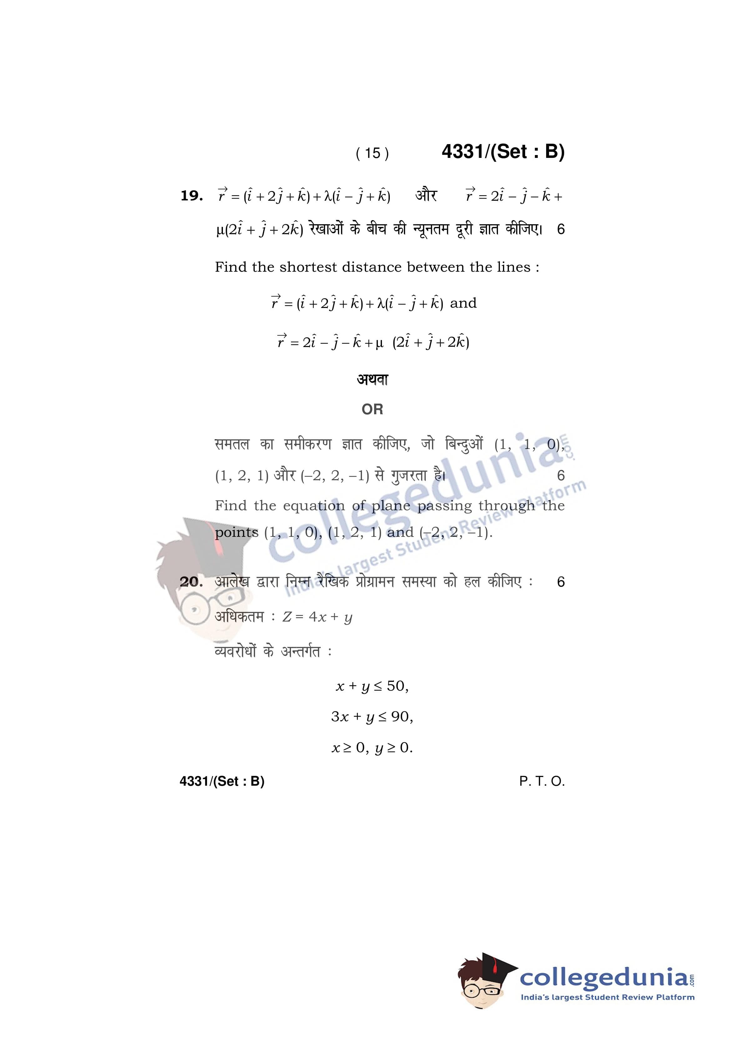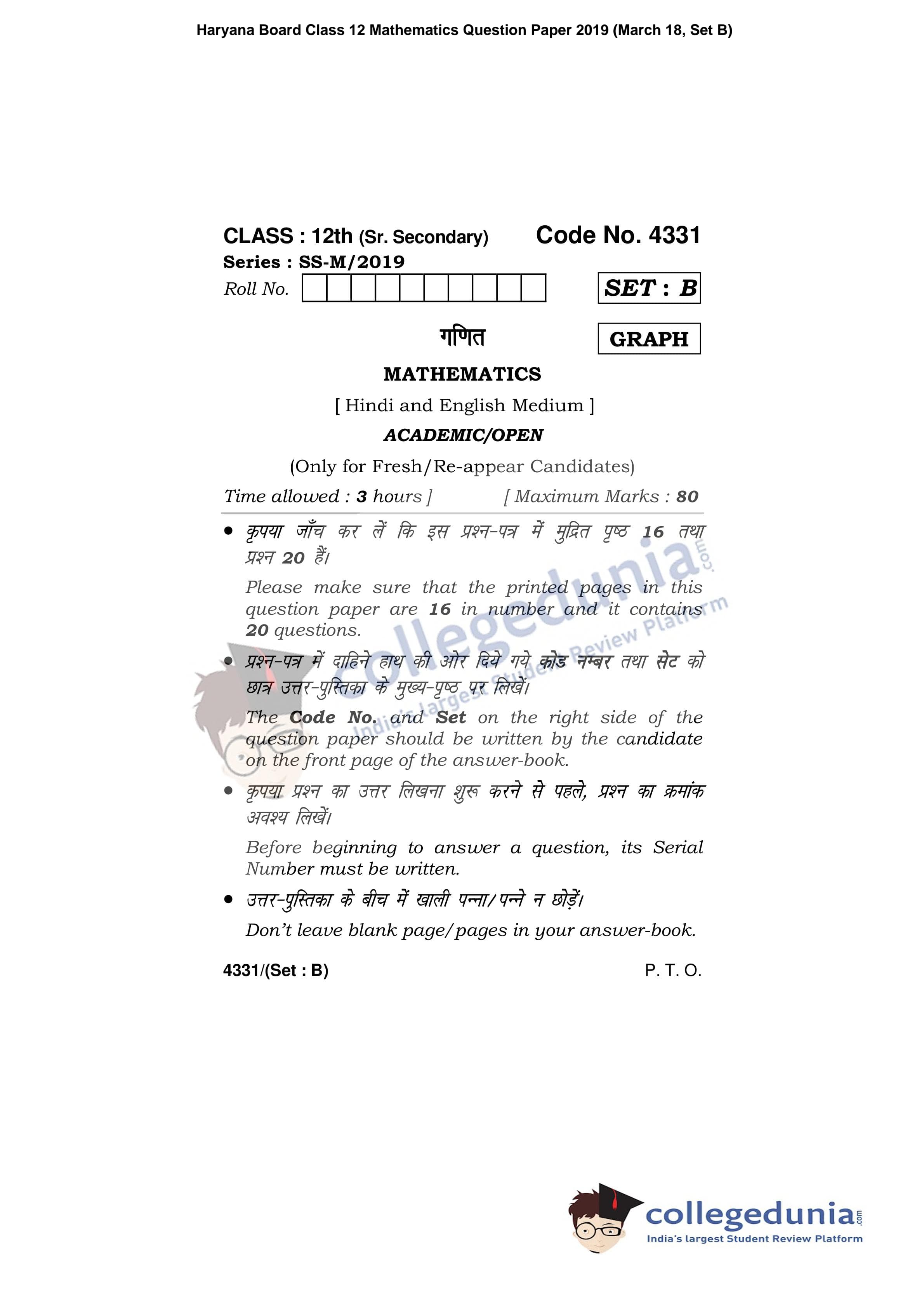 HBSE Class 12 Mathematics Question Paper 2019 with Answer Key Set B is available for download. The exam was conducted by the Board of School Education Haryana on March 18, 2019 in the Afternoon Session 12:30 PM to 3:30 PM. The medium of paper was English and Hindi. The question paper comprised a total of 20 questions.