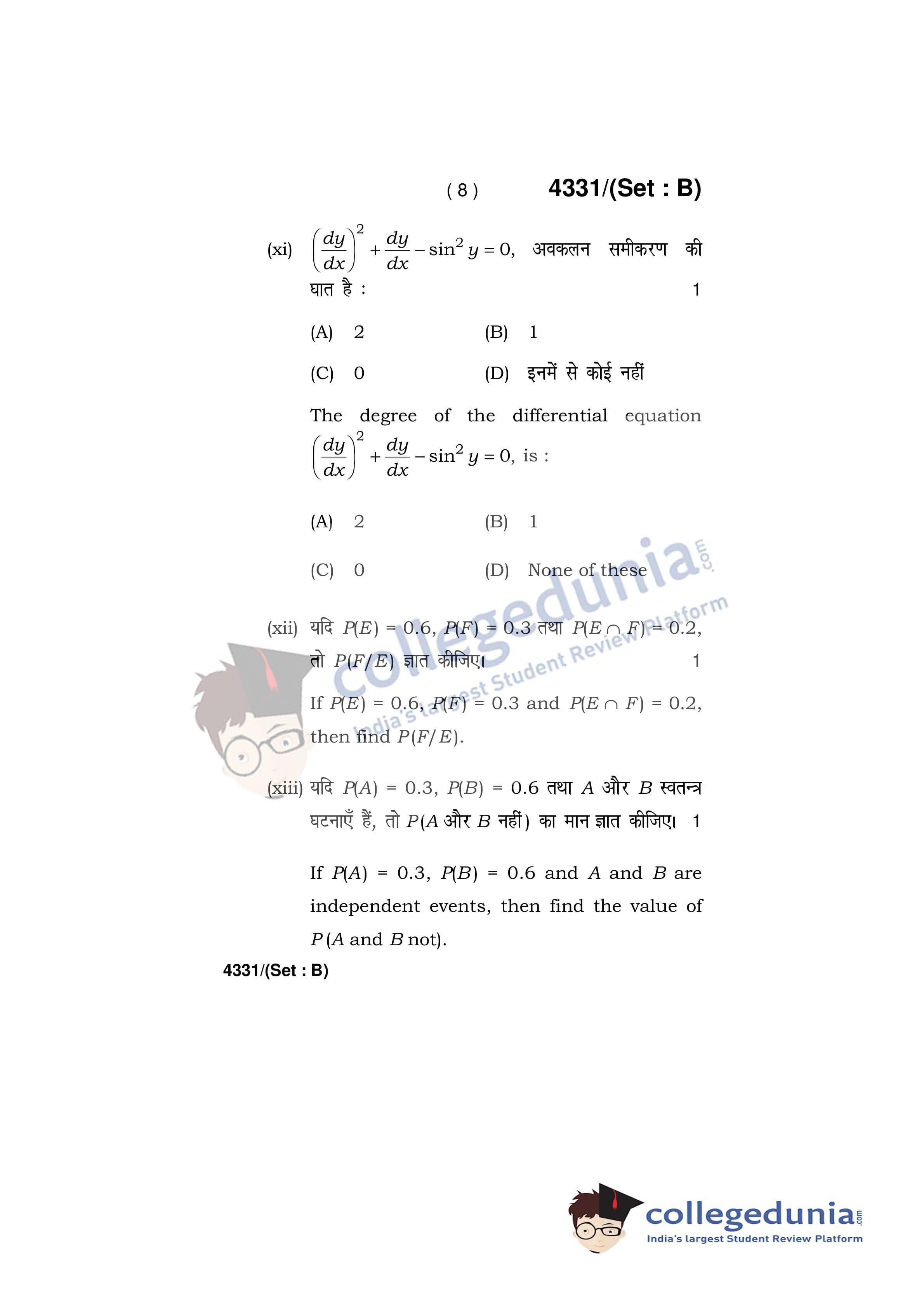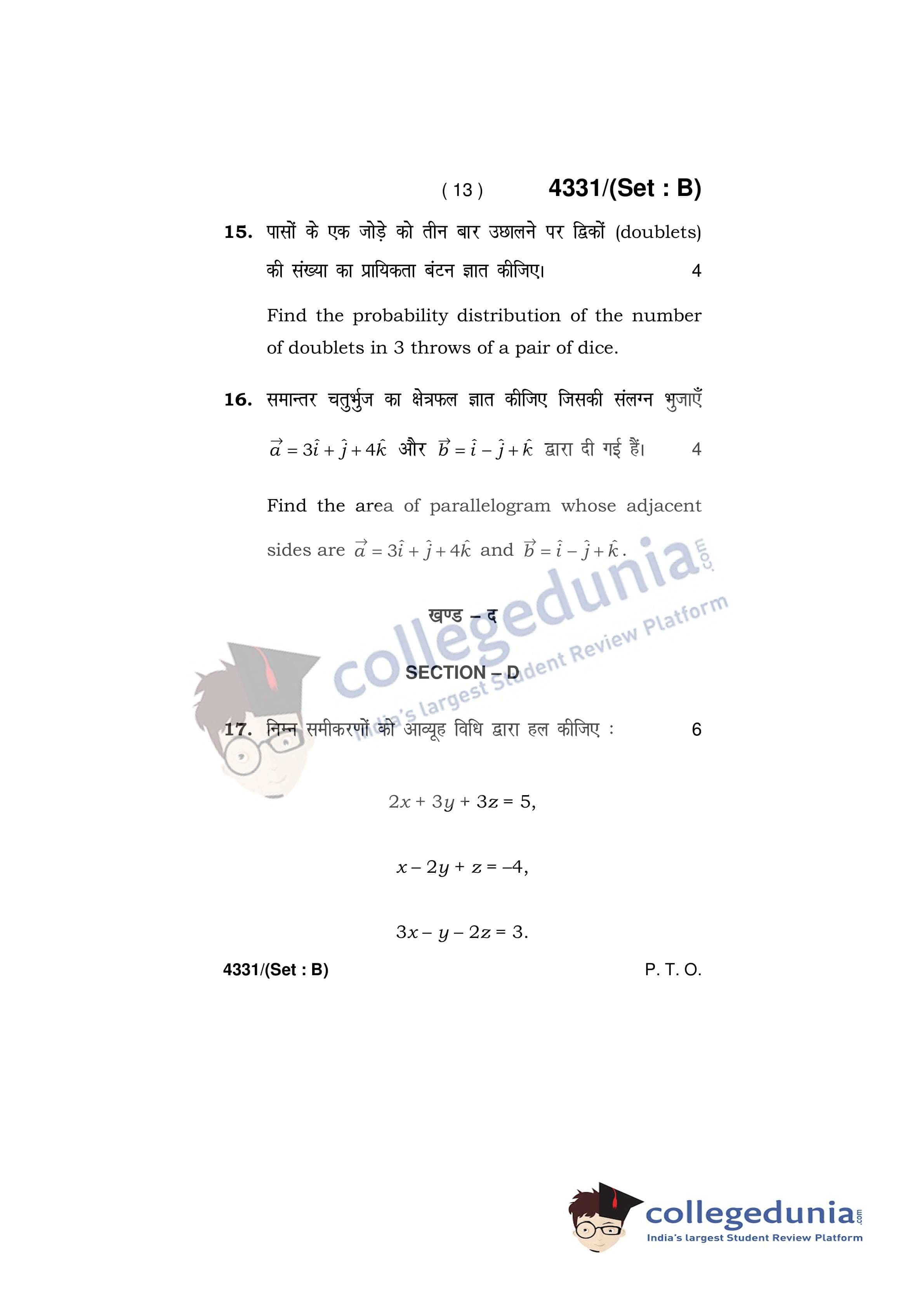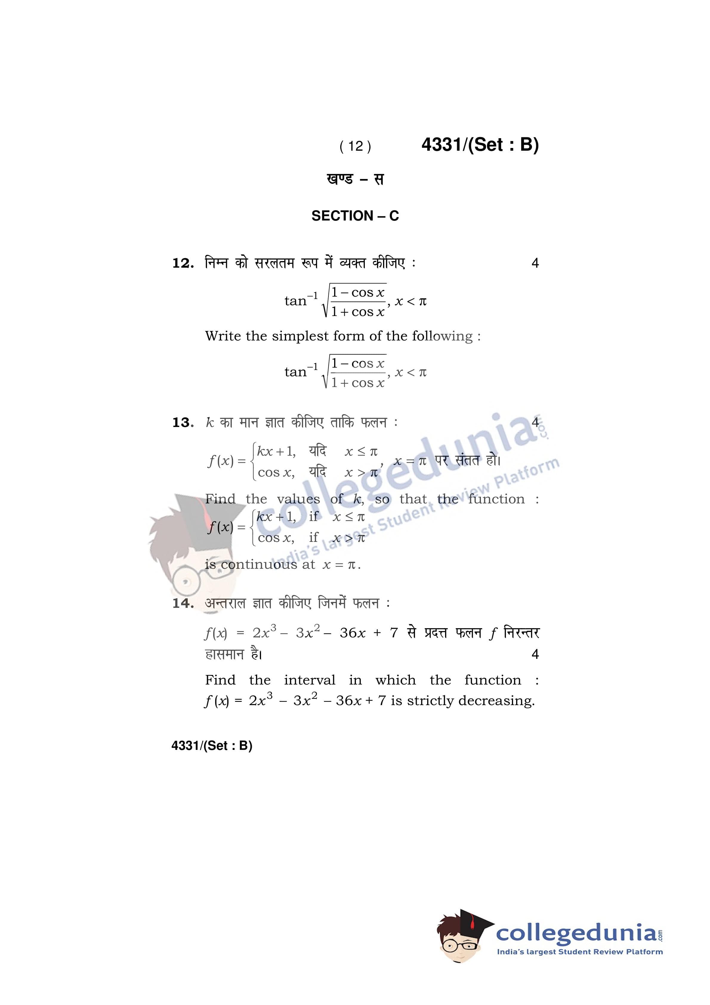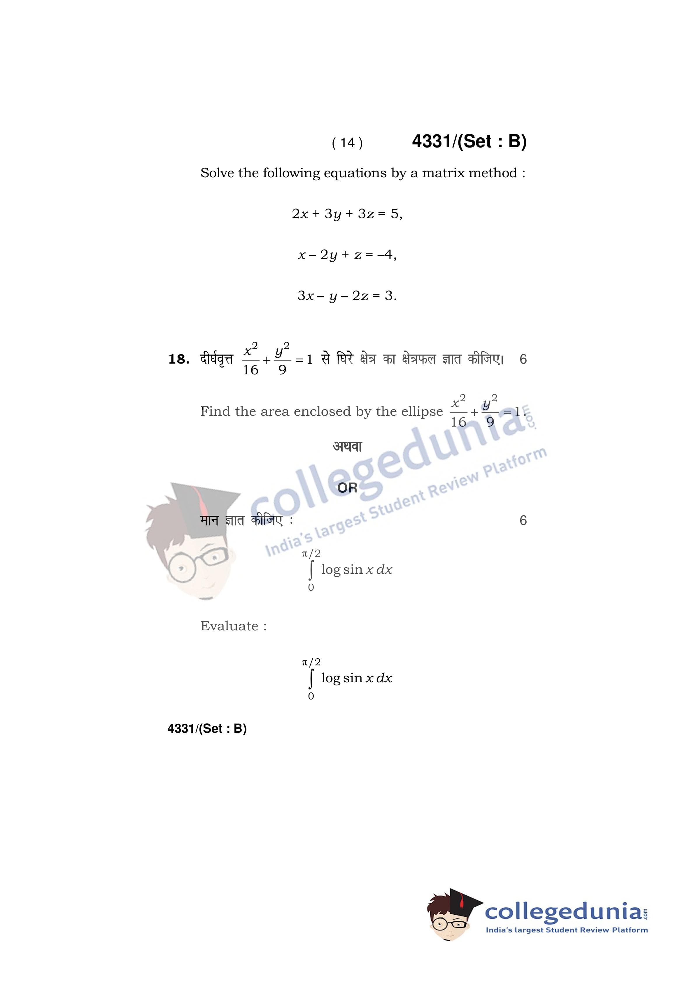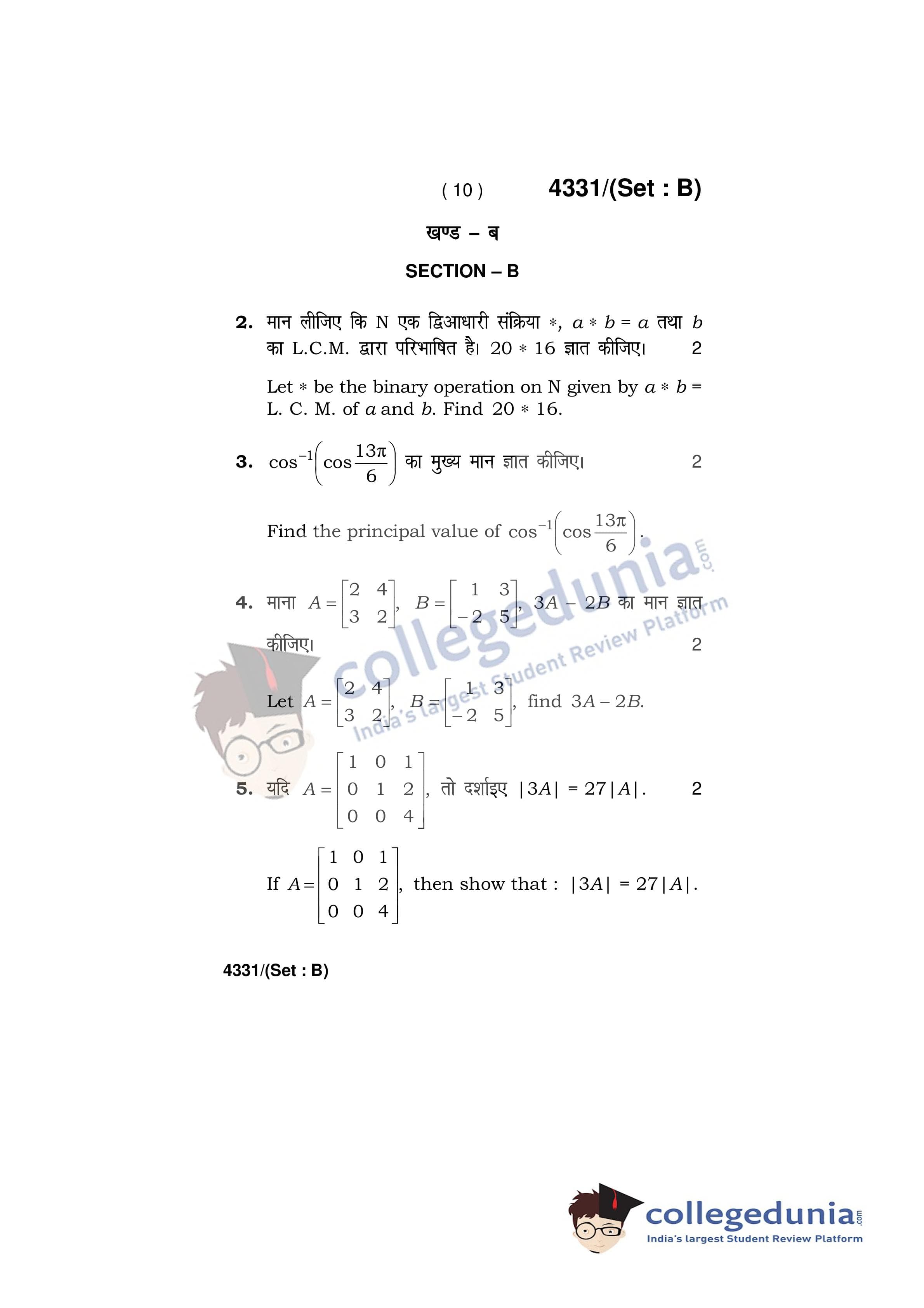 HBSE Class 12 Mathematics Set B Question Paper 2019 with Answer Key (March 18)