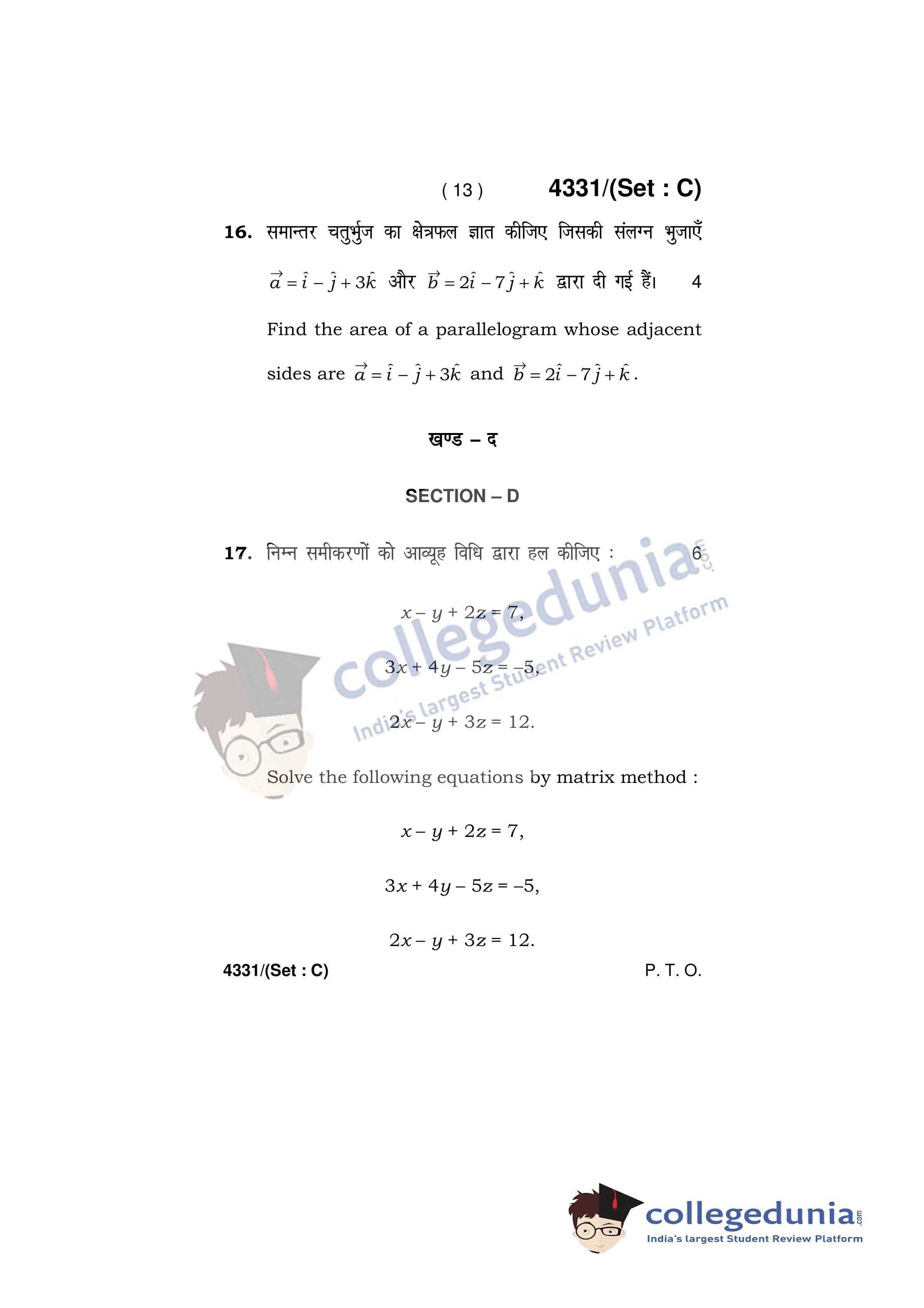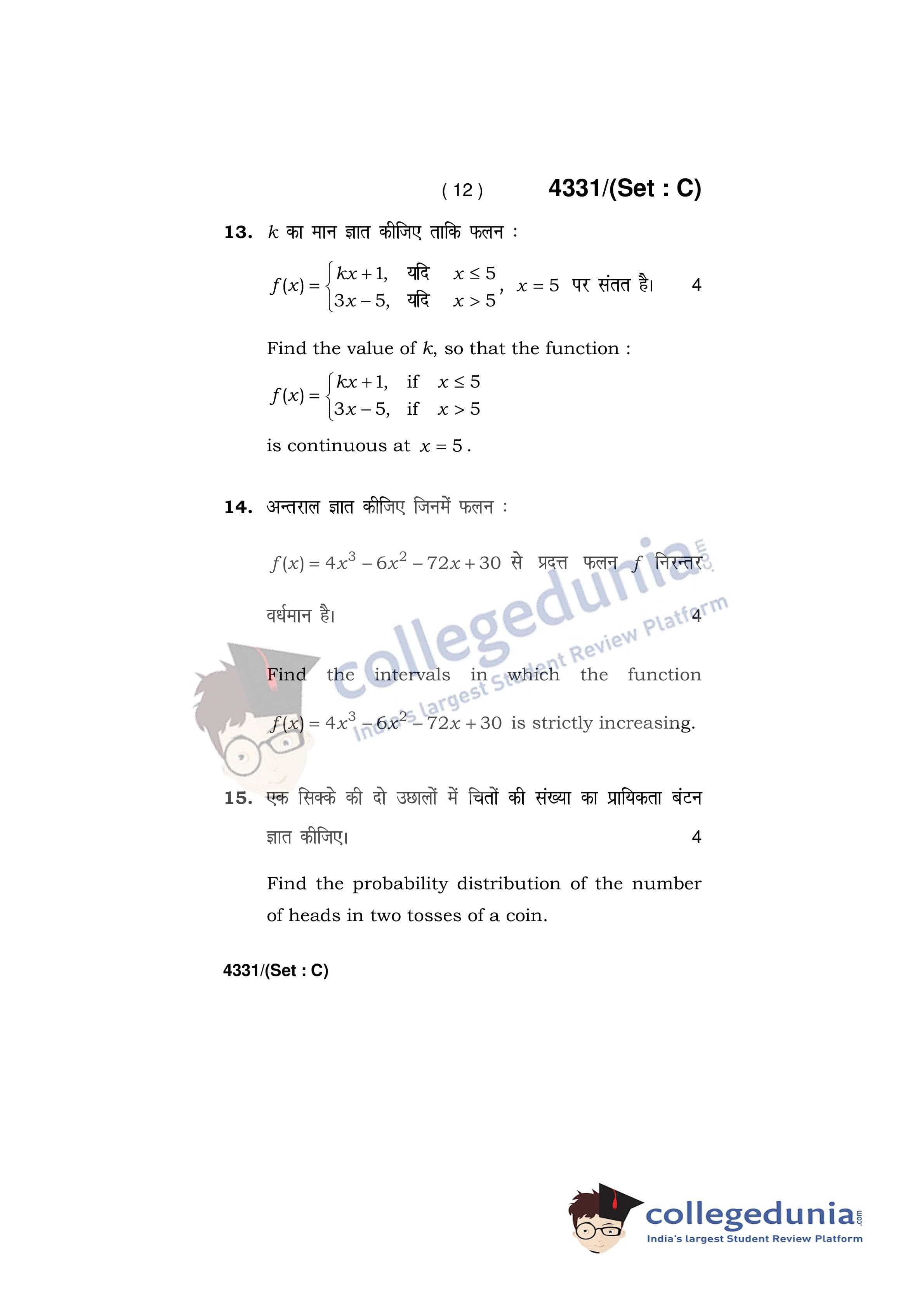 HBSE Class 12 Mathematics Set C Question Paper 2019 with Answer Key (March 18)
