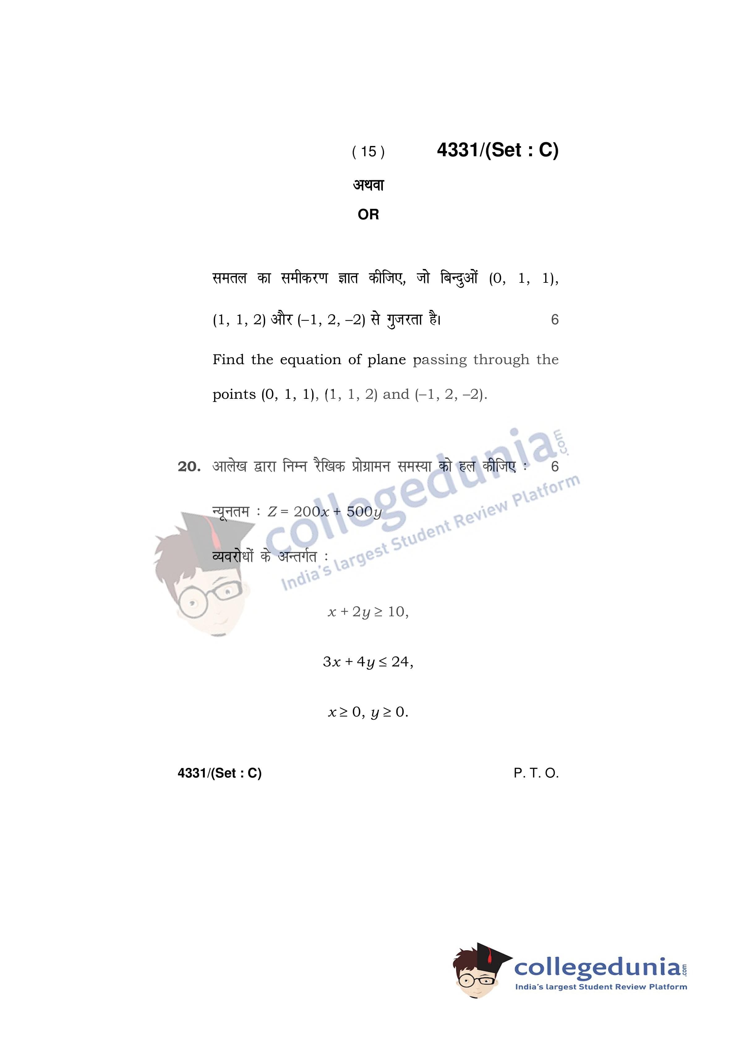 HBSE Class 12 Mathematics Question Paper 2019 with Answer Key Set C is available for download. The exam was conducted by the Board of School Education Haryana on March 18, 2019 in the Afternoon Session 12:30 PM to 3:30 PM. The medium of paper was English and Hindi. The question paper comprised a total of 20 questions.