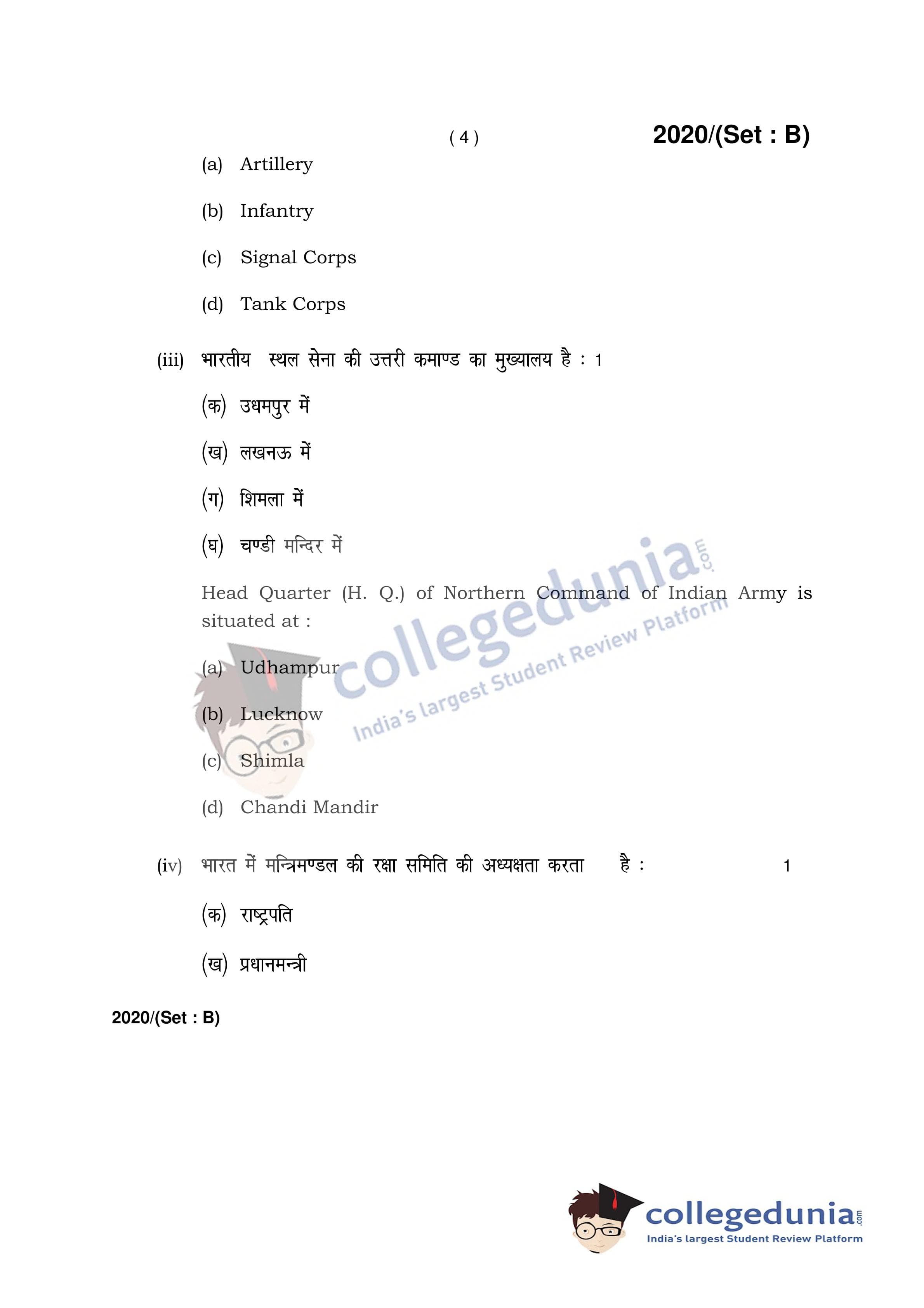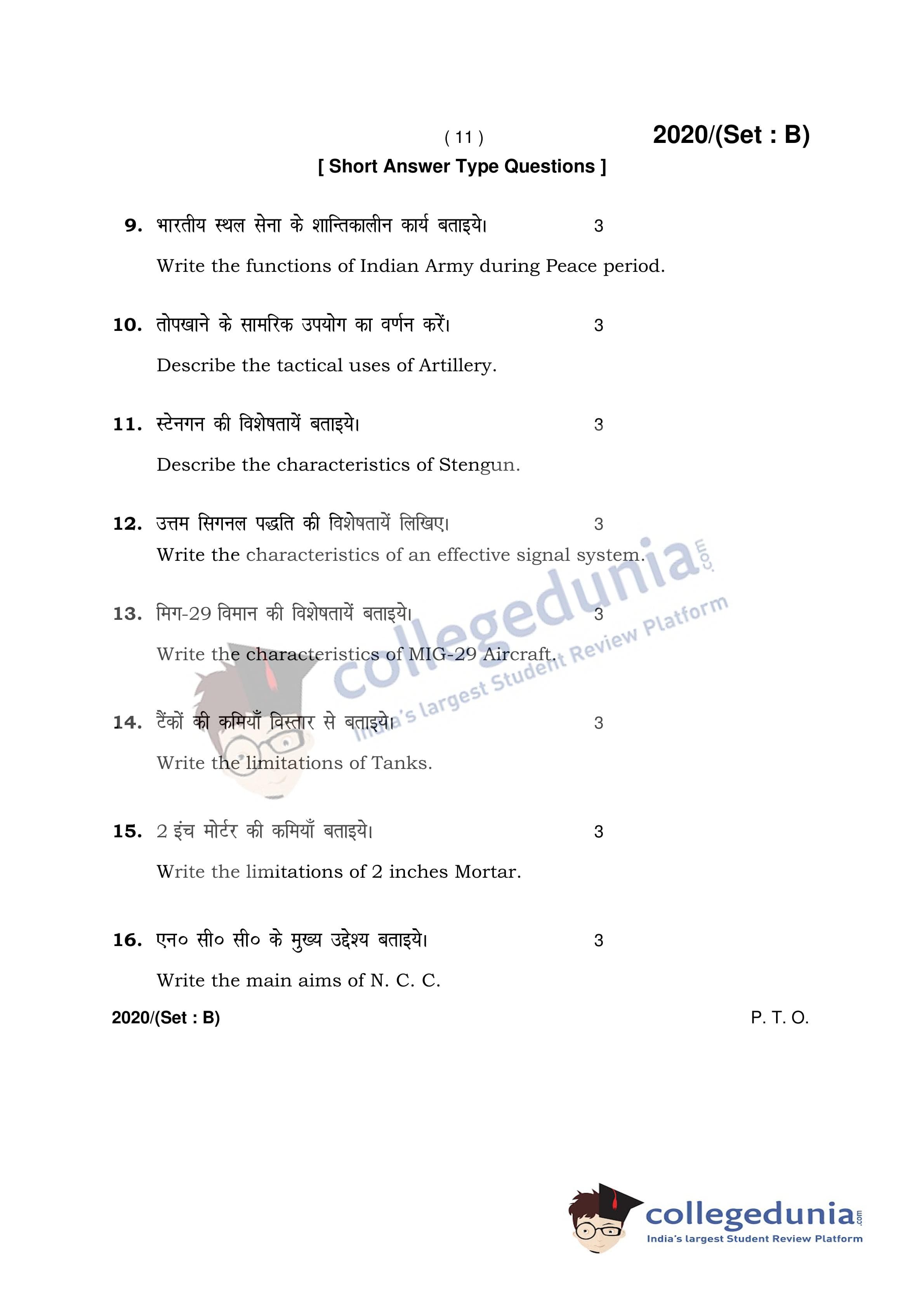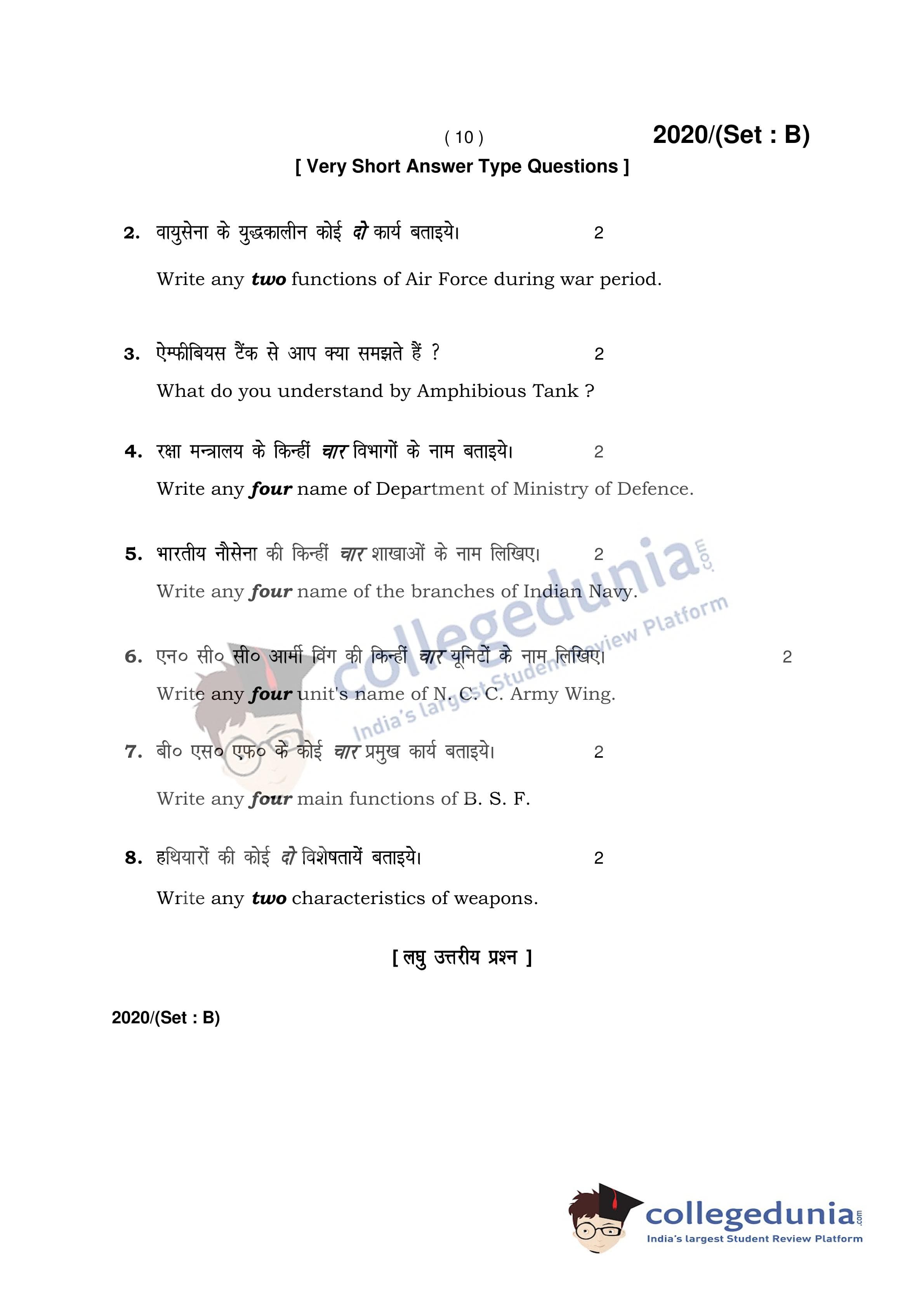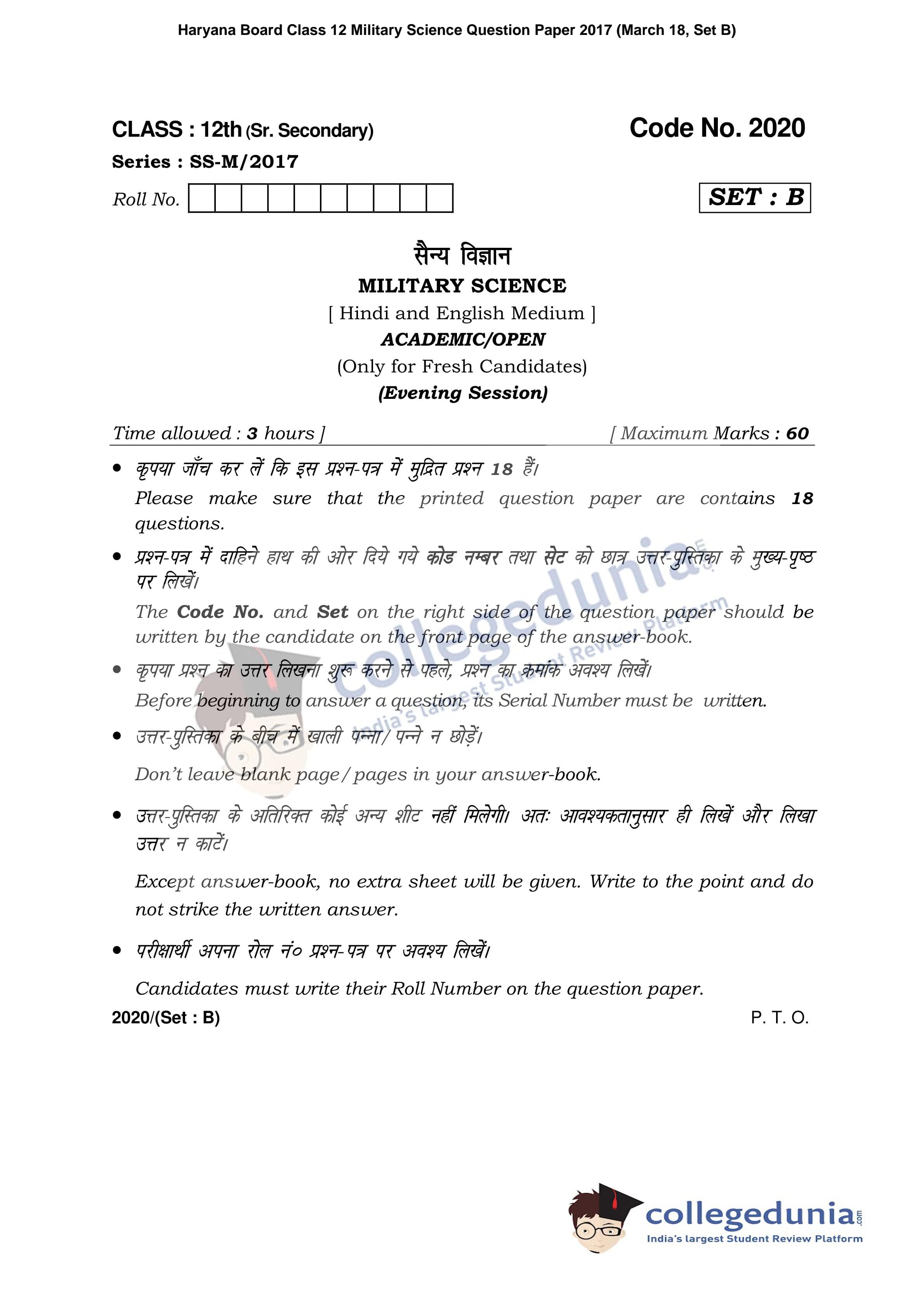 HBSE Class 12 Military Science Set B Question Paper 2017 with Answer Key (March 18)