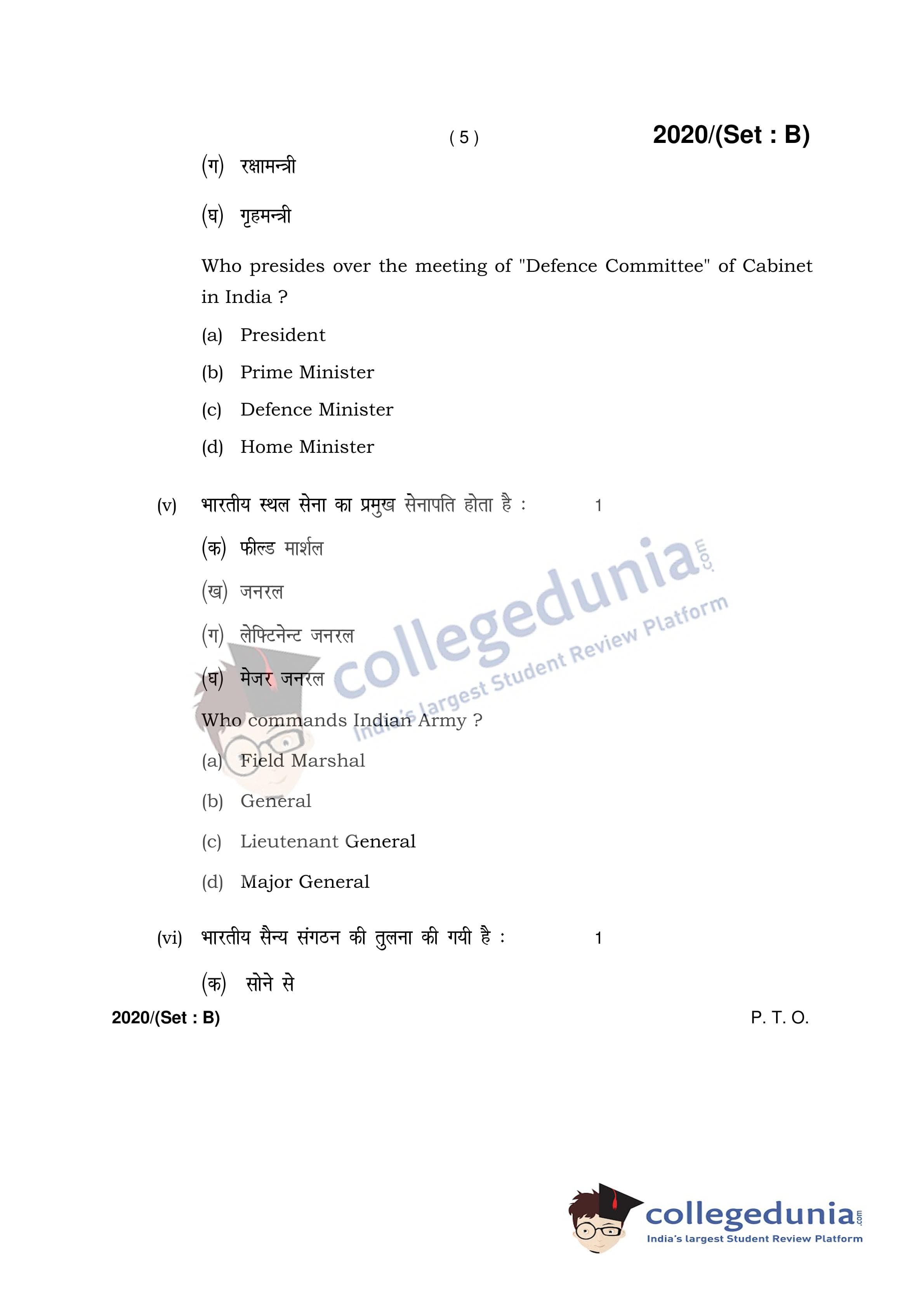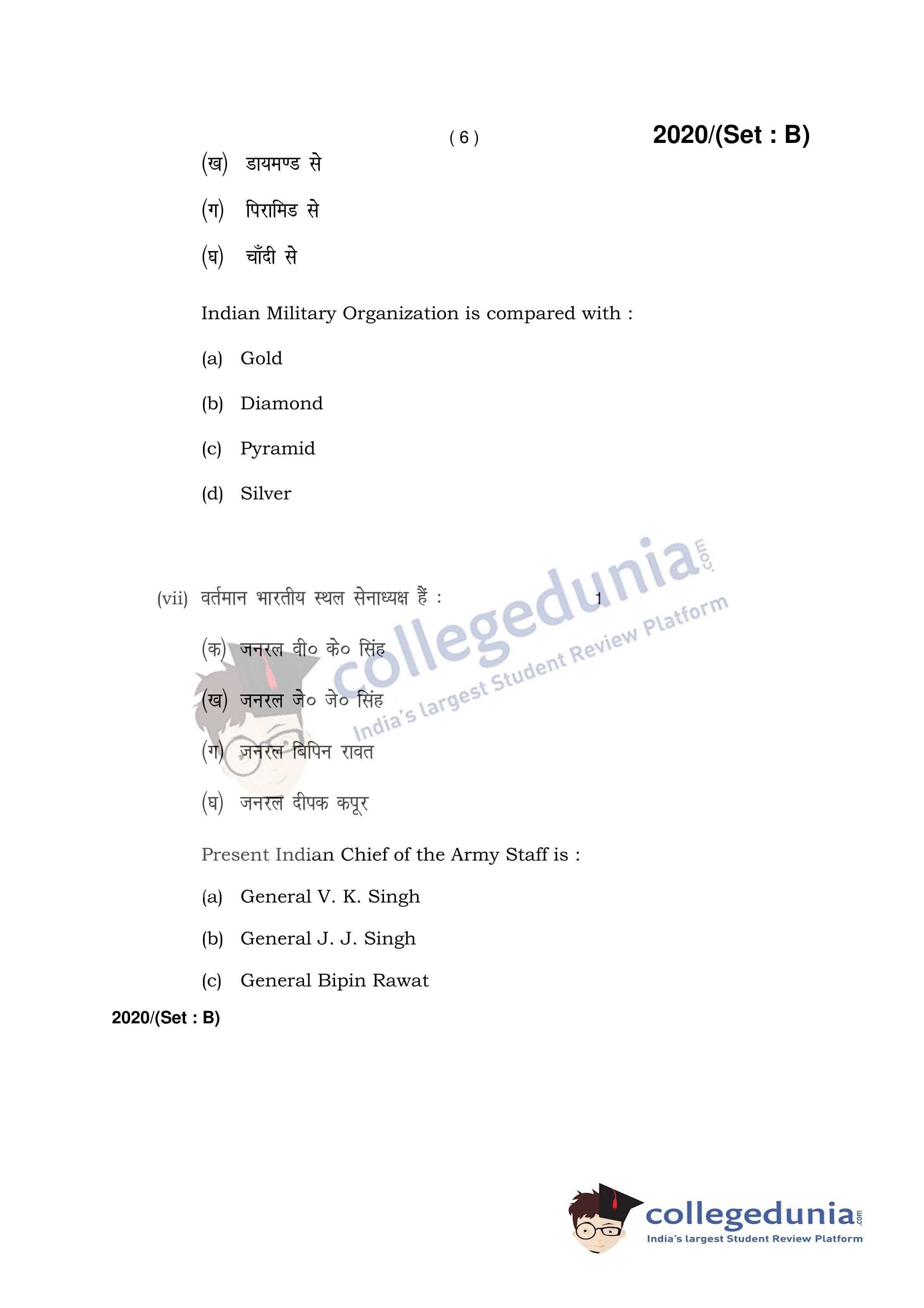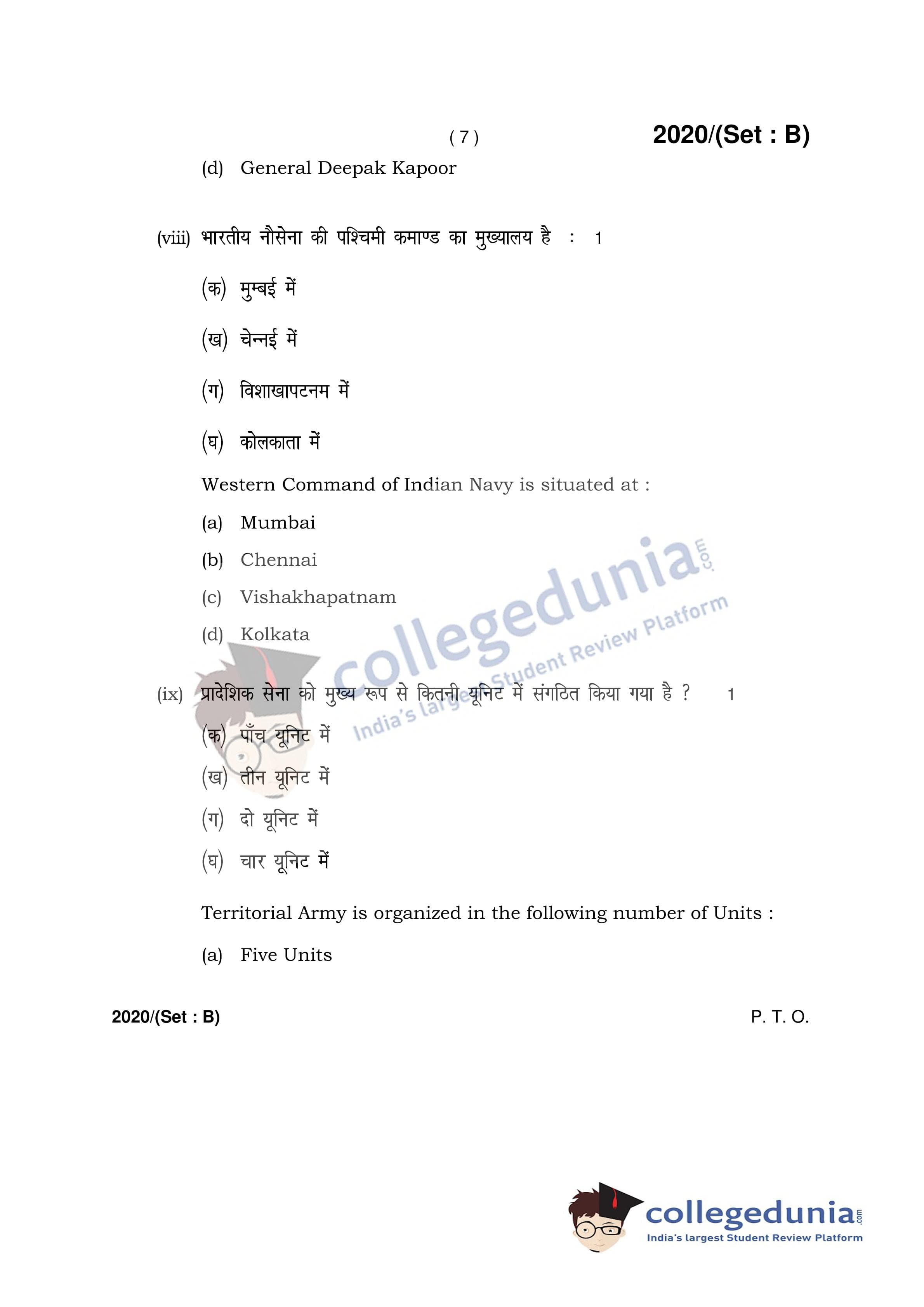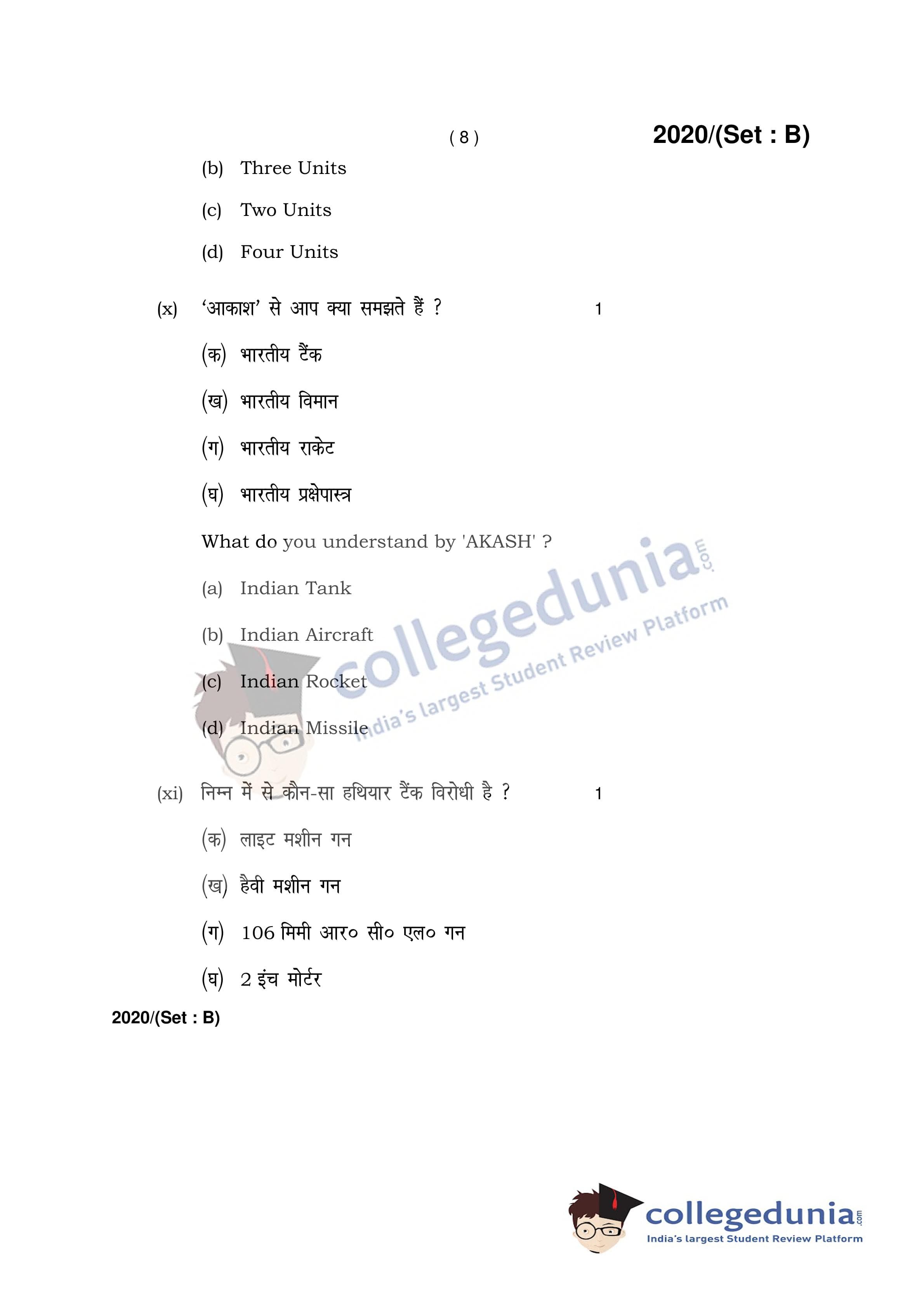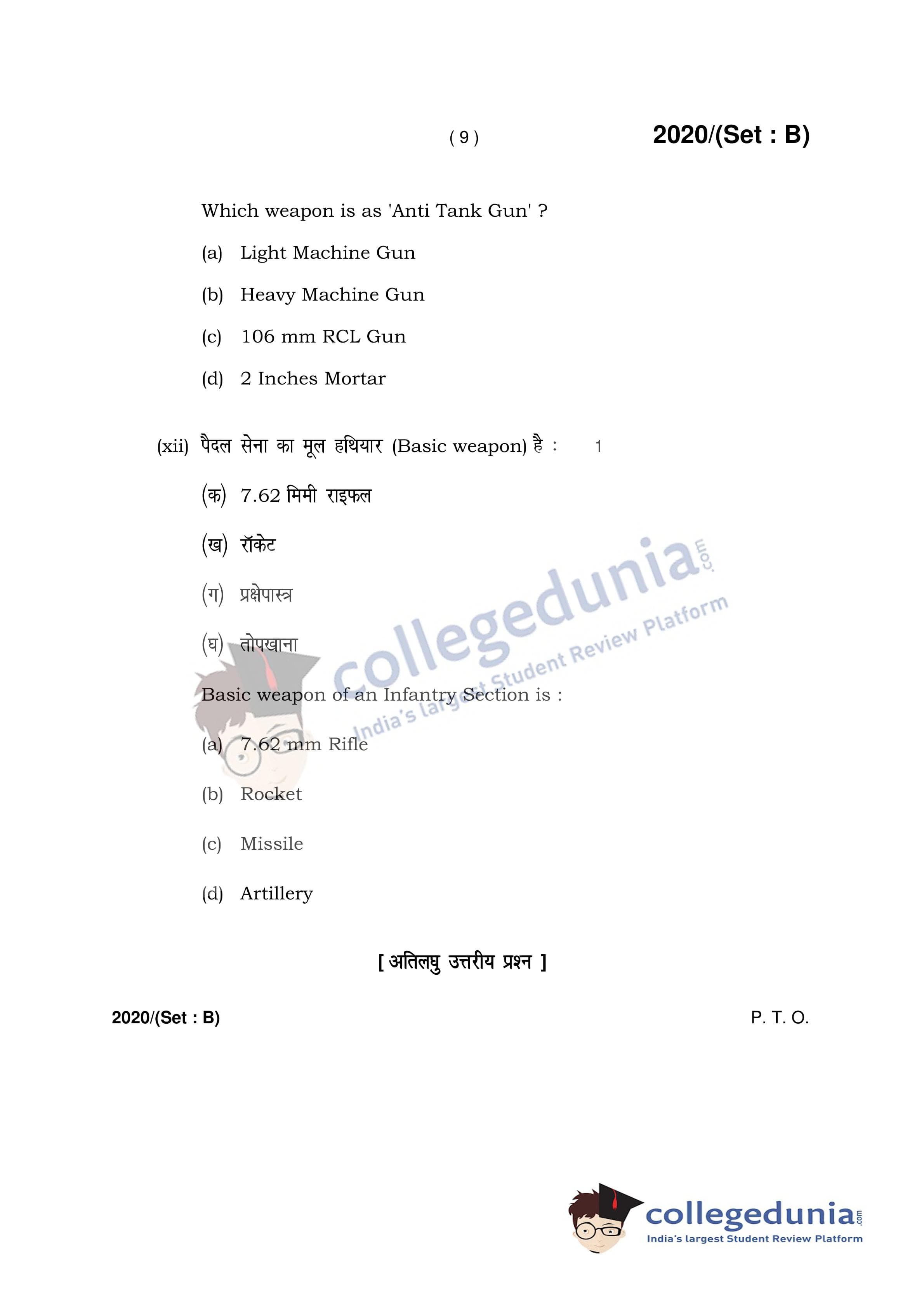 HBSE Class 12 Military Science Set B Question Paper 2017 with Answer Key (March 18)