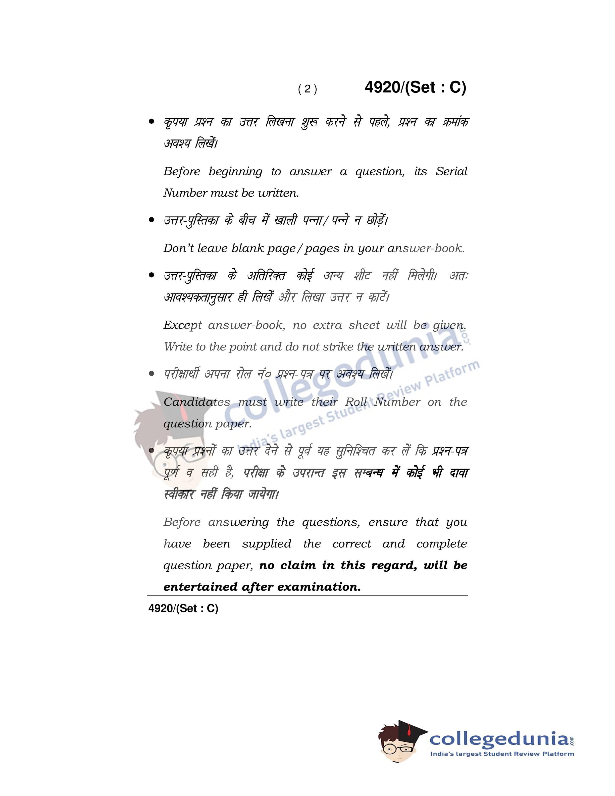 HBSE Class 12 Military Science Question Paper 2020 with Answer Key Set C is available for download. The exam was conducted by the Board of School Education Haryana on March 17, 2020 in the Afternoon Session 12:30 PM to 3:30 PM. The medium of paper was English and Hindi. The question paper comprised a total of 18 questions.