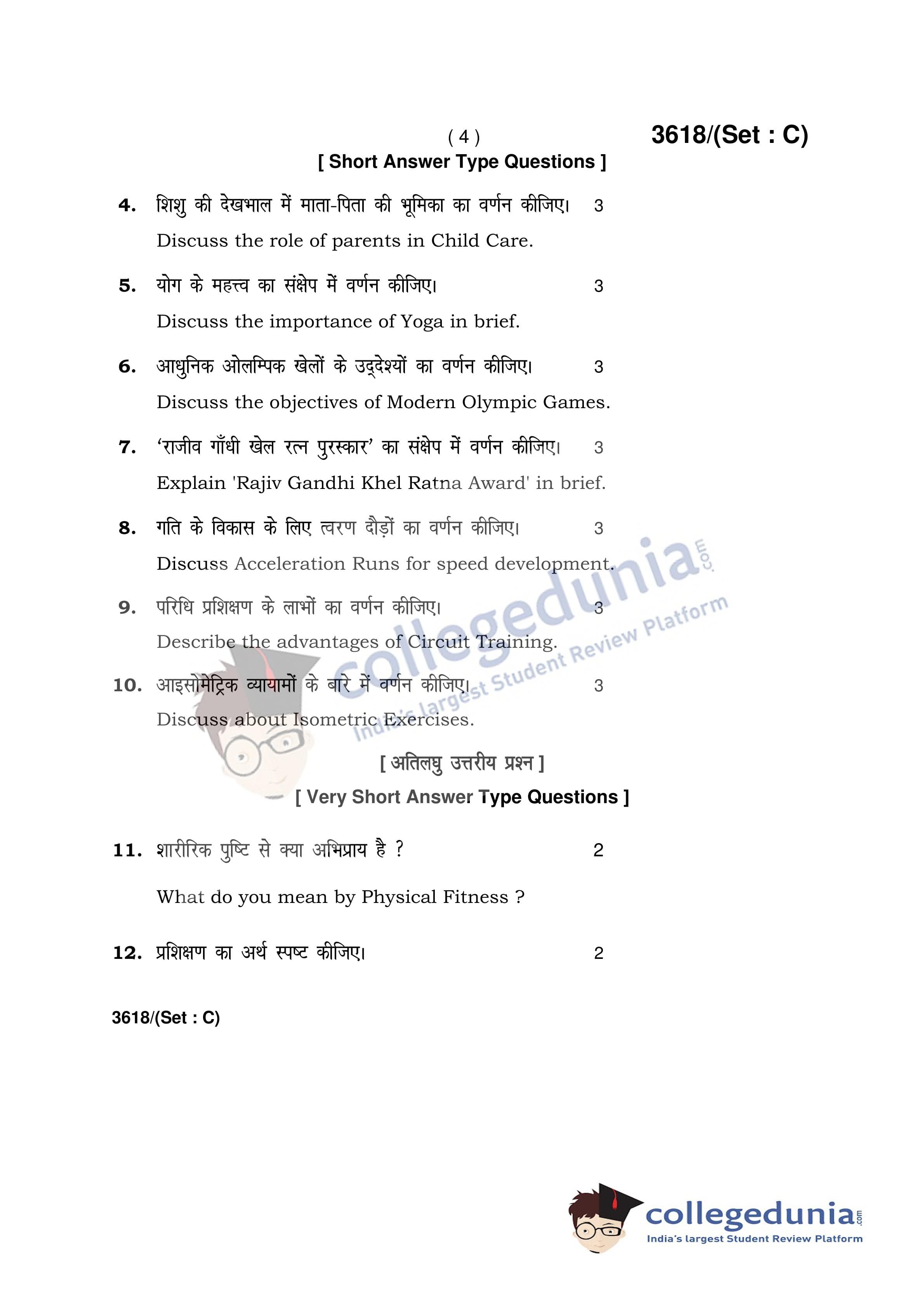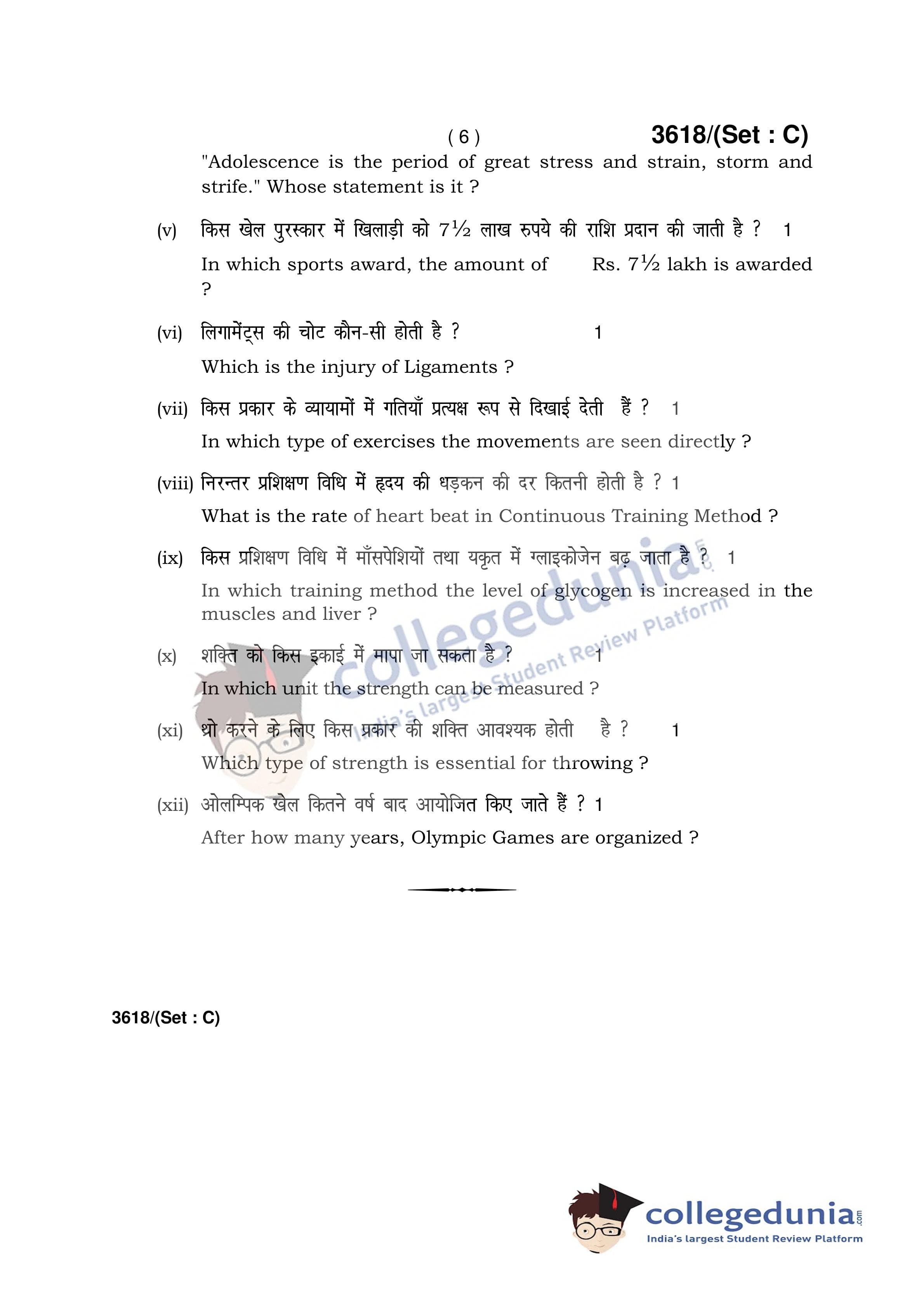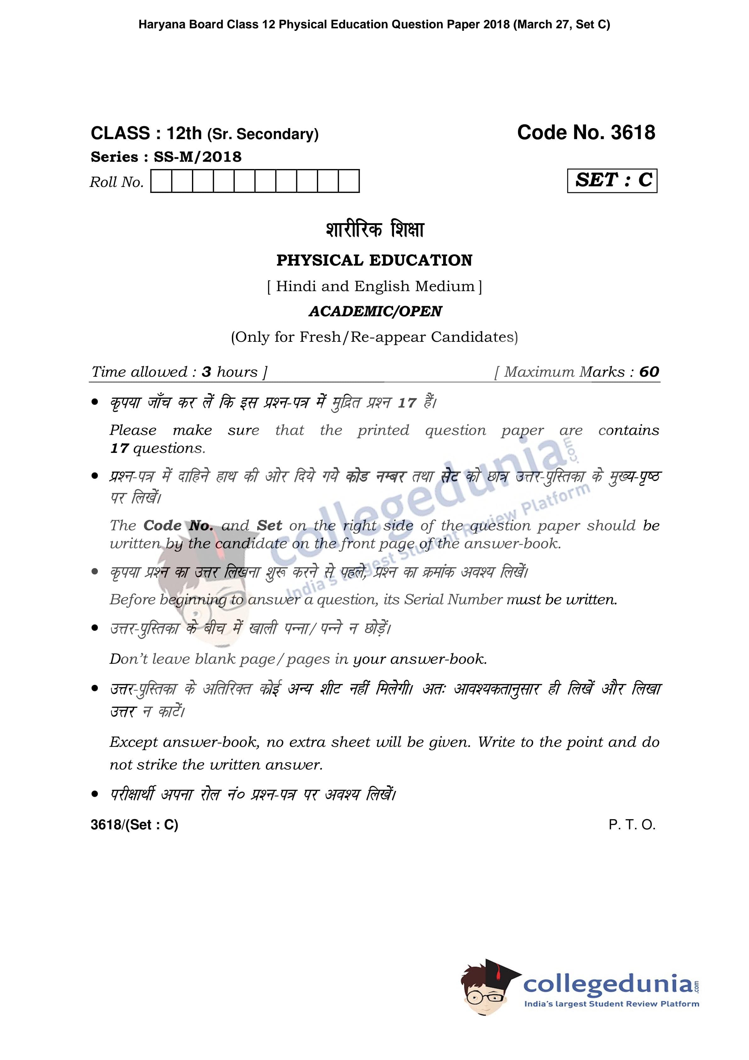 HBSE Class 12 Physical Education Set C Question Paper 2018 with Answer Key (March 27)