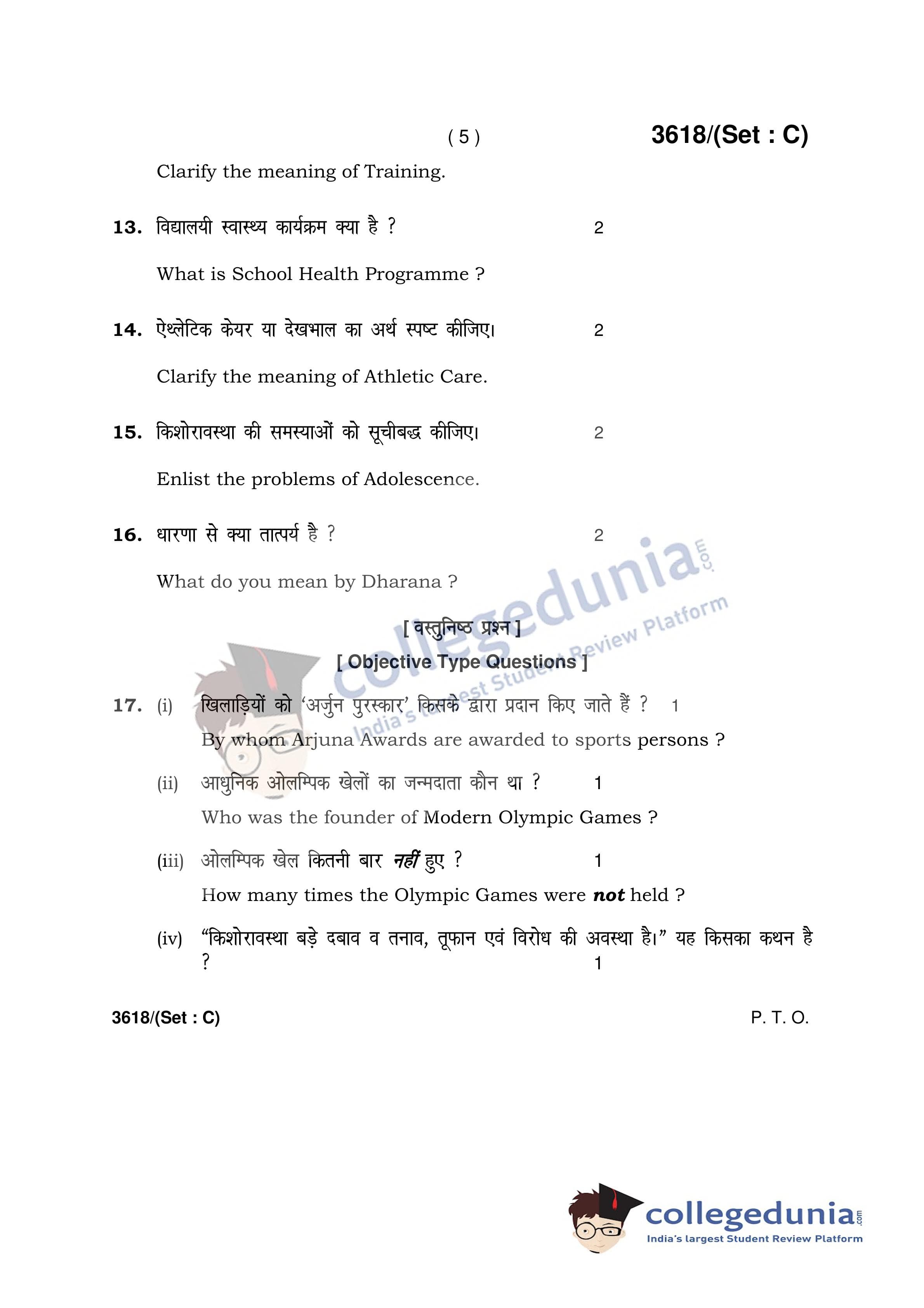 HBSE Class 12 Physical Education Question Paper 2018 with Answer Key Set C is available for download. The exam was conducted by the Board of School Education Haryana on March 27, 2018 in the Afternoon Session 12:30 PM to 3:30 PM. The medium of paper was English and Hindi. The question paper comprised a total of 17 questions.
