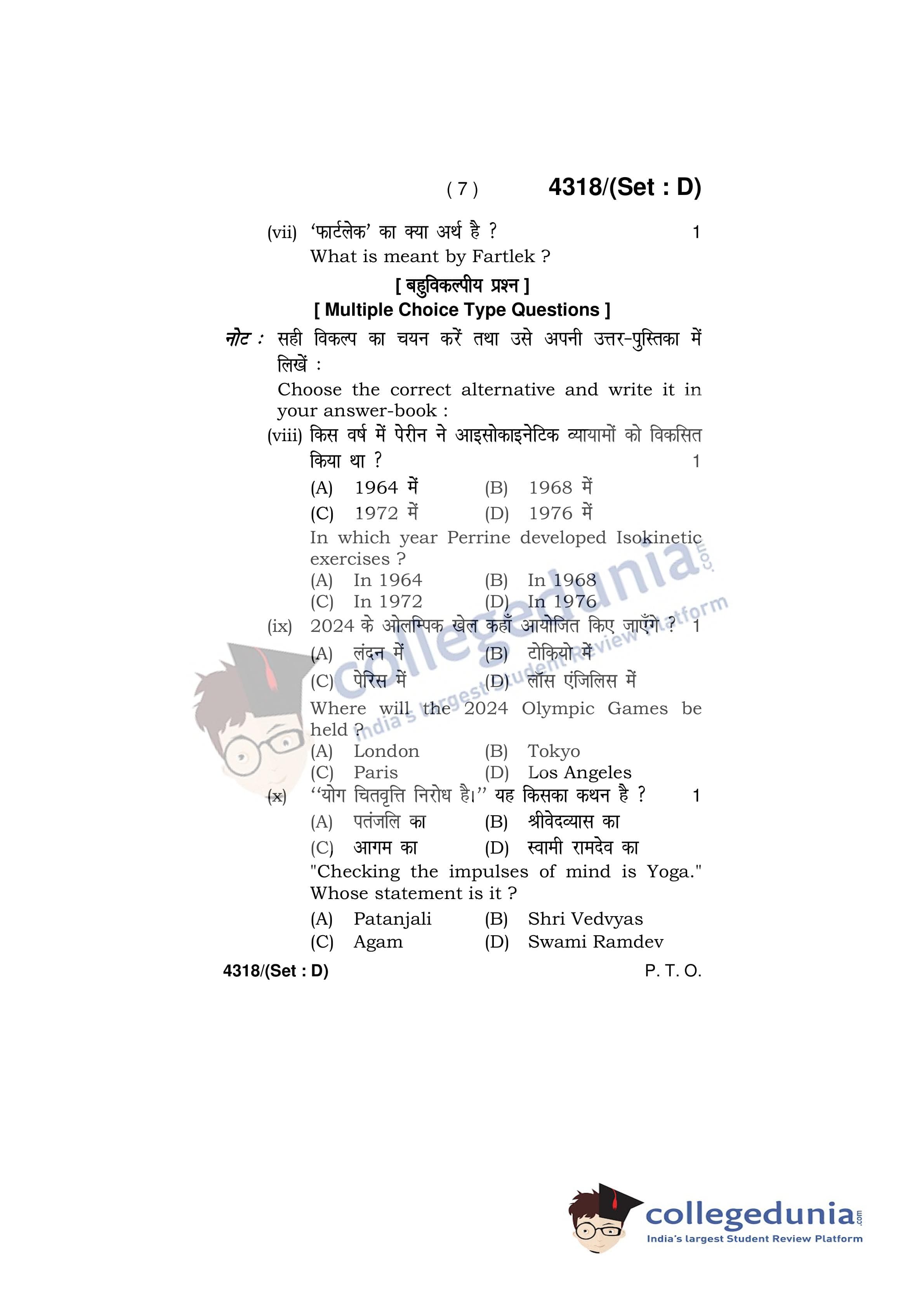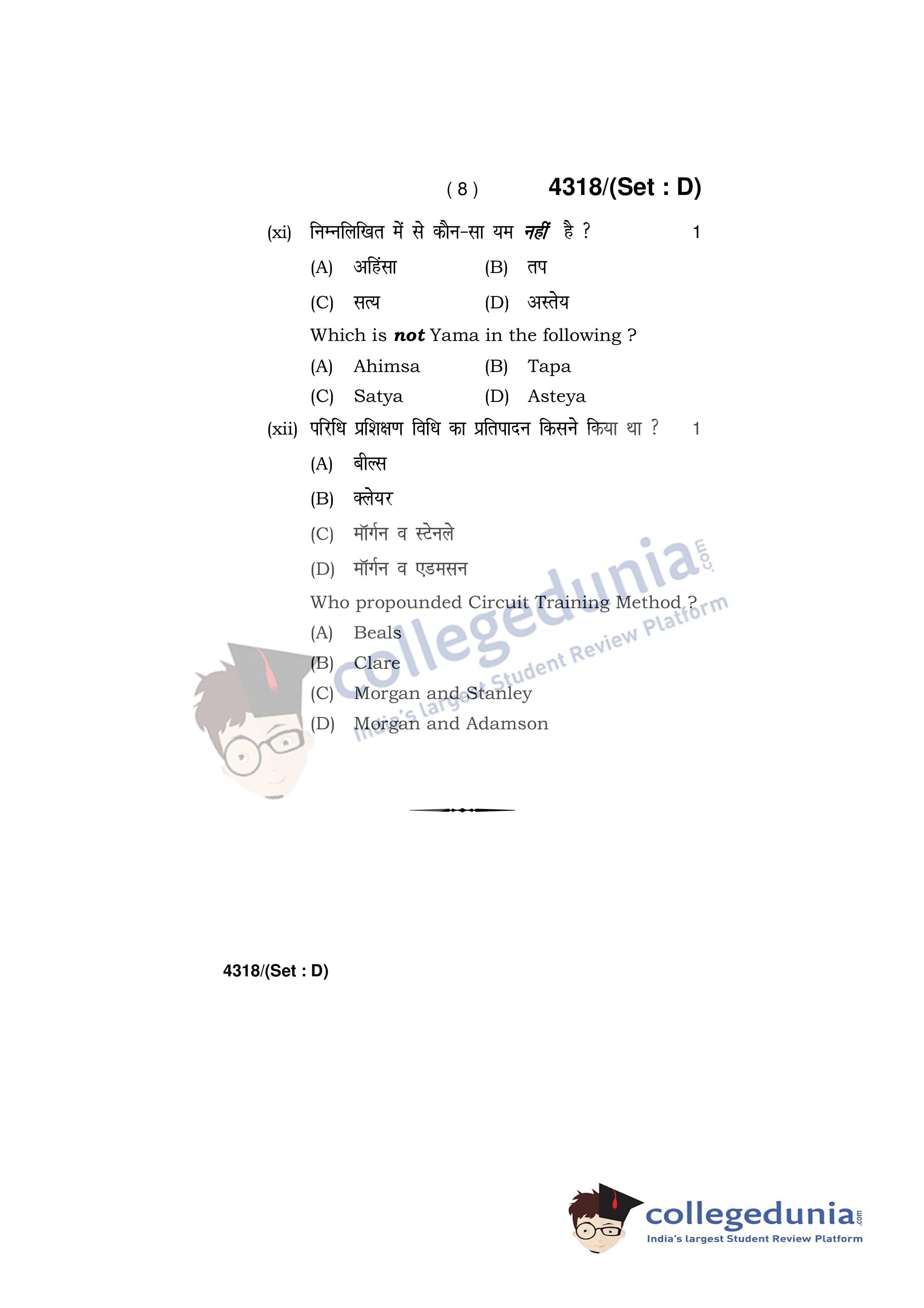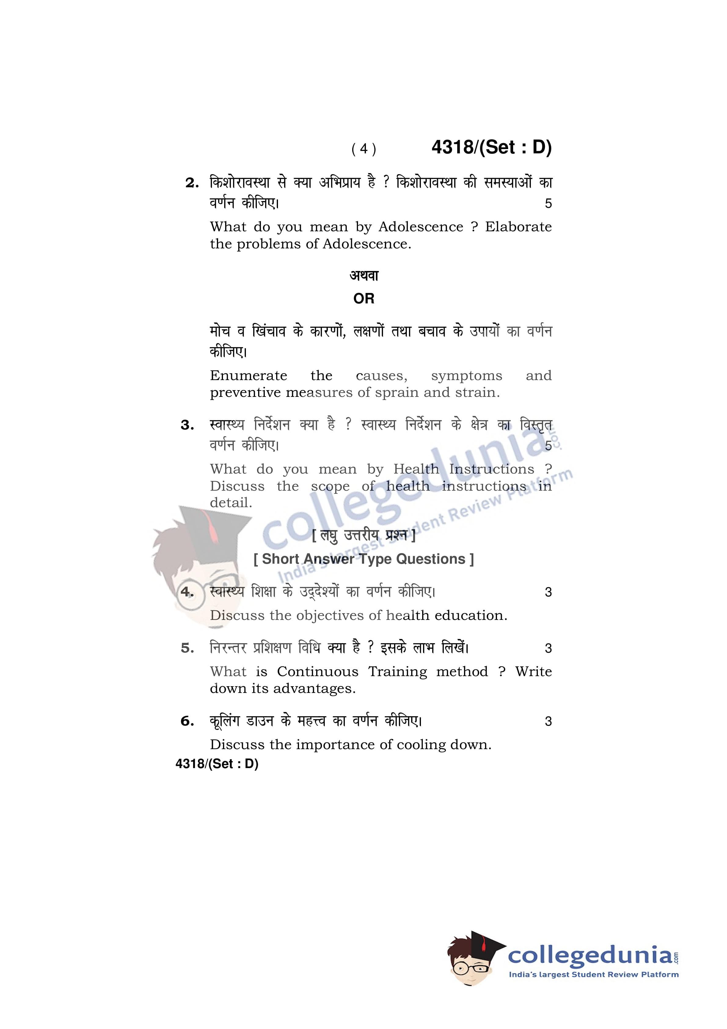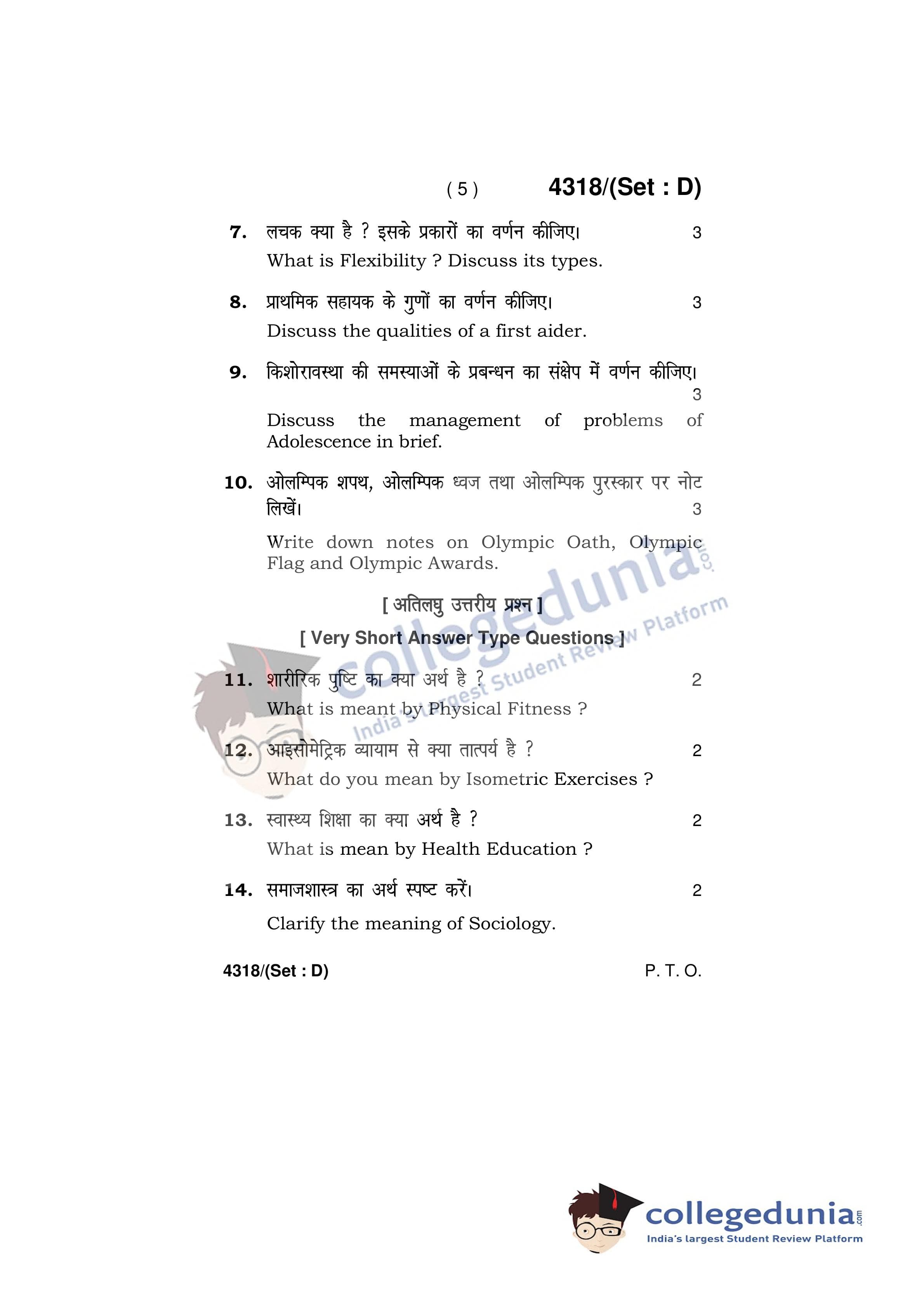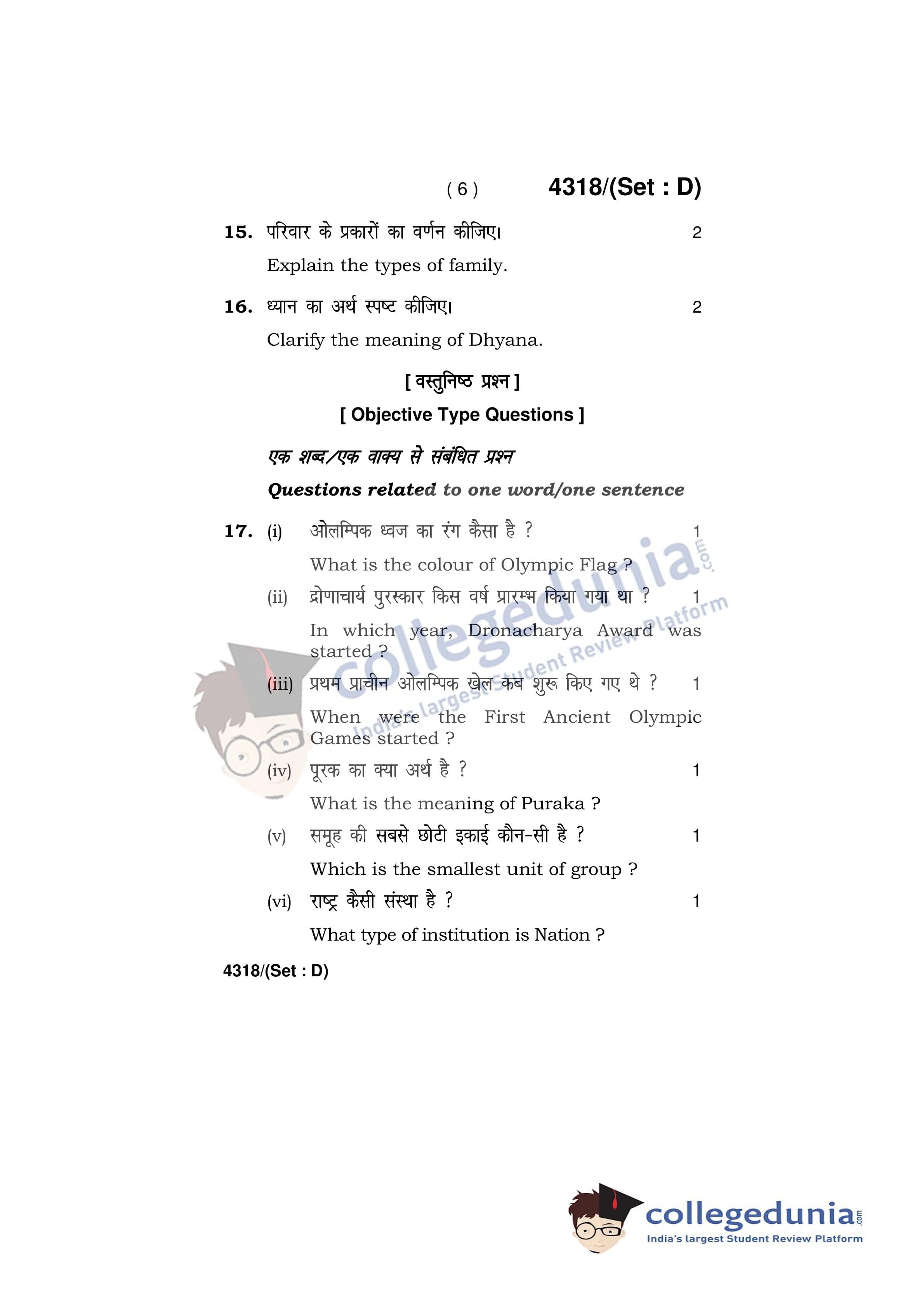 HBSE Class 12 Physical Education Set D Question Paper 2019 with Answer Key (March 28)