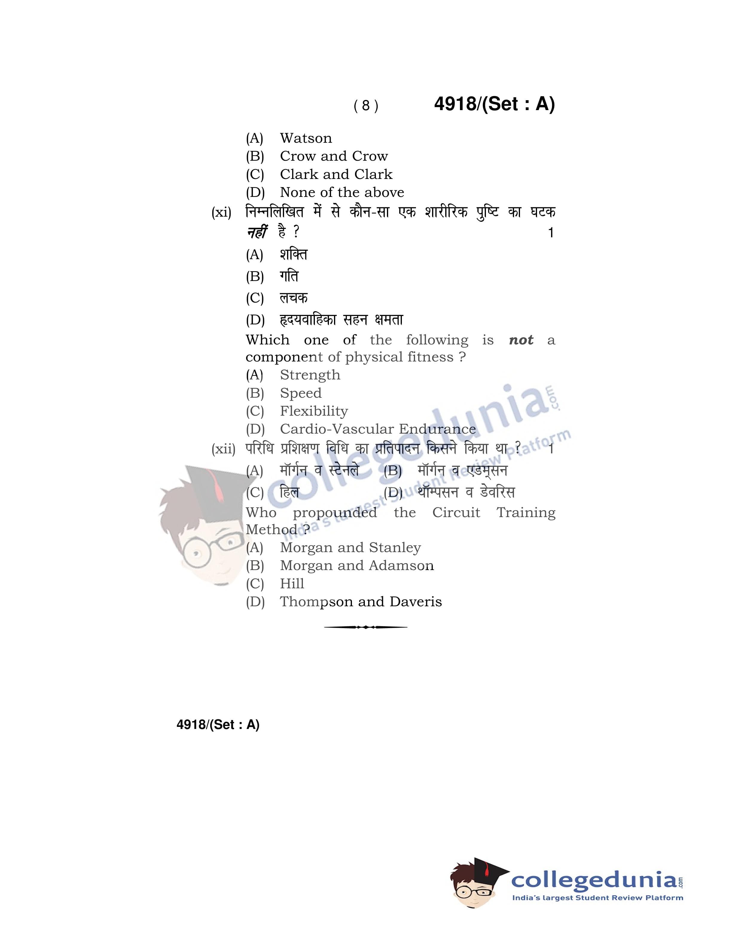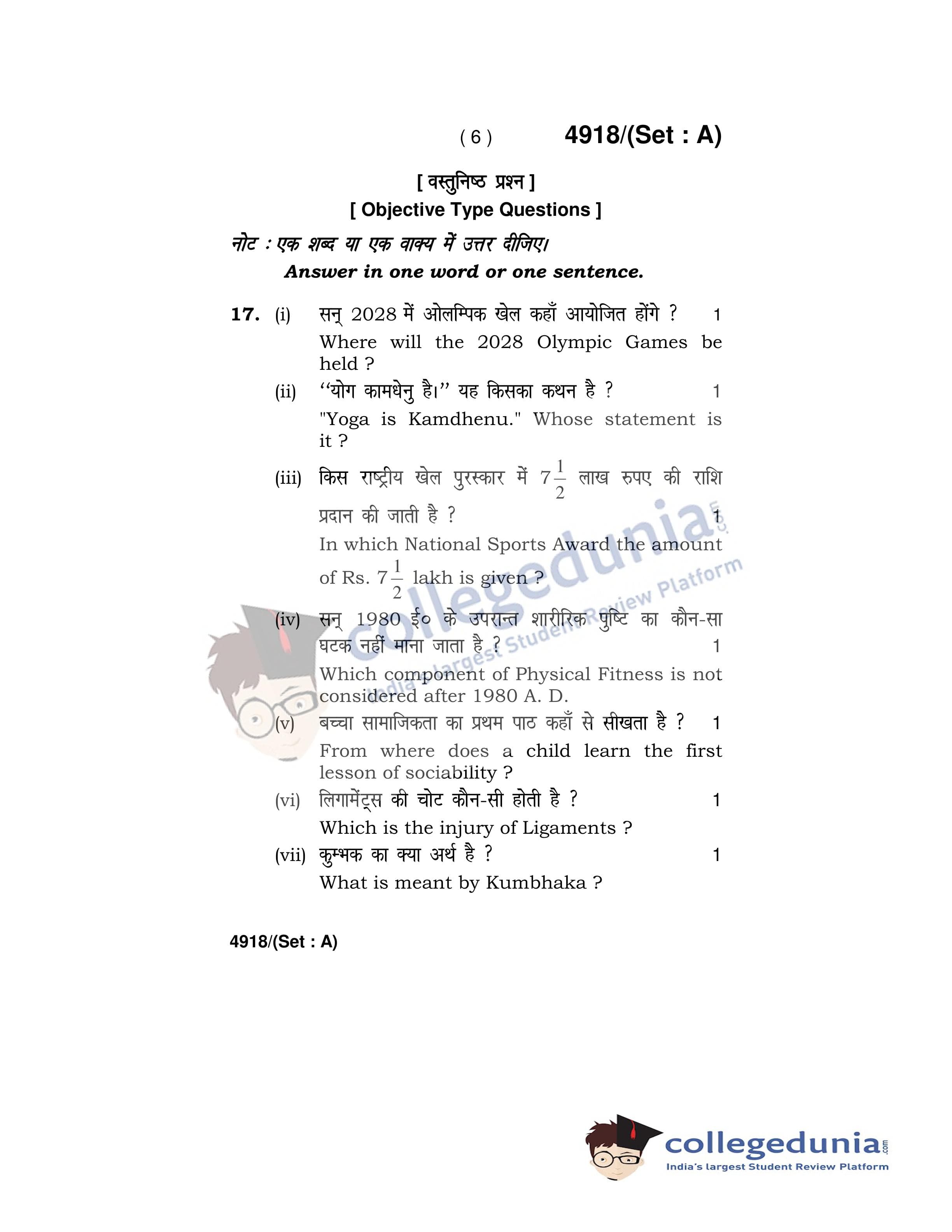 HBSE Class 12 Physical Education Set A Question Paper 2020 with Answer Key (March 13)