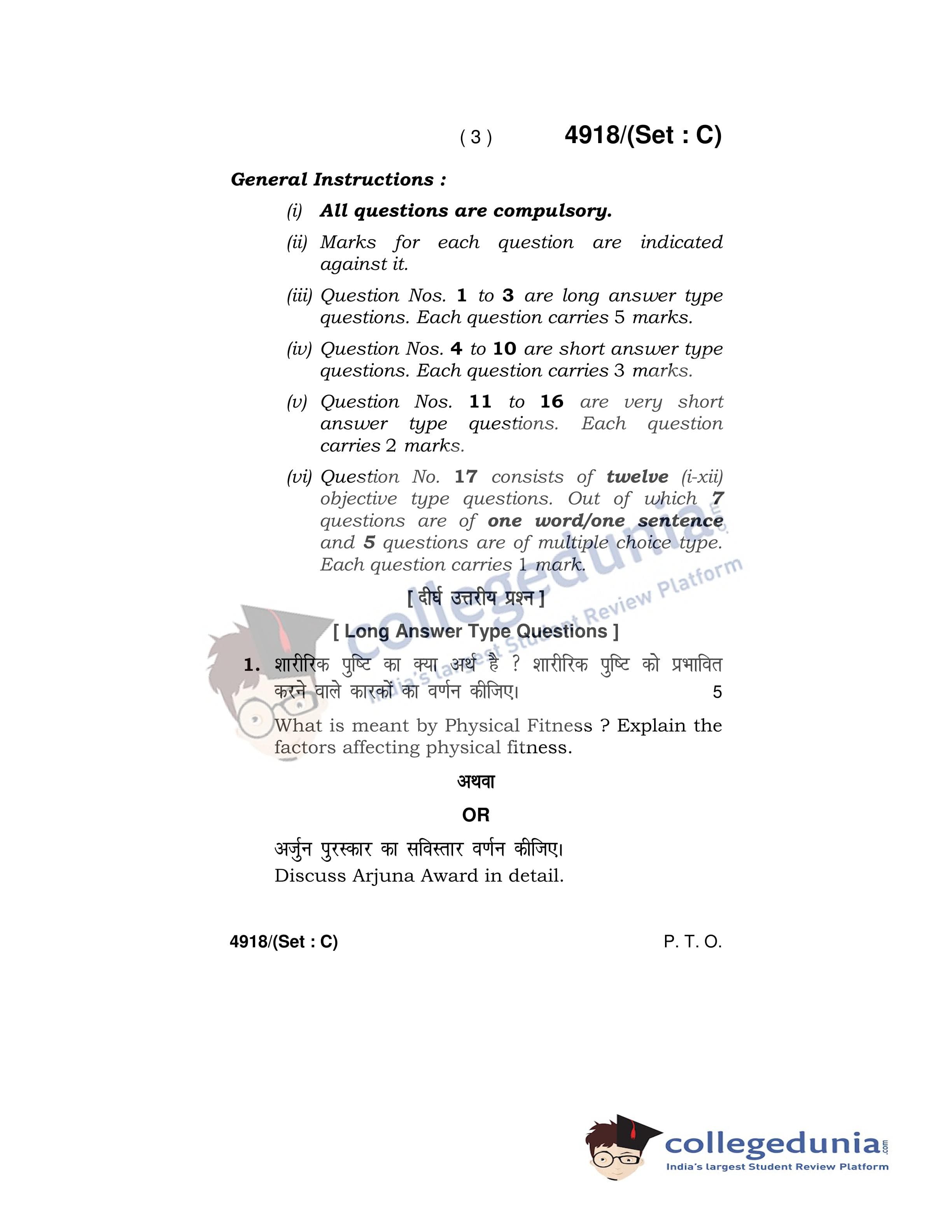 HBSE Class 12 Physical Education Question Paper 2020 with Answer Key Set C is available for download. The exam was conducted by the Board of School Education Haryana on March 13, 2020 in the Afternoon Session 12:30 PM to 3:30 PM. The medium of paper was English and Hindi. The question paper comprised a total of 17 questions.