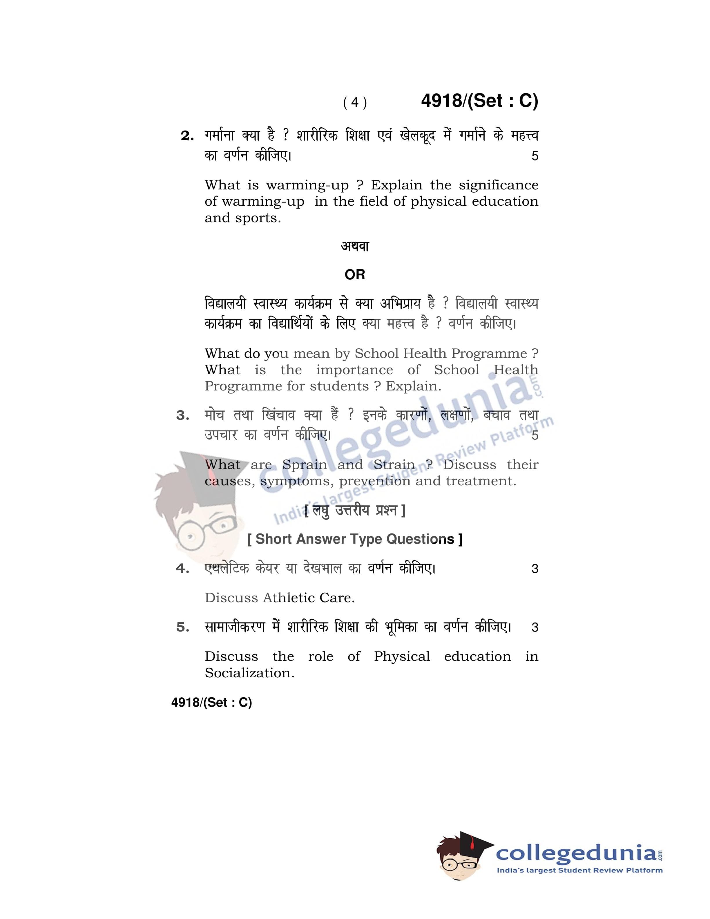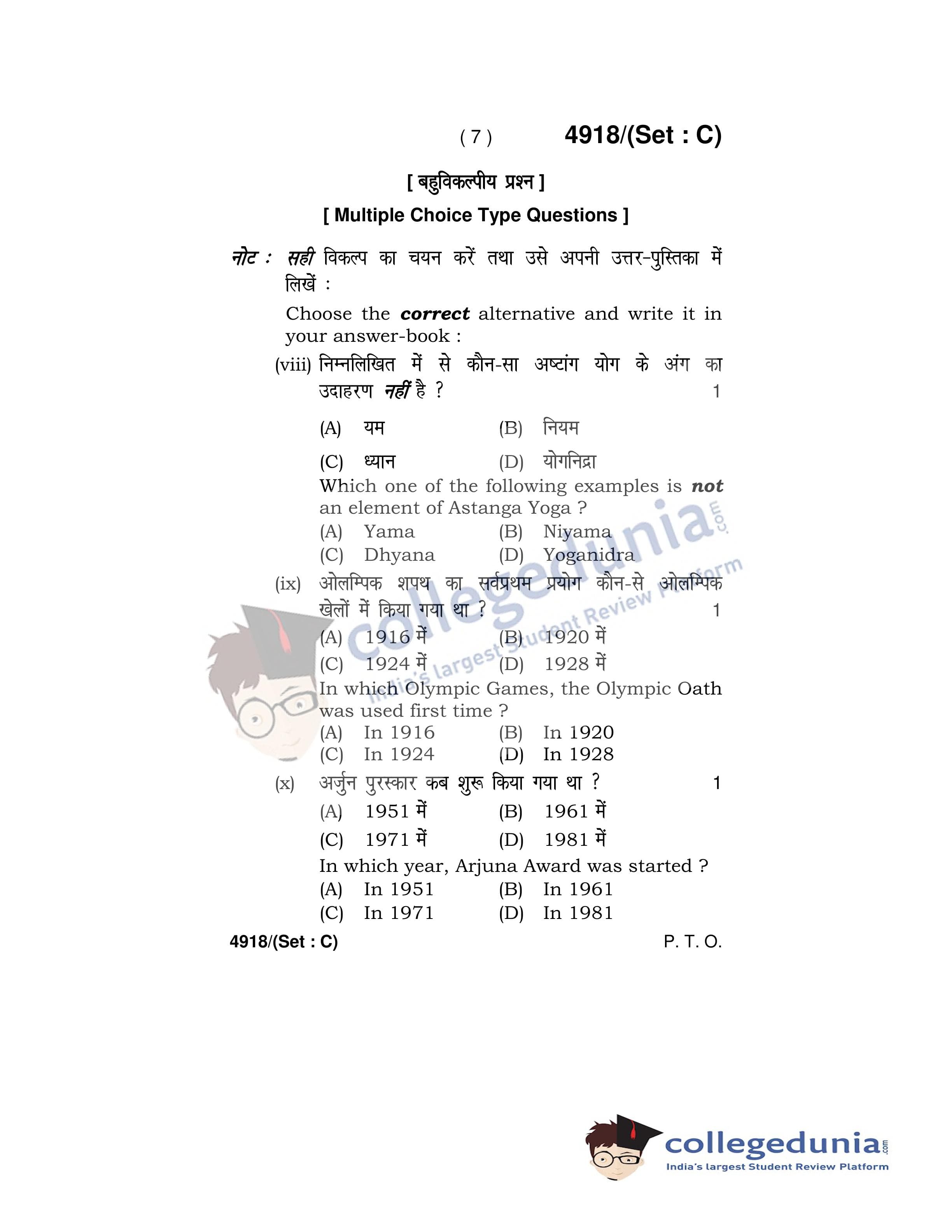 HBSE Class 12 Physical Education Set C Question Paper 2020 with Answer Key (March 13)
