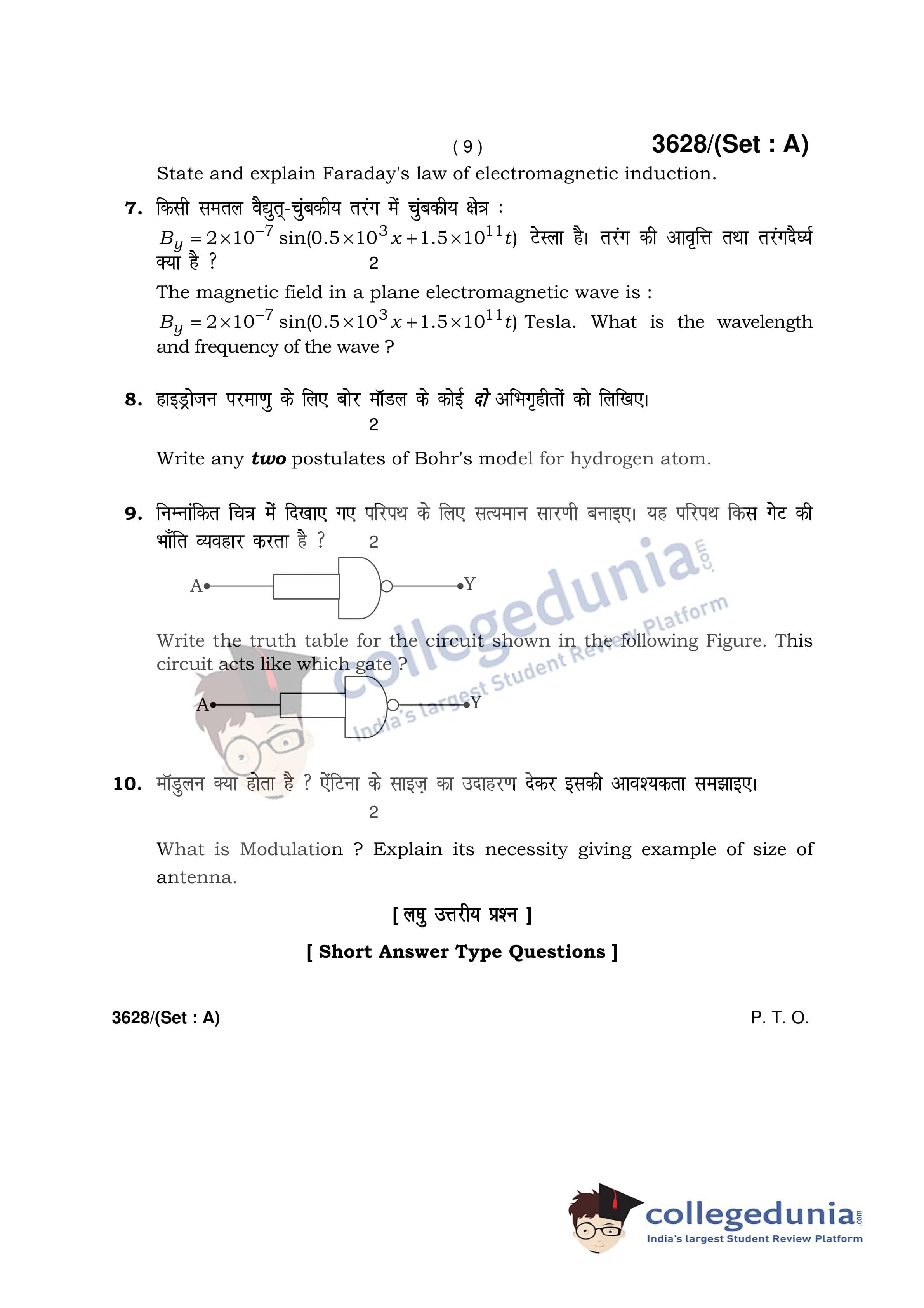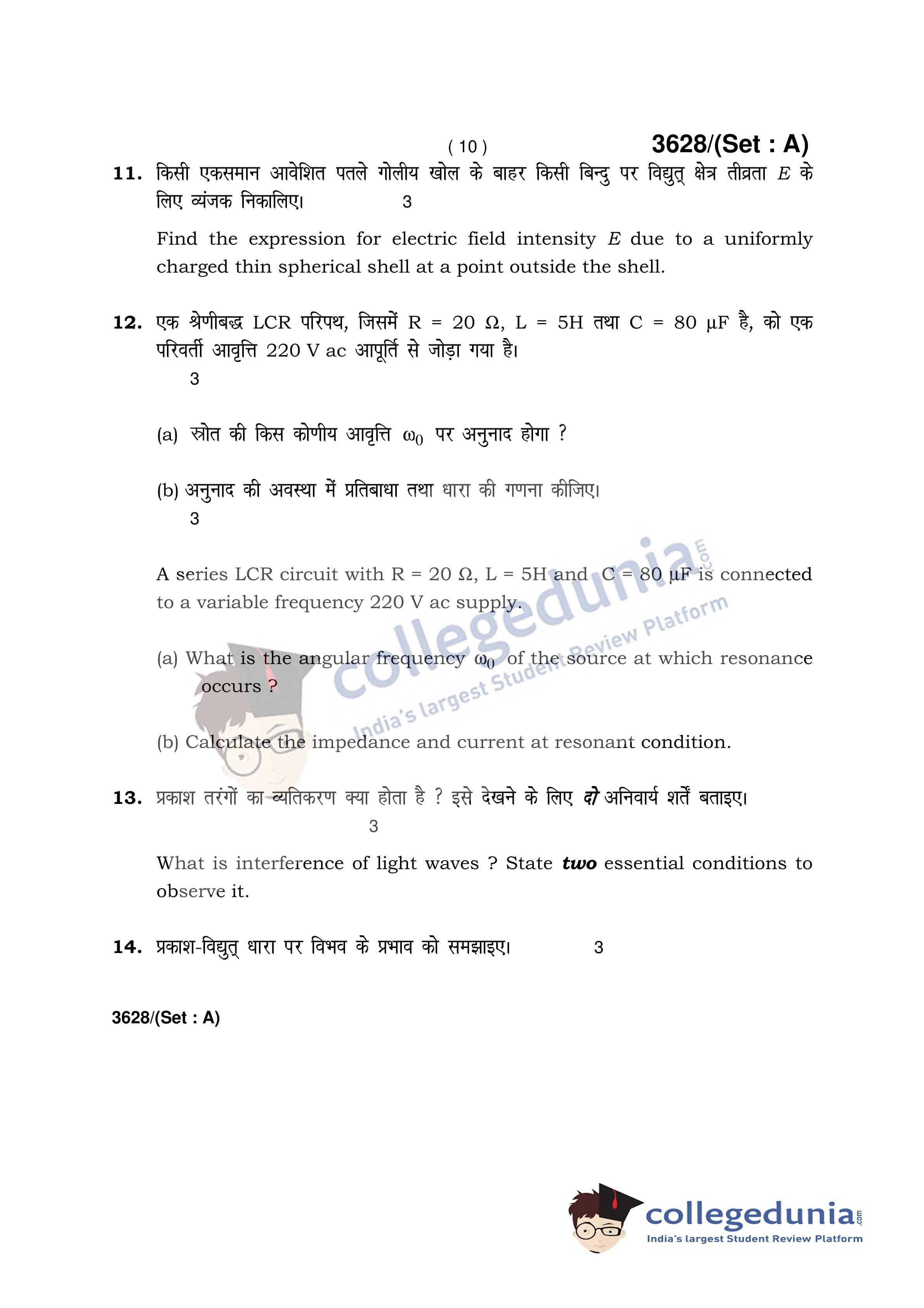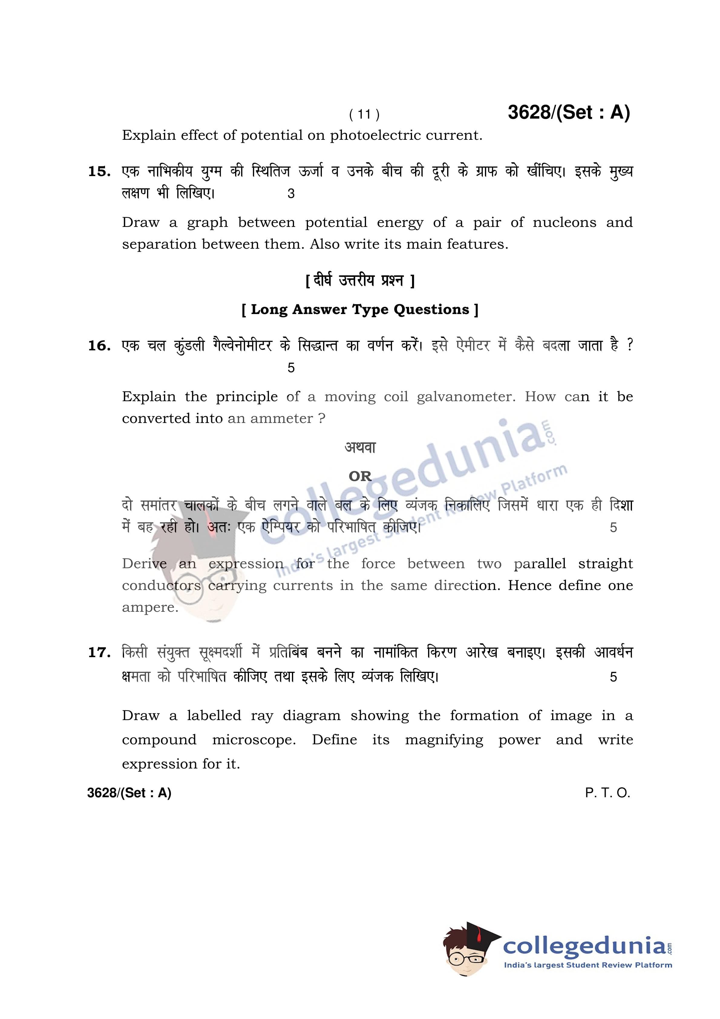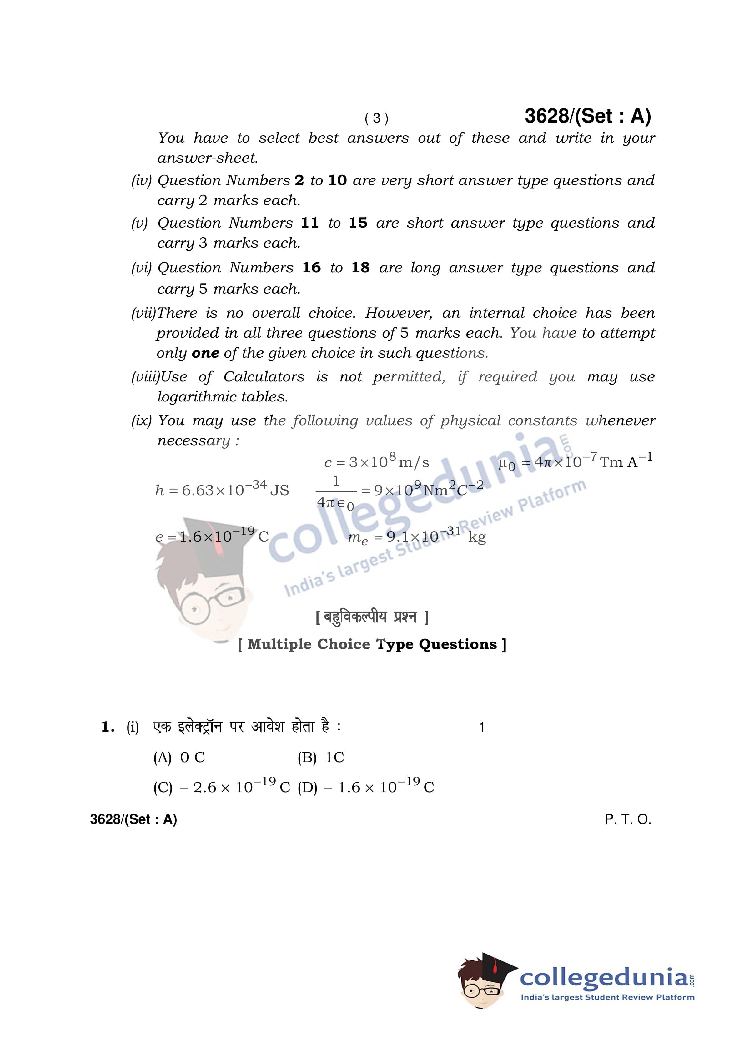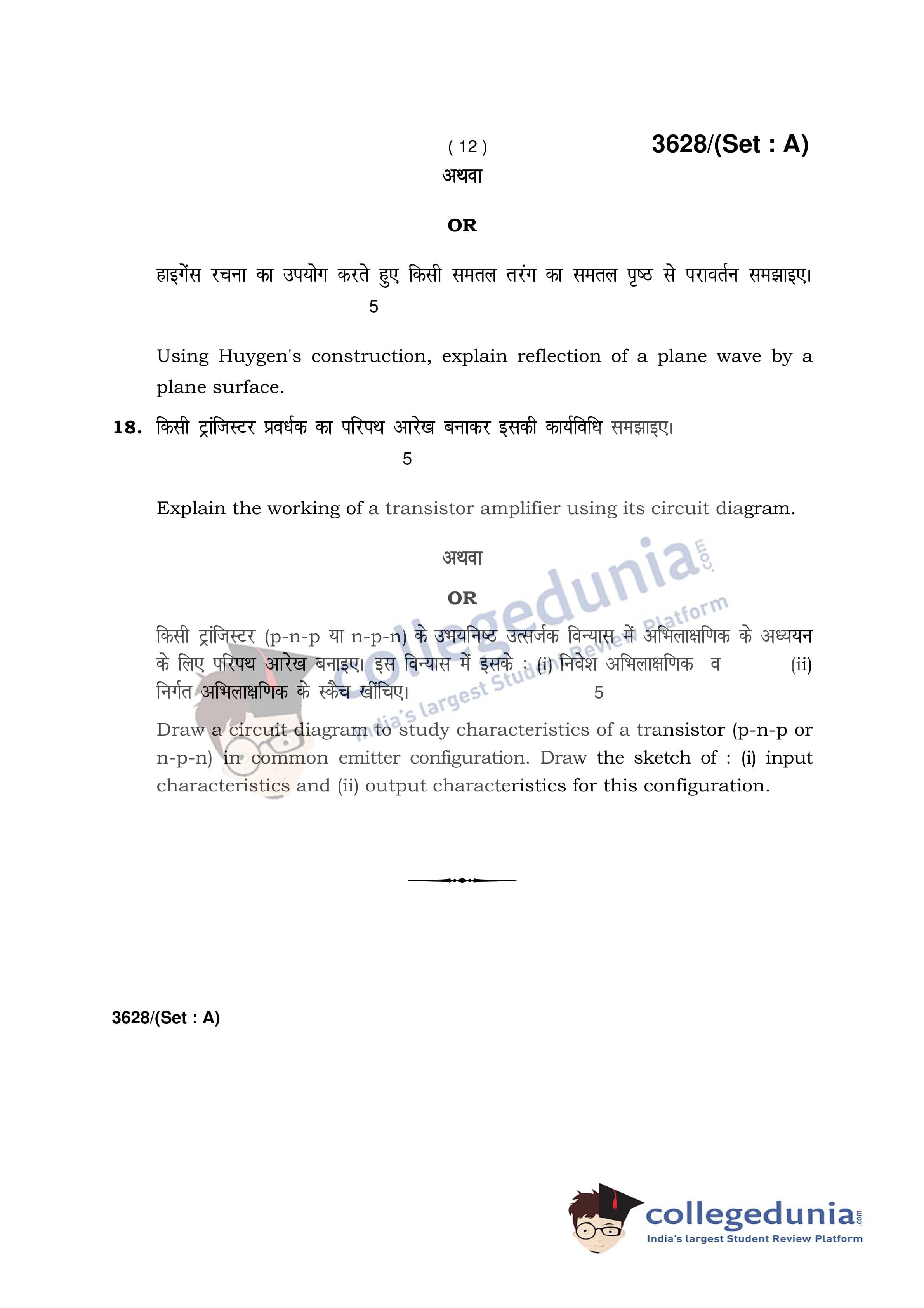 HBSE Class 12 Physics Set A Question Paper 2018 with Answer Key (March 12)