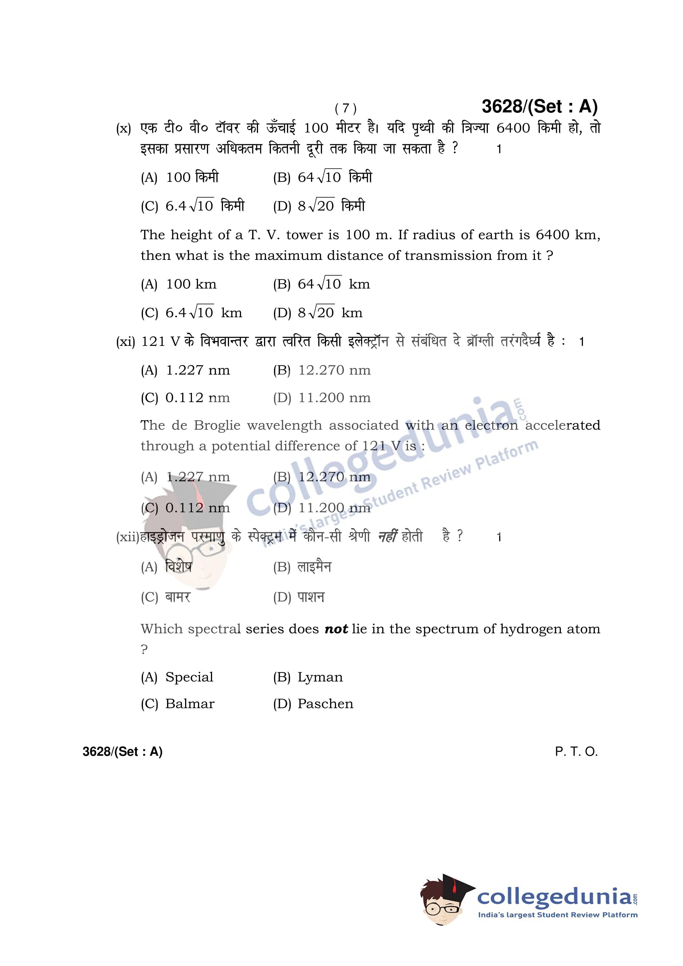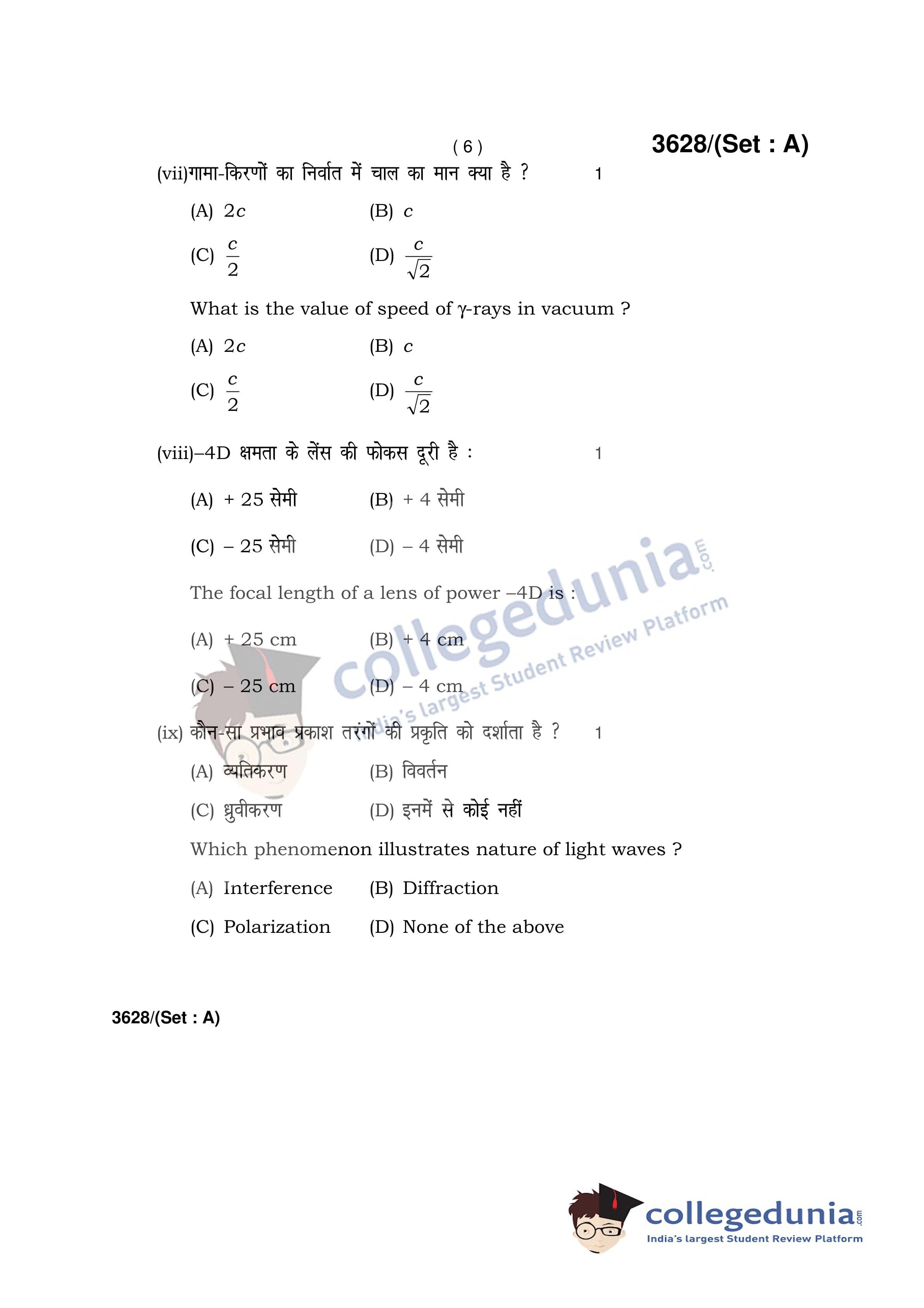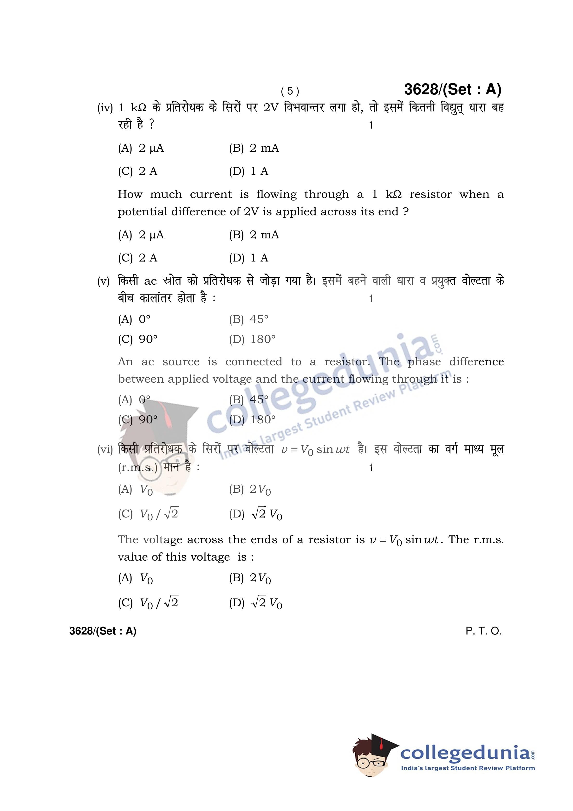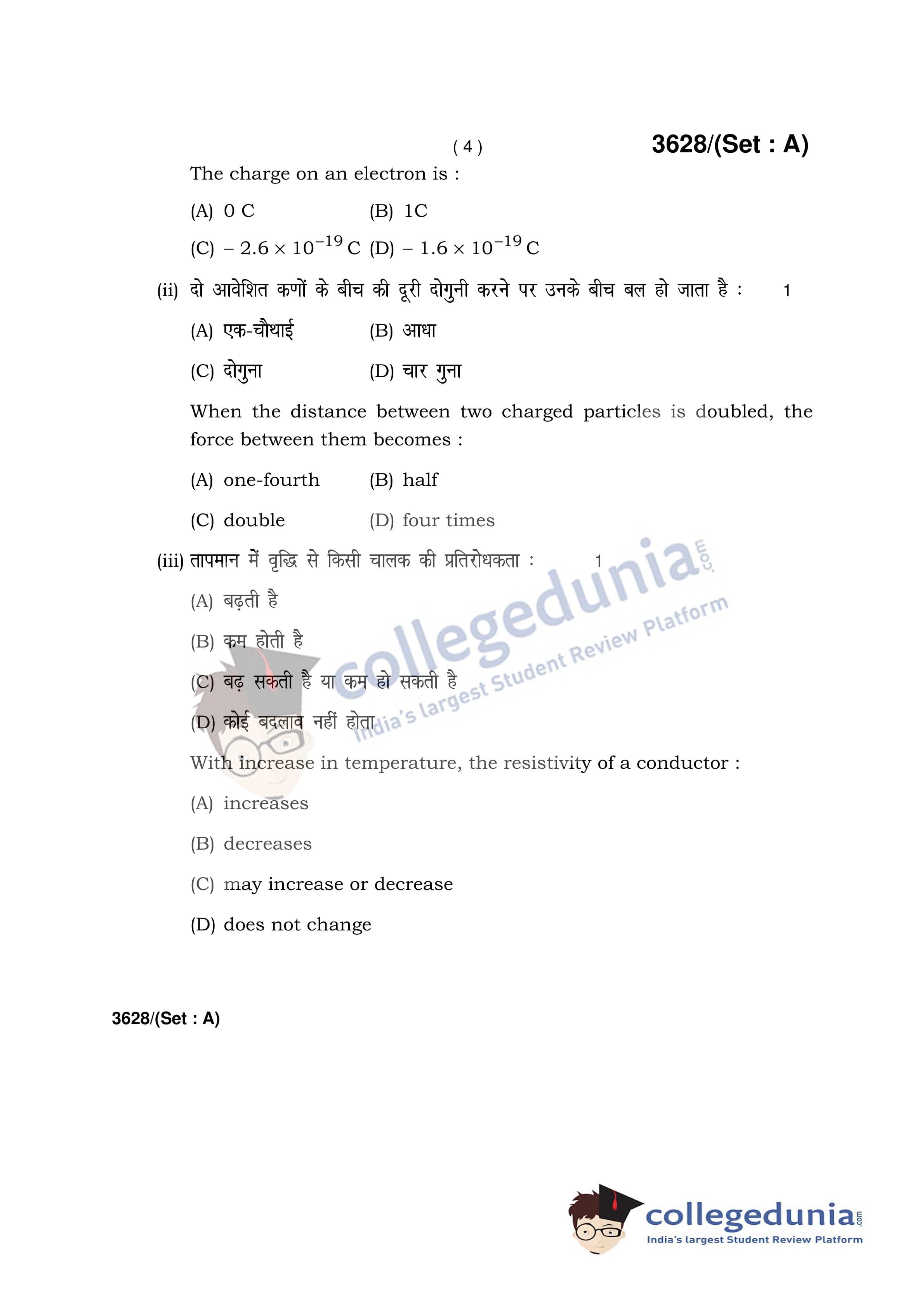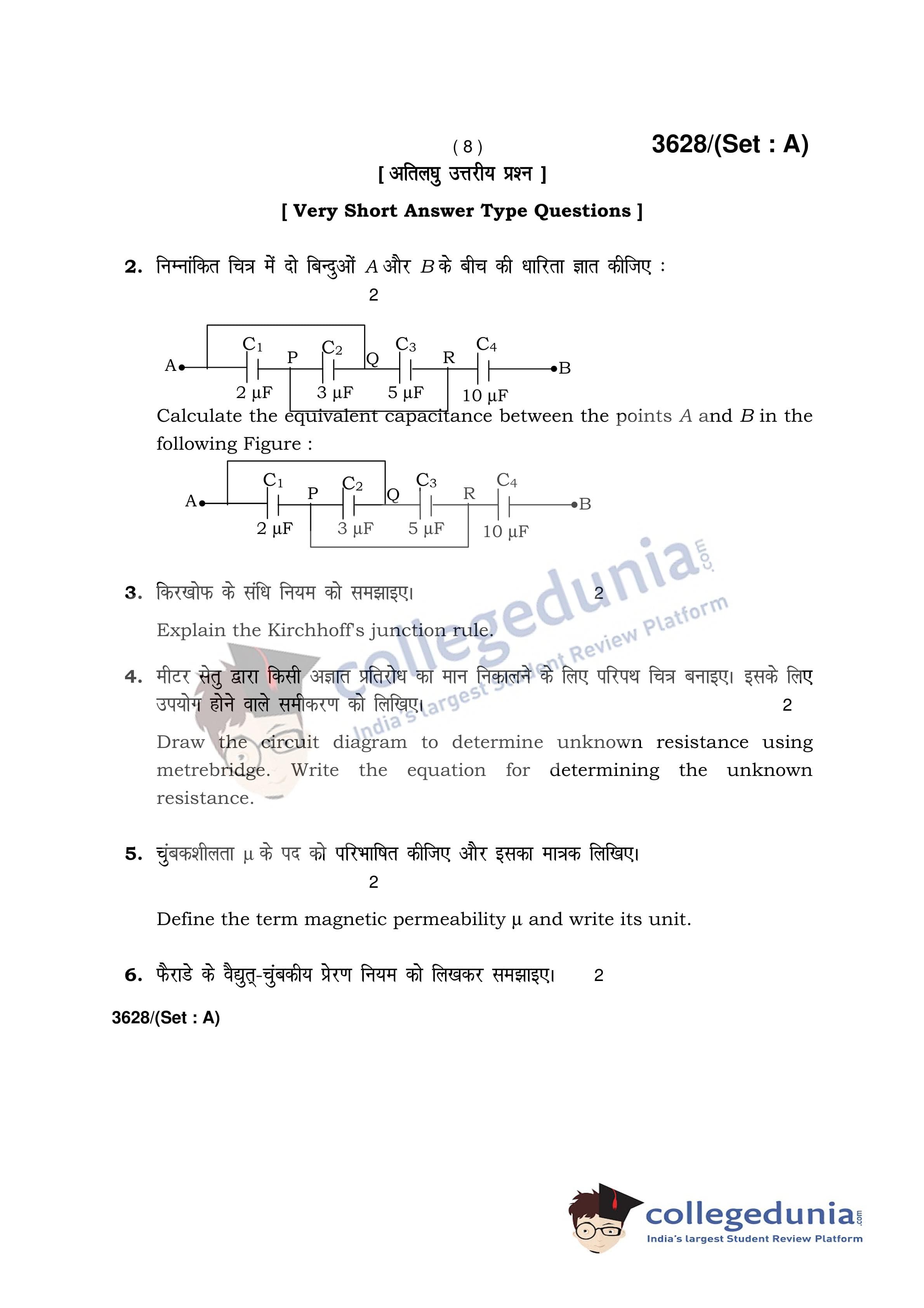 HBSE Class 12 Physics Set A Question Paper 2018 with Answer Key (March 12)