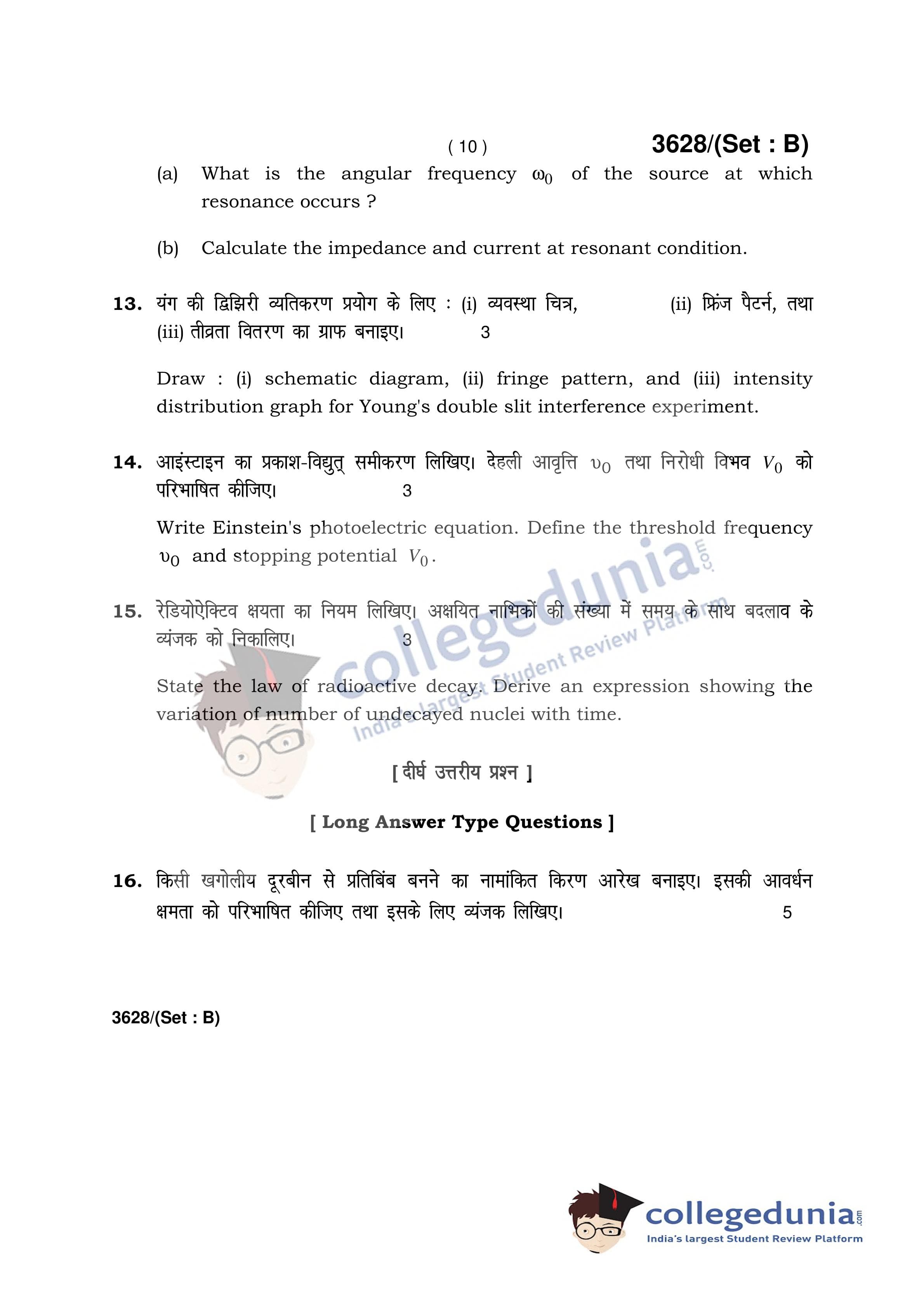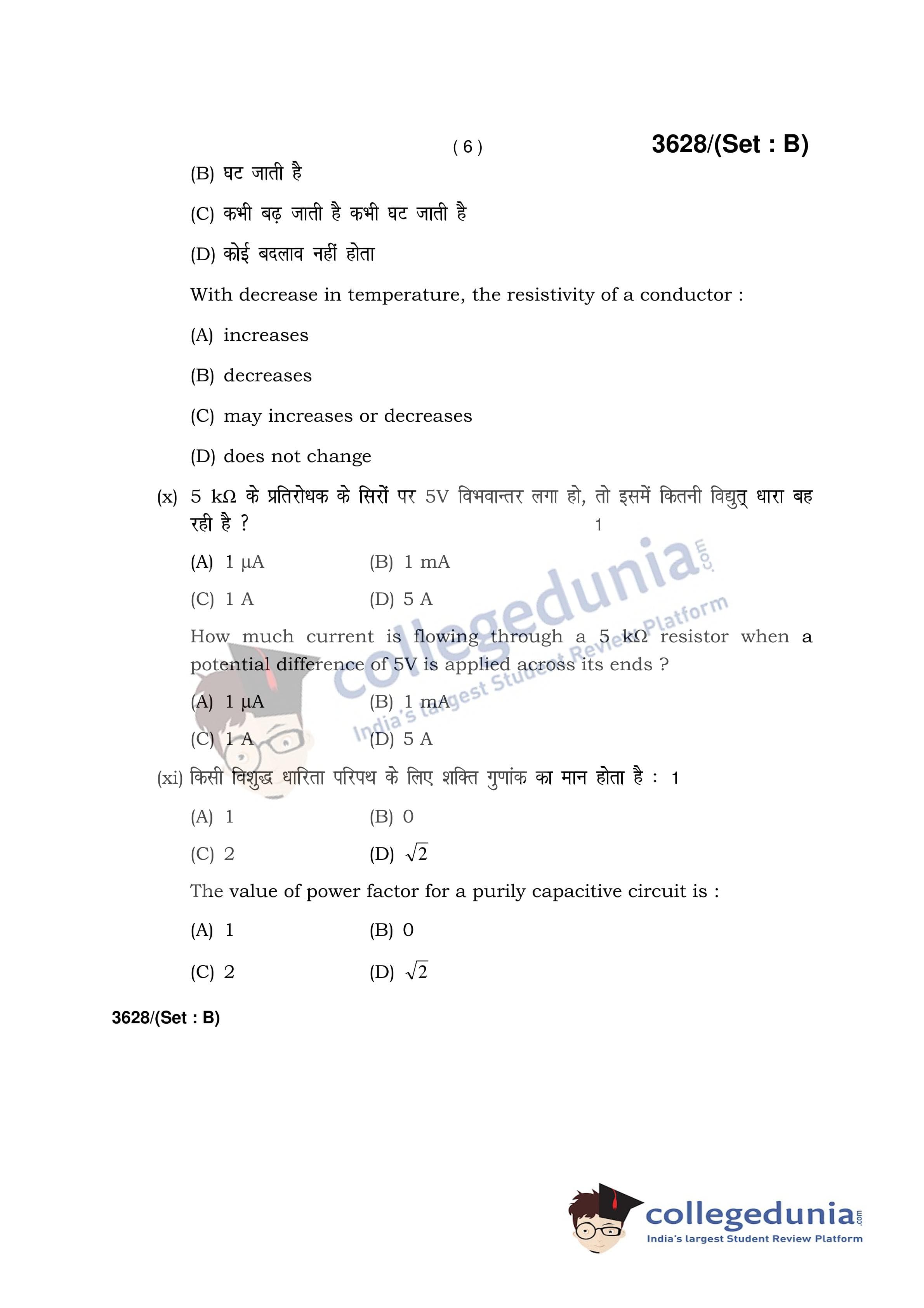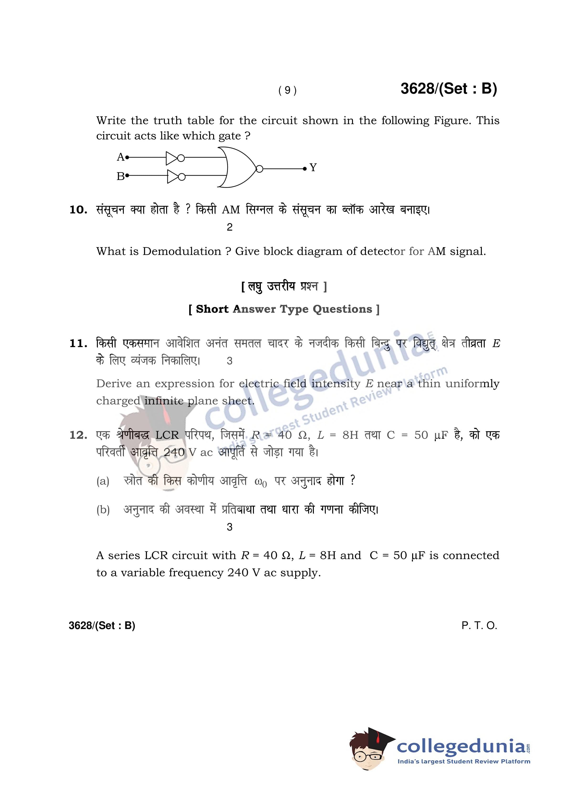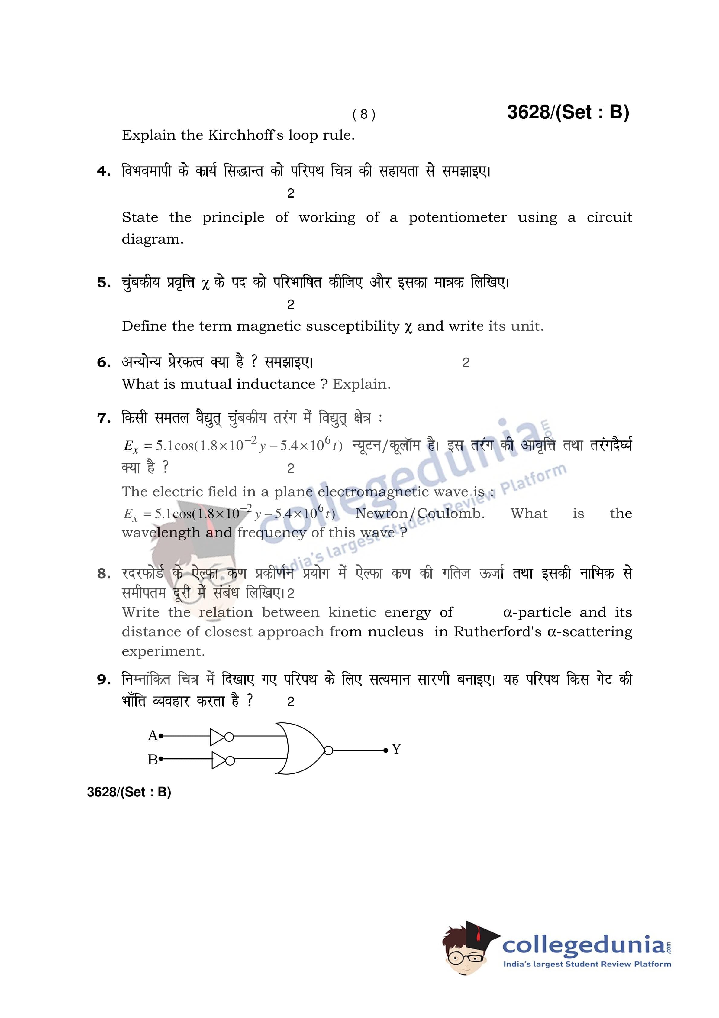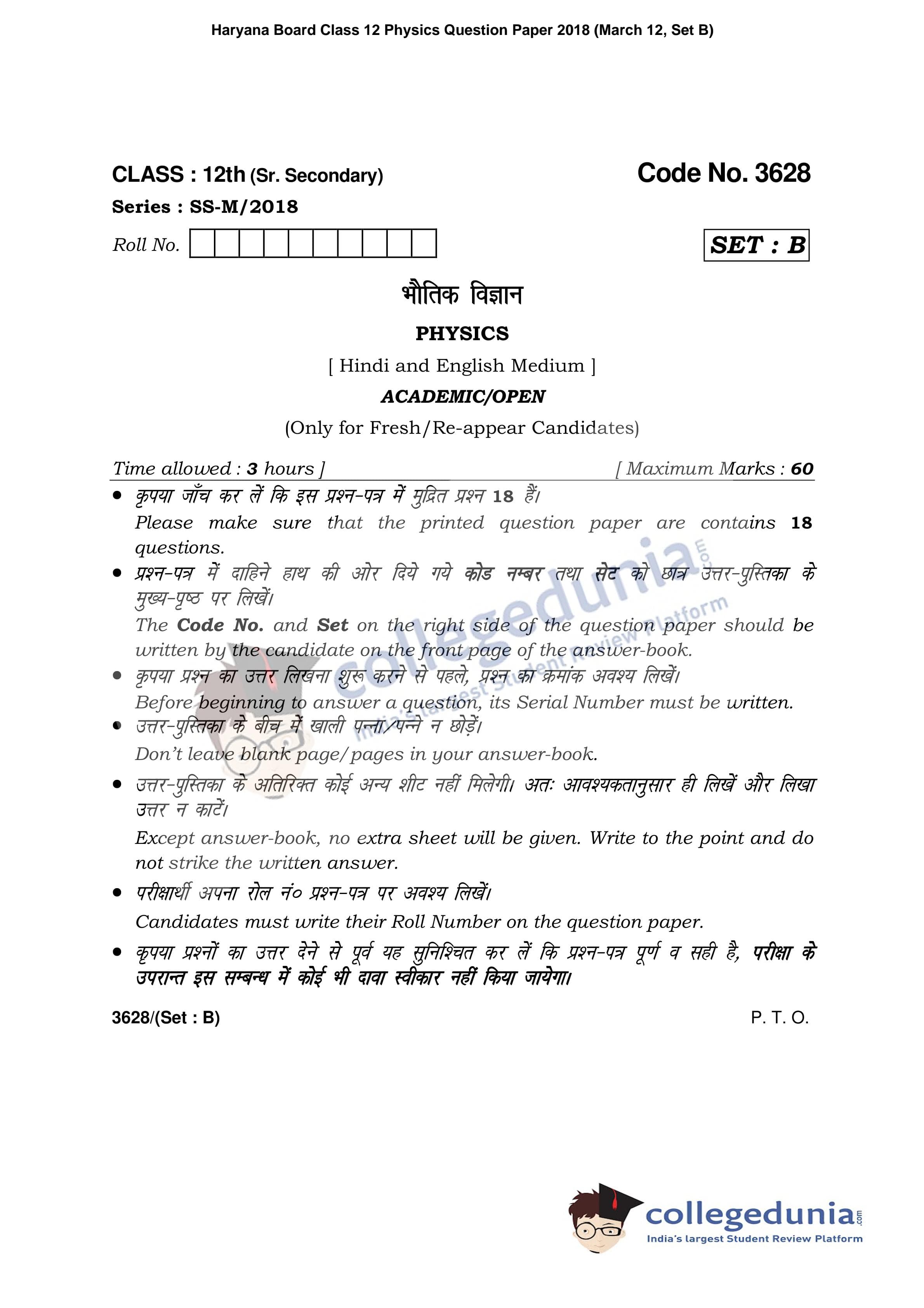 HBSE Class 12 Physics Set B Question Paper 2018 with Answer Key (March 12)