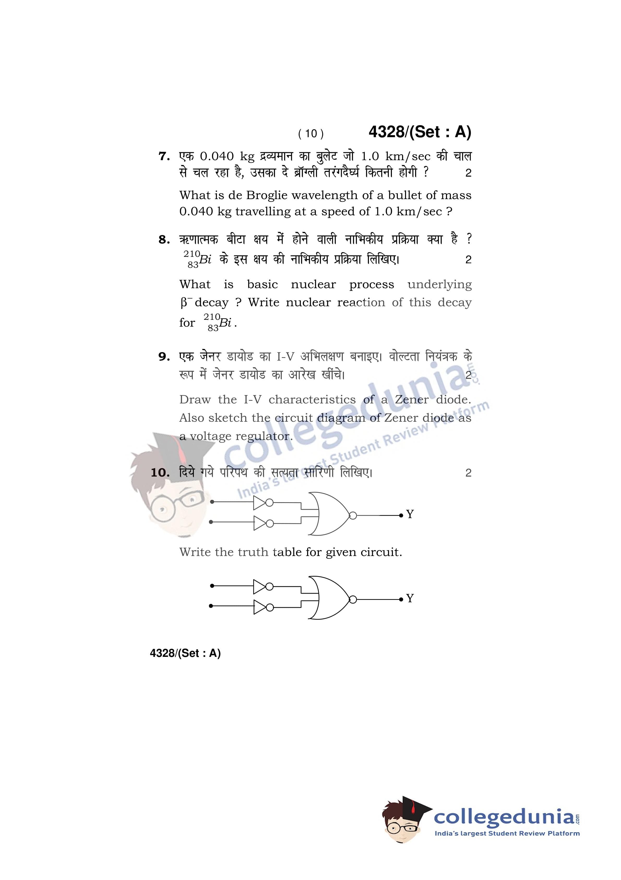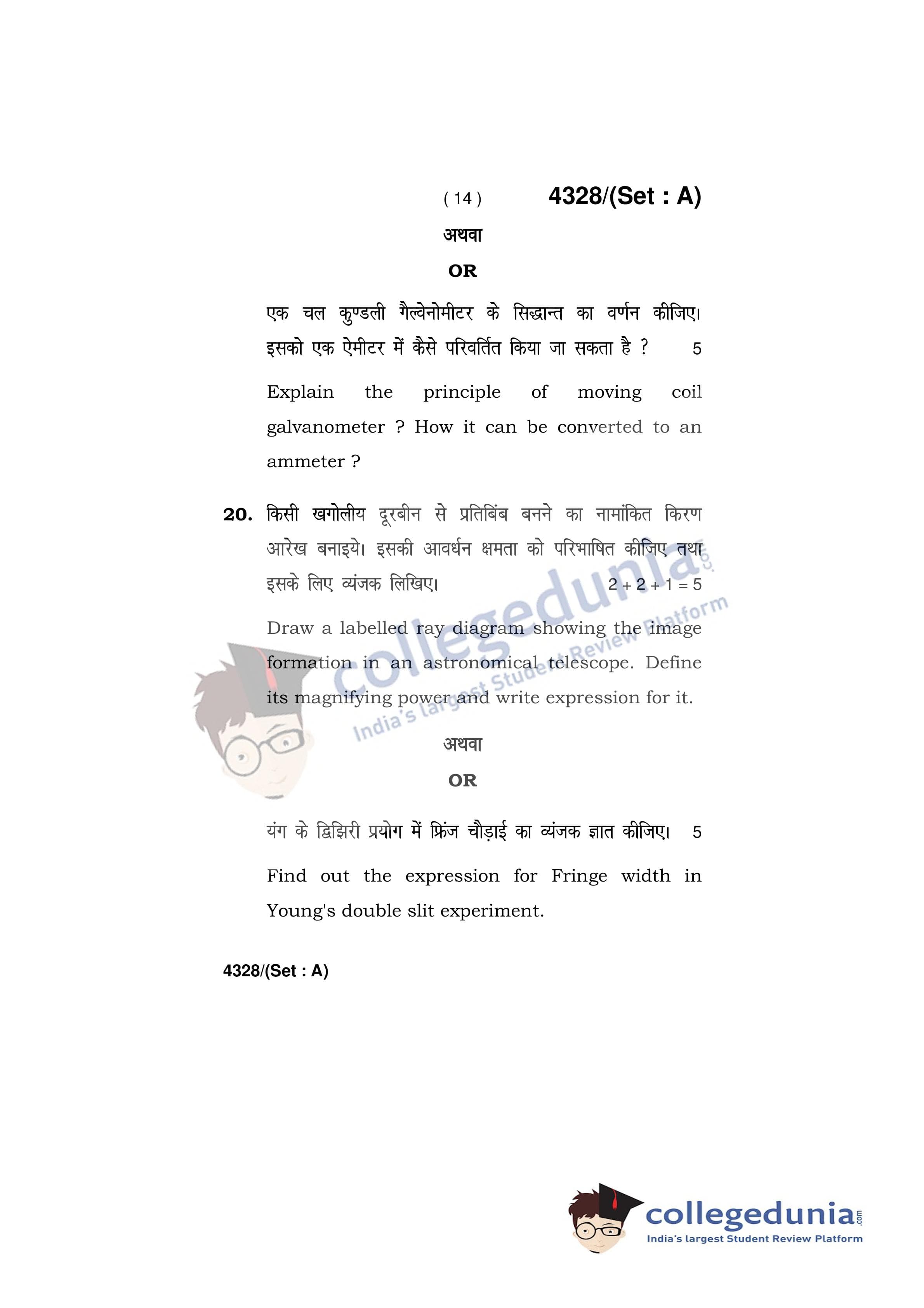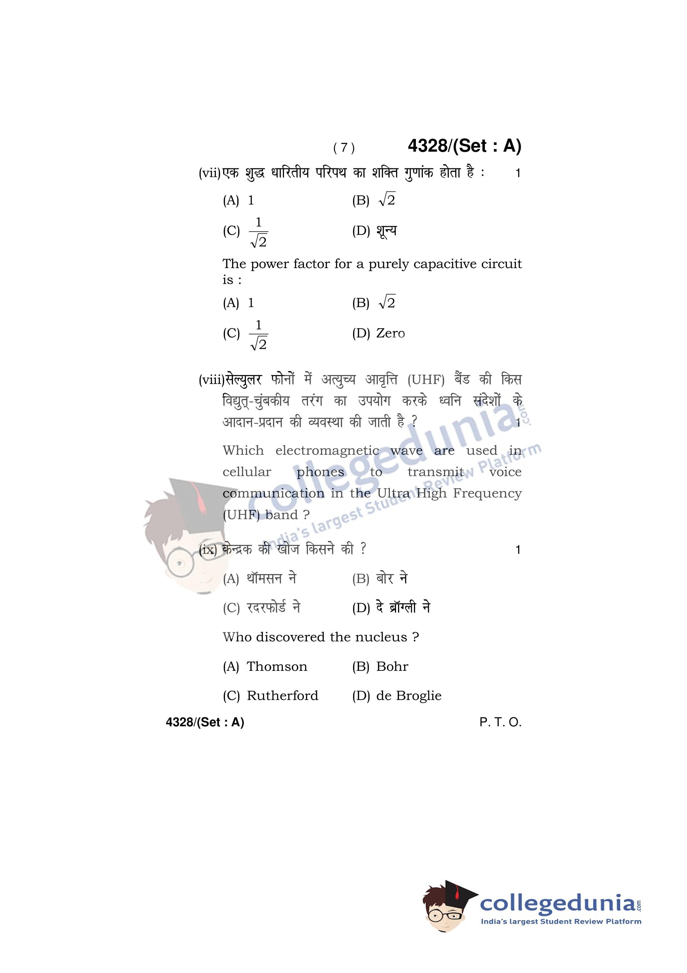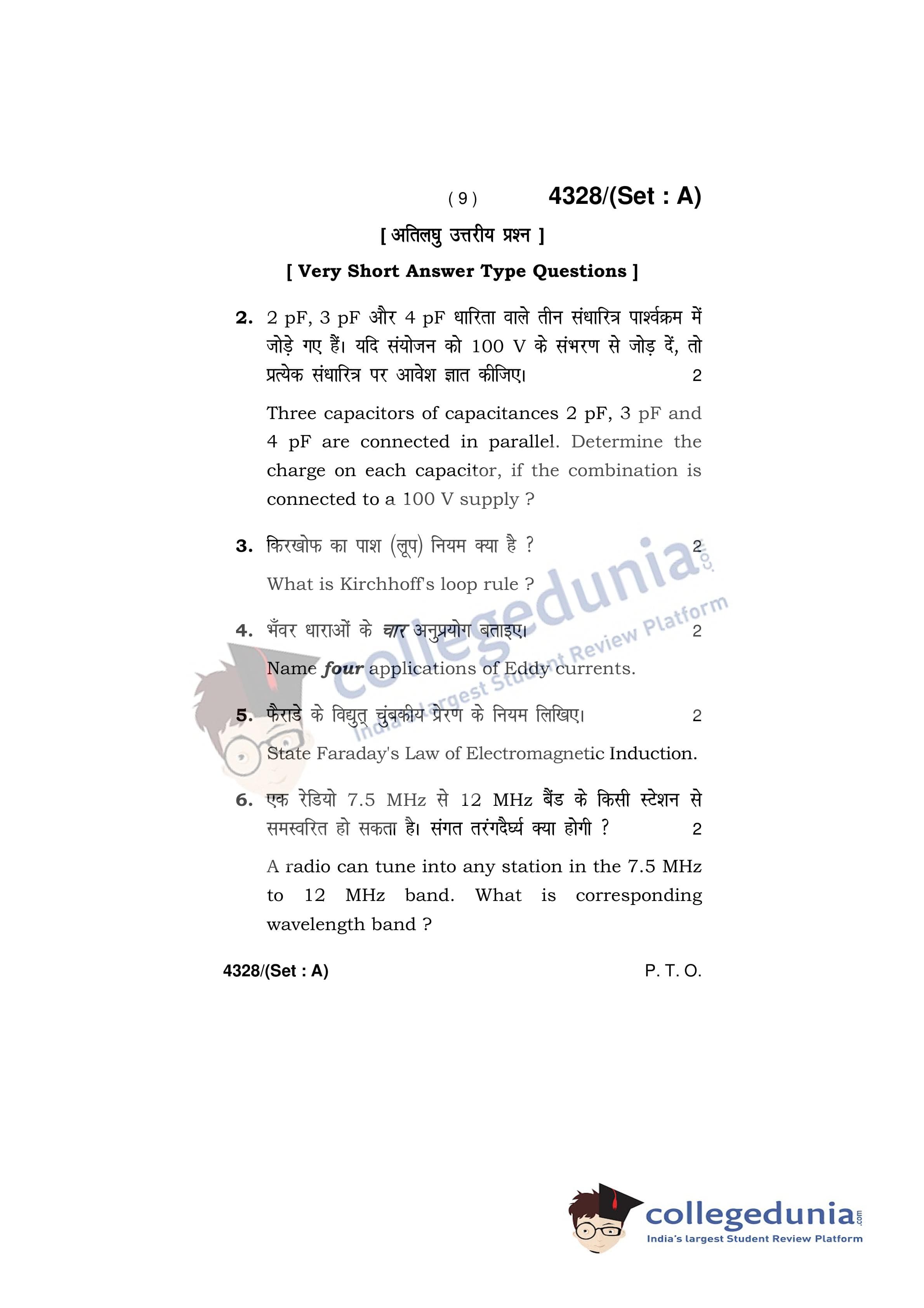 HBSE Class 12 Physics Set A Question Paper 2019 with Answer Key (March 12)