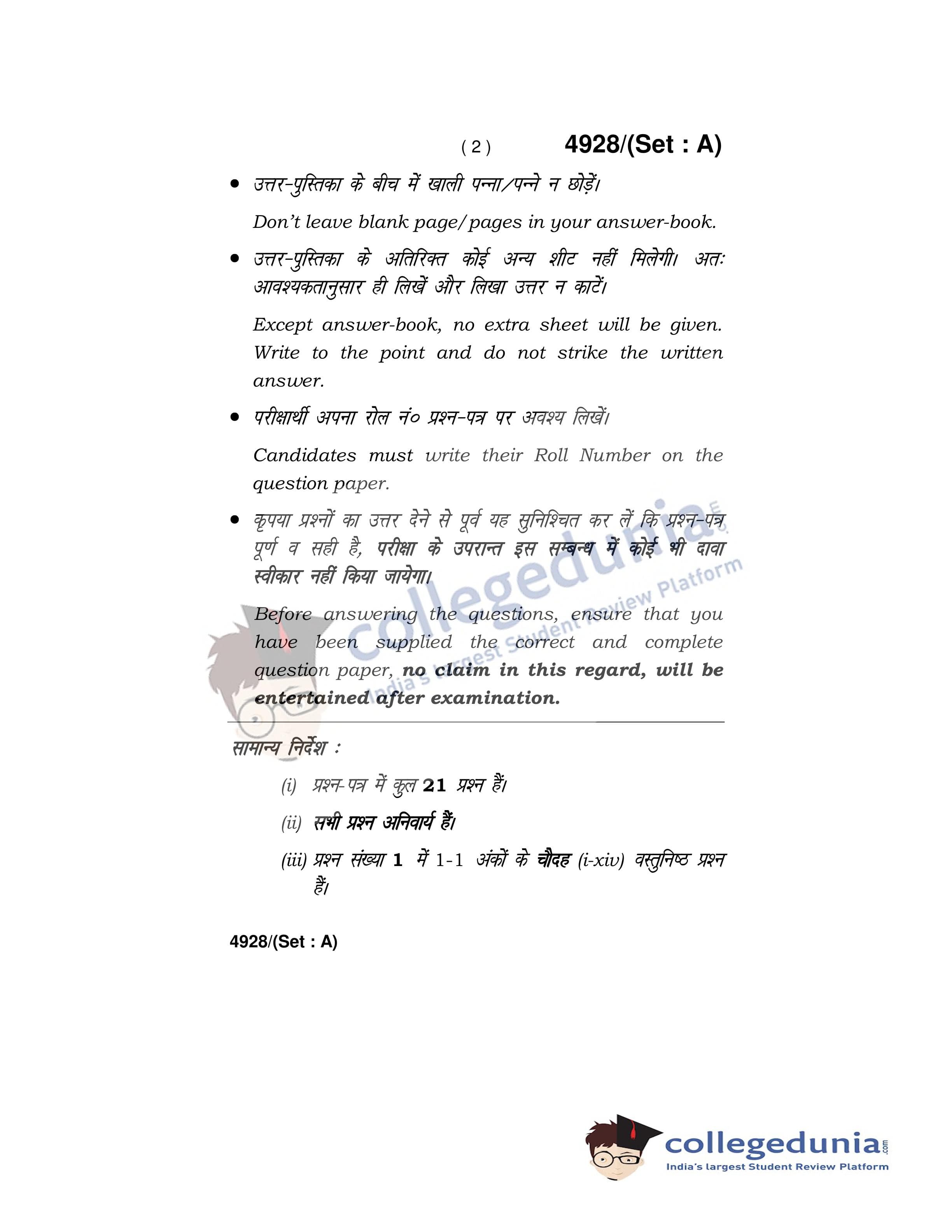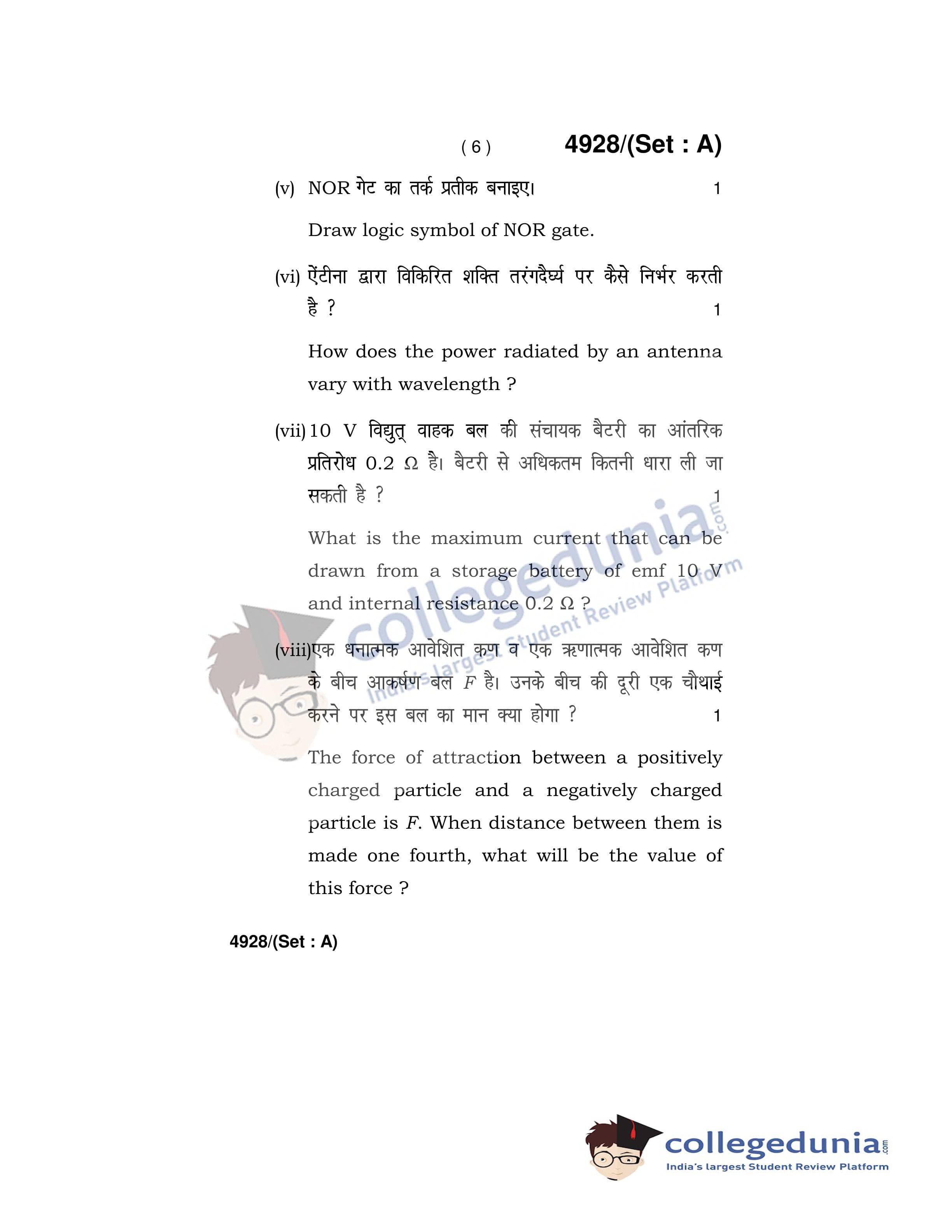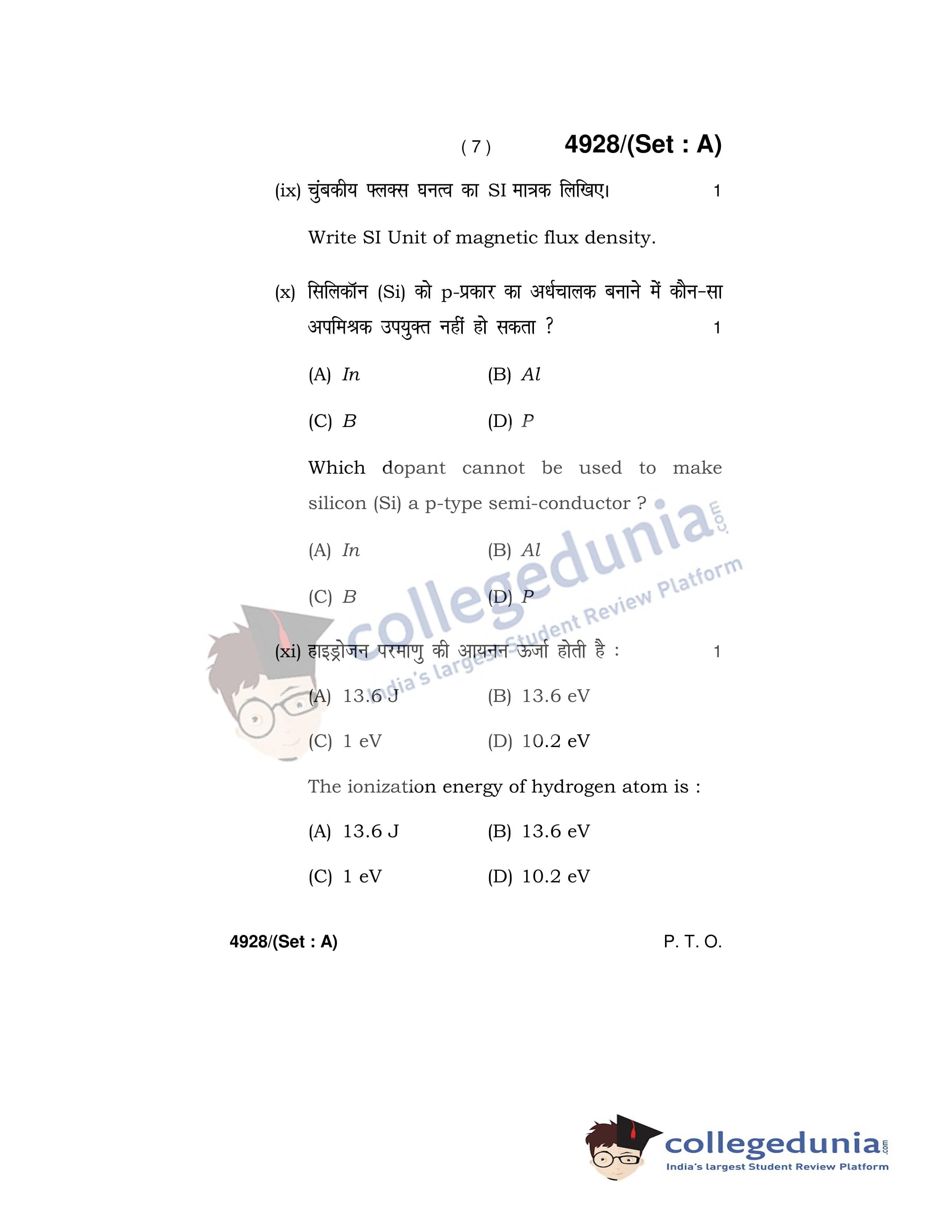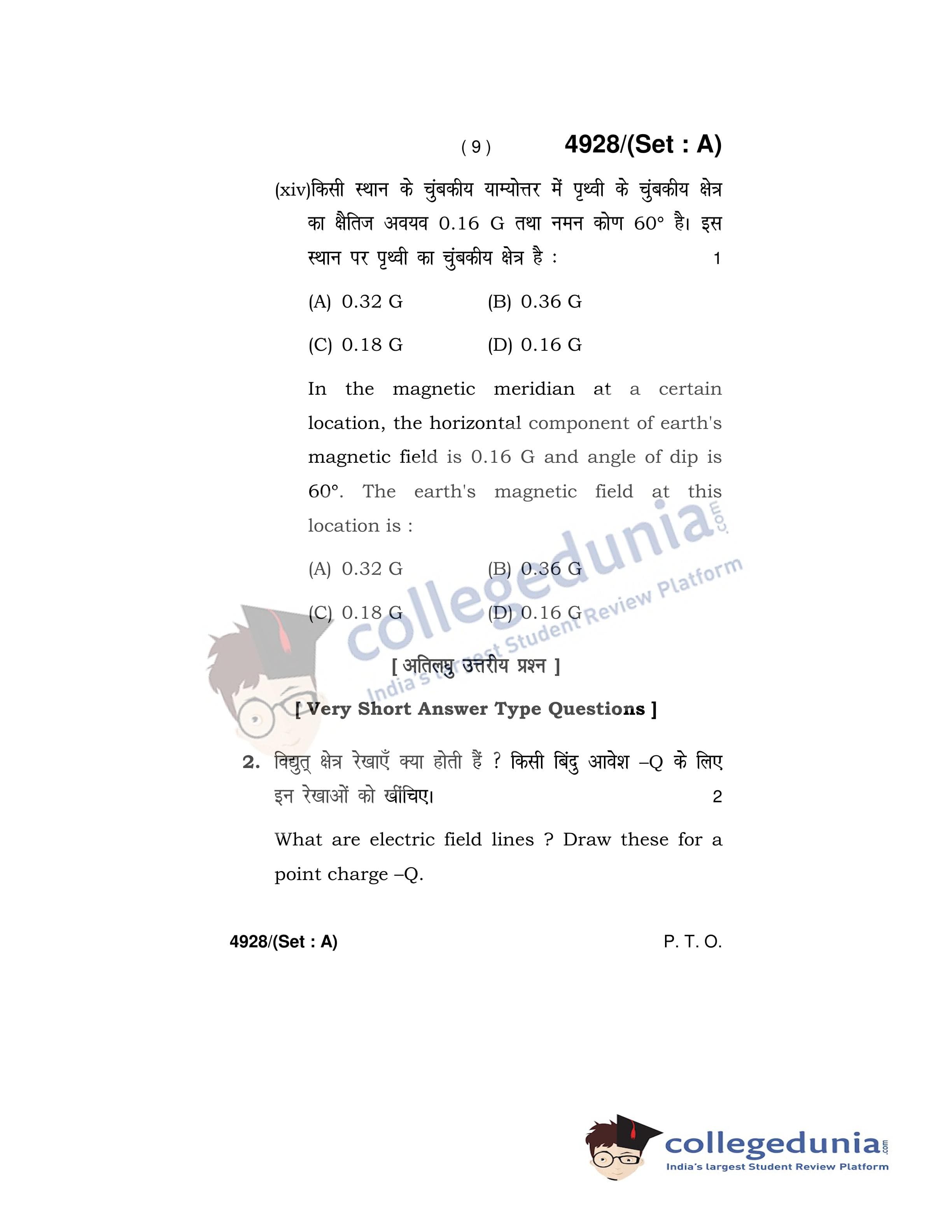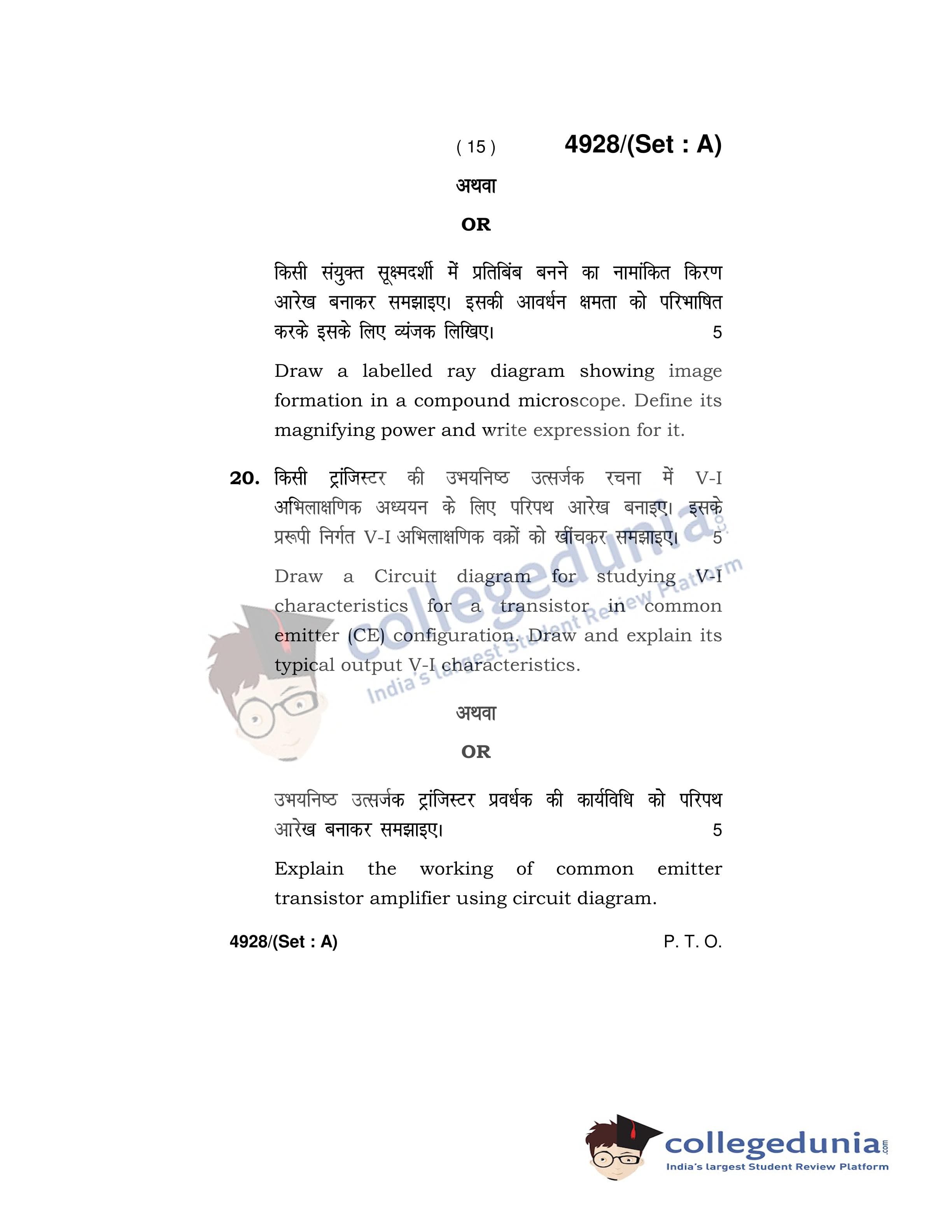 HBSE Class 12 Physics Set A Question Paper 2020 with Answer Key (March 5)