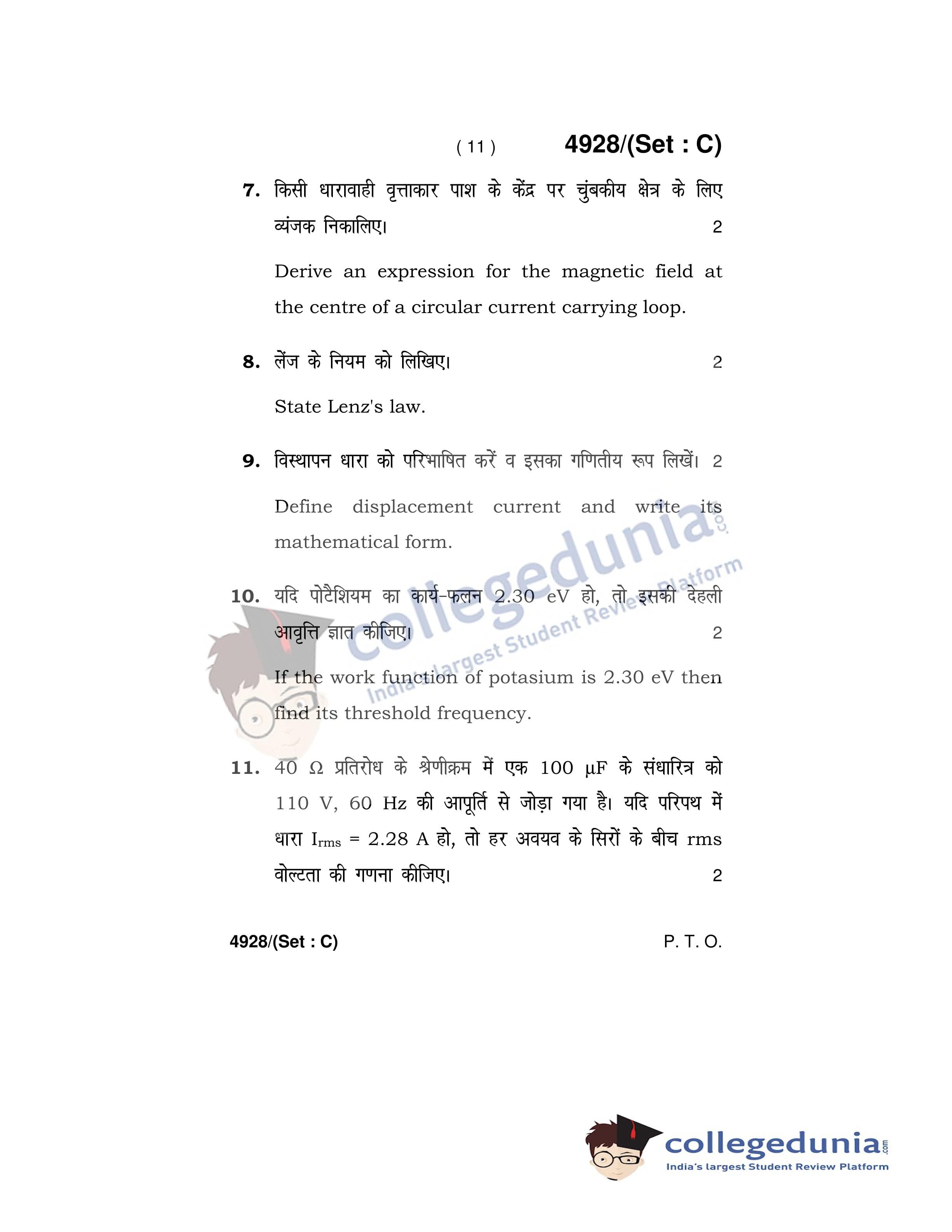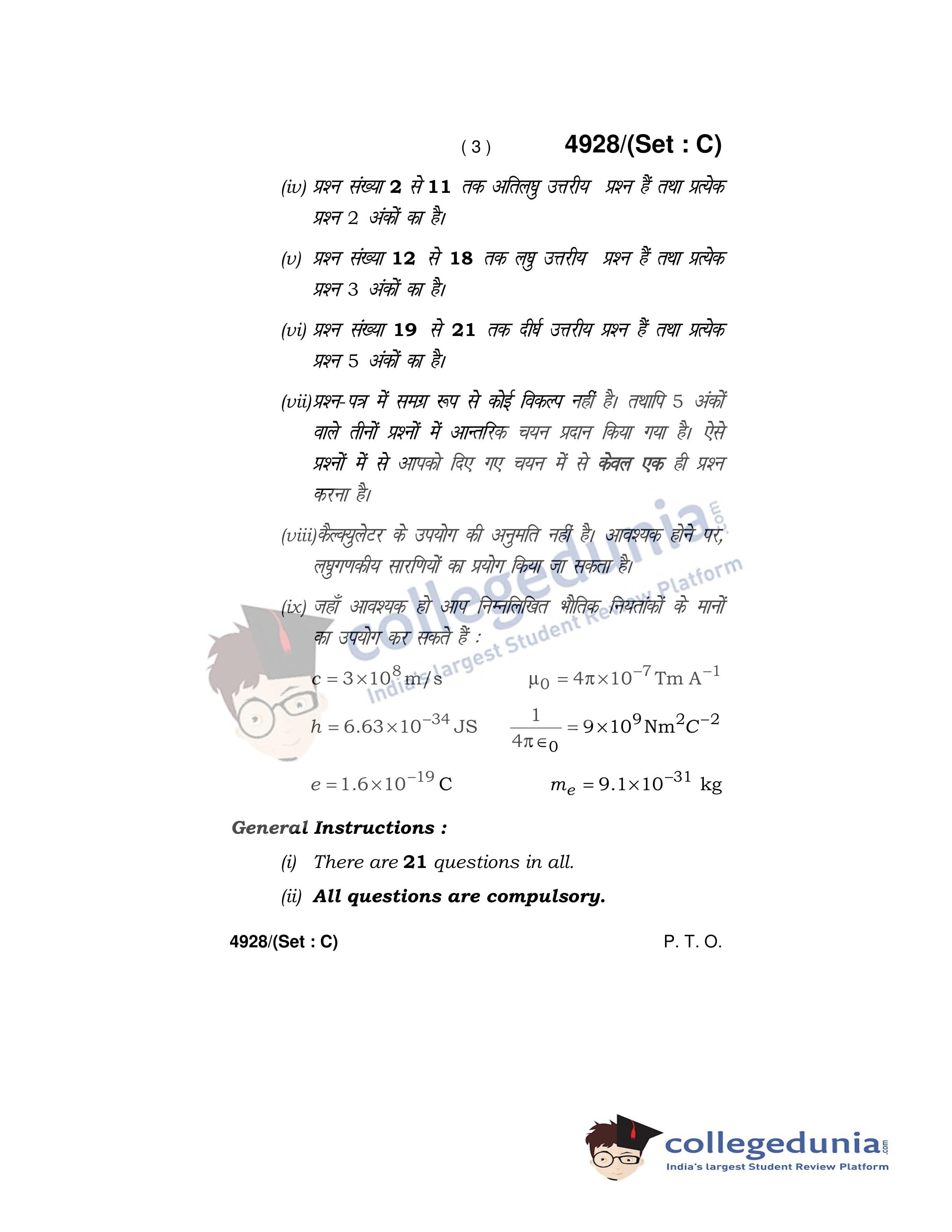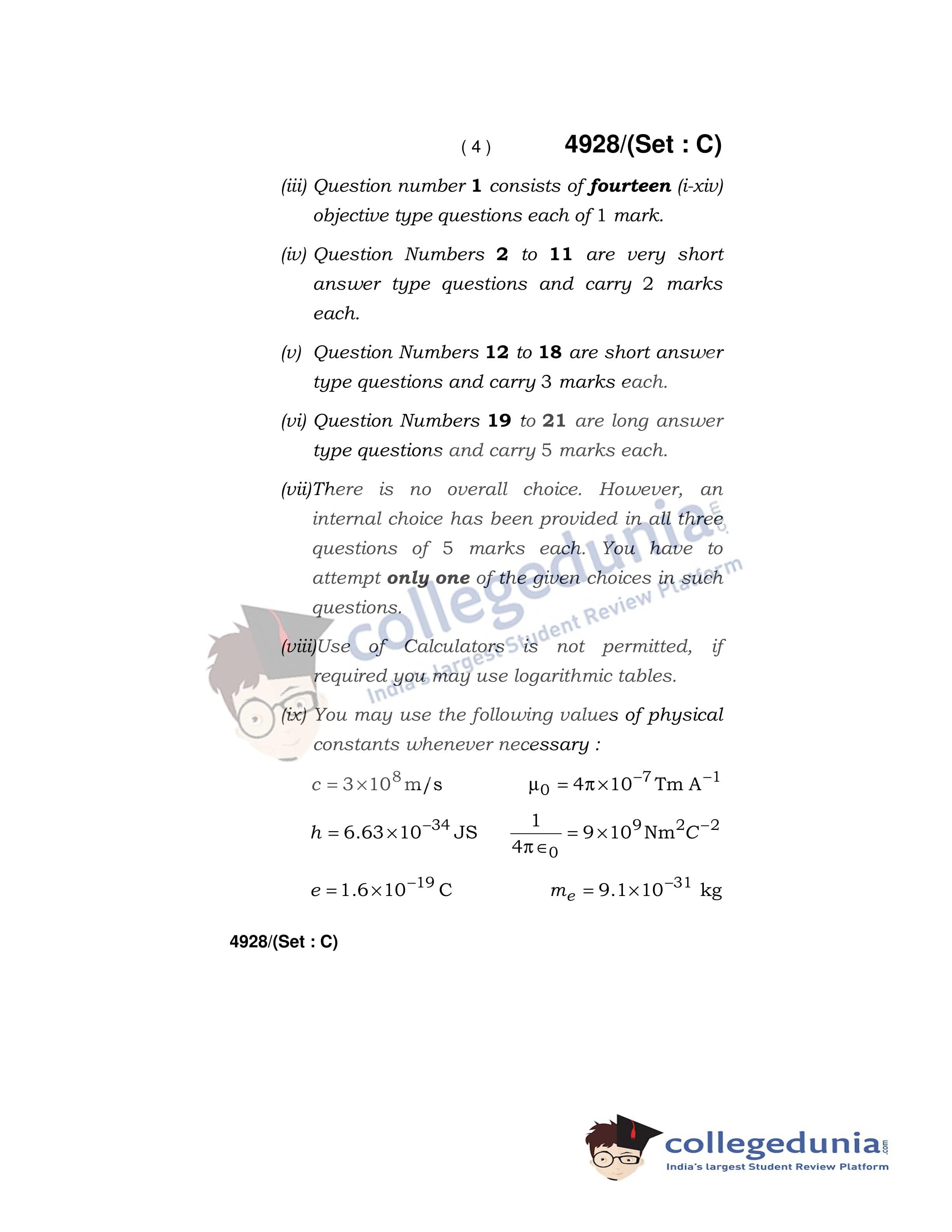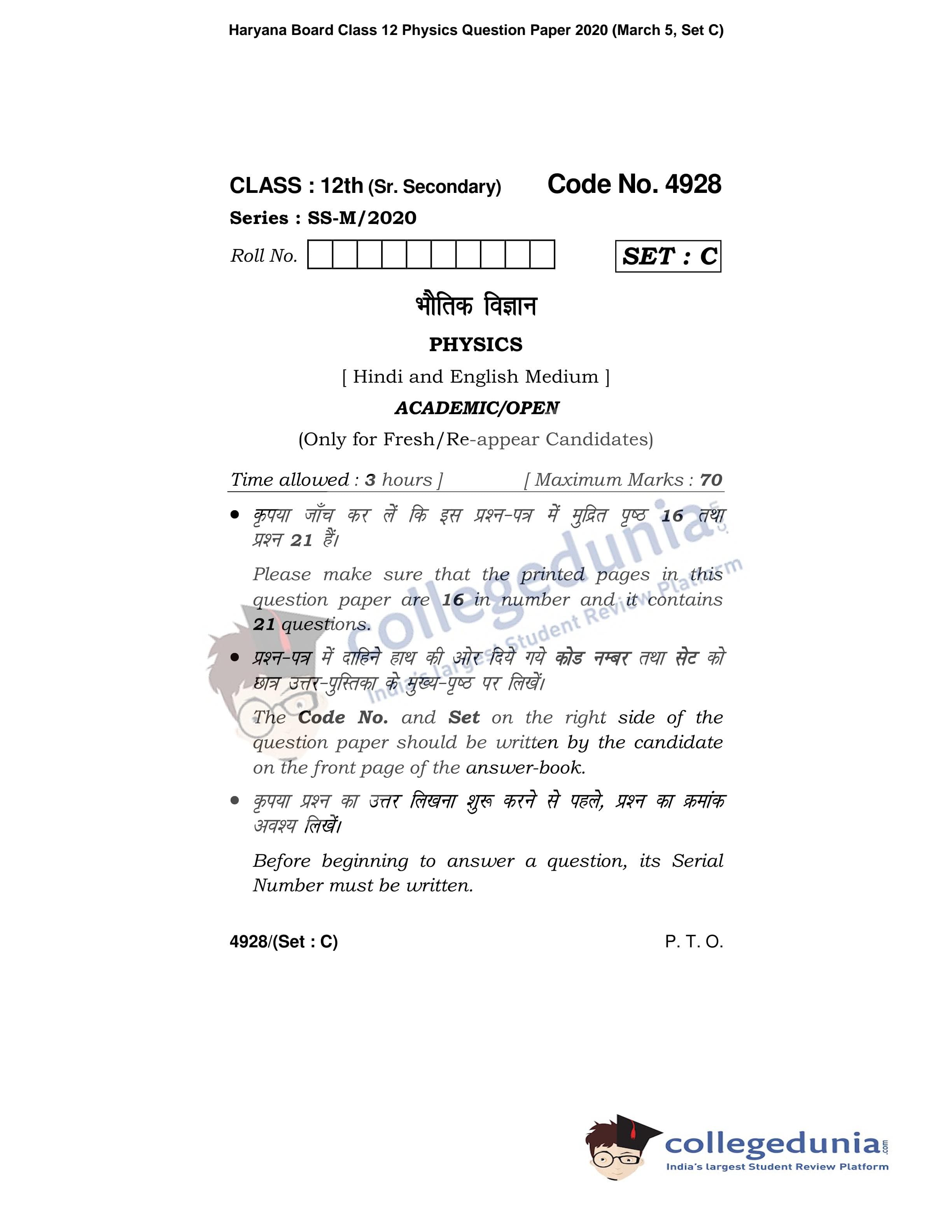 HBSE Class 12 Physics Set C Question Paper 2020 with Answer Key (March 5)